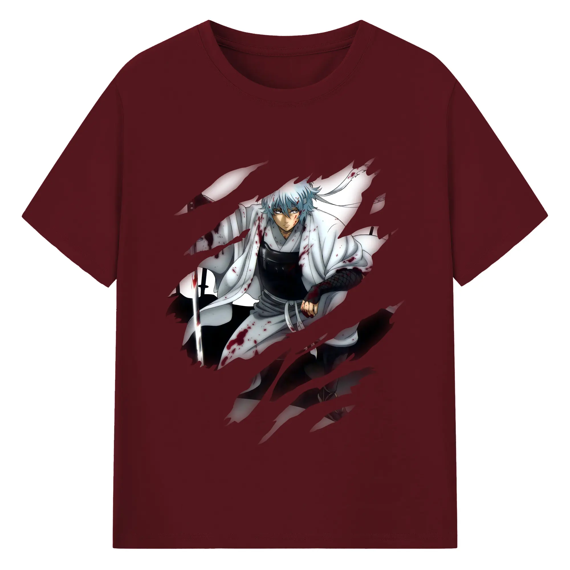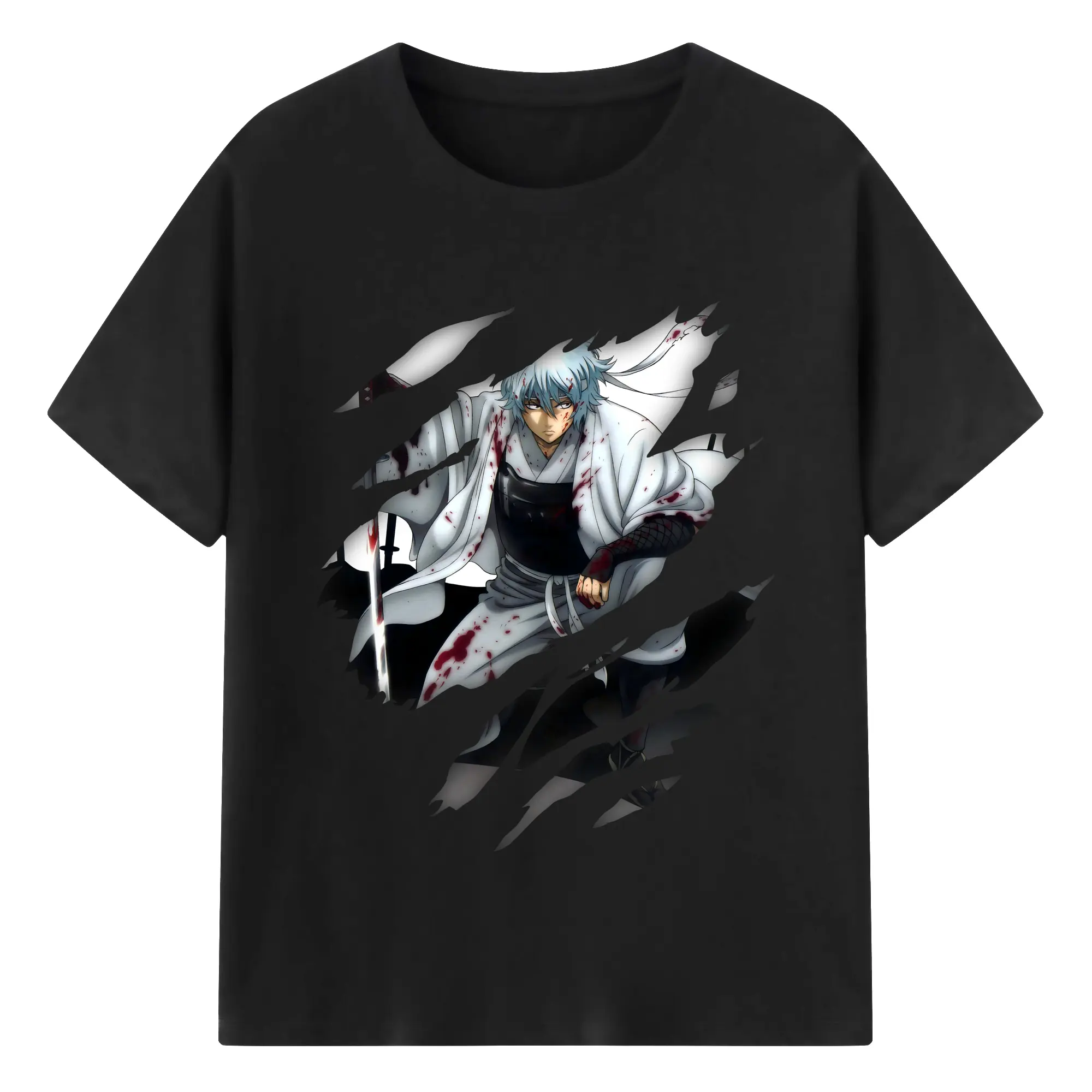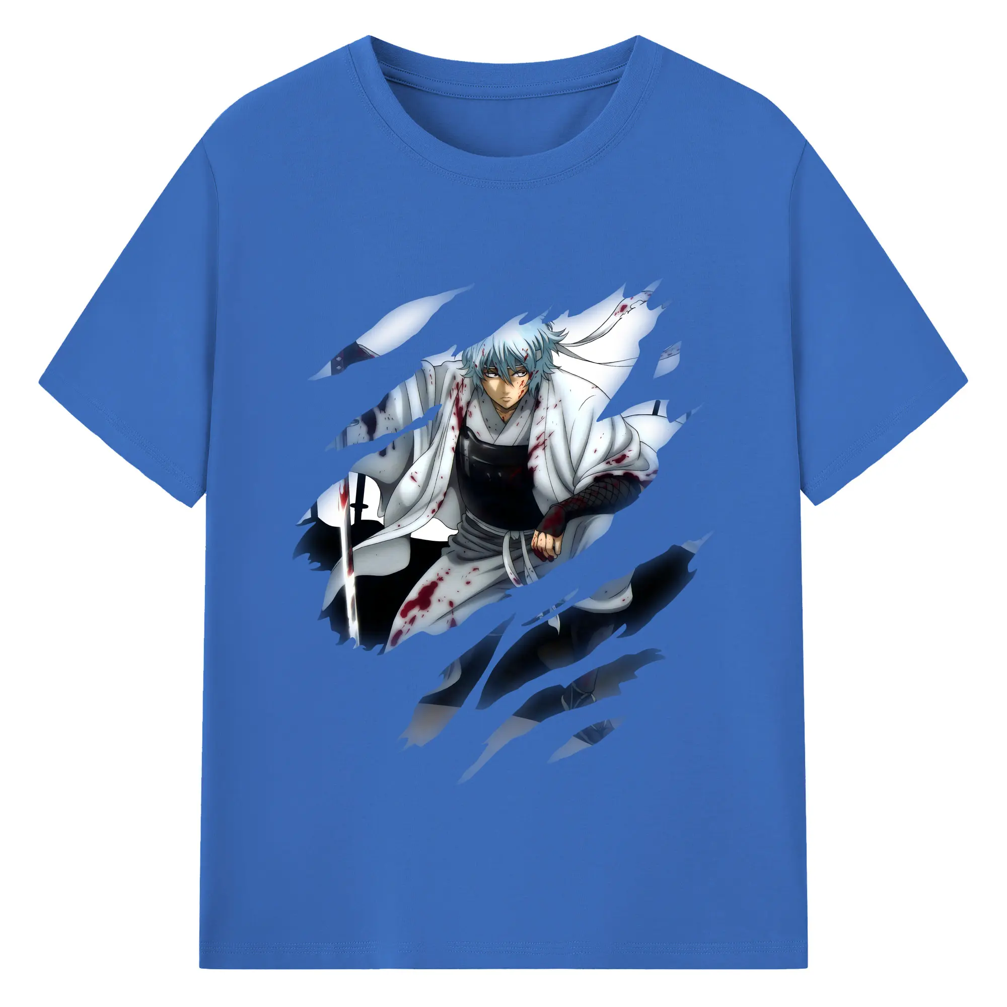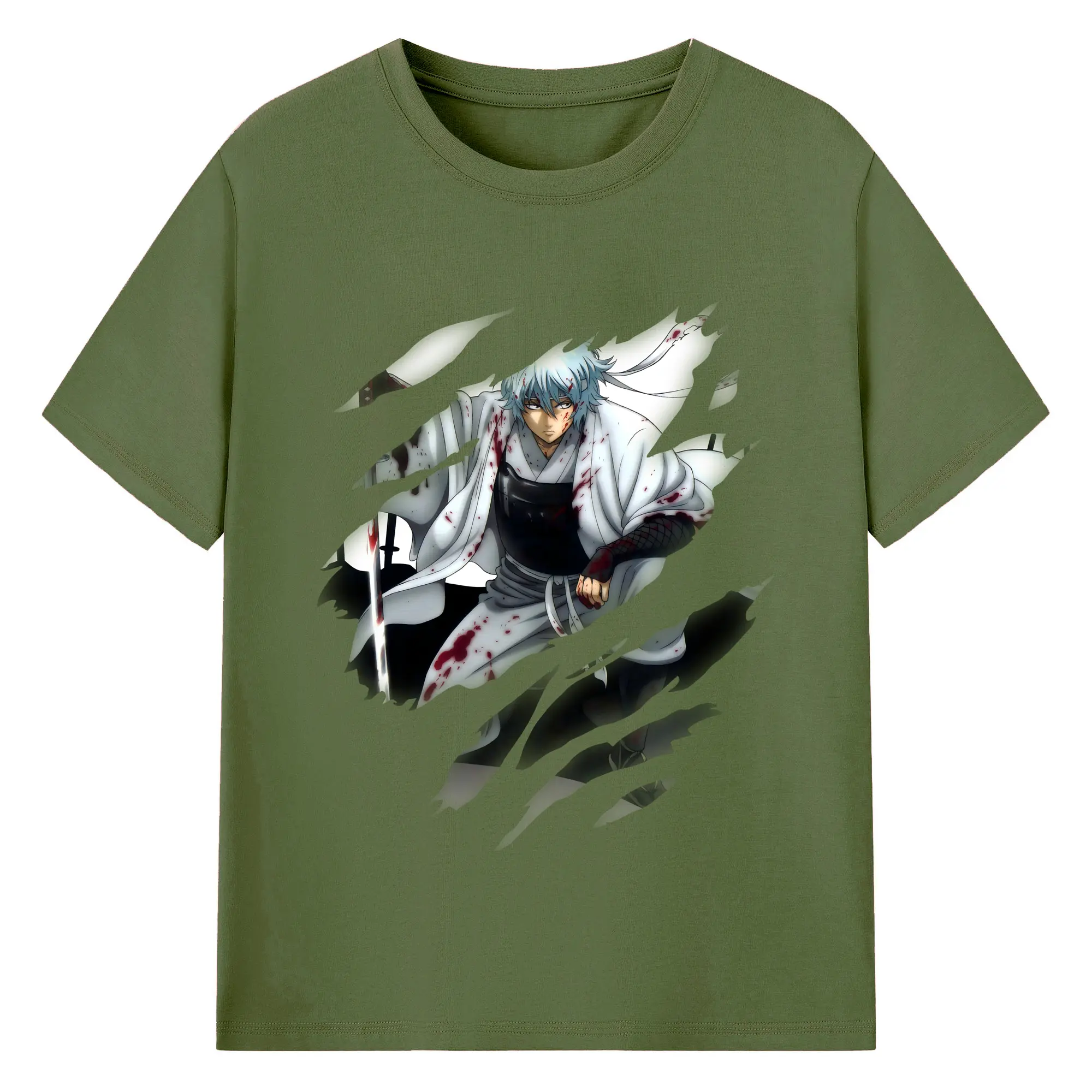 銀魂 グッズ 坂田 銀時 - 綿100% 半袖Tシャツ ・ バックプリント ・ 快適 通気性 ・ 日常使い 散歩 スポーツ用