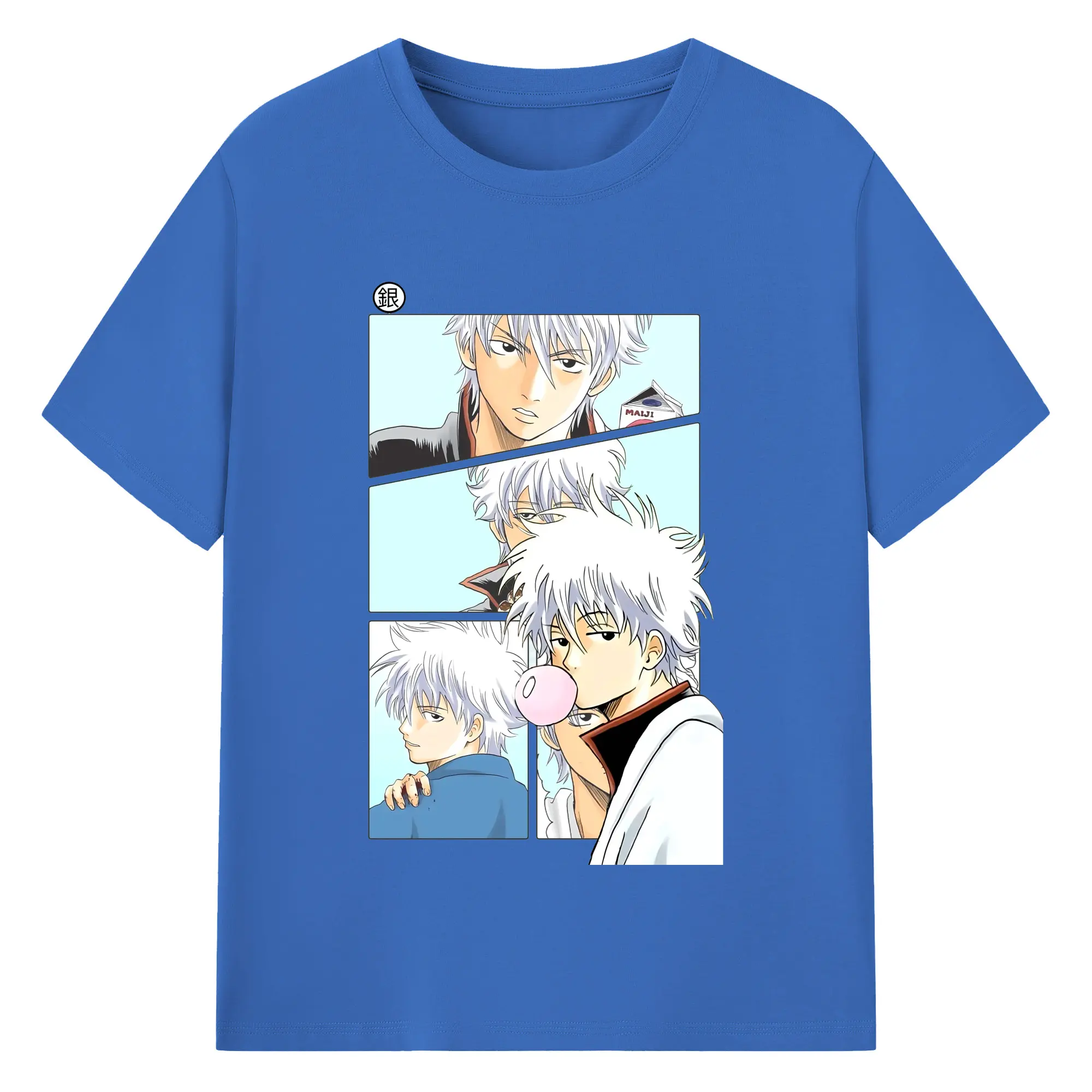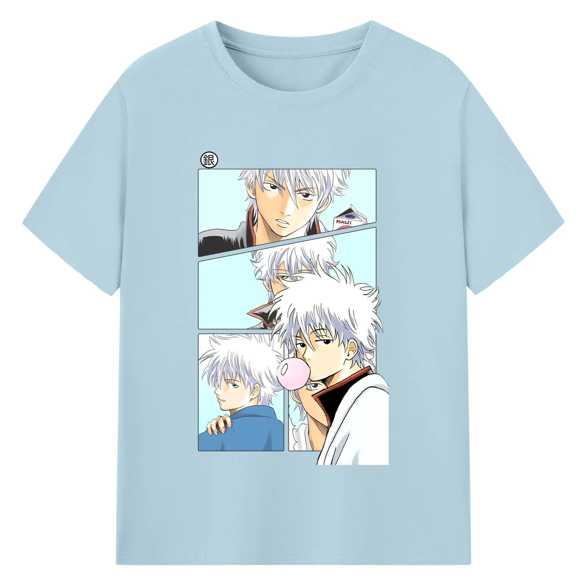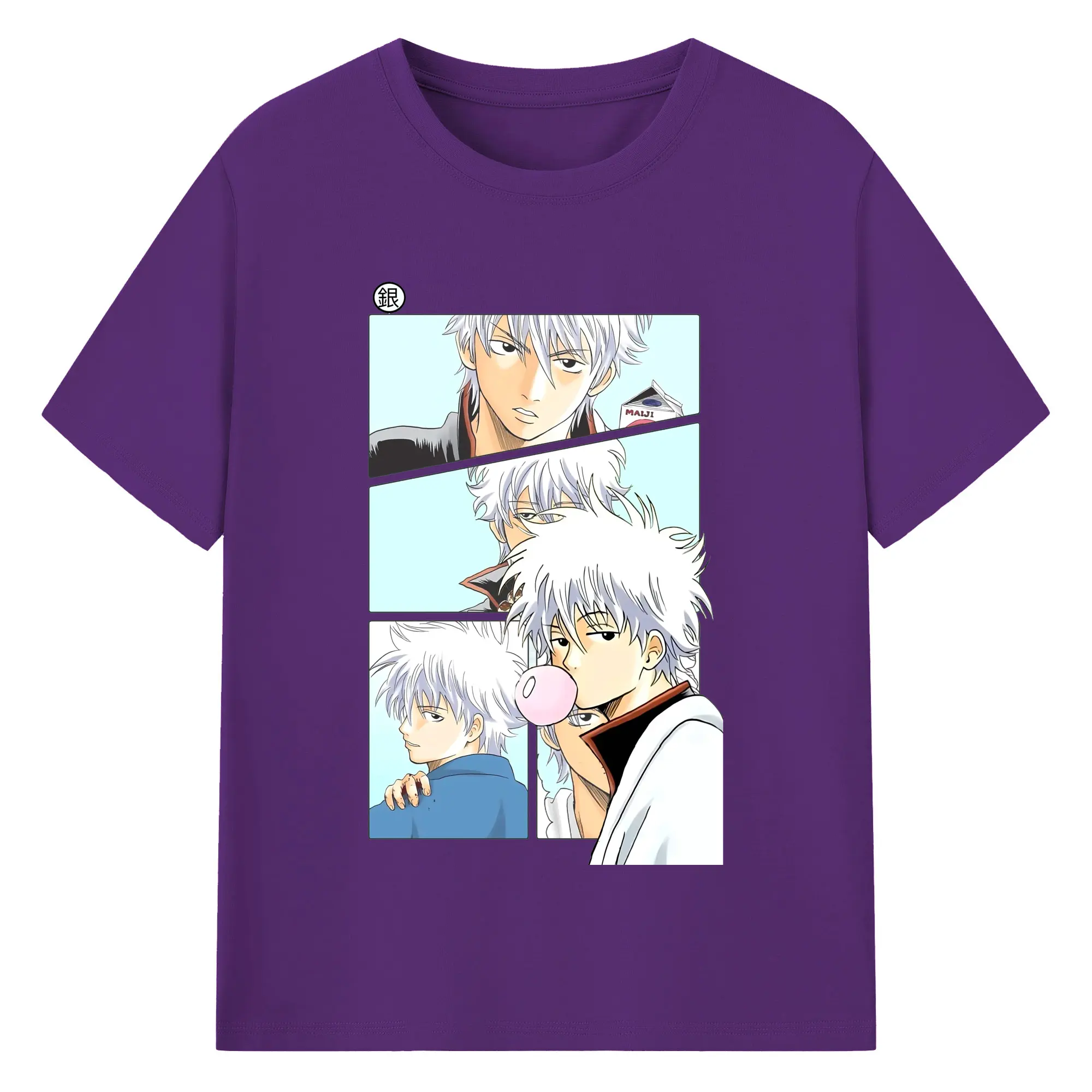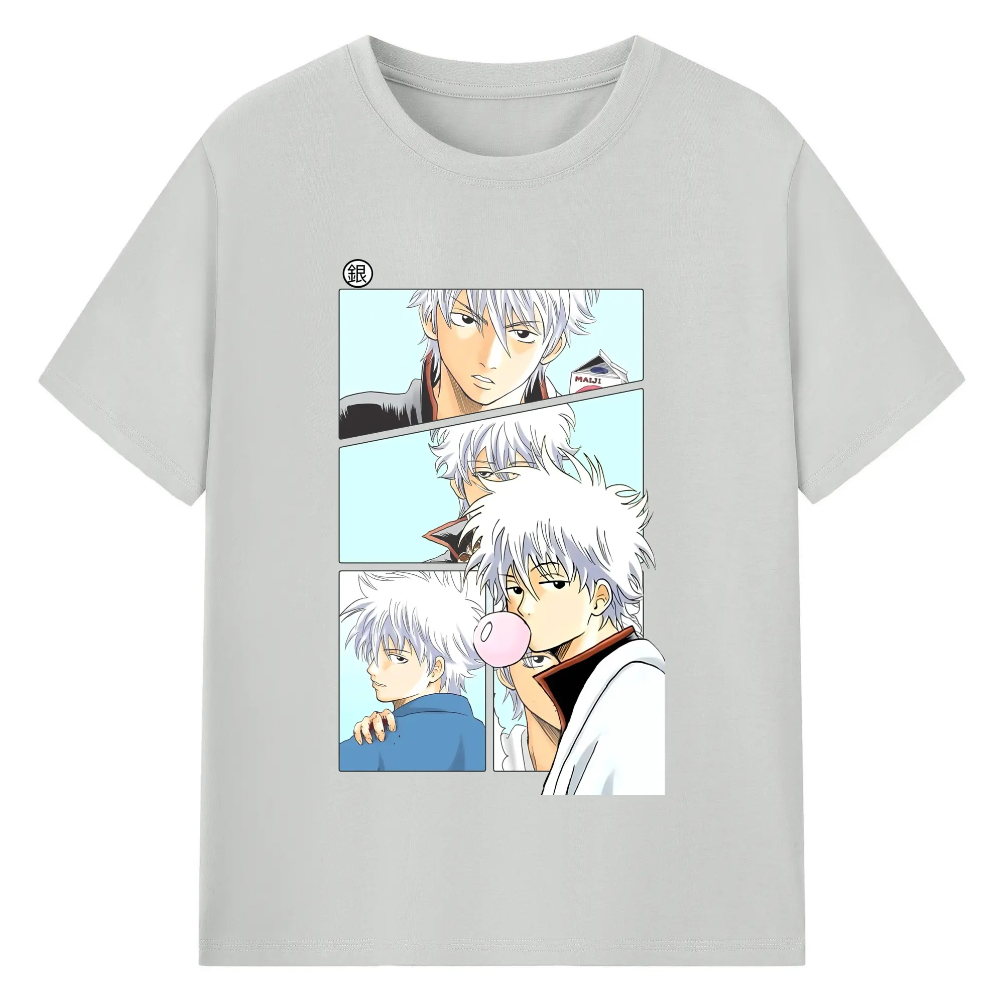 銀魂 グッズ 坂田 銀時 - 綿100% 半袖Tシャツ ・ バックプリント ・ 快適 通気性 ・ 日常使い 散歩 スポーツ用