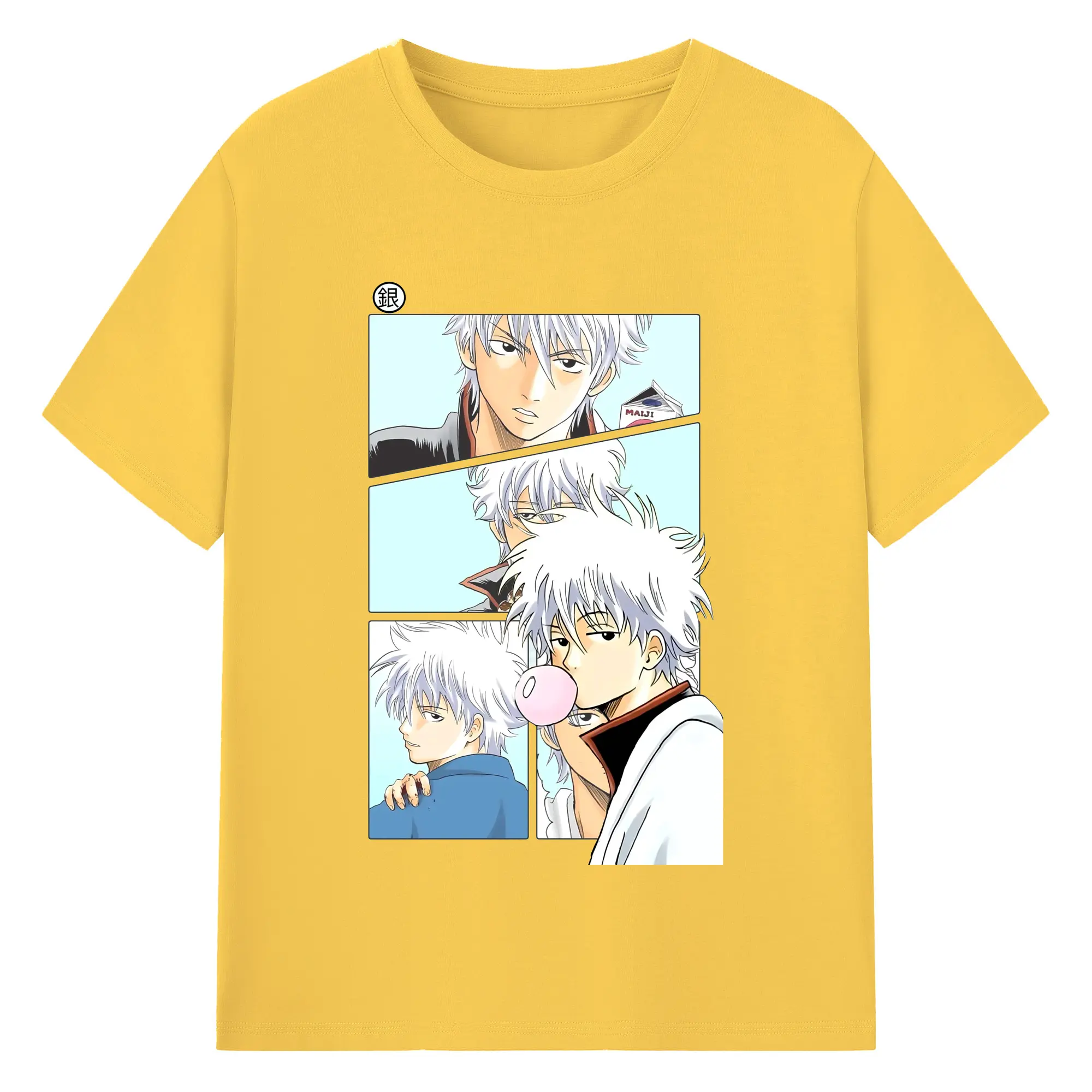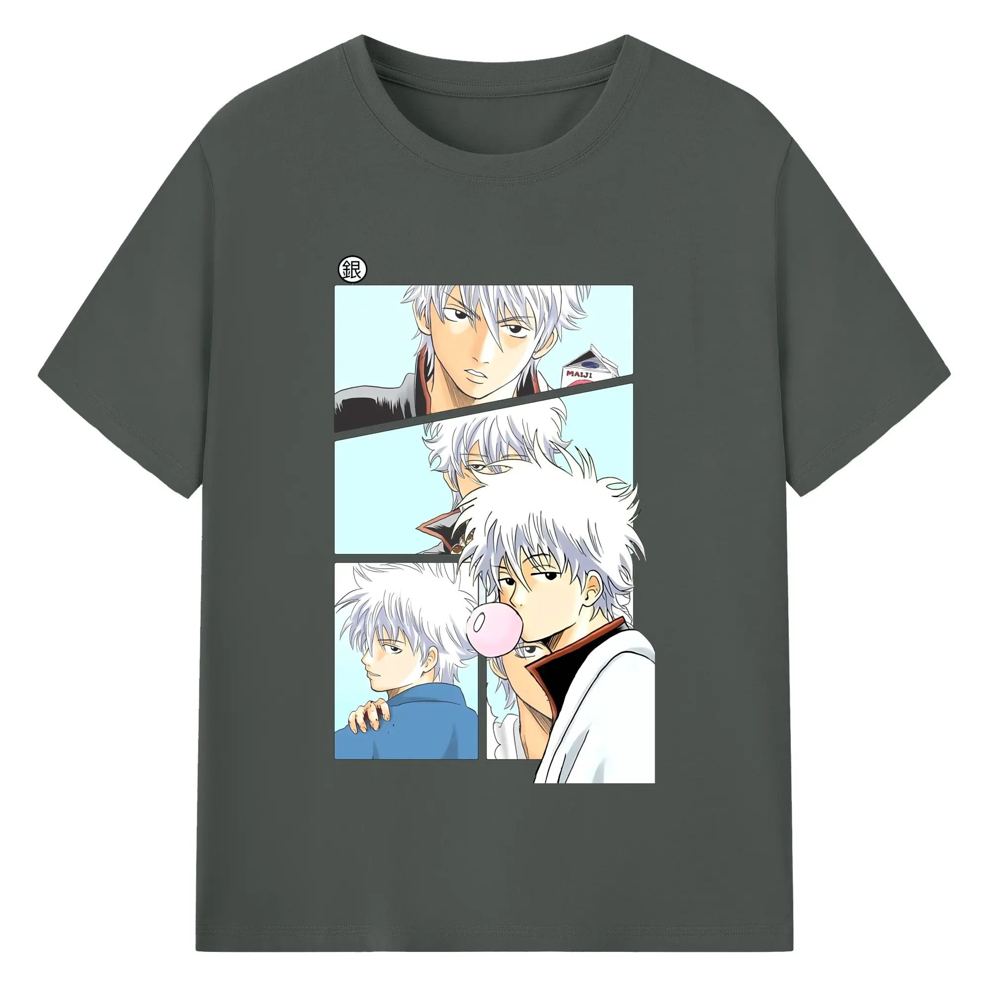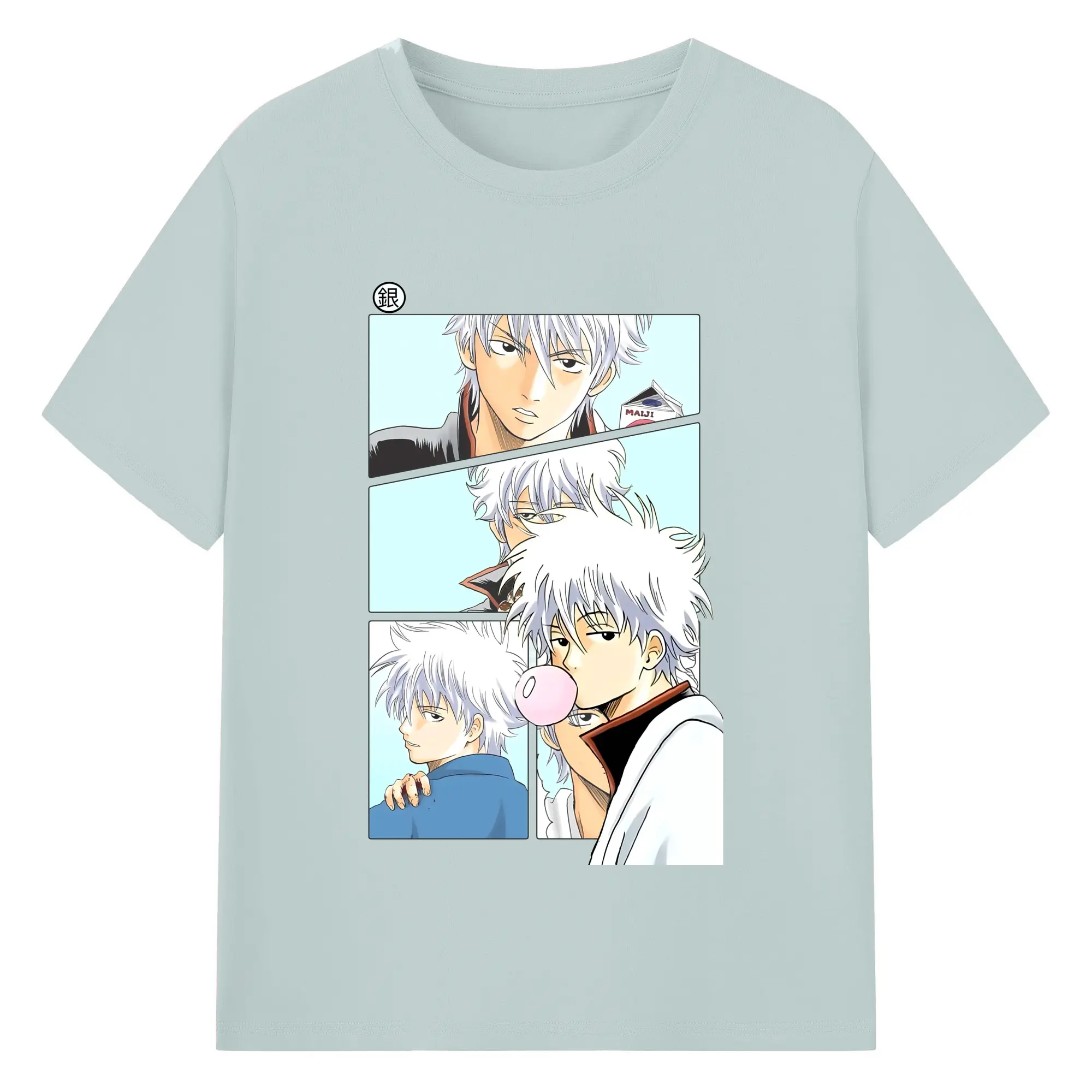 銀魂 グッズ 坂田 銀時 - 綿100% 半袖Tシャツ ・ バックプリント ・ 快適 通気性 ・ 日常使い 散歩 スポーツ用