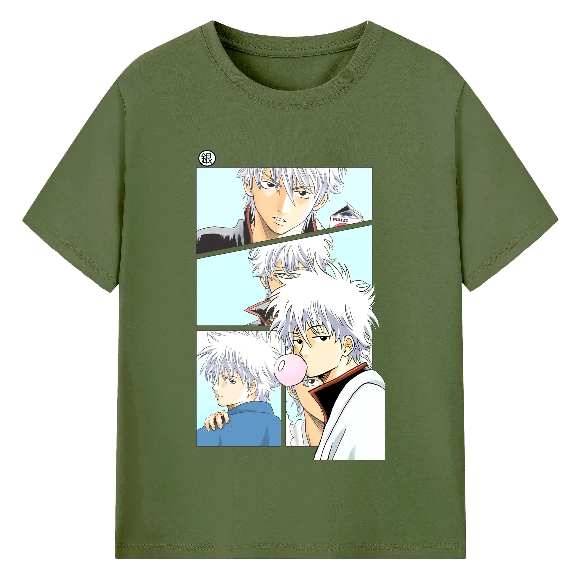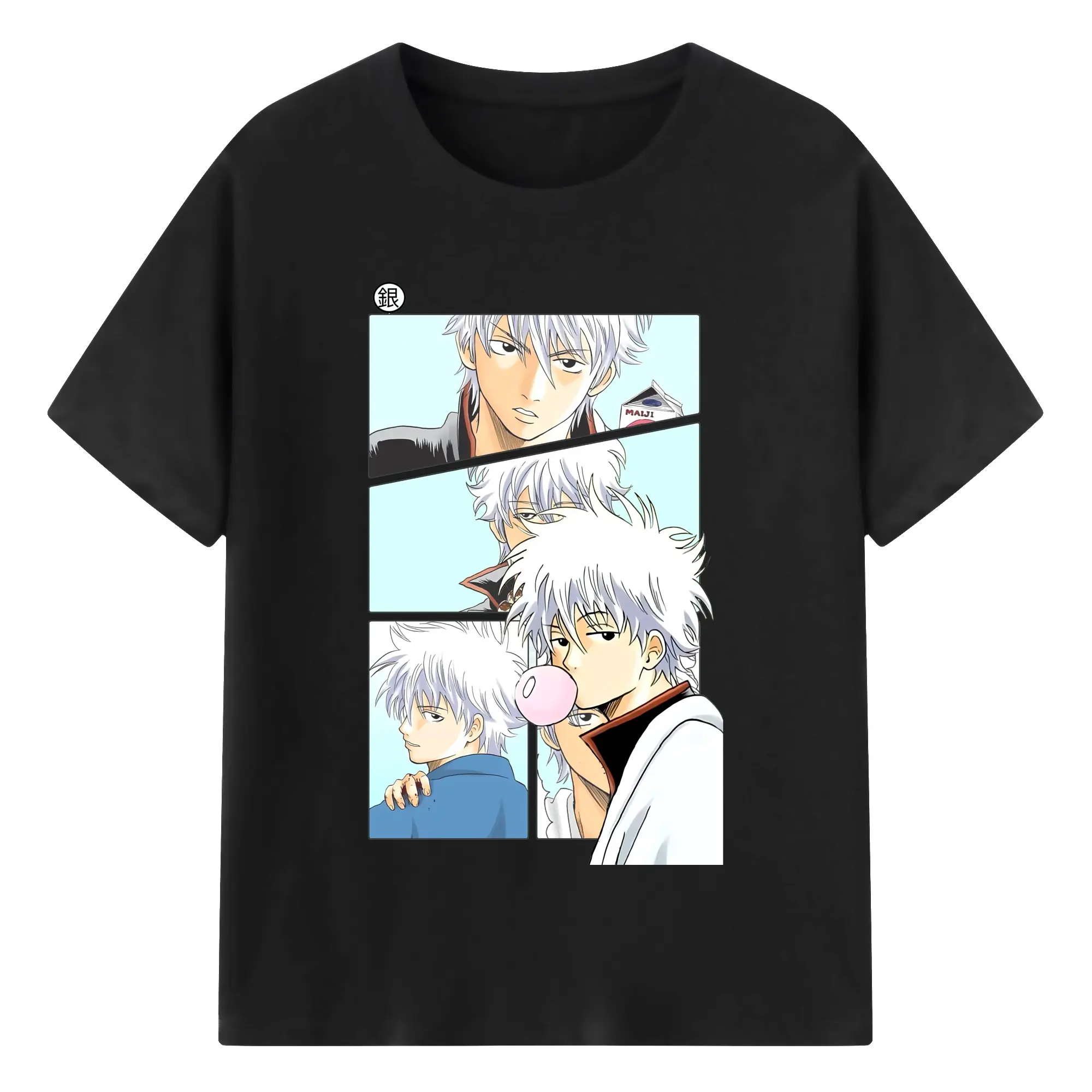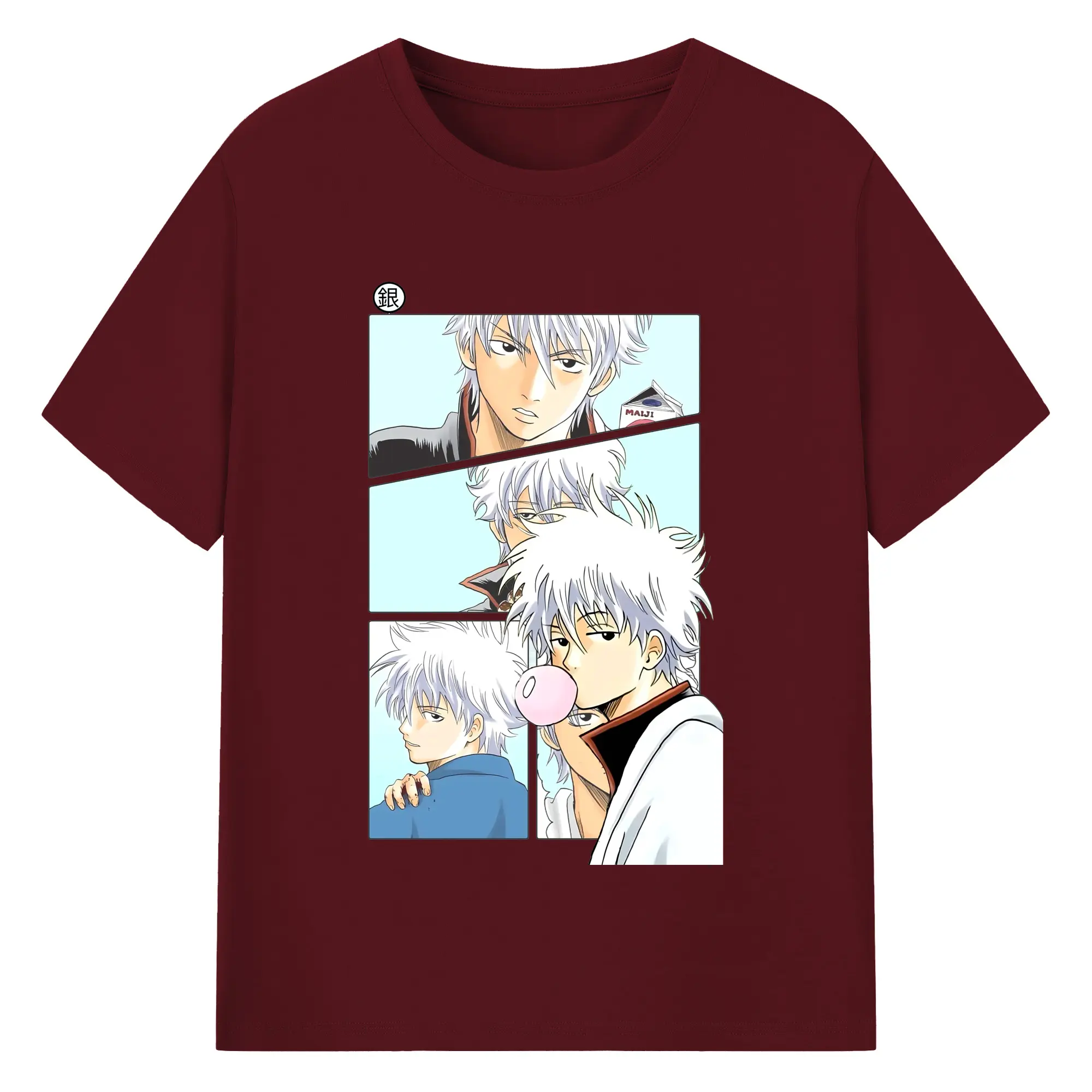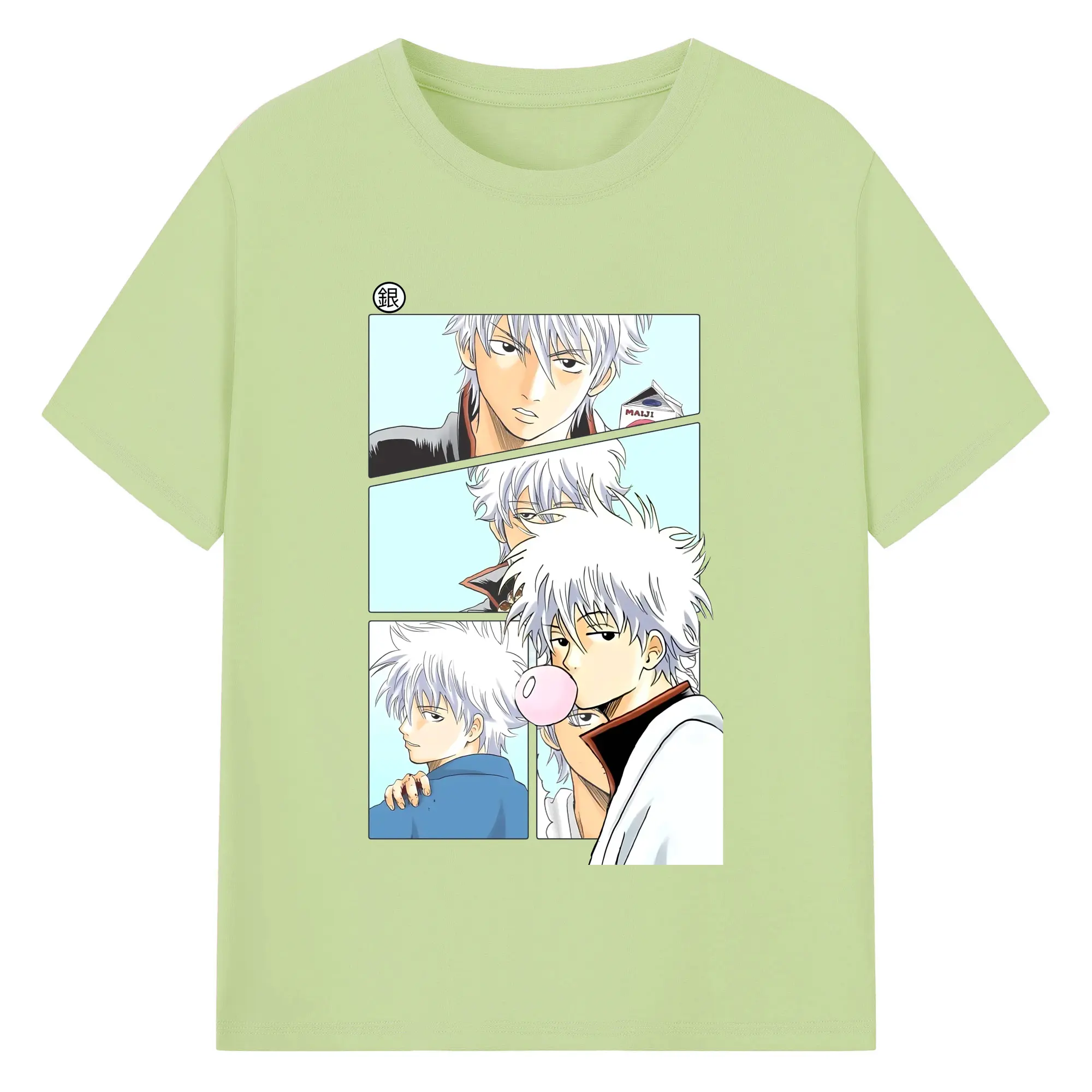 銀魂 グッズ 坂田 銀時 - 綿100% 半袖Tシャツ ・ バックプリント ・ 快適 通気性 ・ 日常使い 散歩 スポーツ用