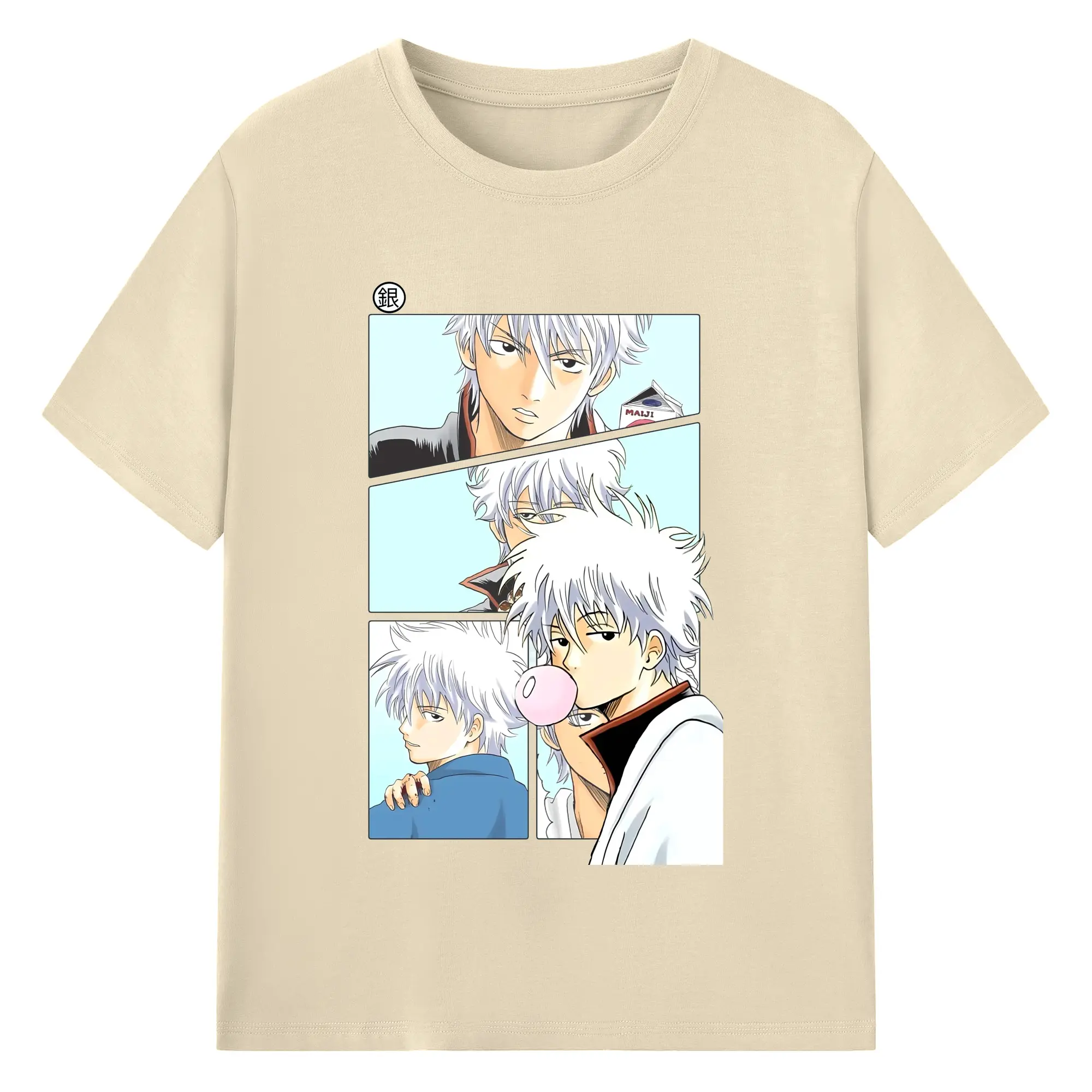 銀魂 グッズ 坂田 銀時 - 綿100% ヴィンテージ風 半袖Tシャツ ・ フロントプリント ・ 柔らか肌触り ・ 通気性 快適 ・ スポーツ カジュアル 外出用