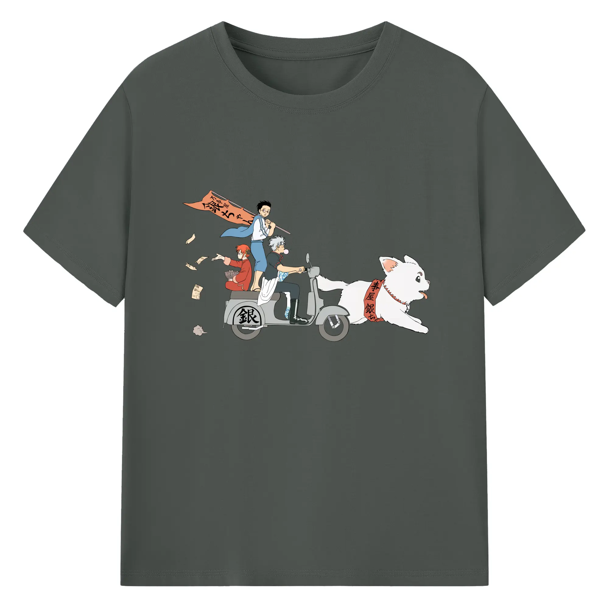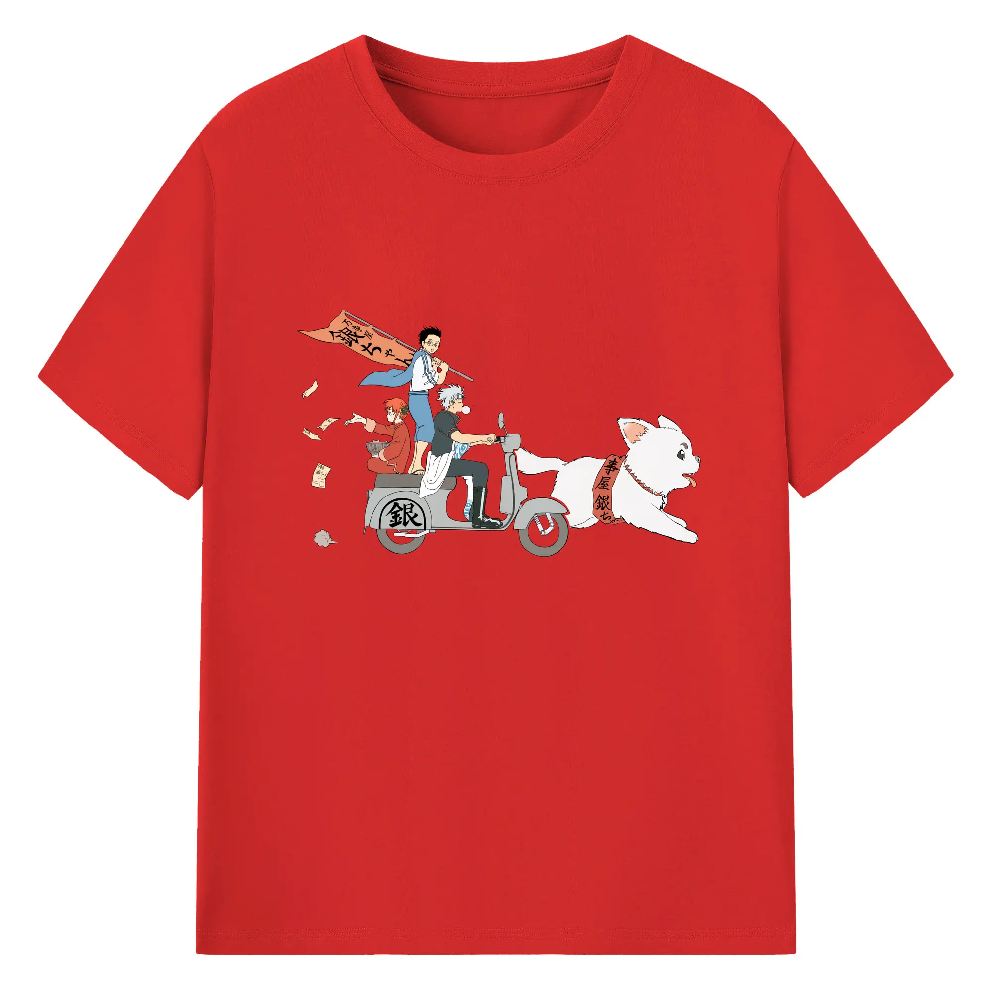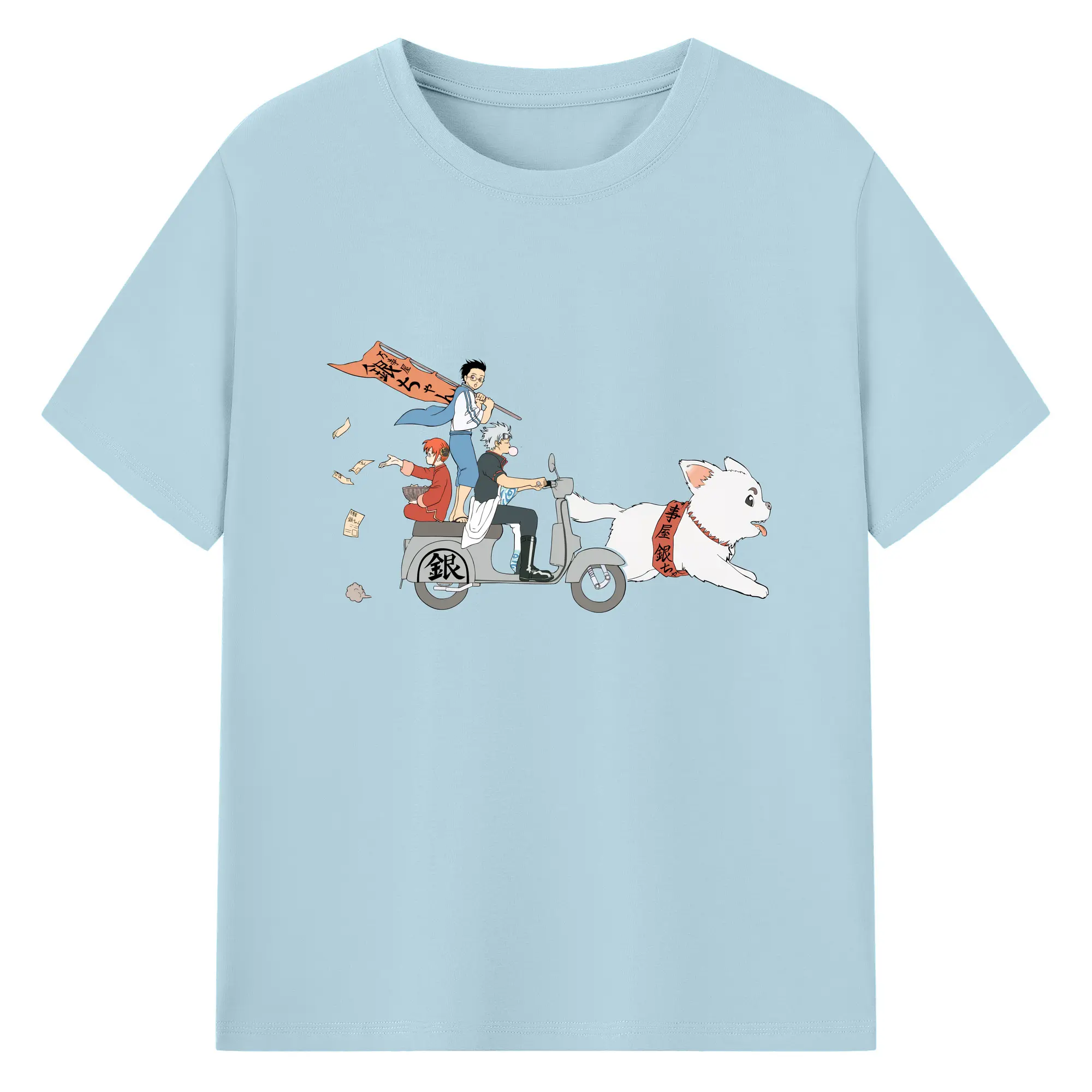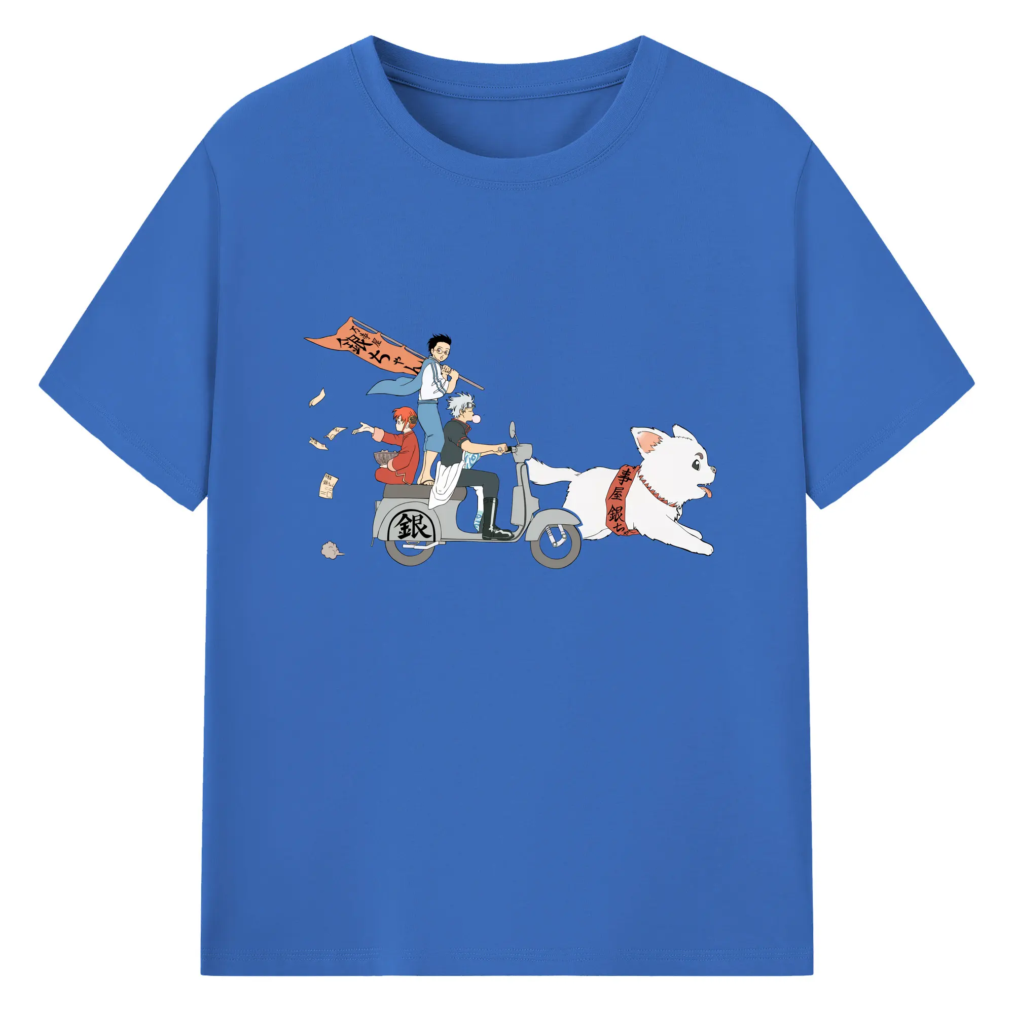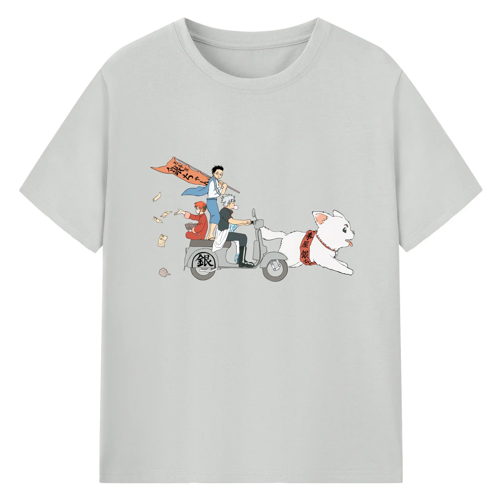 銀魂 グッズ 坂田 銀時 - 綿100% 半袖Tシャツ ・ バックプリント ・ 快適 通気性 ・ 日常使い 散歩 スポーツ用