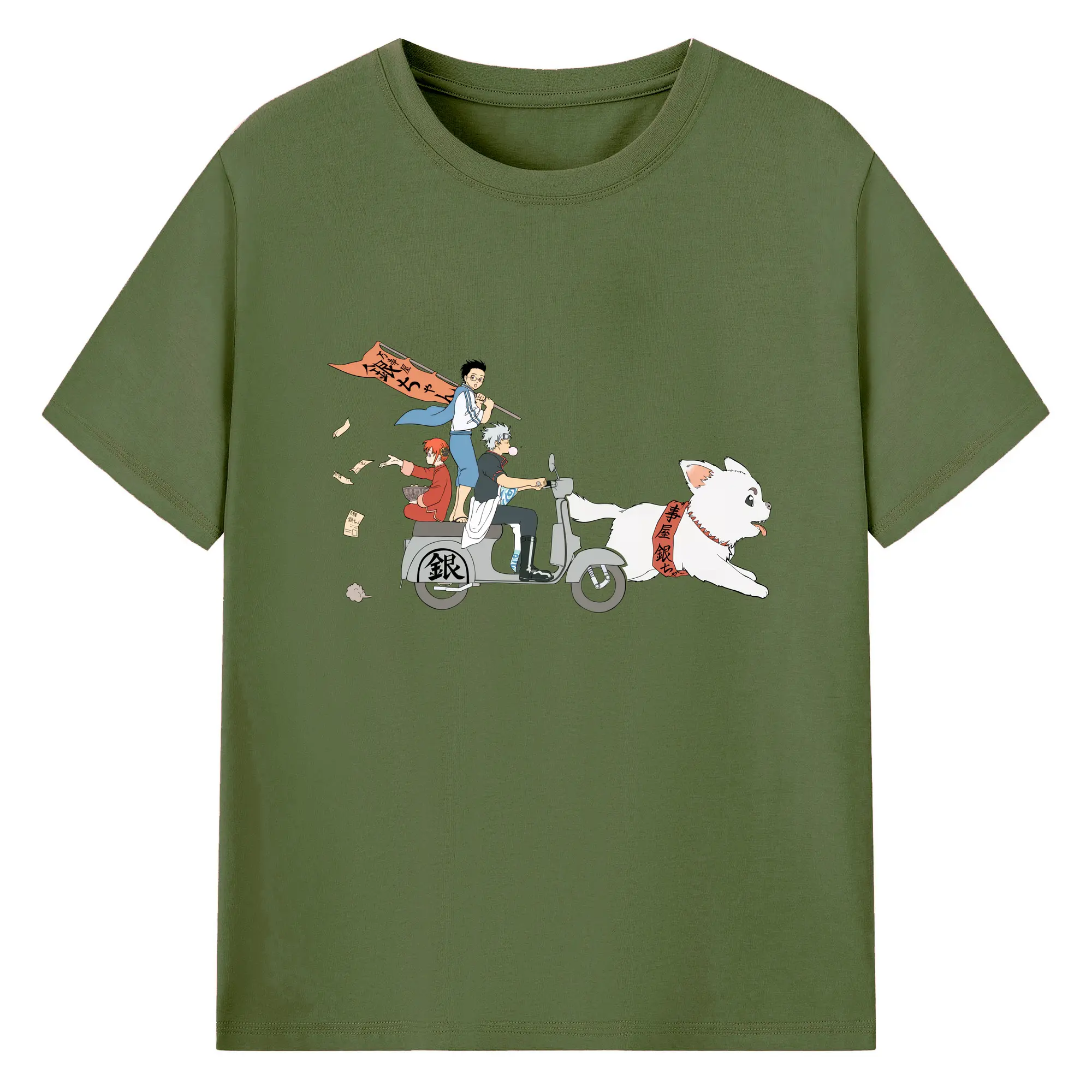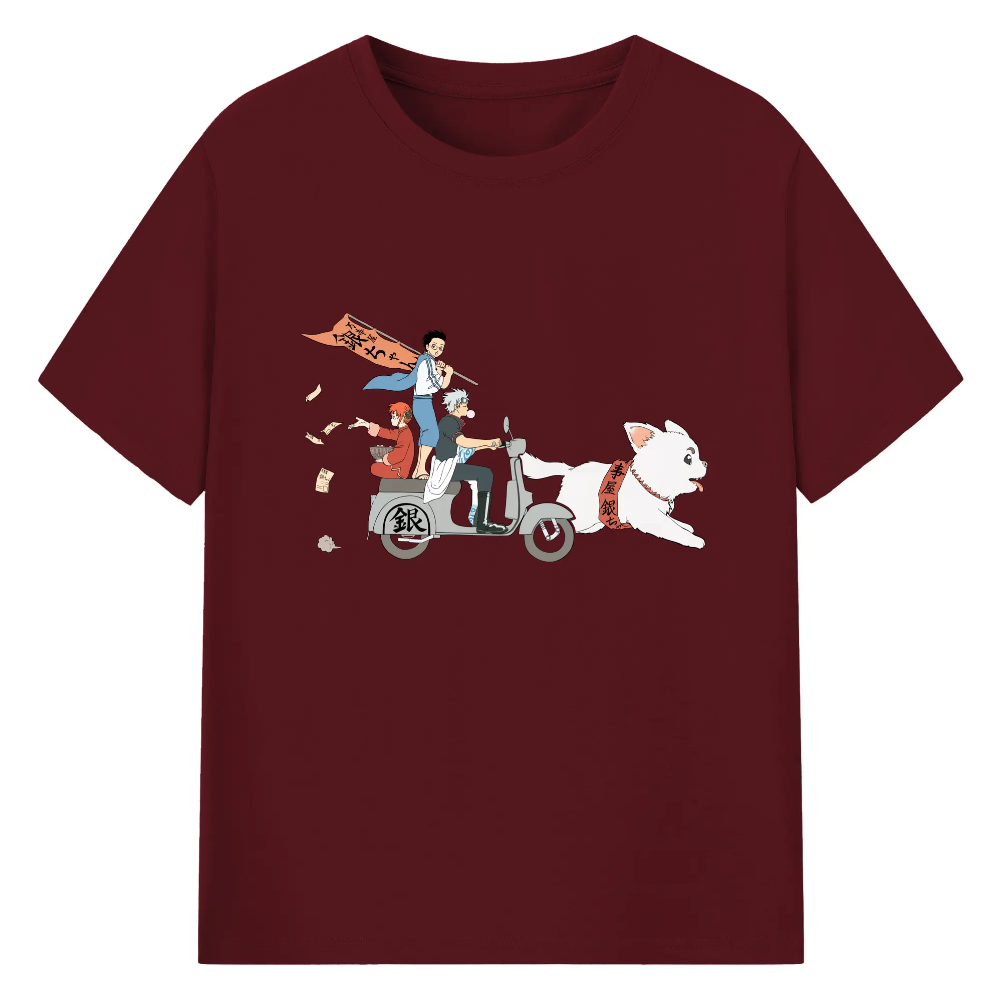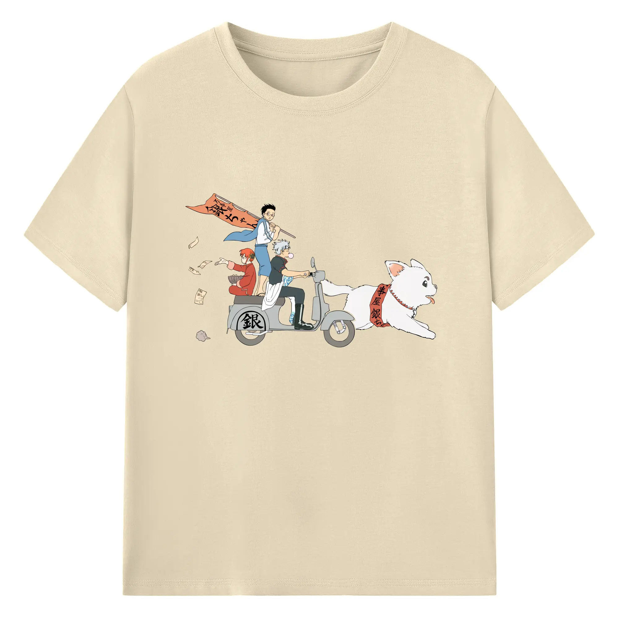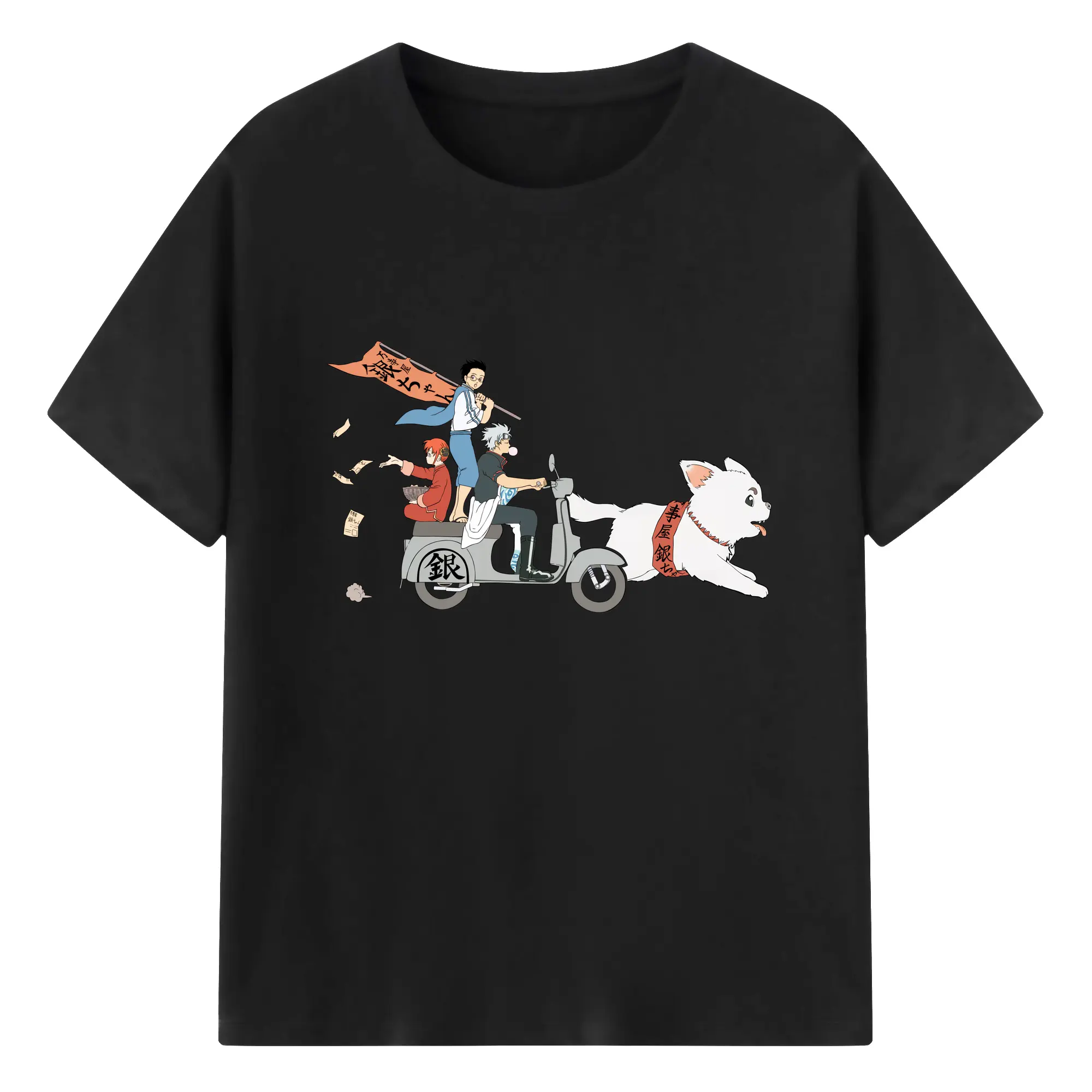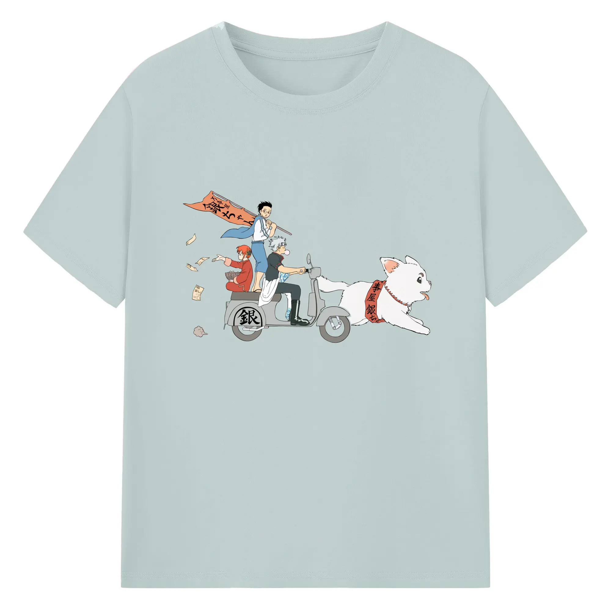 銀魂 グッズ 坂田 銀時 - 綿100% 半袖Tシャツ ・ バックプリント ・ 快適 通気性 ・ 日常使い 散歩 スポーツ用