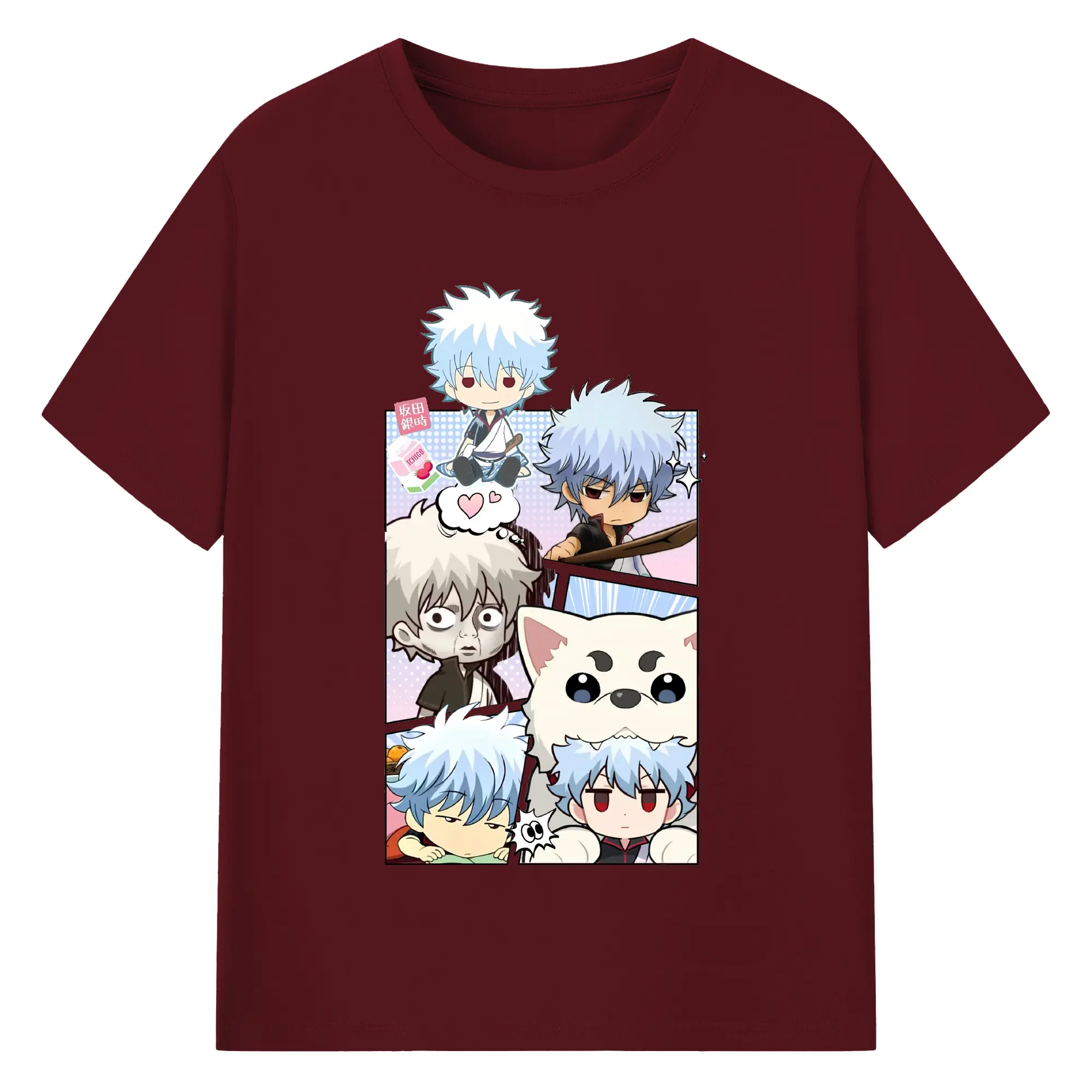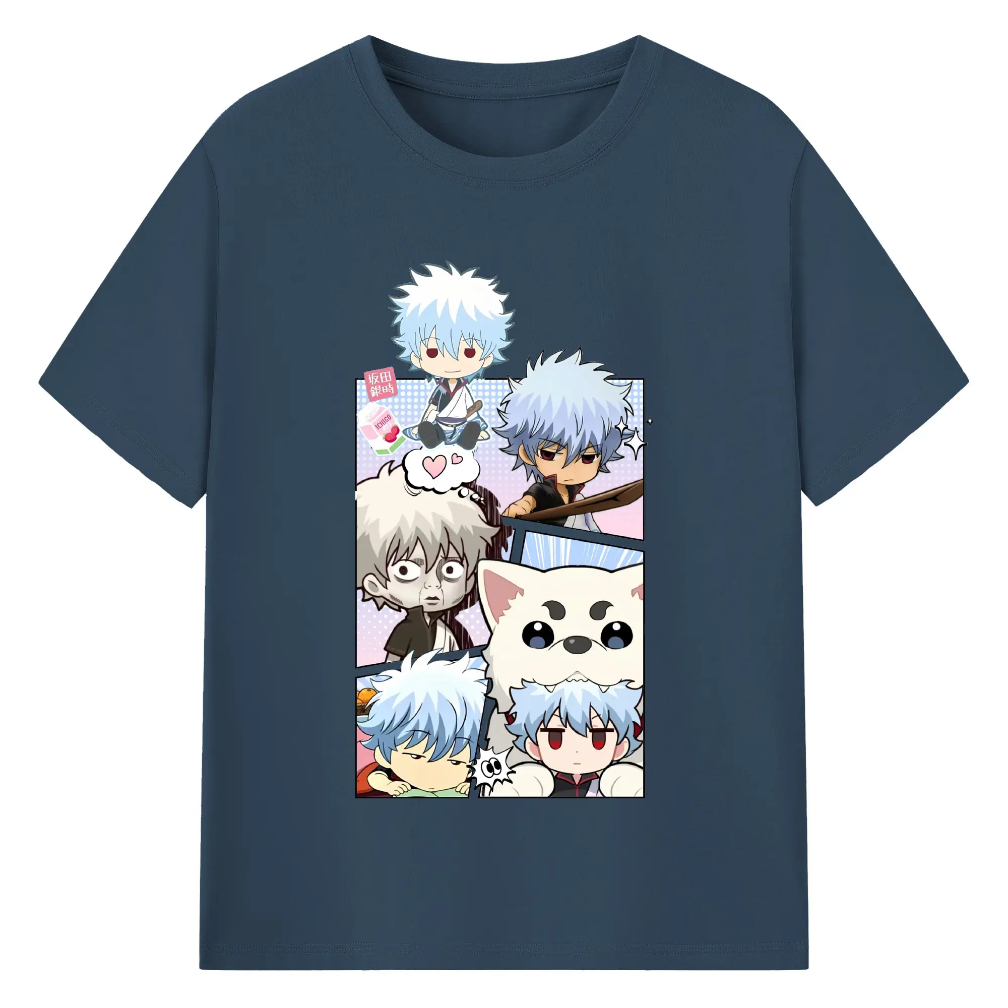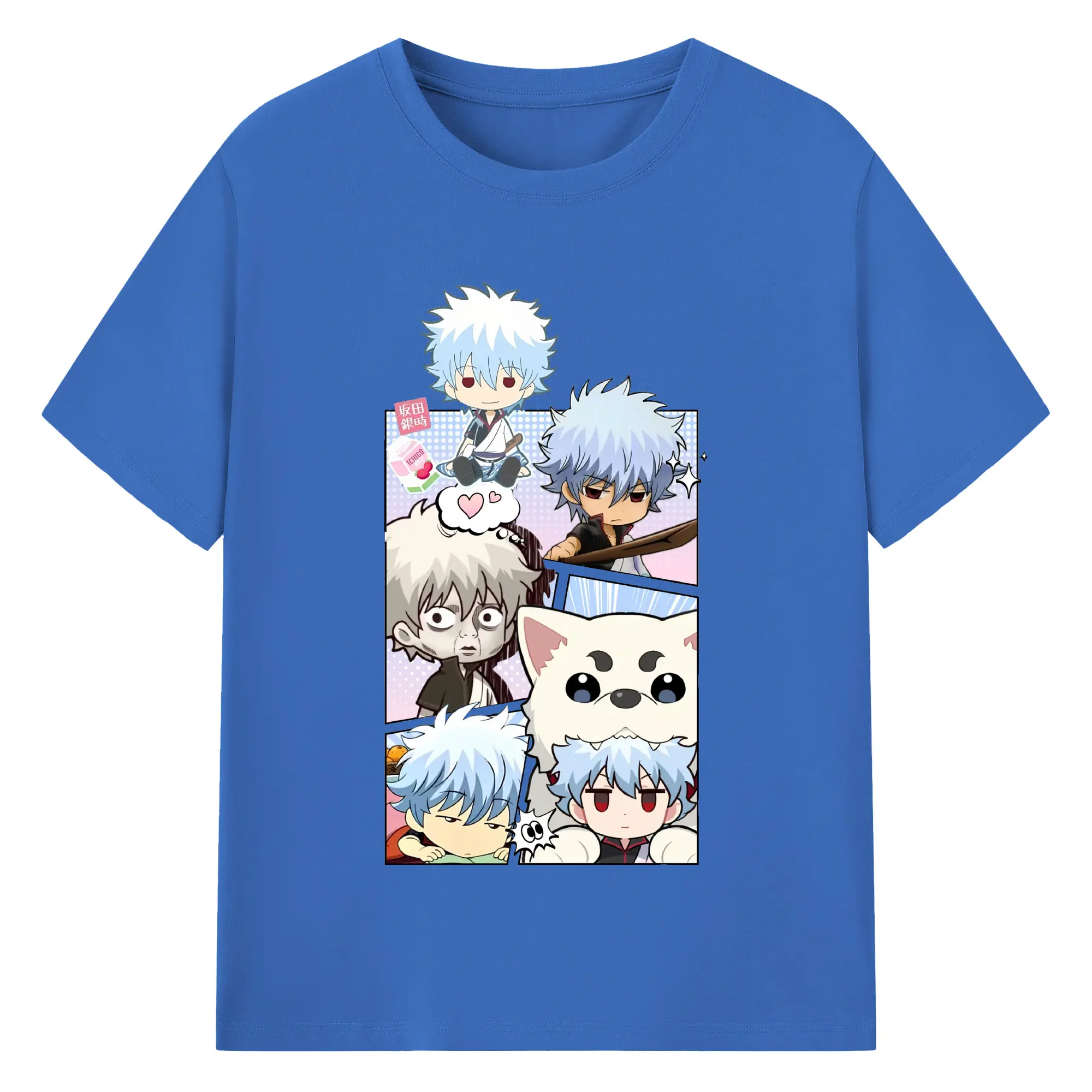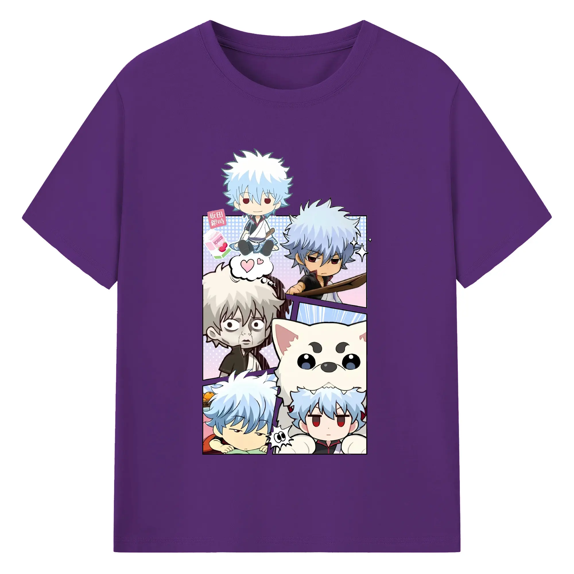 銀魂 グッズ 坂田 銀時 - 綿100% 半袖Tシャツ ・ バックプリント ・ 快適 通気性 ・ 日常使い 散歩 スポーツ用