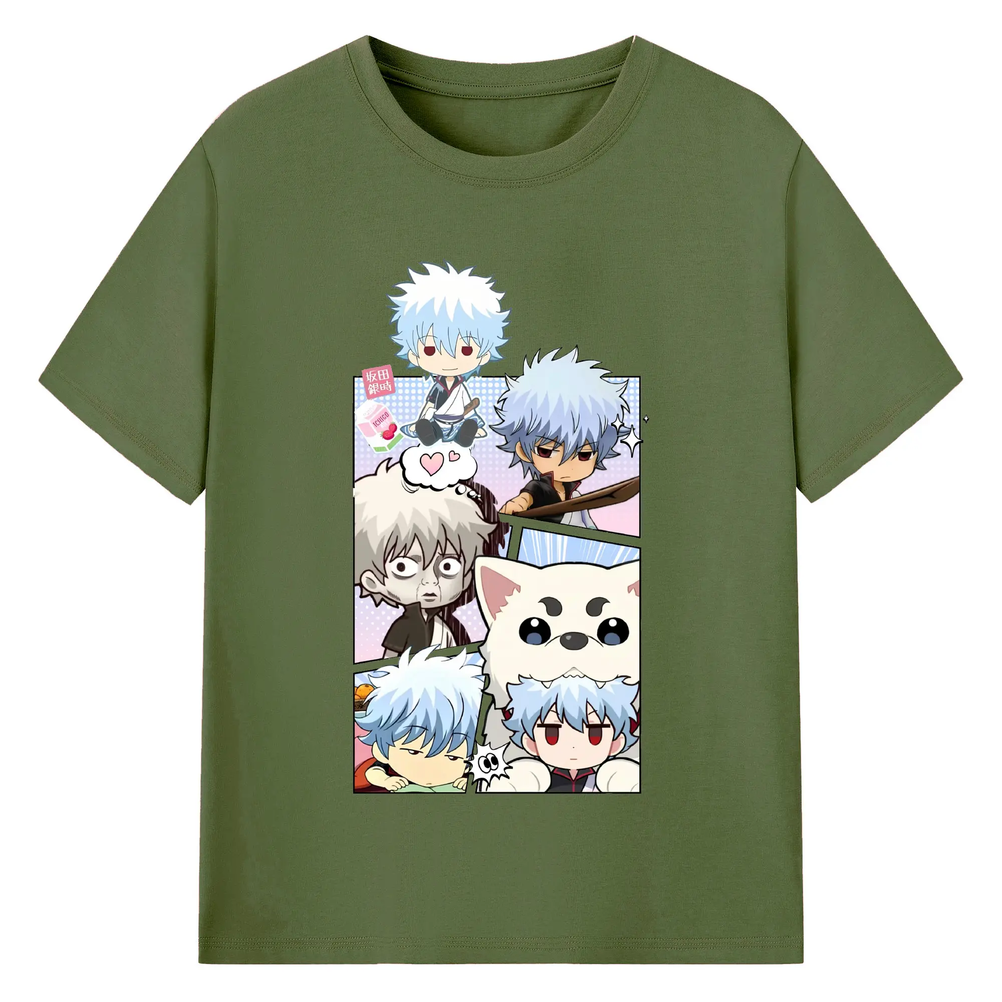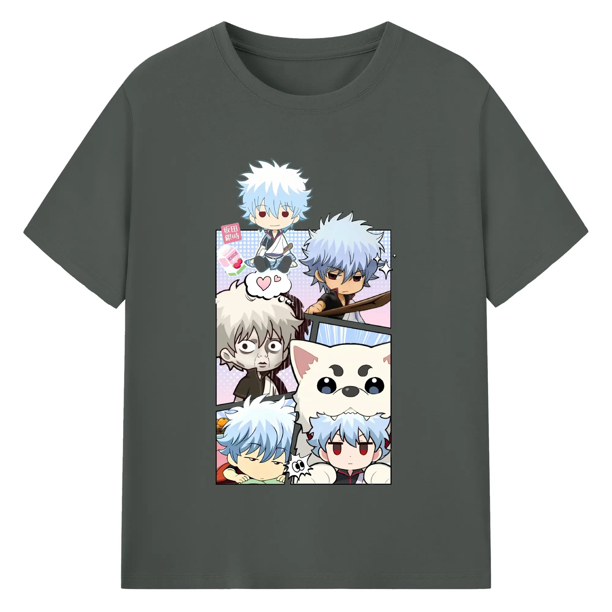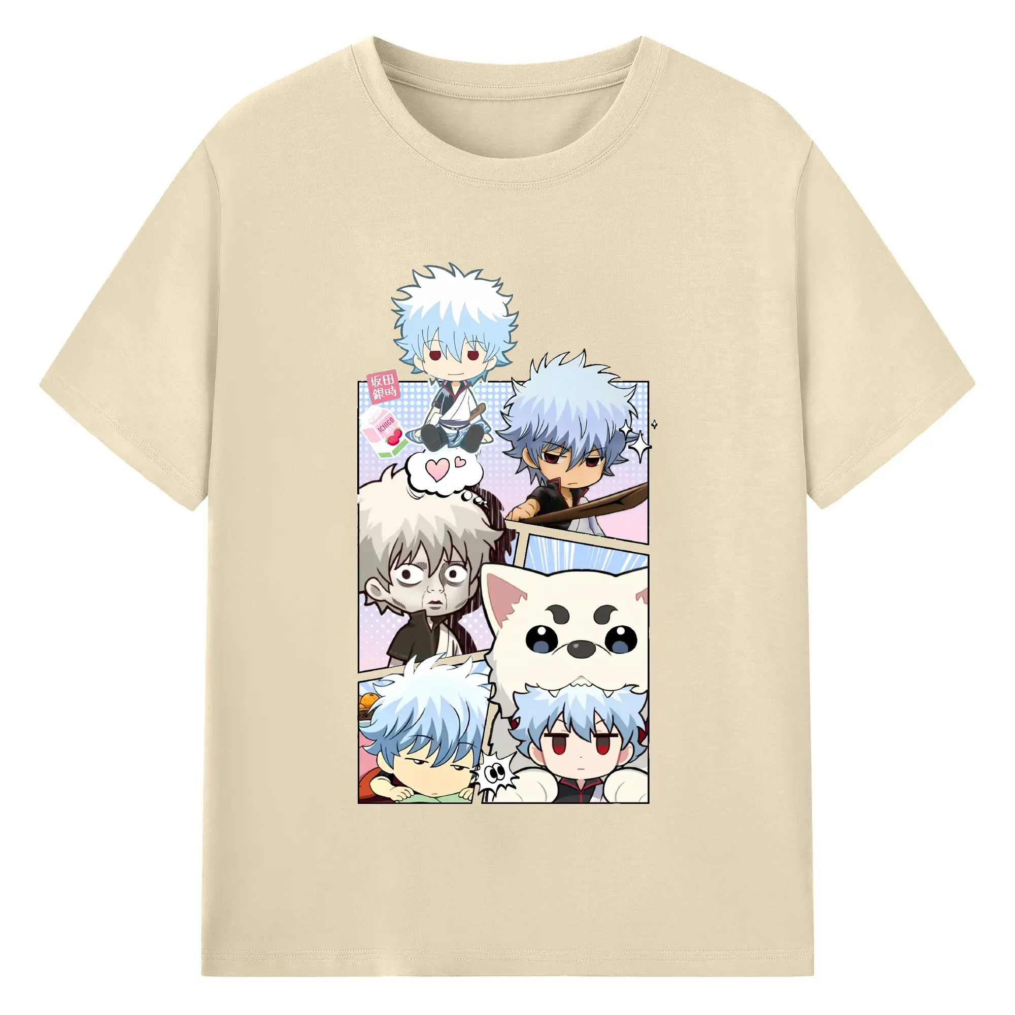 銀魂 グッズ 坂田 銀時 - 綿100% 半袖Tシャツ ・ バックプリント ・ 快適 通気性 ・ 日常使い 散歩 スポーツ用
