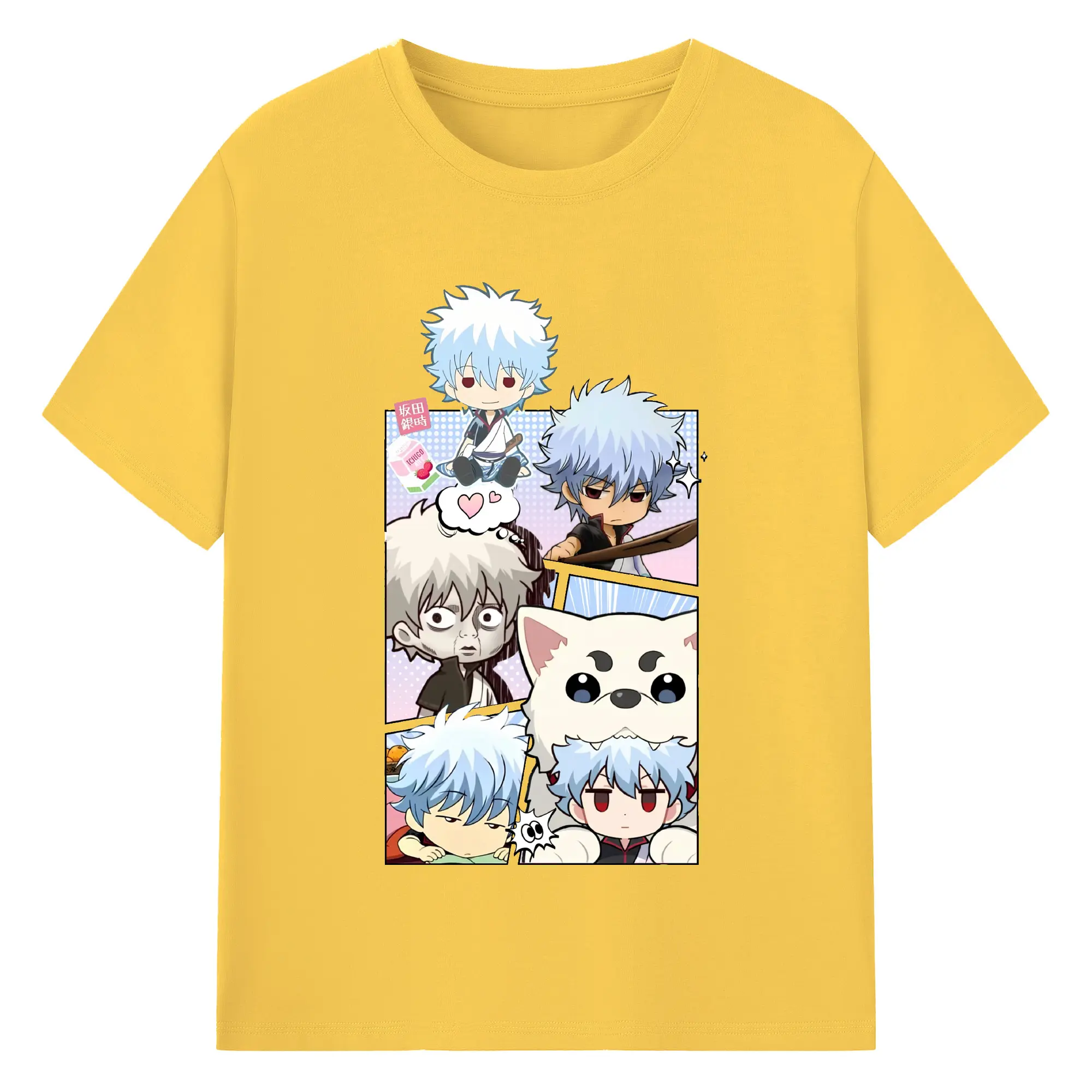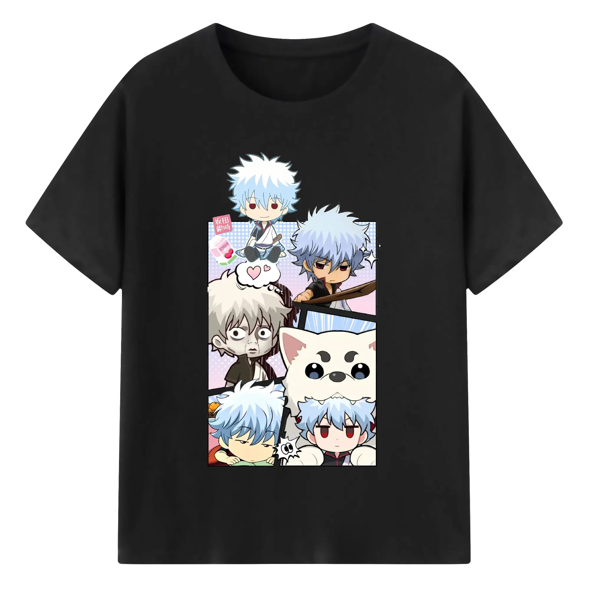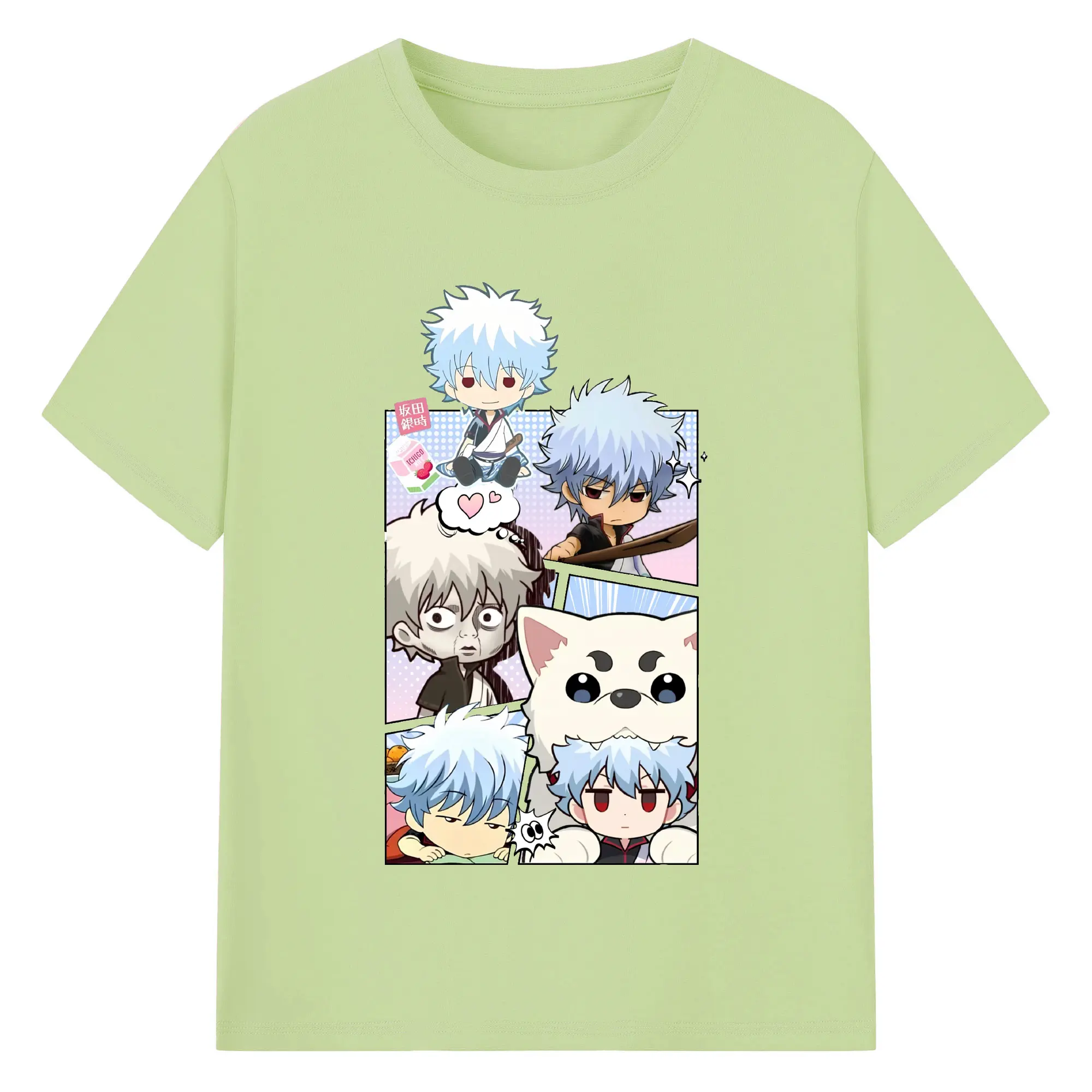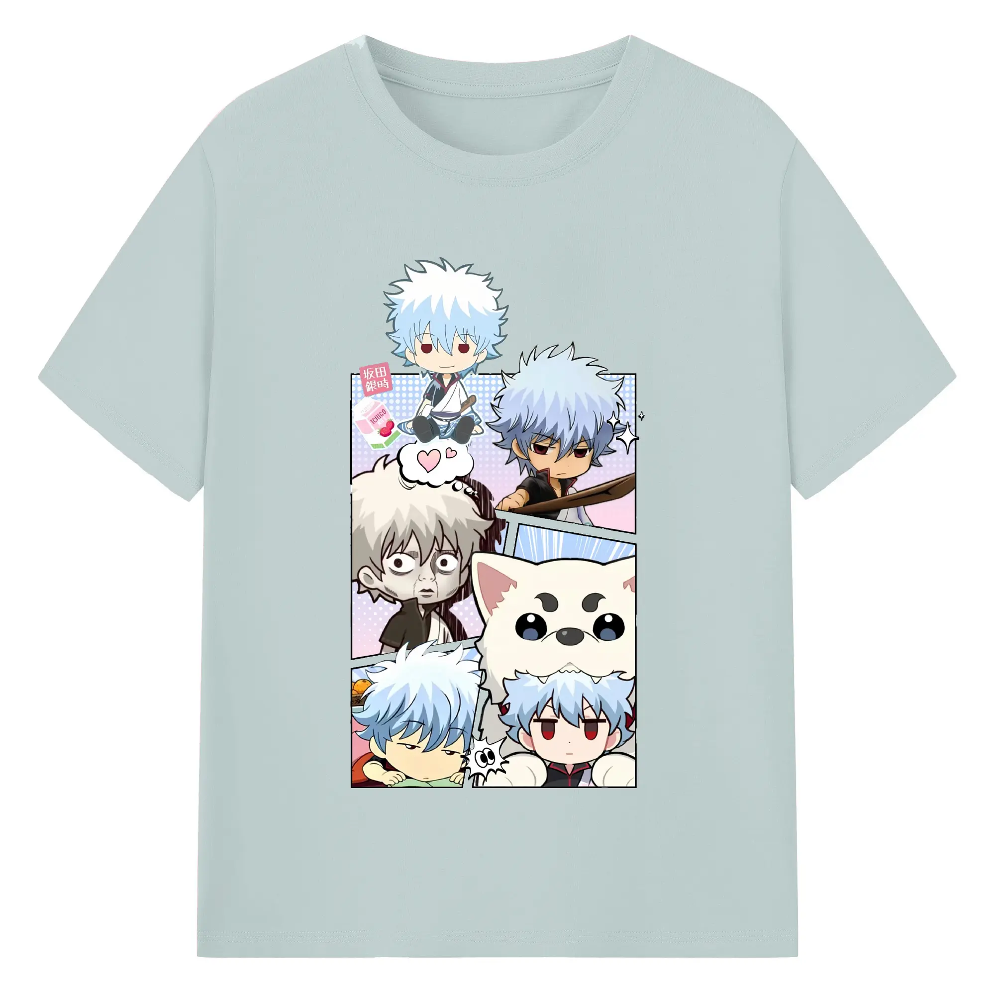 銀魂 グッズ 坂田 銀時 - 綿100% 半袖Tシャツ ・ バックプリント ・ 快適 通気性 ・ 日常使い 散歩 スポーツ用