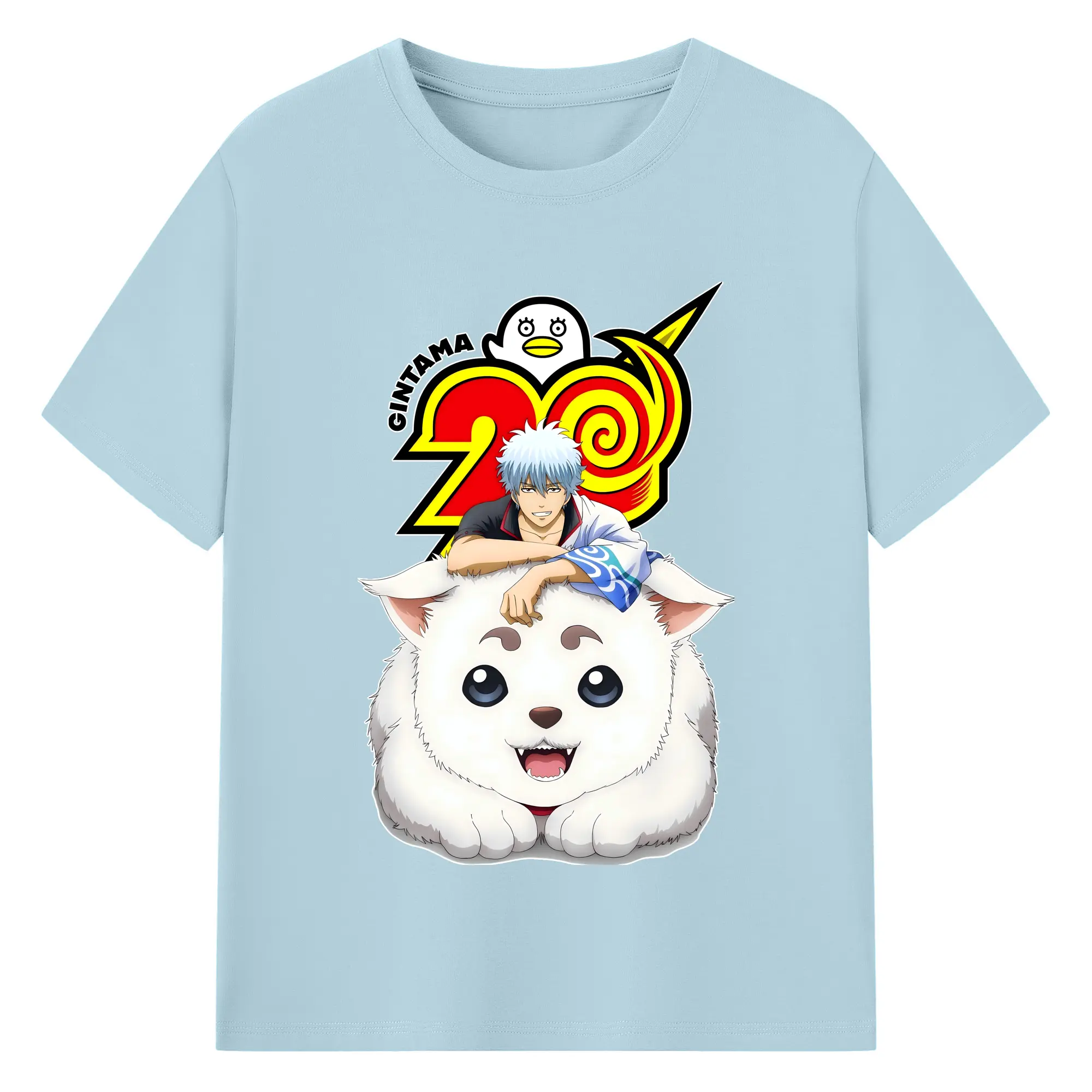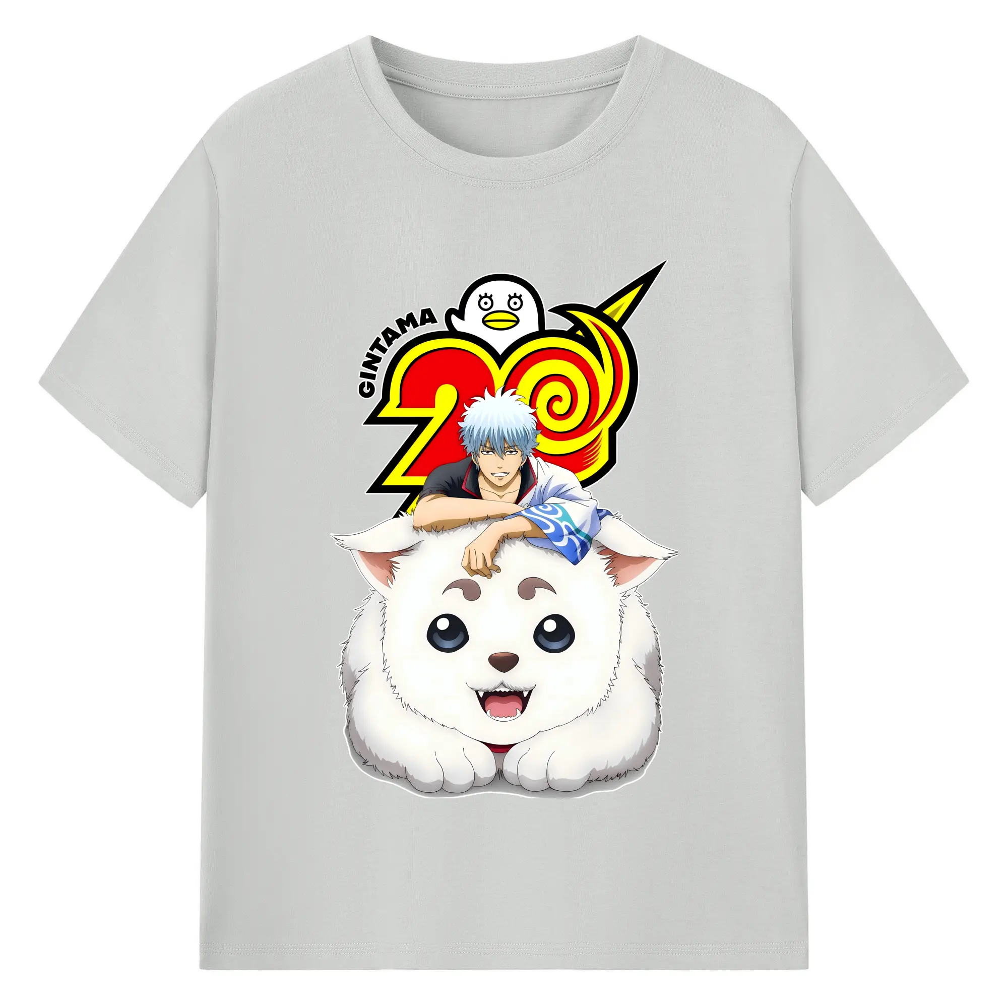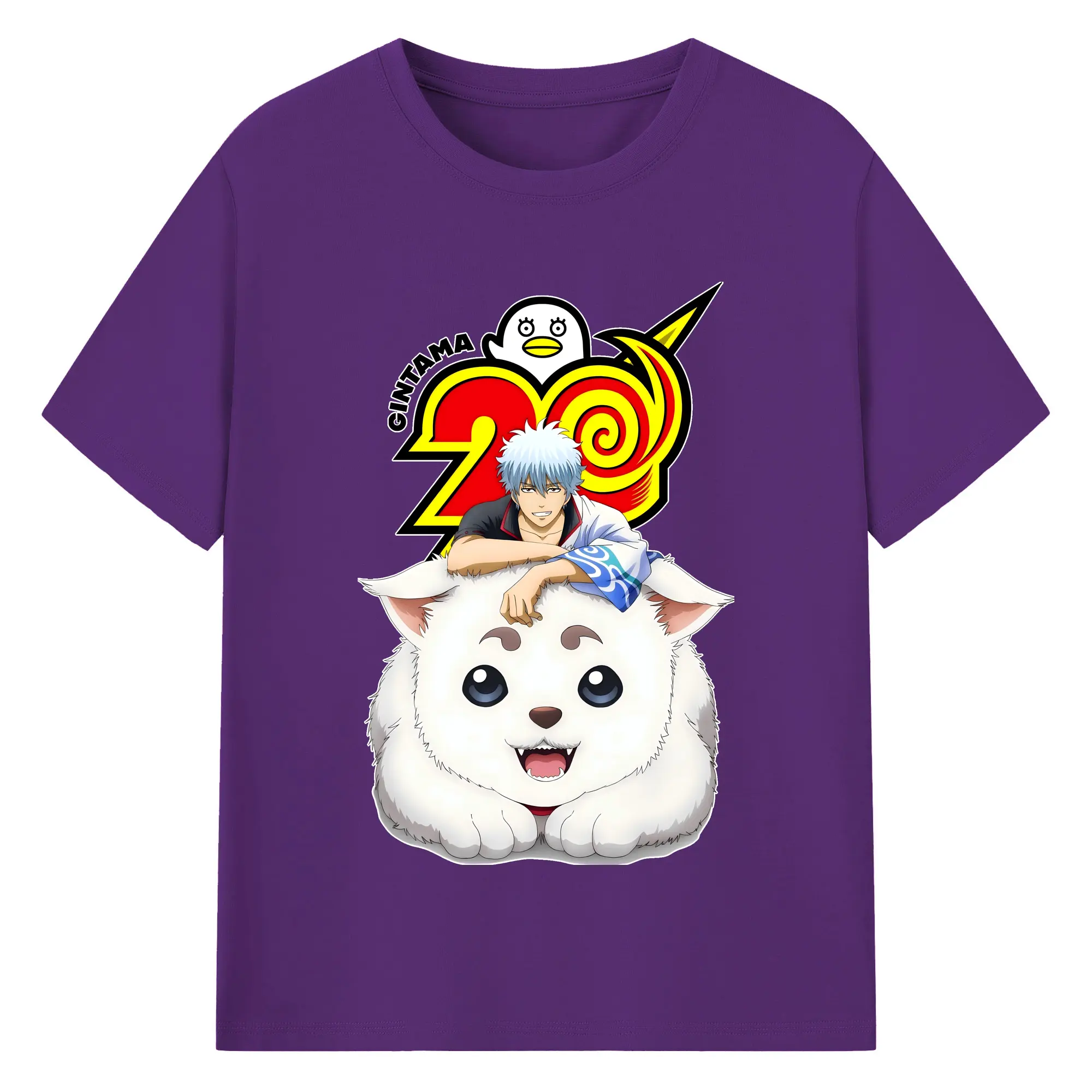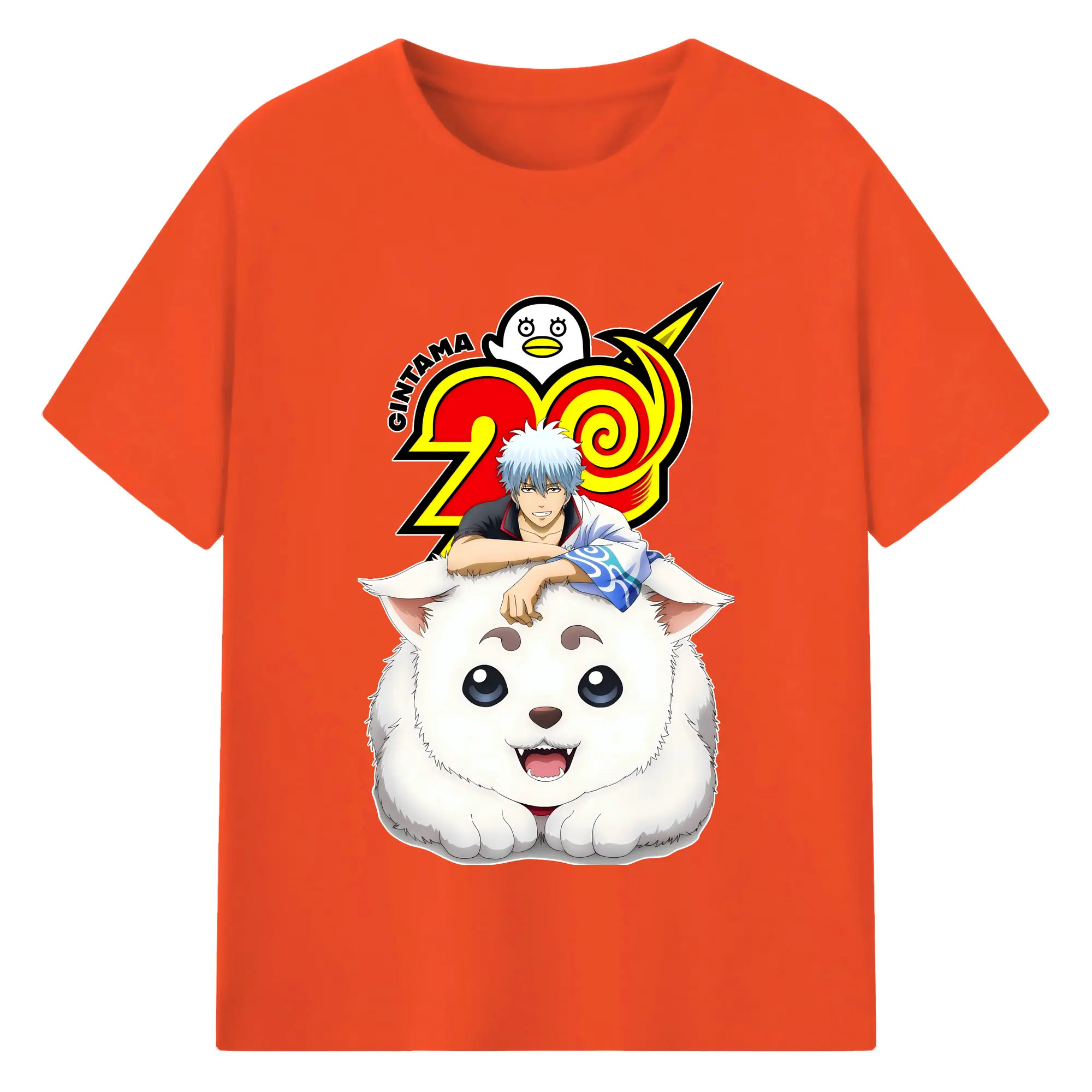 銀魂 グッズ 坂田 銀時 - 綿100% 半袖Tシャツ ・ バックプリント ・ 快適 通気性 ・ 日常使い 散歩 スポーツ用