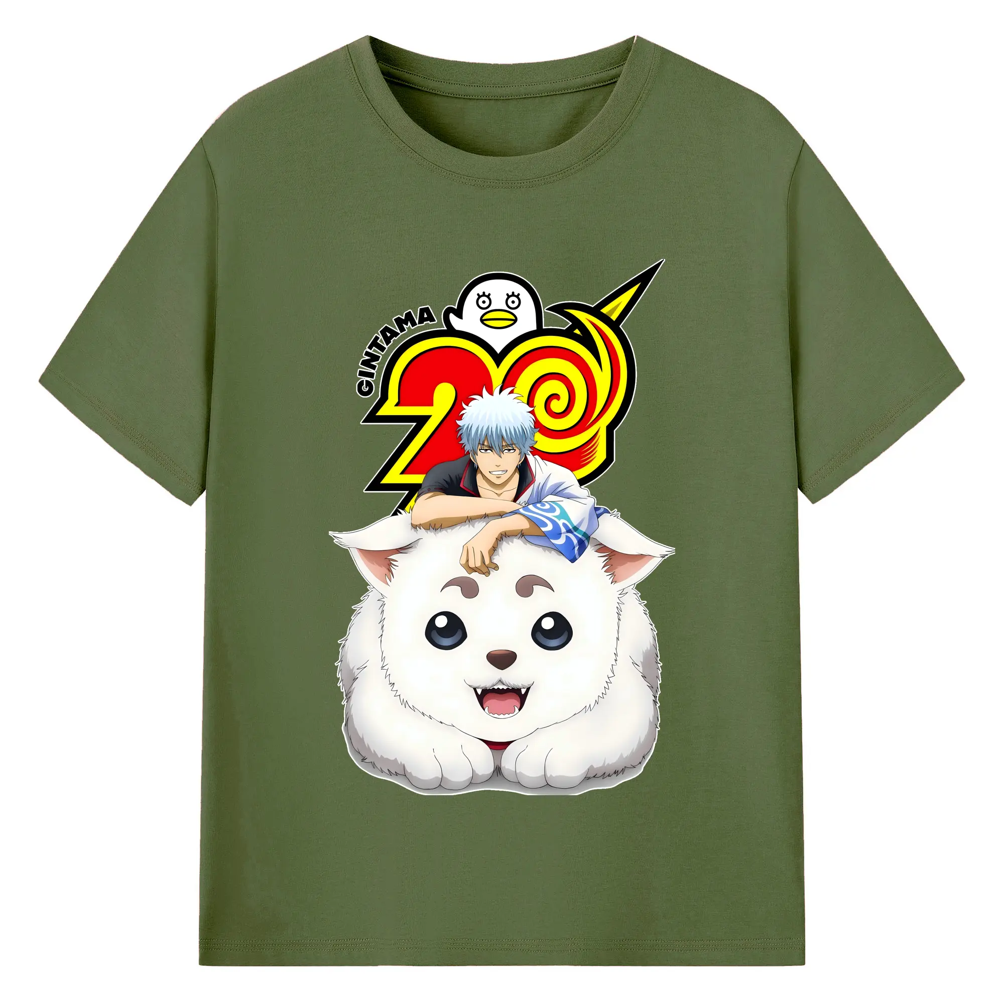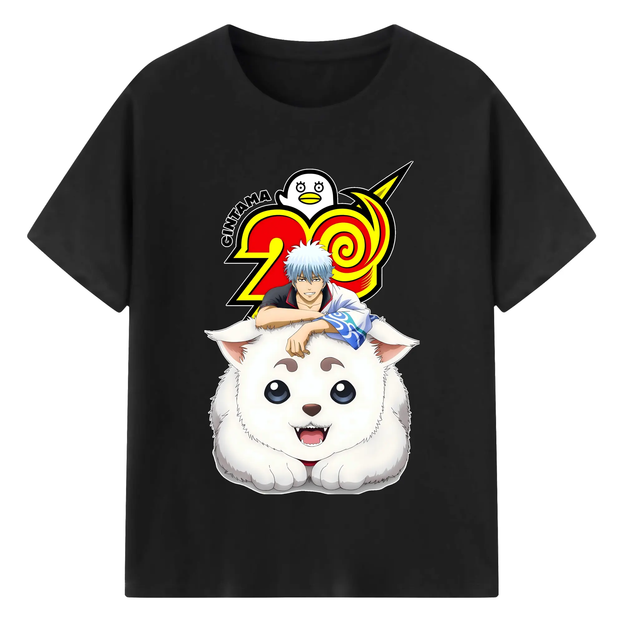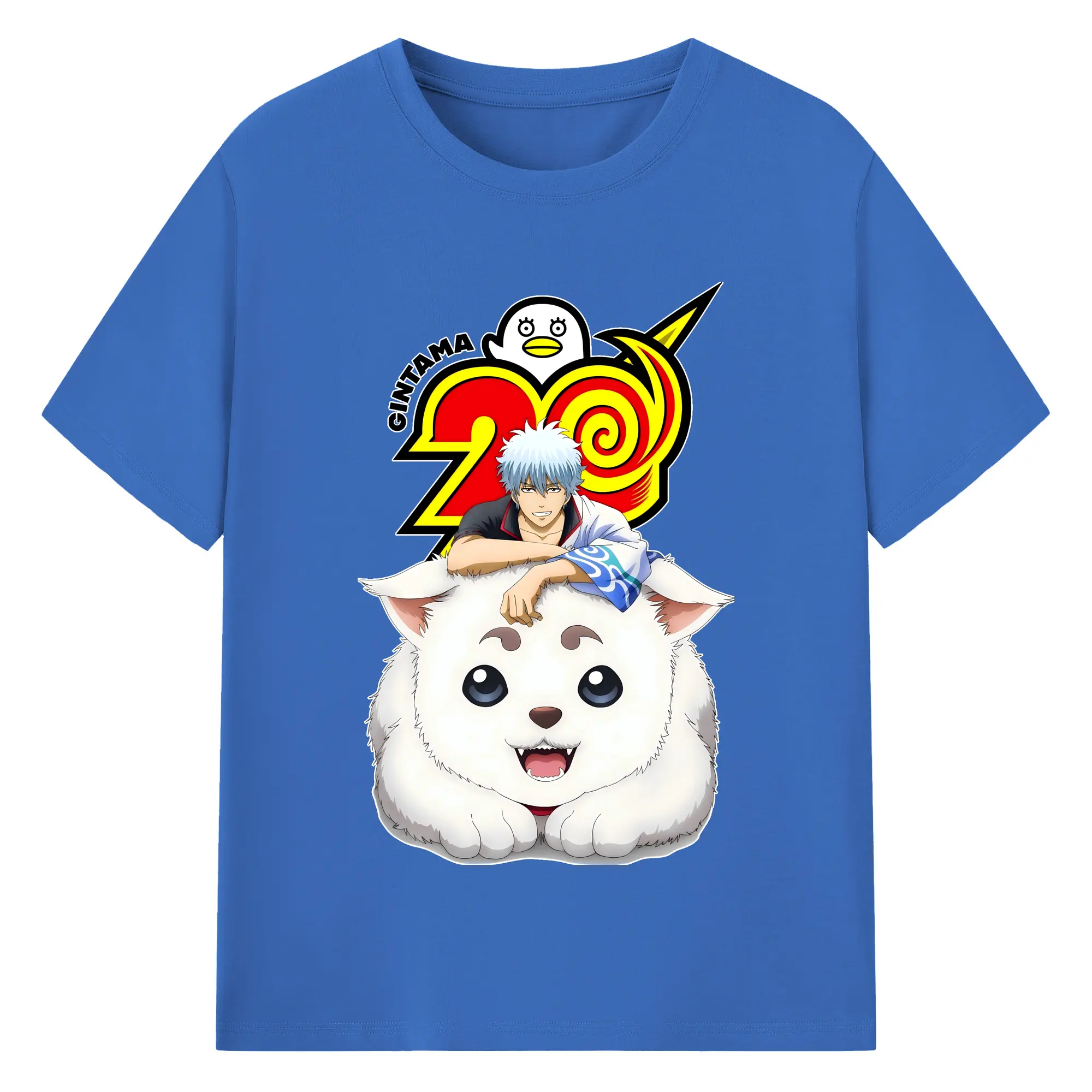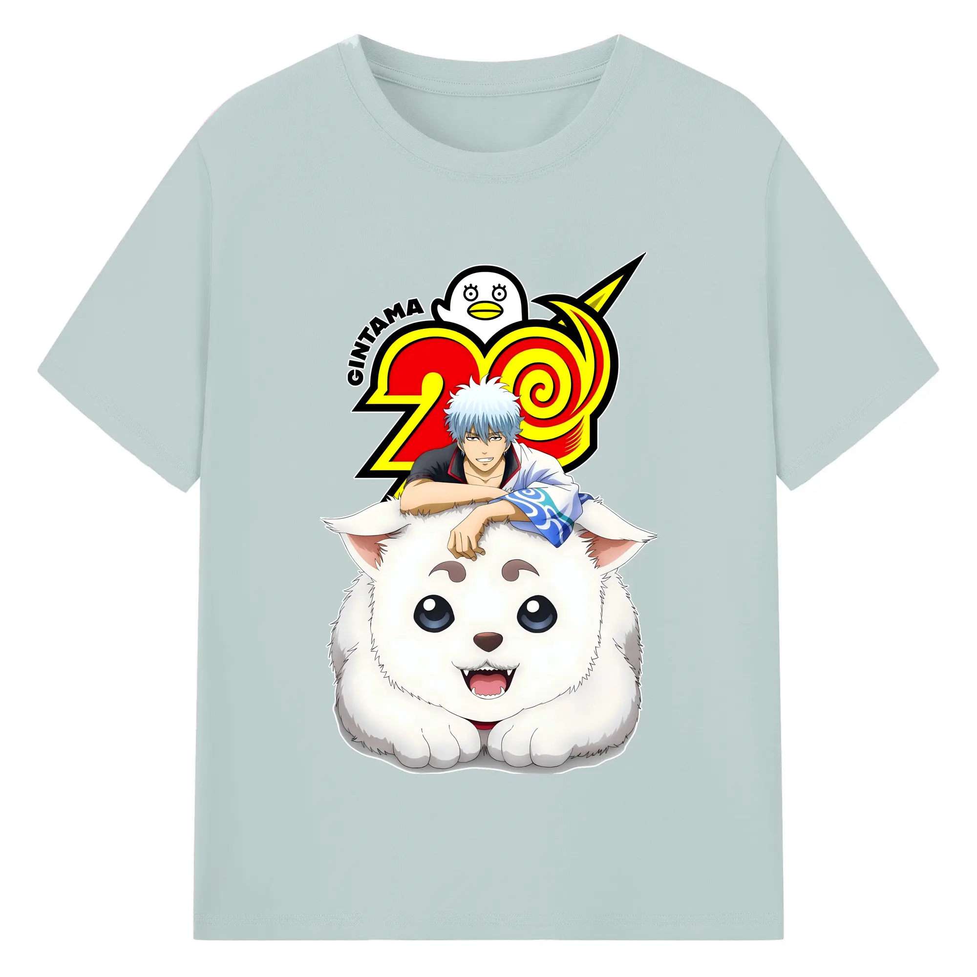 銀魂 グッズ 坂田 銀時 - 綿100% 半袖Tシャツ ・ バックプリント ・ 快適 通気性 ・ 日常使い 散歩 スポーツ用