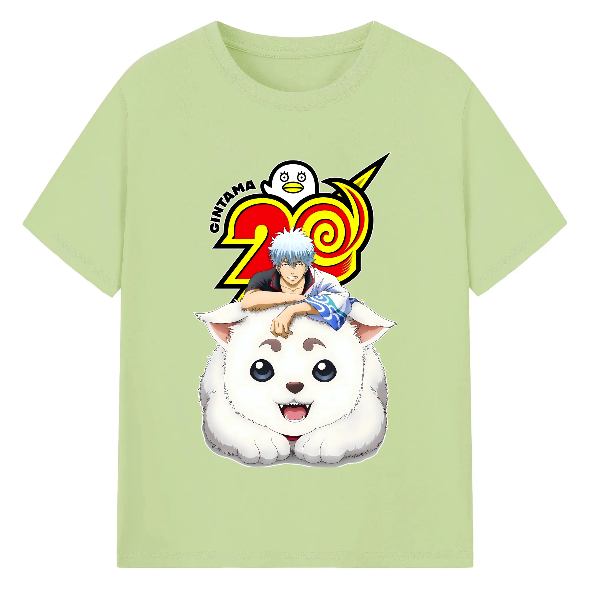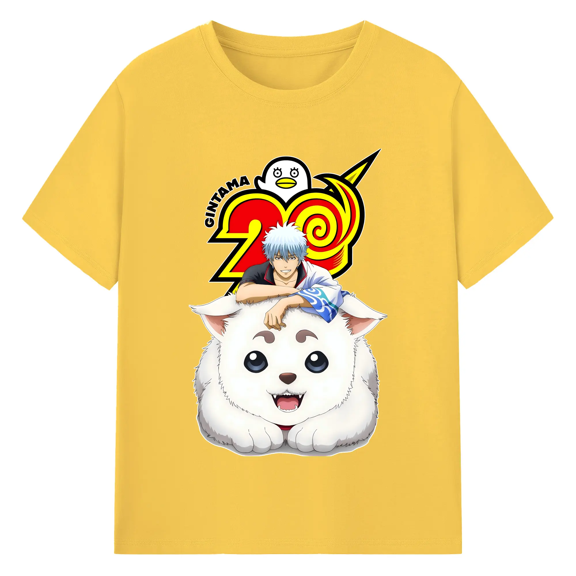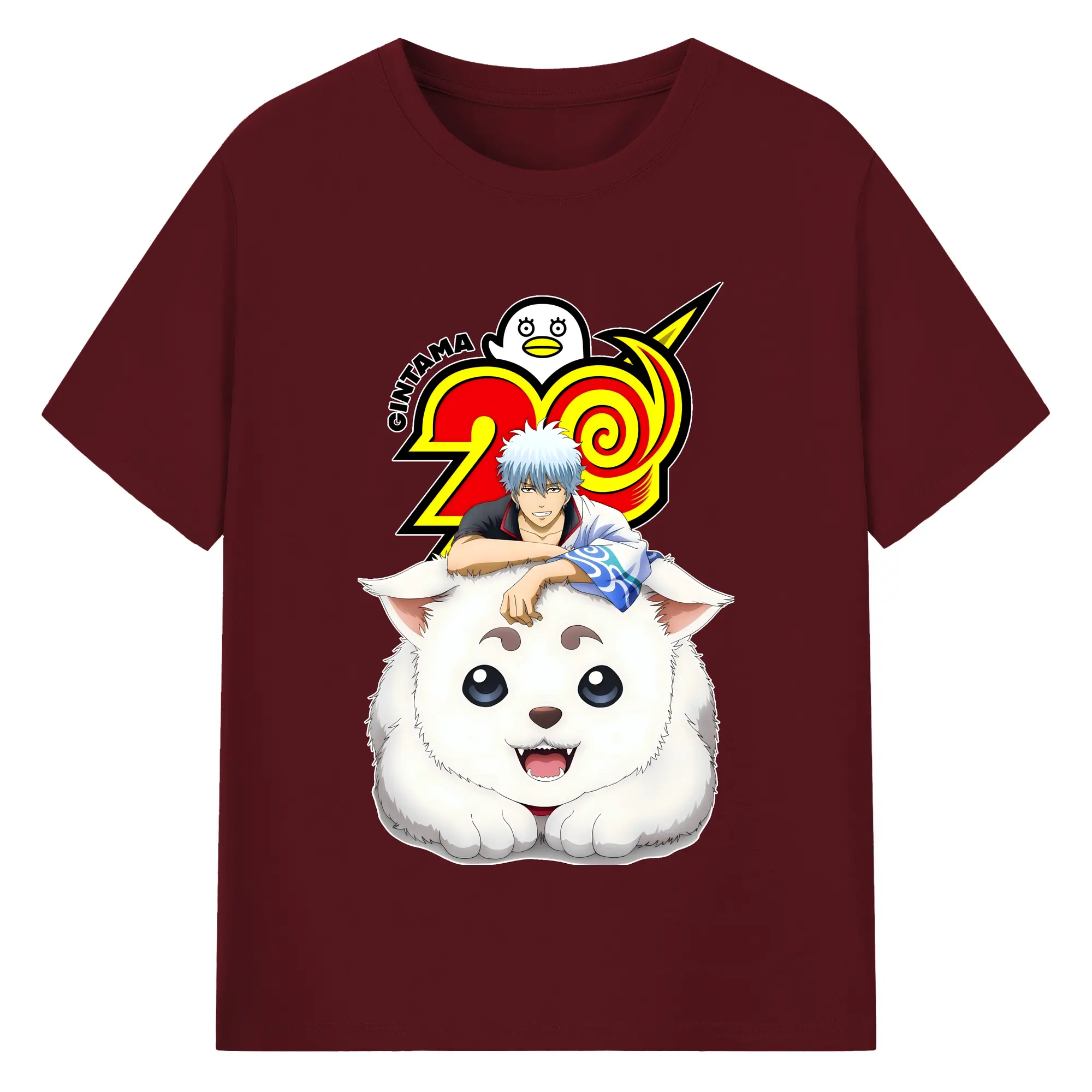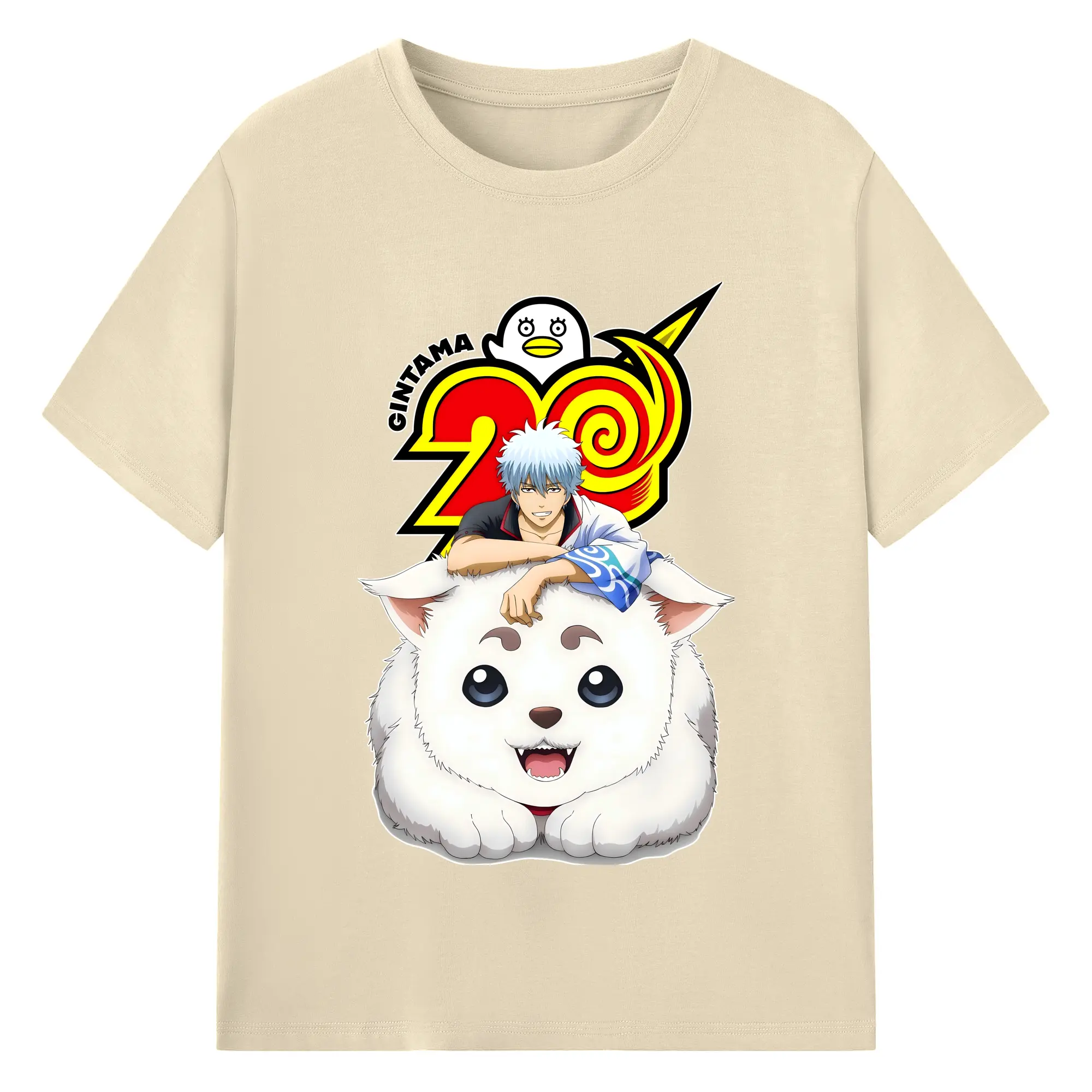 銀魂 グッズ 坂田 銀時 - 綿100% 半袖Tシャツ ・ バックプリント ・ 快適 通気性 ・ 日常使い 散歩 スポーツ用