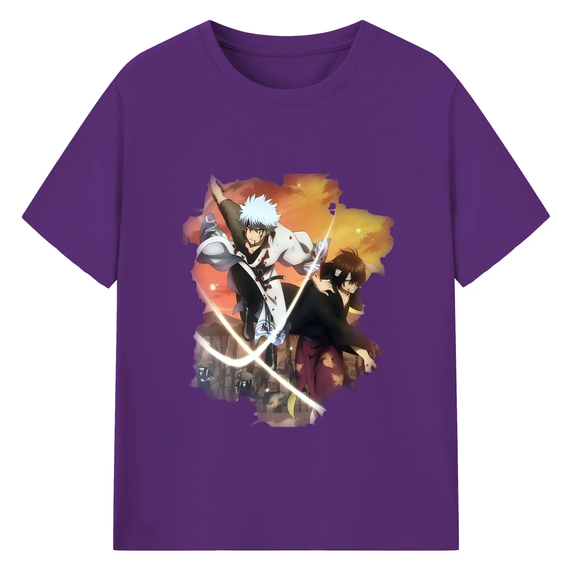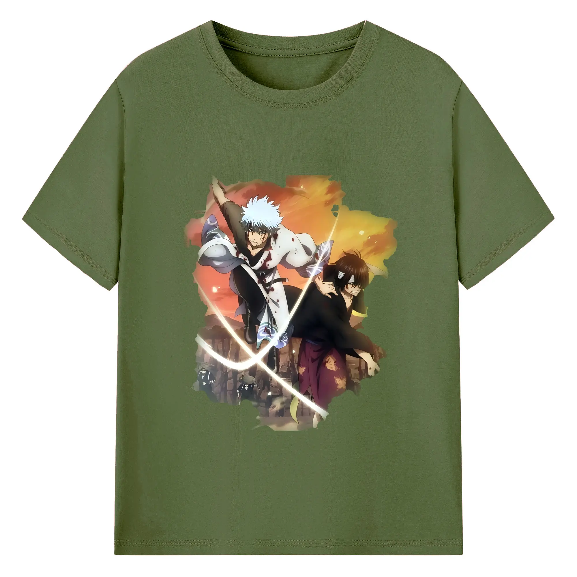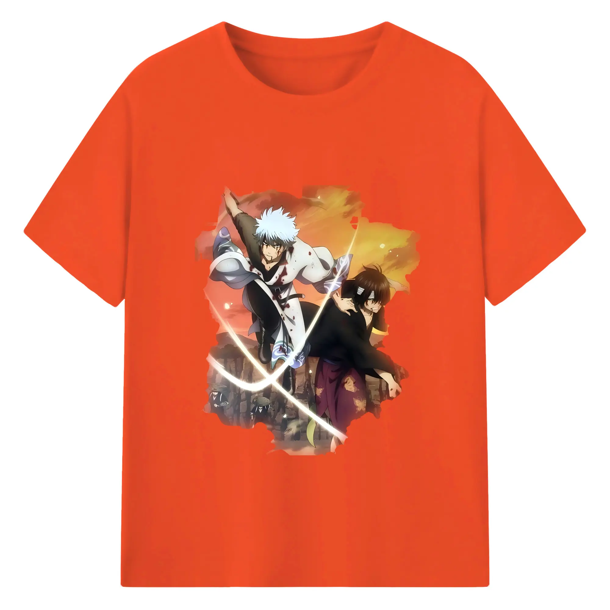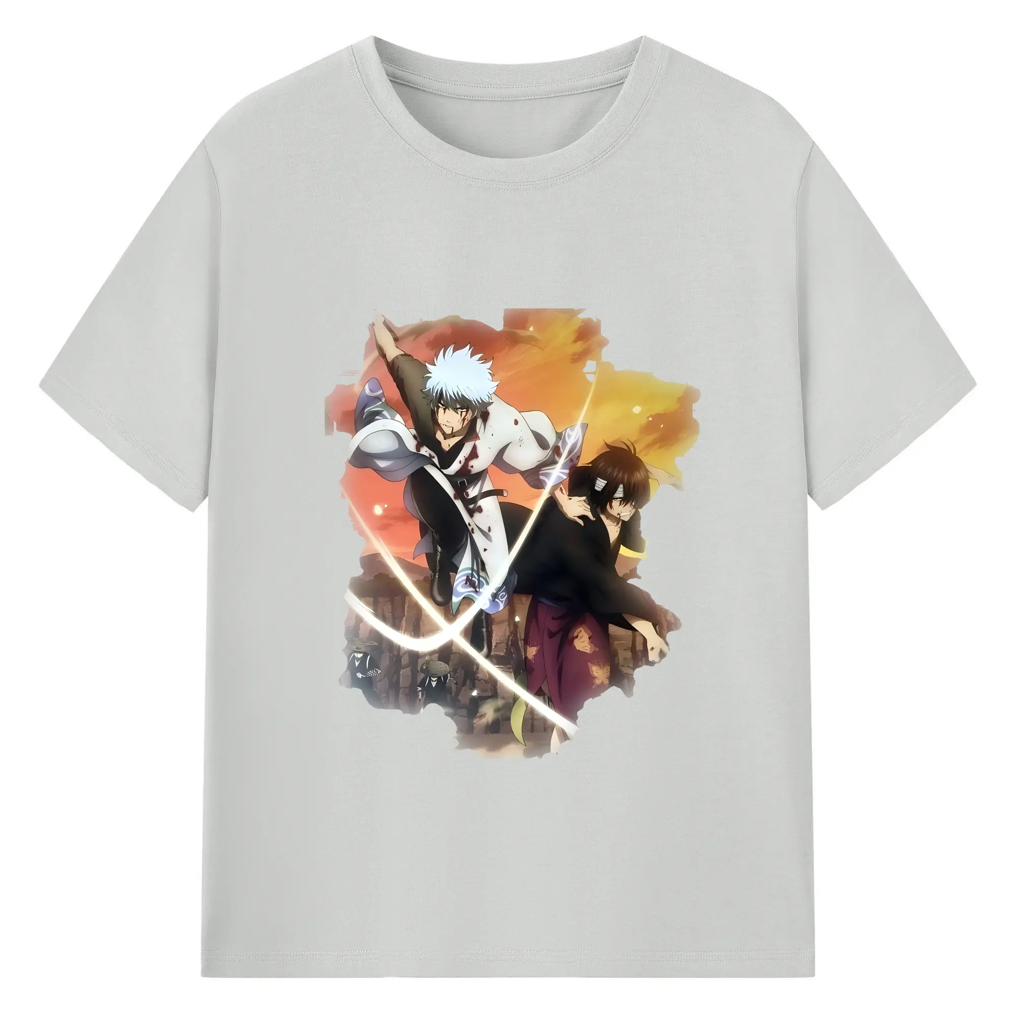 銀魂 グッズ 坂田 銀時 - 綿100% 半袖Tシャツ ・ バックプリント ・ 快適 通気性 ・ 日常使い 散歩 スポーツ用