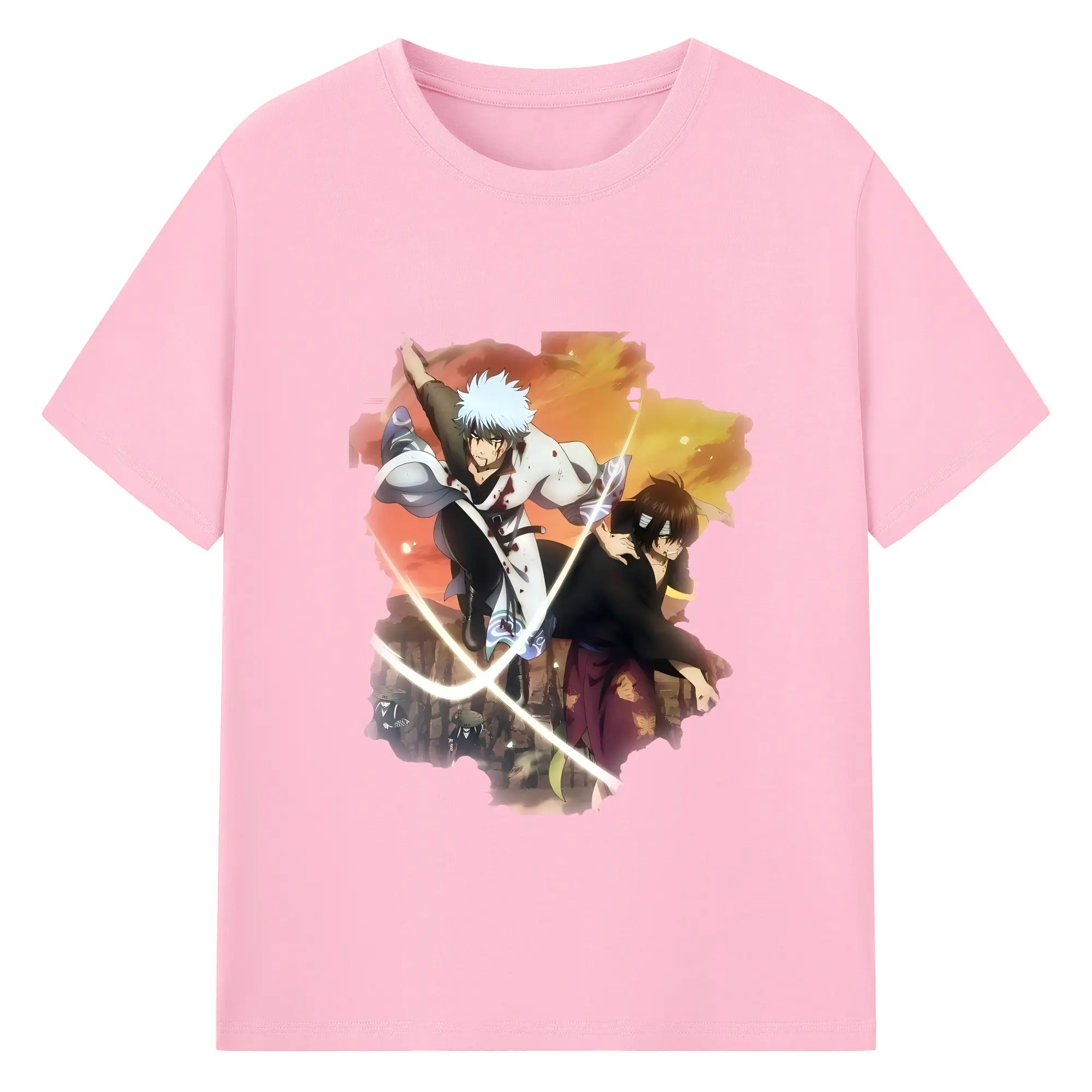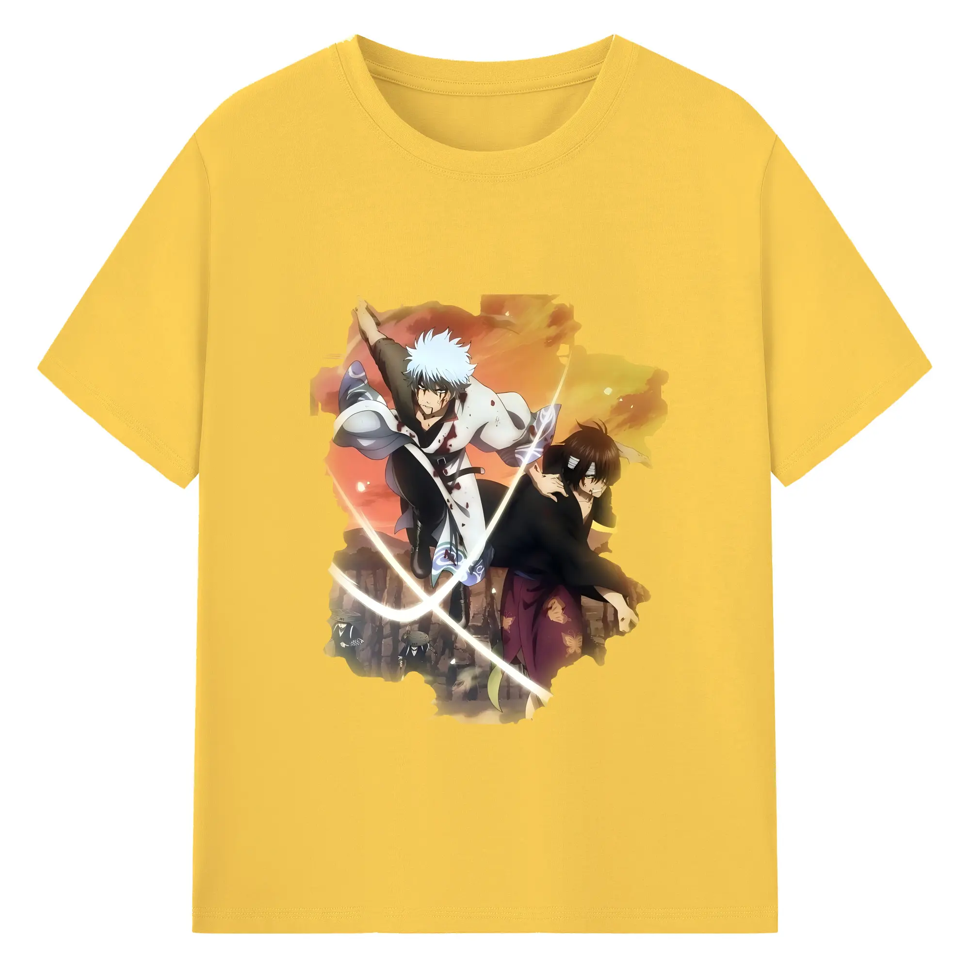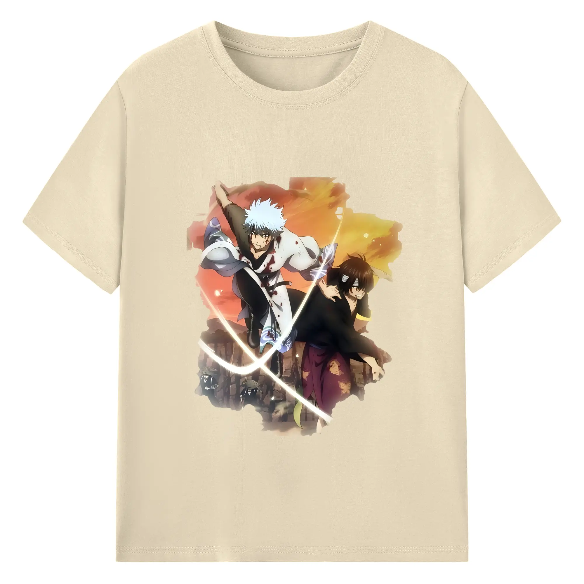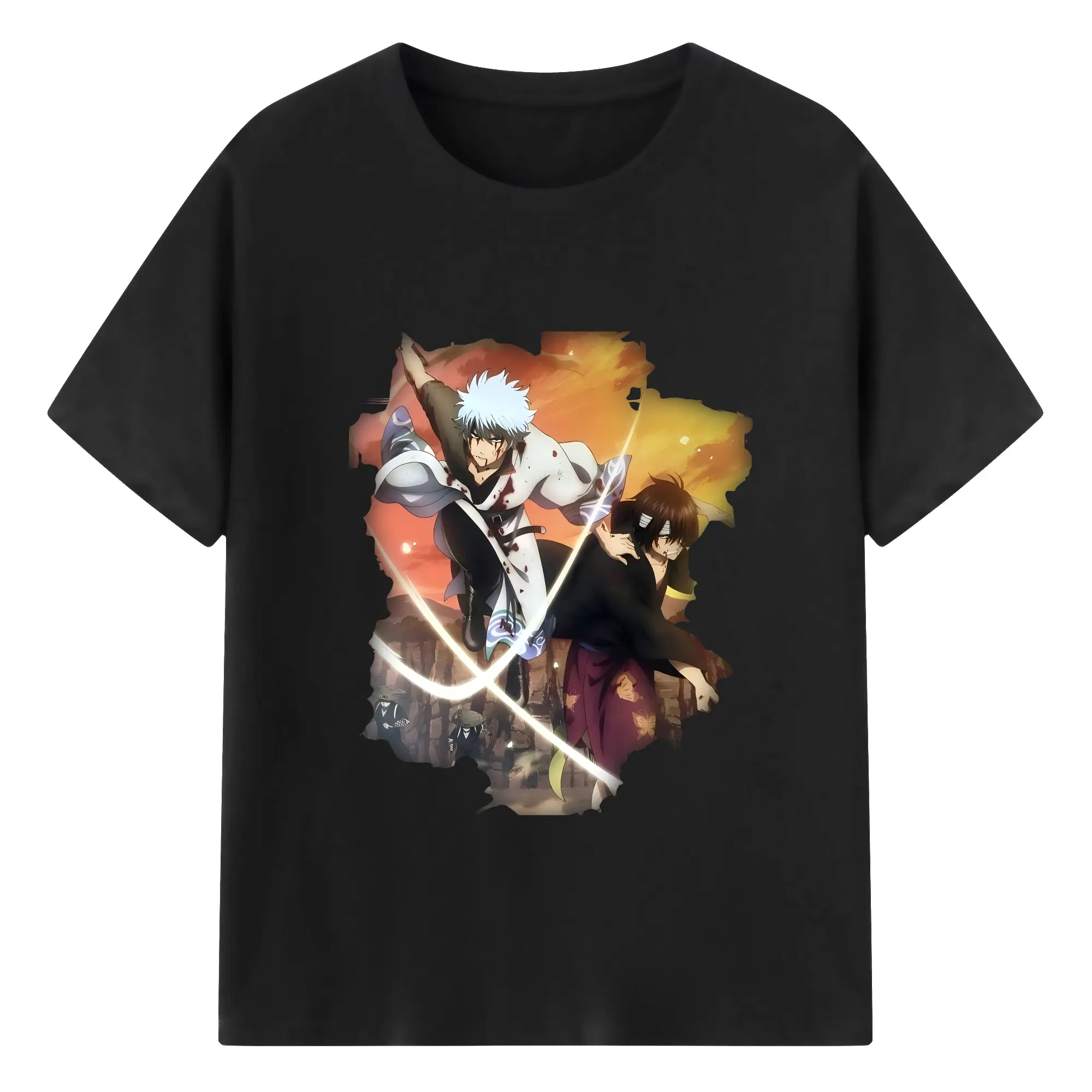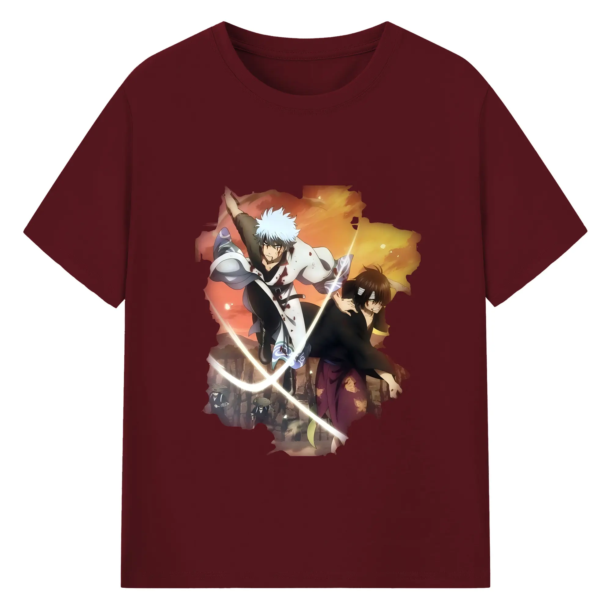 銀魂 グッズ 坂田 銀時 - 綿100% 半袖Tシャツ ・ バックプリント ・ 快適 通気性 ・ 日常使い 散歩 スポーツ用