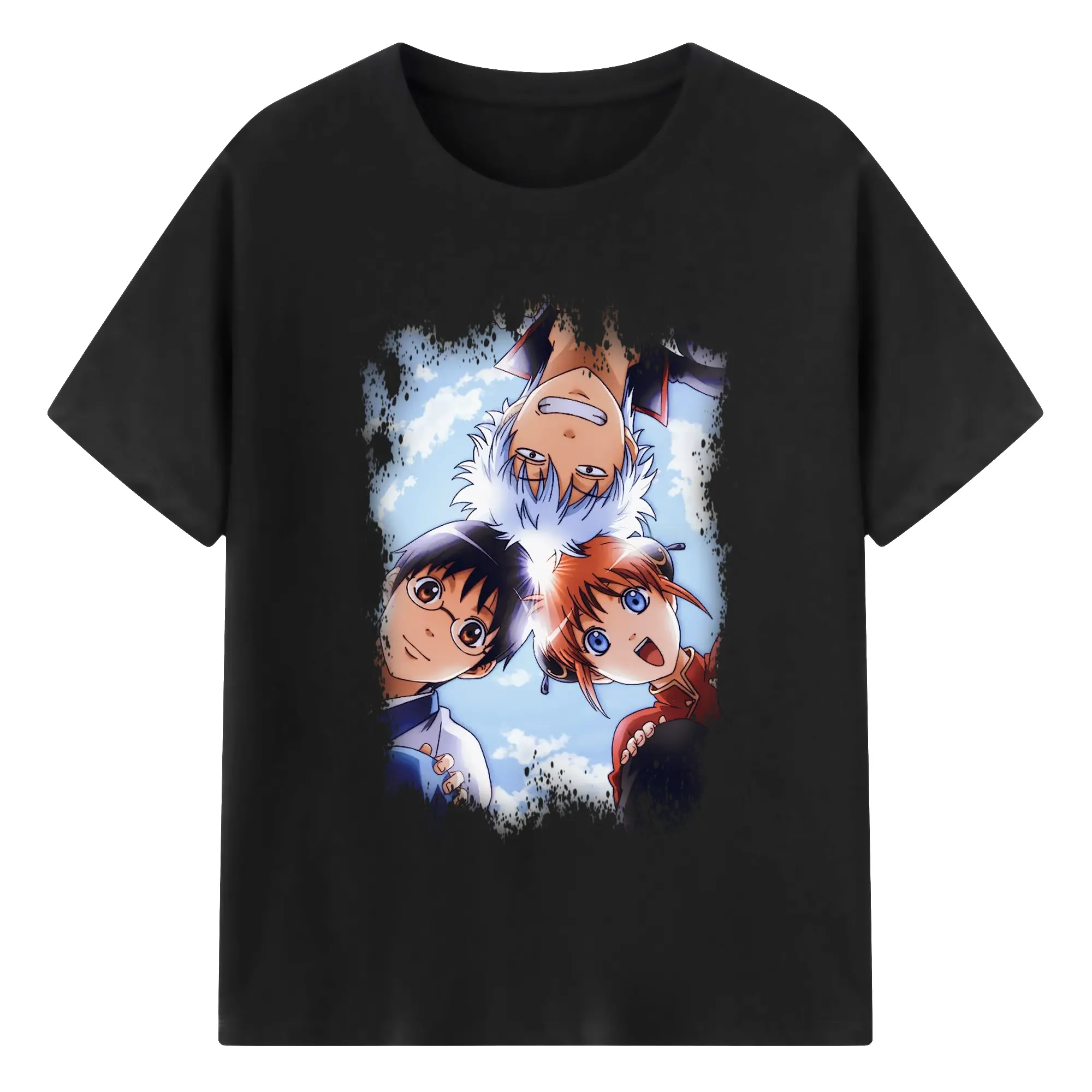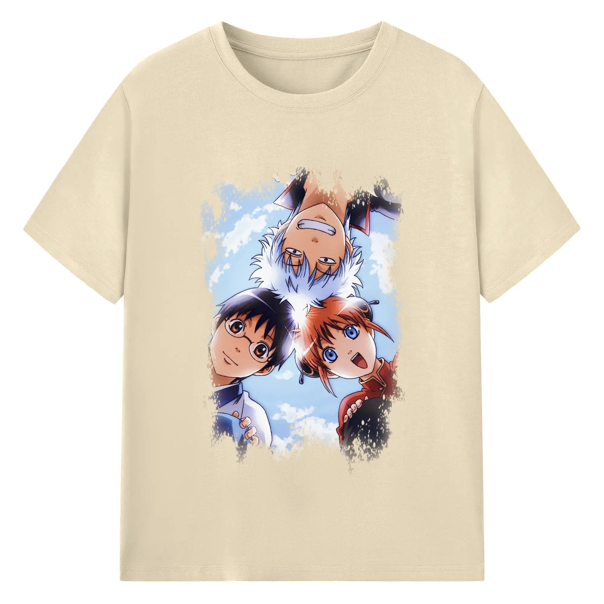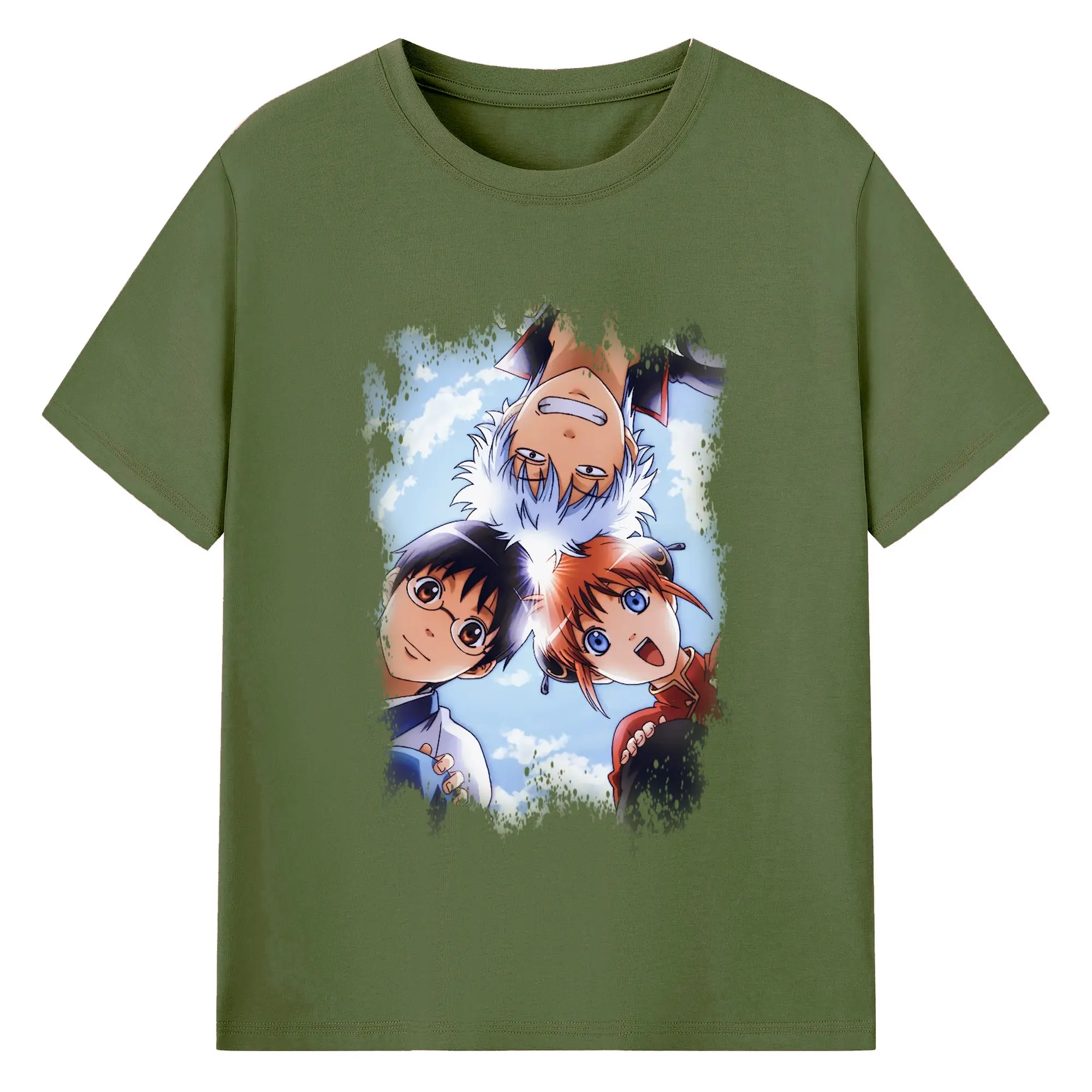 銀魂 グッズ 坂田 銀時 - 綿100% ヴィンテージ風 半袖Tシャツ ・ フロントプリント ・ 柔らか肌触り ・ 通気性 快適 ・ スポーツ カジュアル 外出用