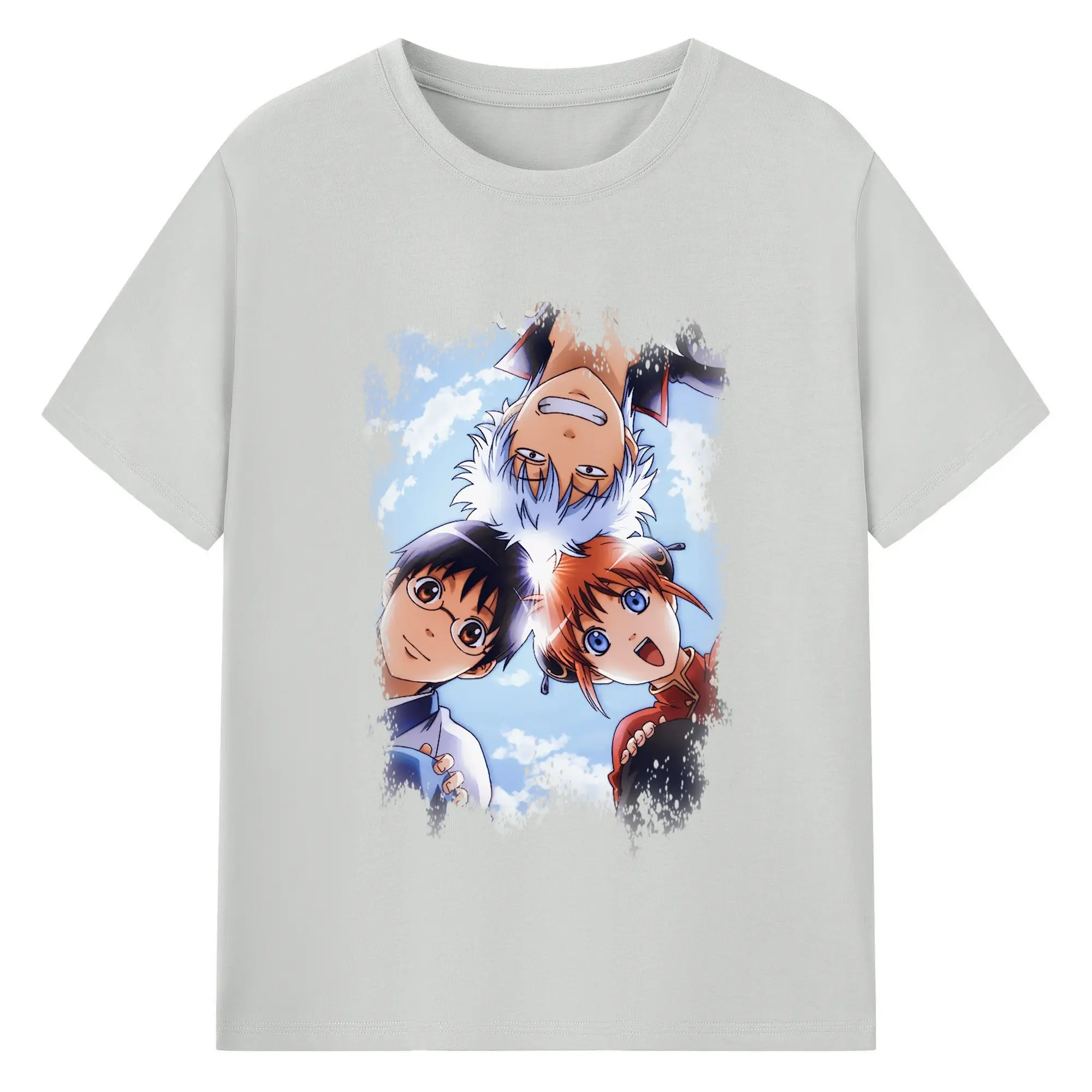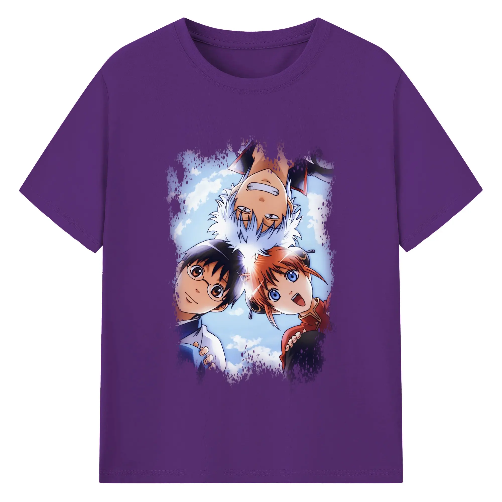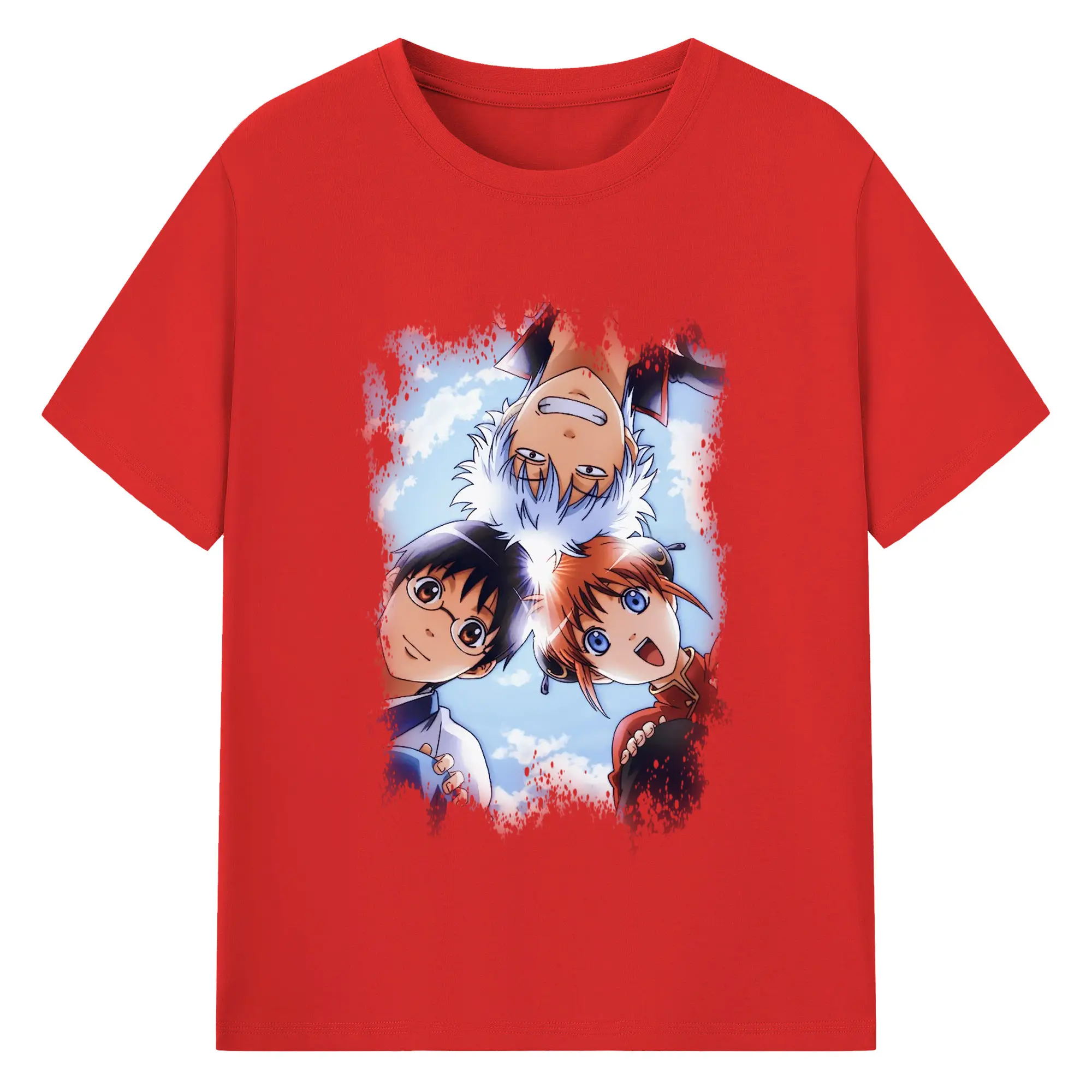 銀魂 グッズ 坂田 銀時 - 綿100% 半袖Tシャツ ・ バックプリント ・ 快適 通気性 ・ 日常使い 散歩 スポーツ用