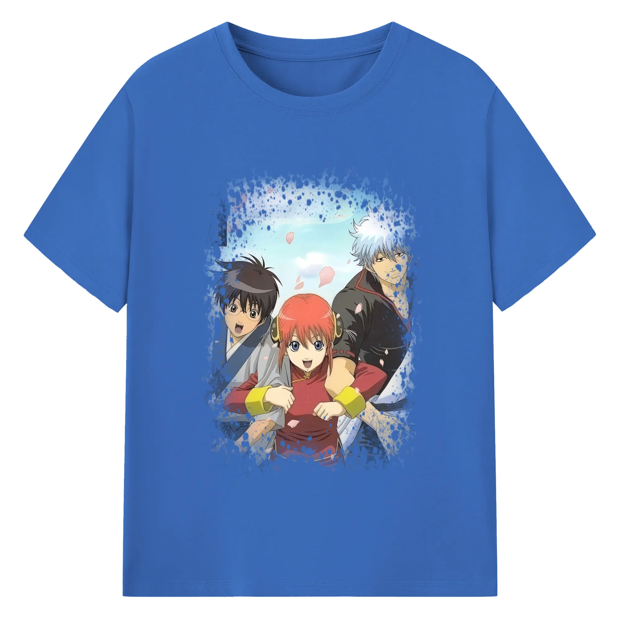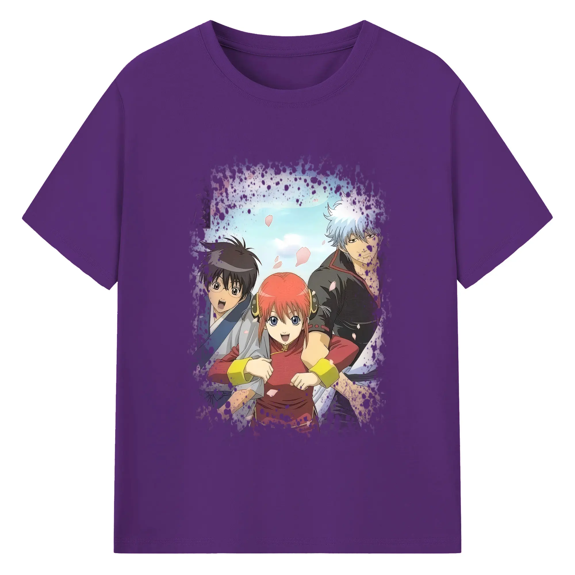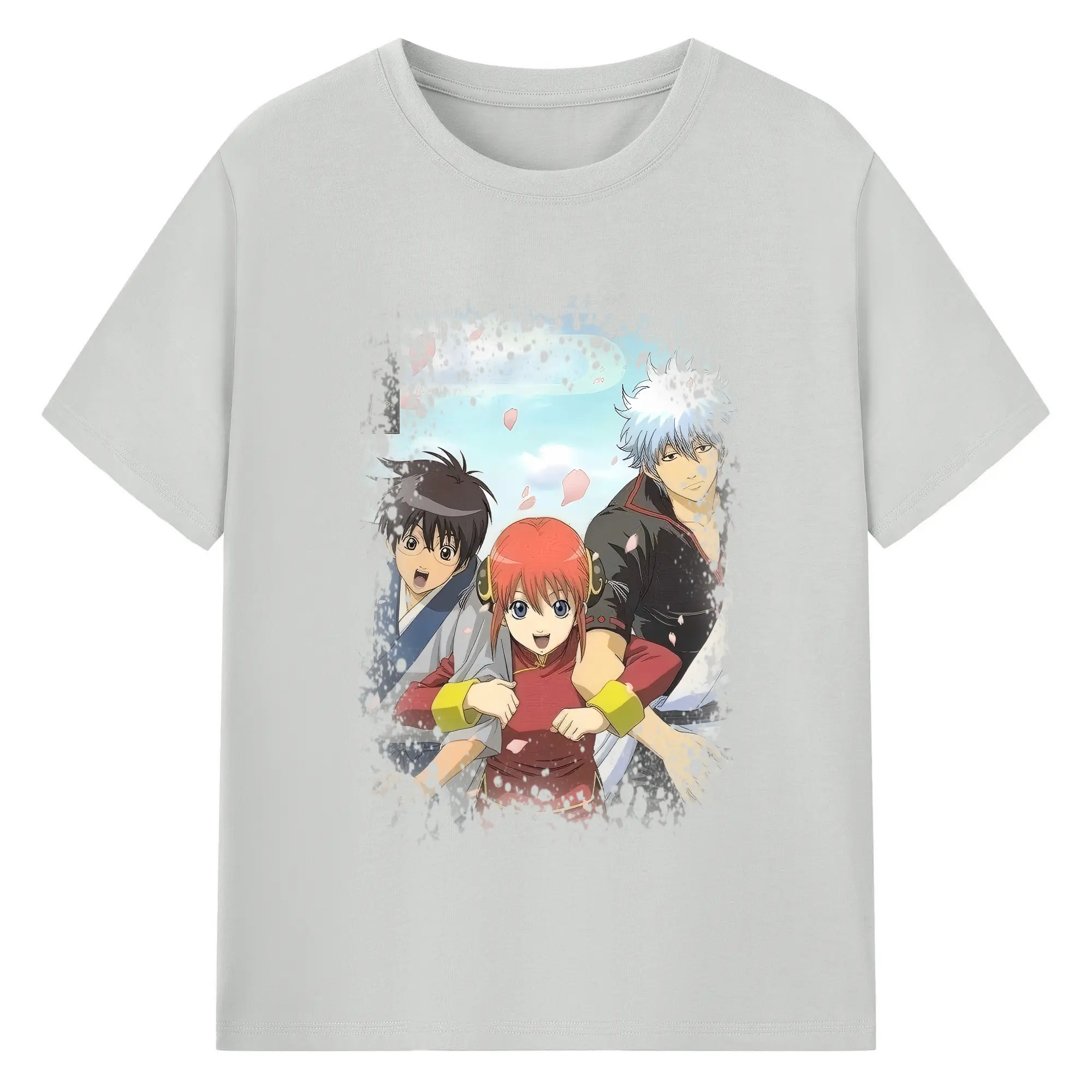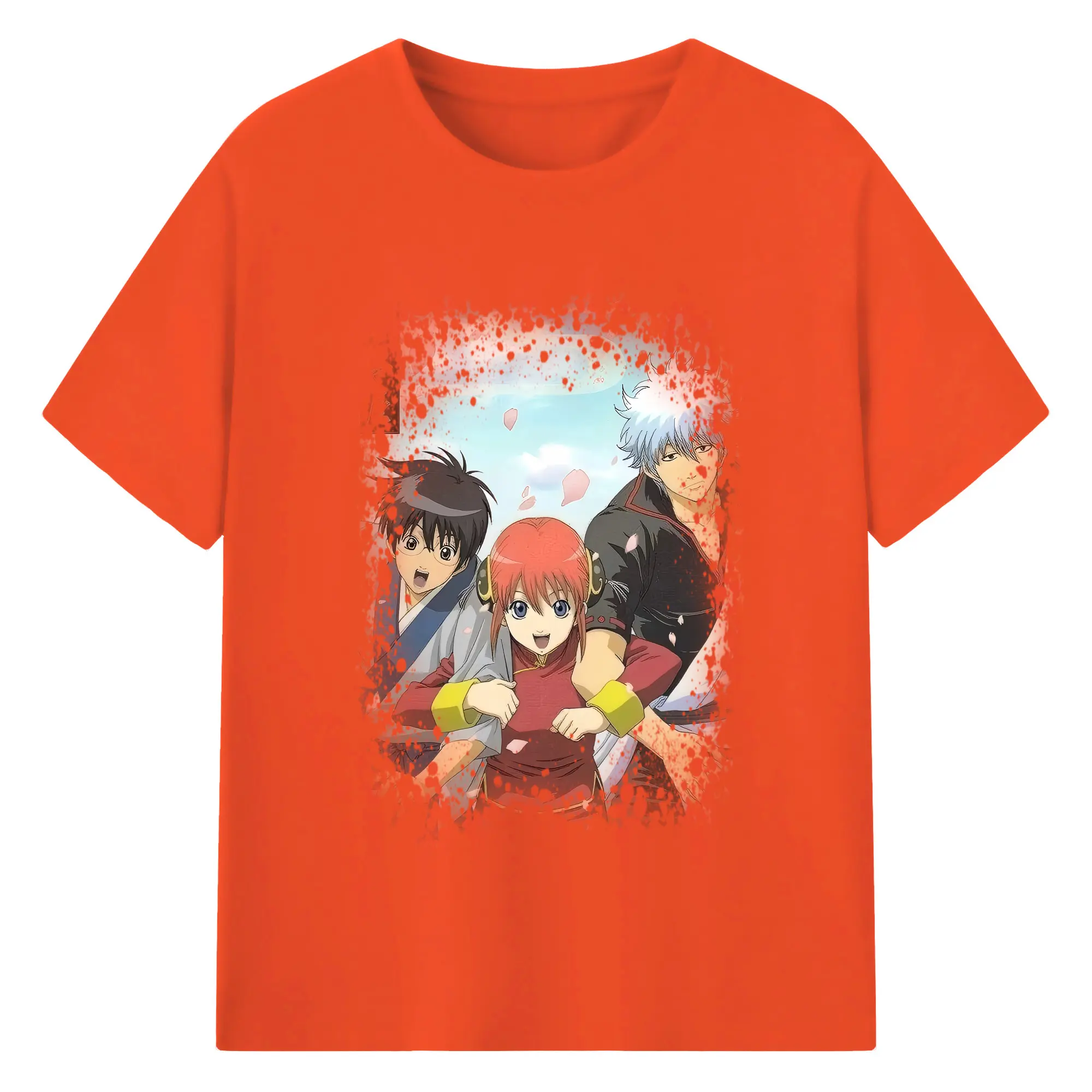 銀魂 グッズ 坂田 銀時 - 綿100% 半袖Tシャツ ・ バックプリント ・ 快適 通気性 ・ 日常使い 散歩 スポーツ用