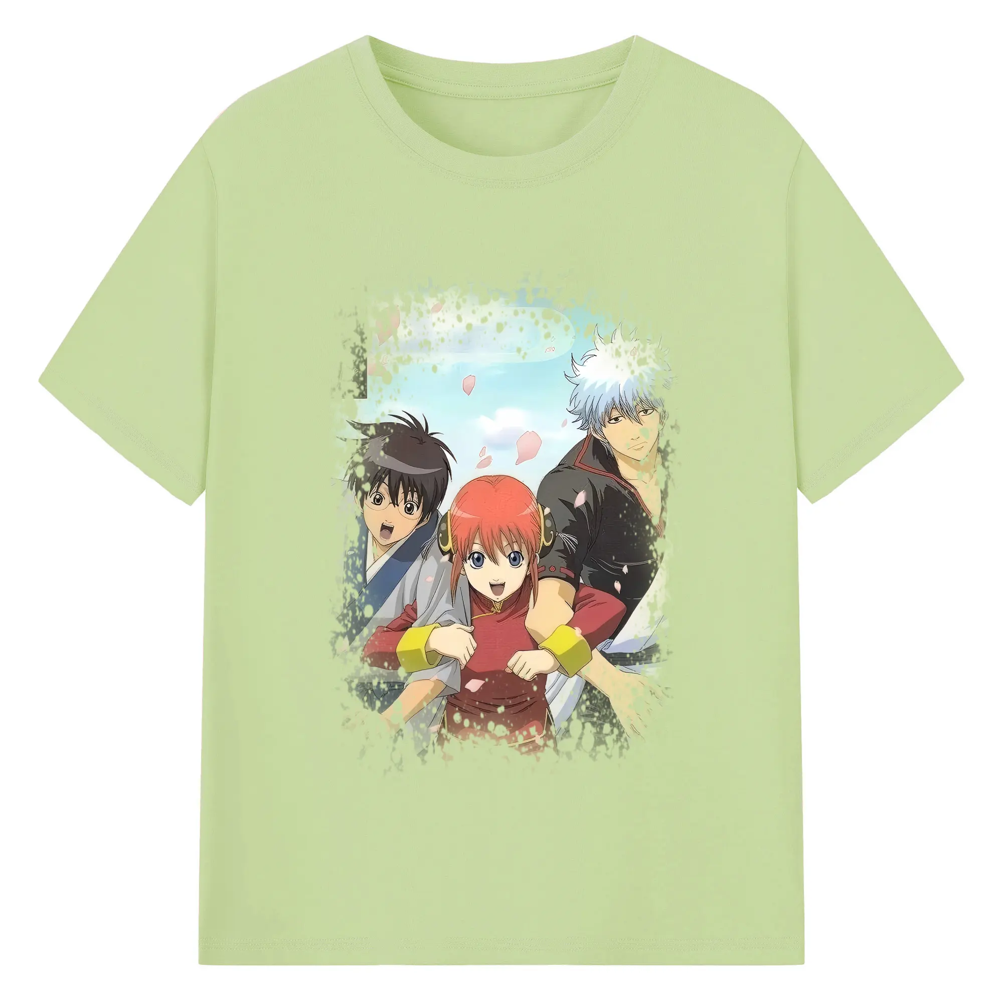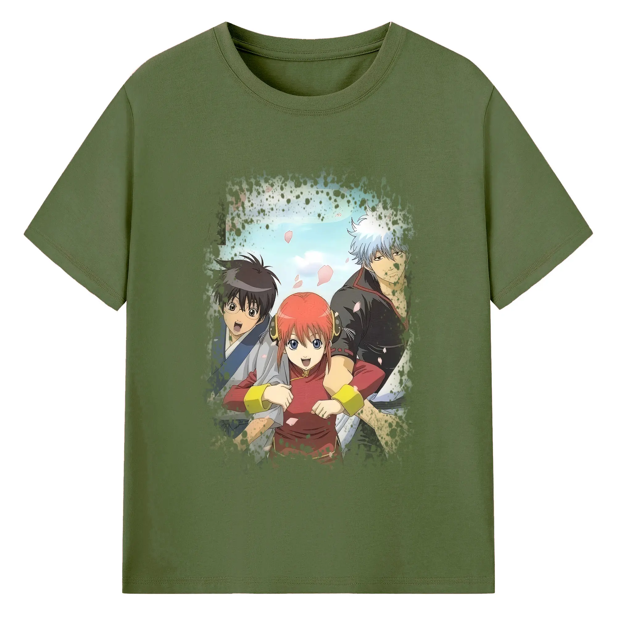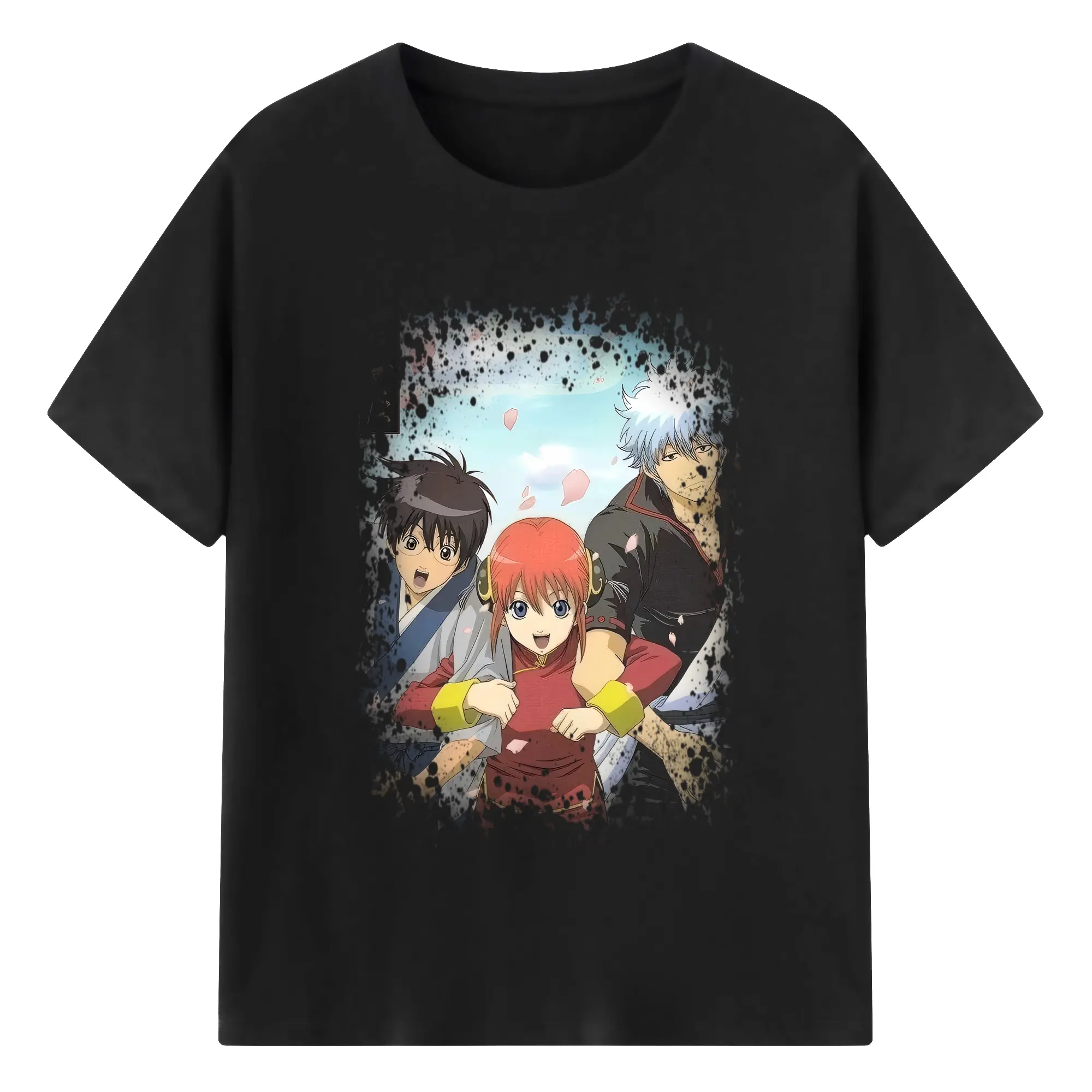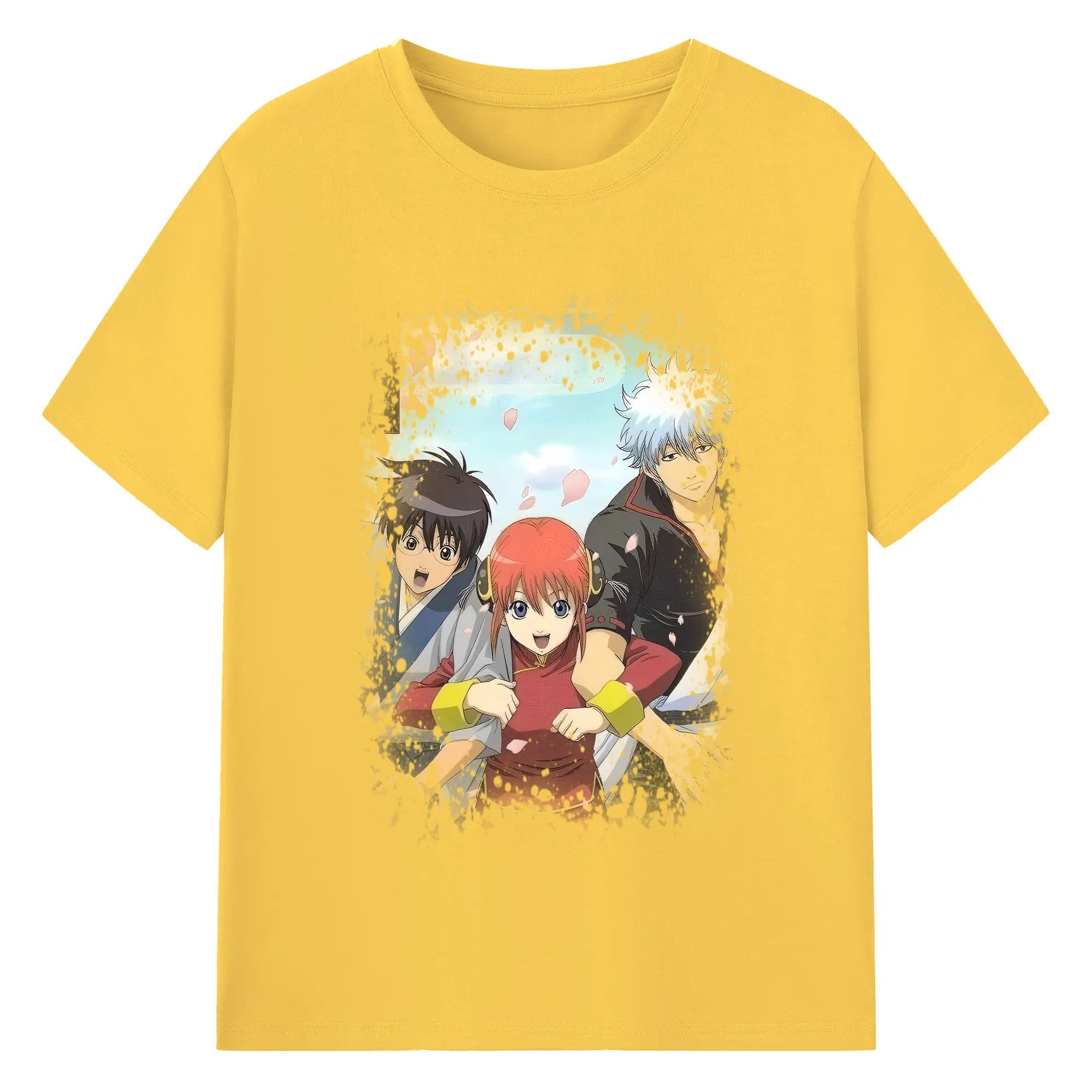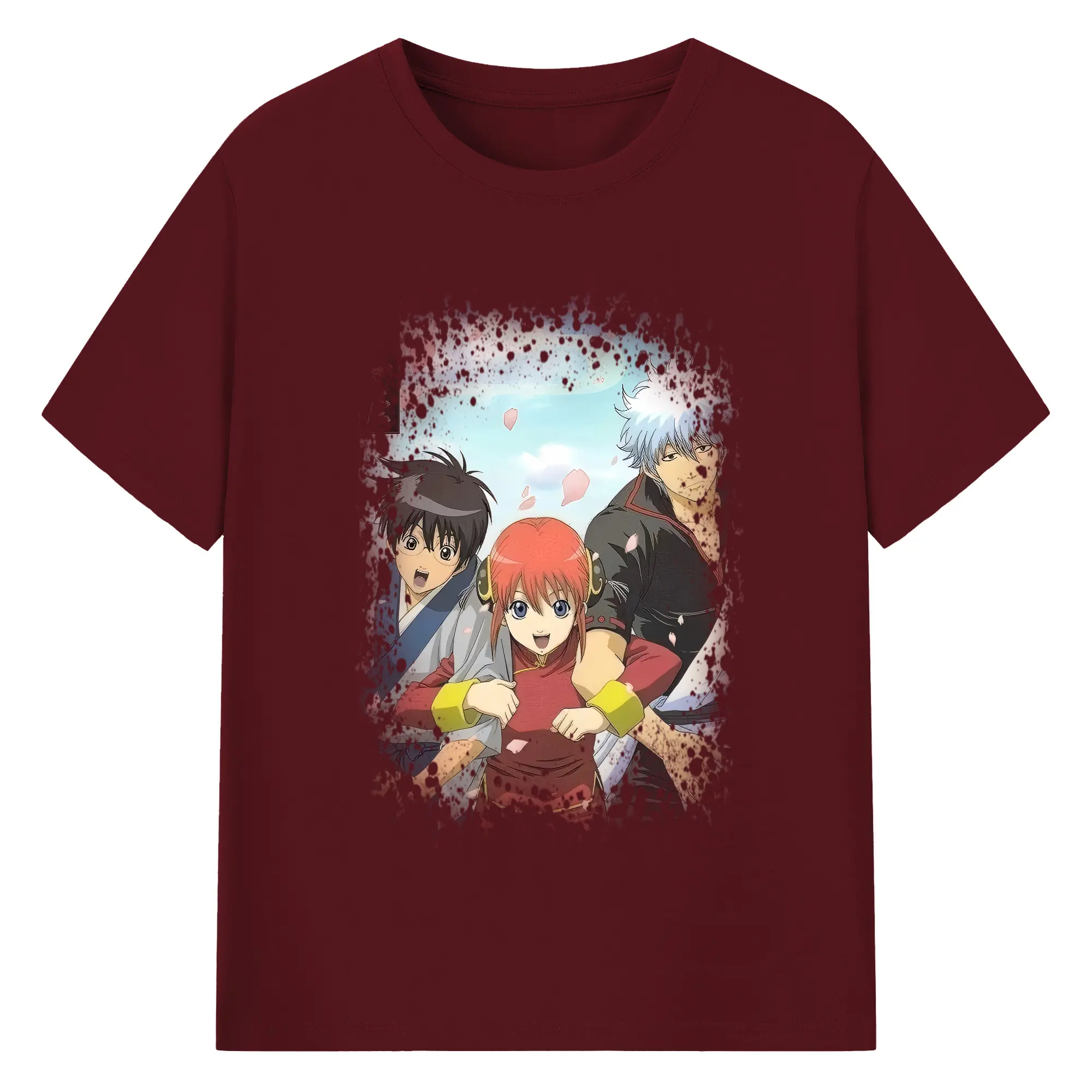 銀魂 グッズ 坂田 銀時 - 綿100% 半袖Tシャツ ・ バックプリント ・ 快適 通気性 ・ 日常使い 散歩 スポーツ用