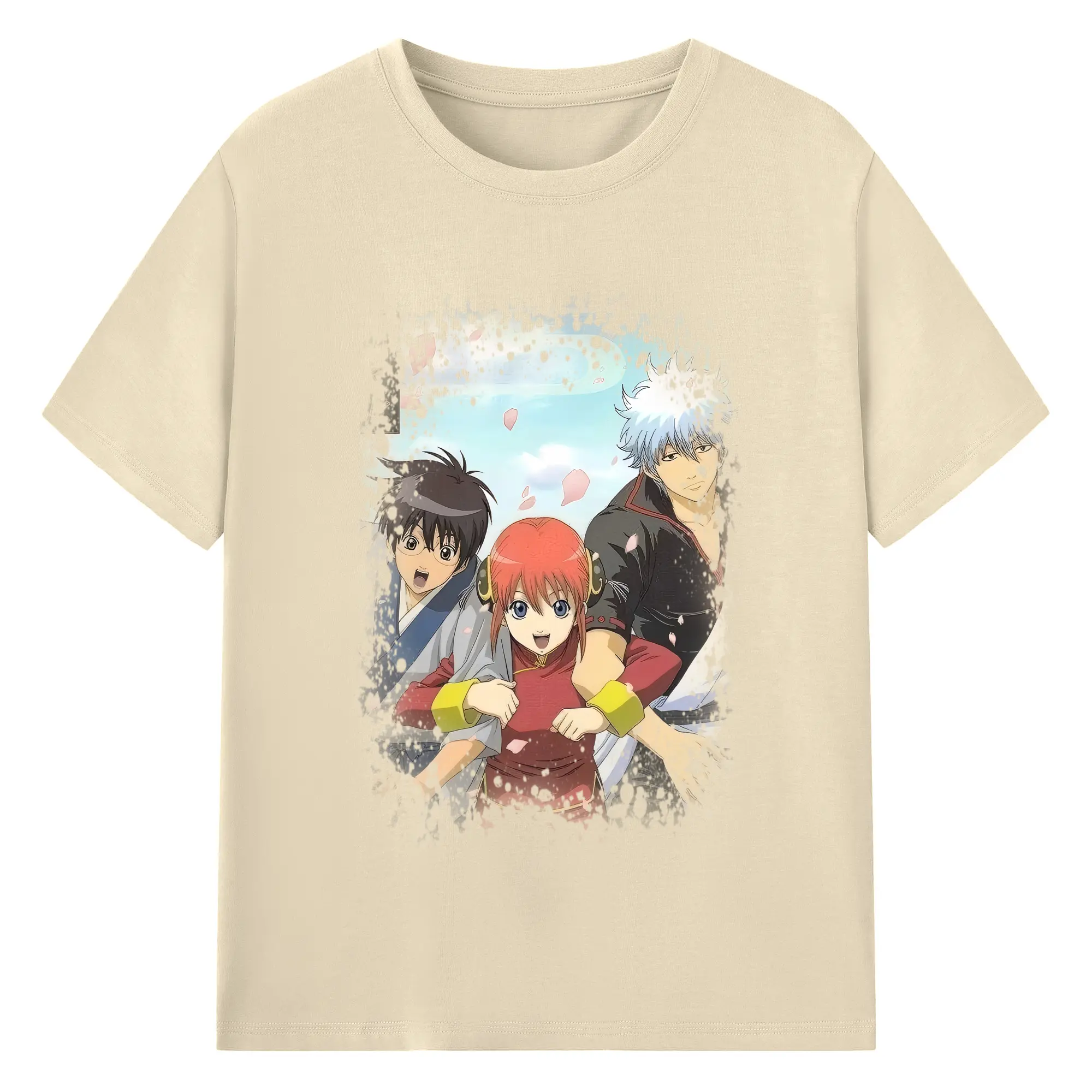 銀魂 グッズ 坂田 銀時 - 綿100% ヴィンテージ風 半袖Tシャツ ・ フロントプリント ・ 柔らか肌触り ・ 通気性 快適 ・ スポーツ カジュアル 外出用