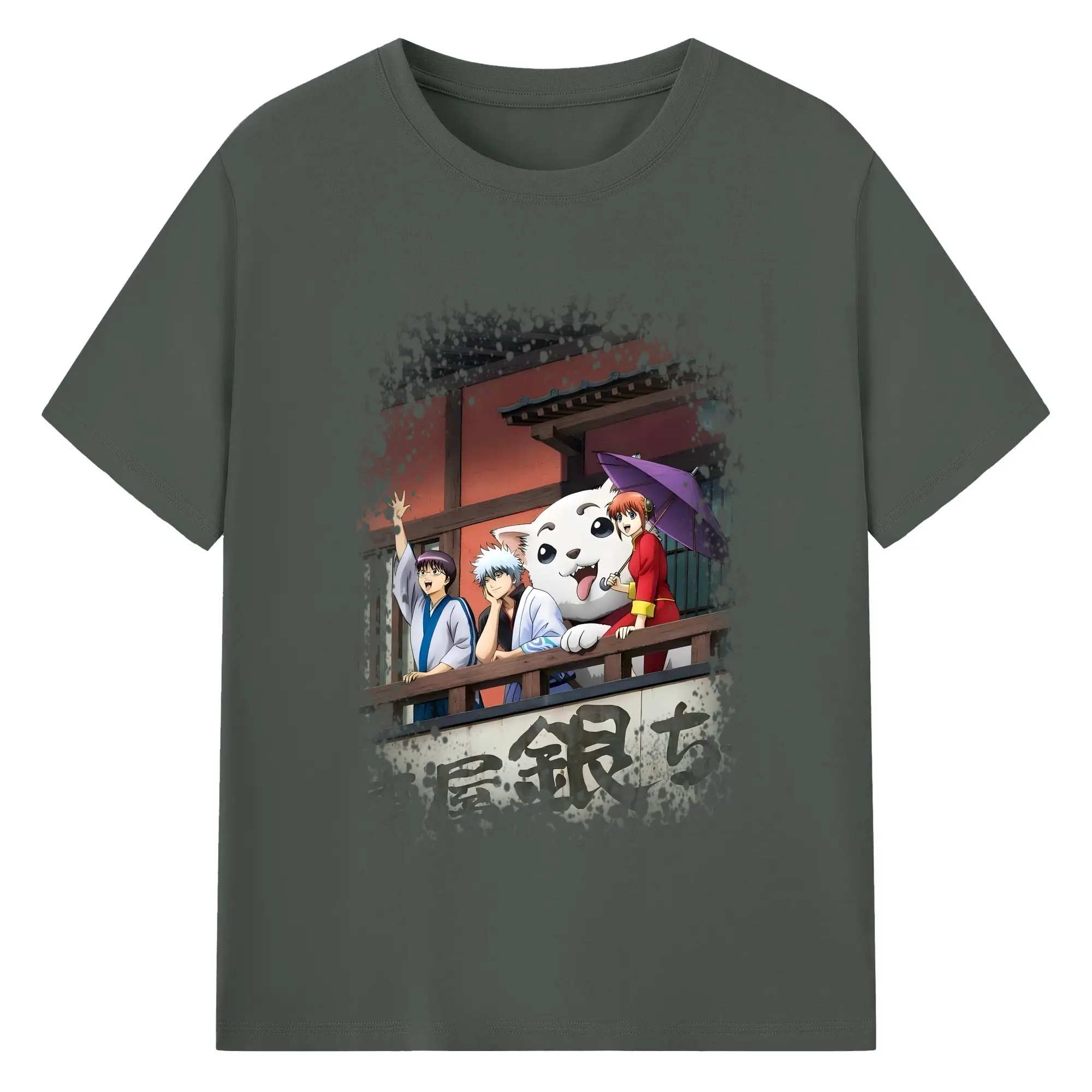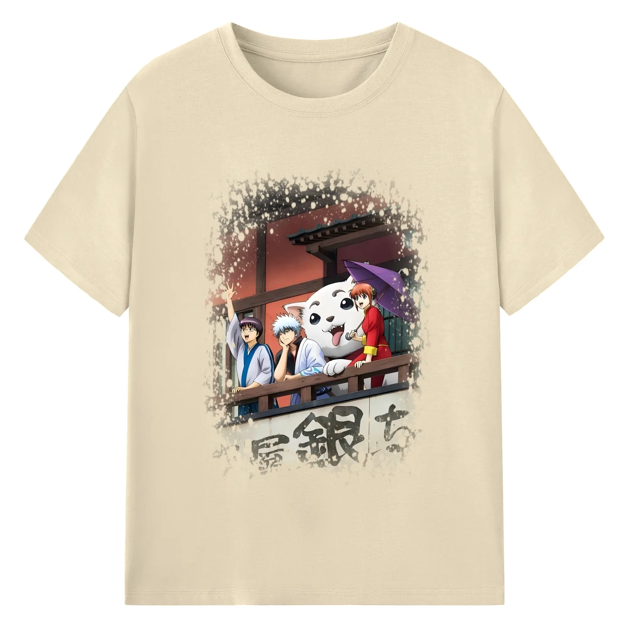 銀魂 グッズ 坂田 銀時 - 綿100% ヴィンテージ風 半袖Tシャツ ・ フロントプリント ・ 柔らか肌触り ・ 通気性 快適 ・ スポーツ カジュアル 外出用