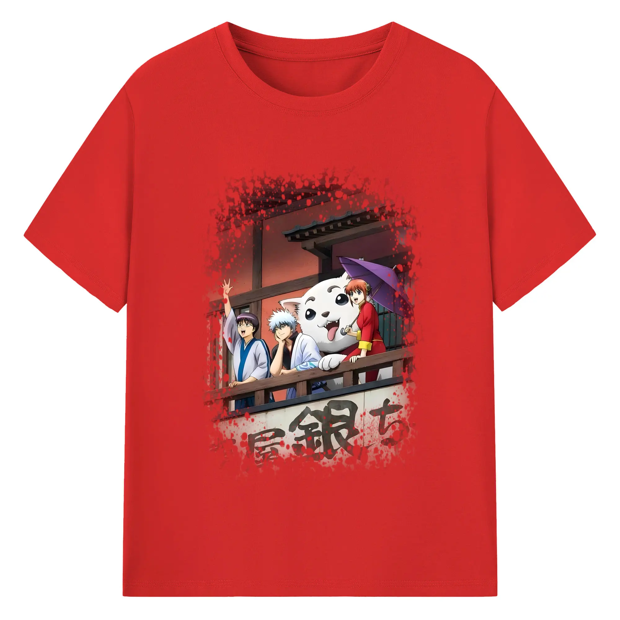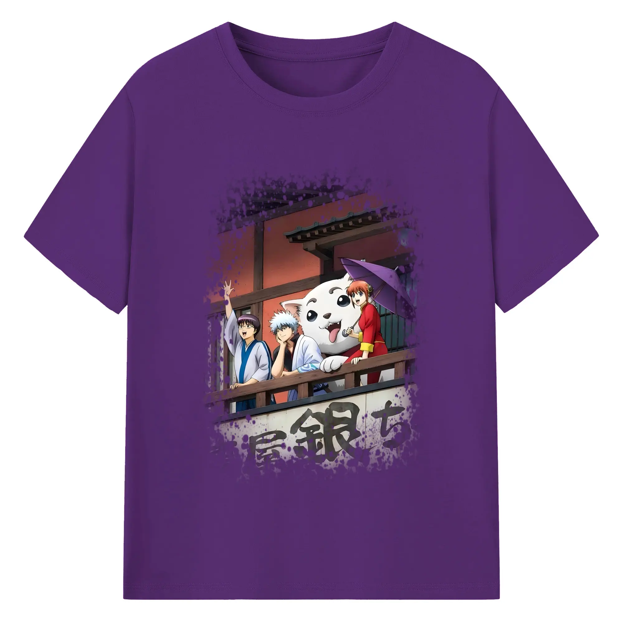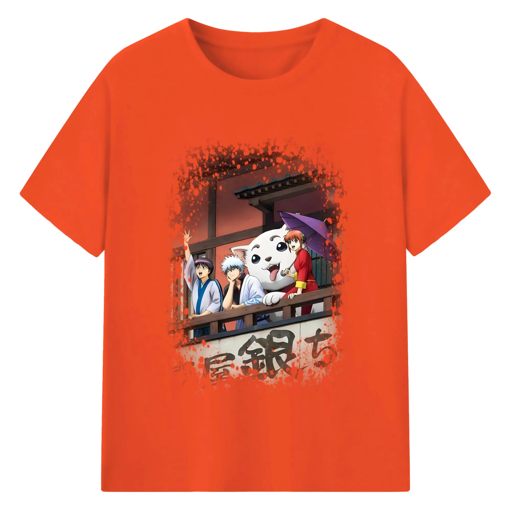 銀魂 グッズ 坂田 銀時 - 綿100% 半袖Tシャツ ・ フロントプリント ・ 快適 通気性 ・ 日常使い 散歩 スポーツ用