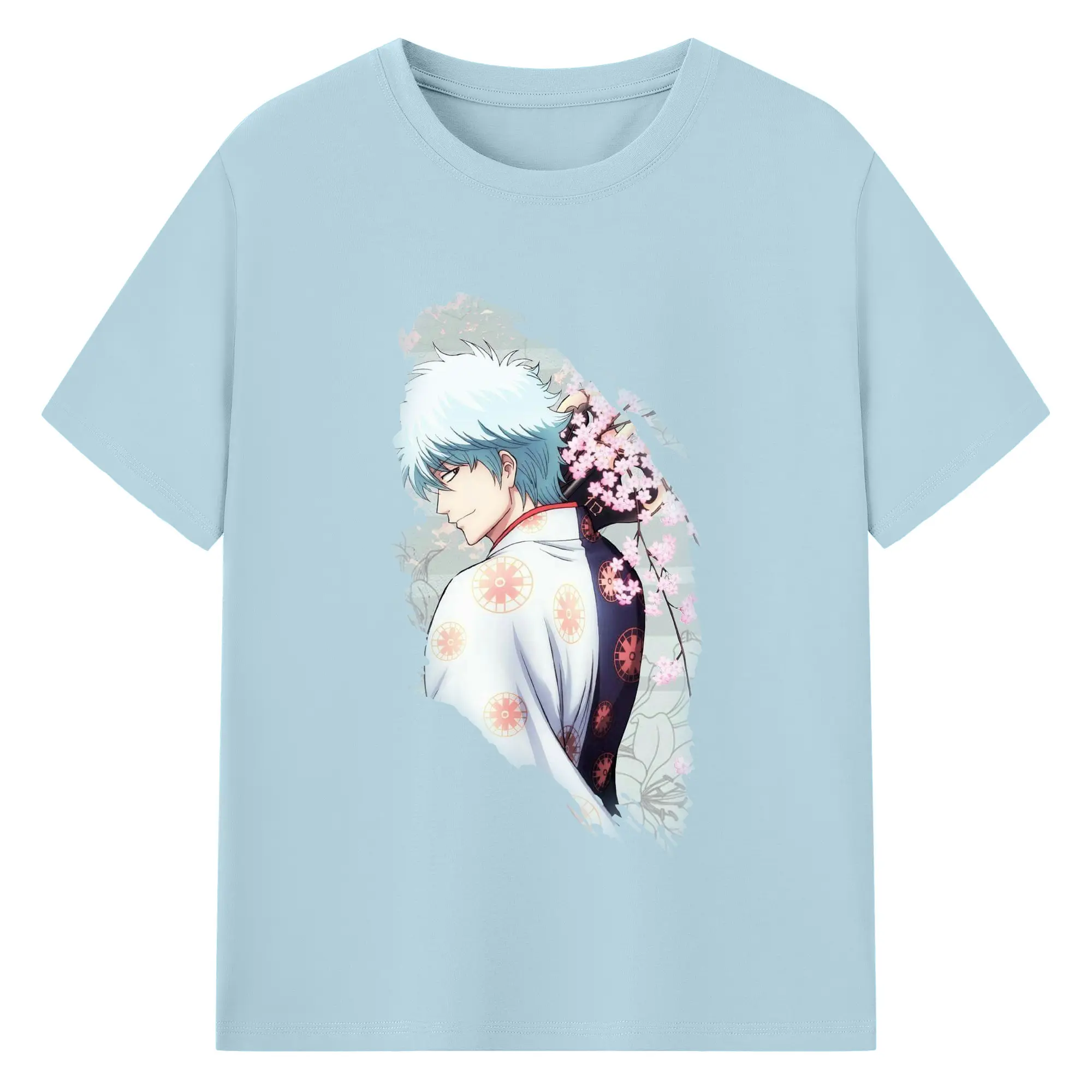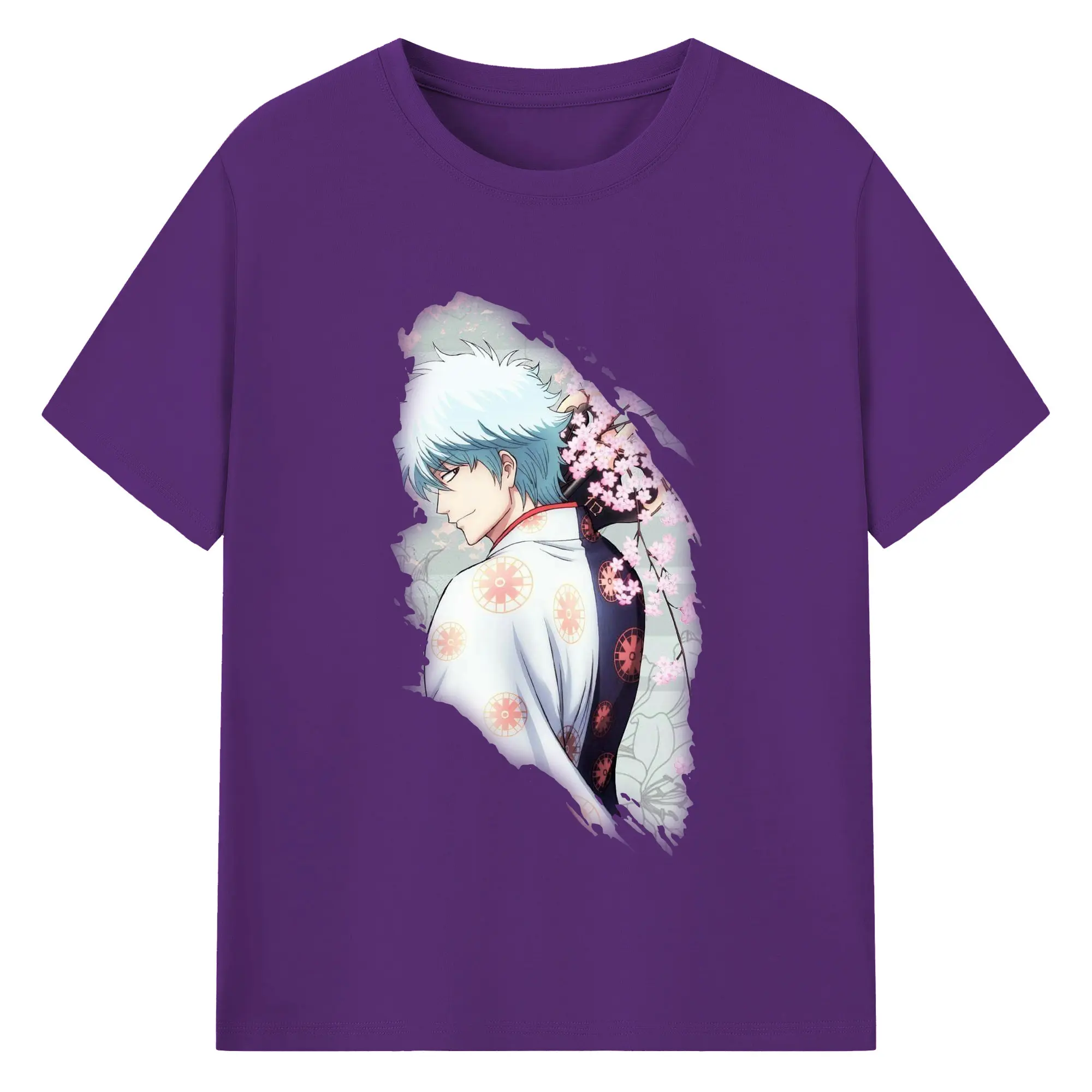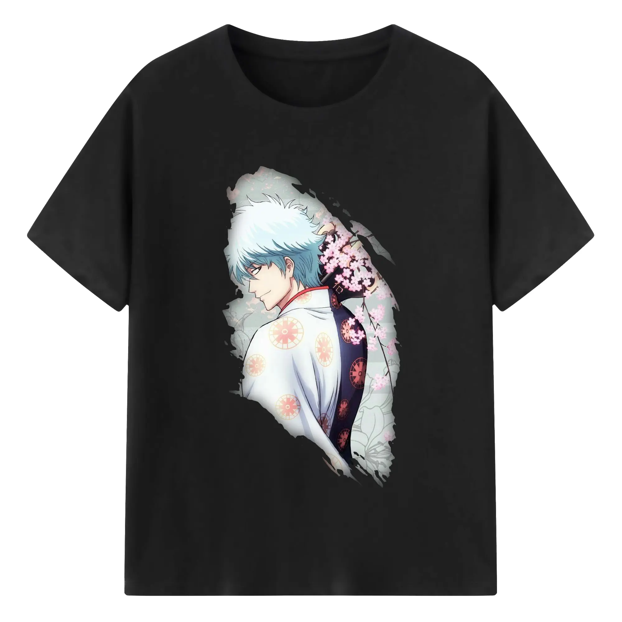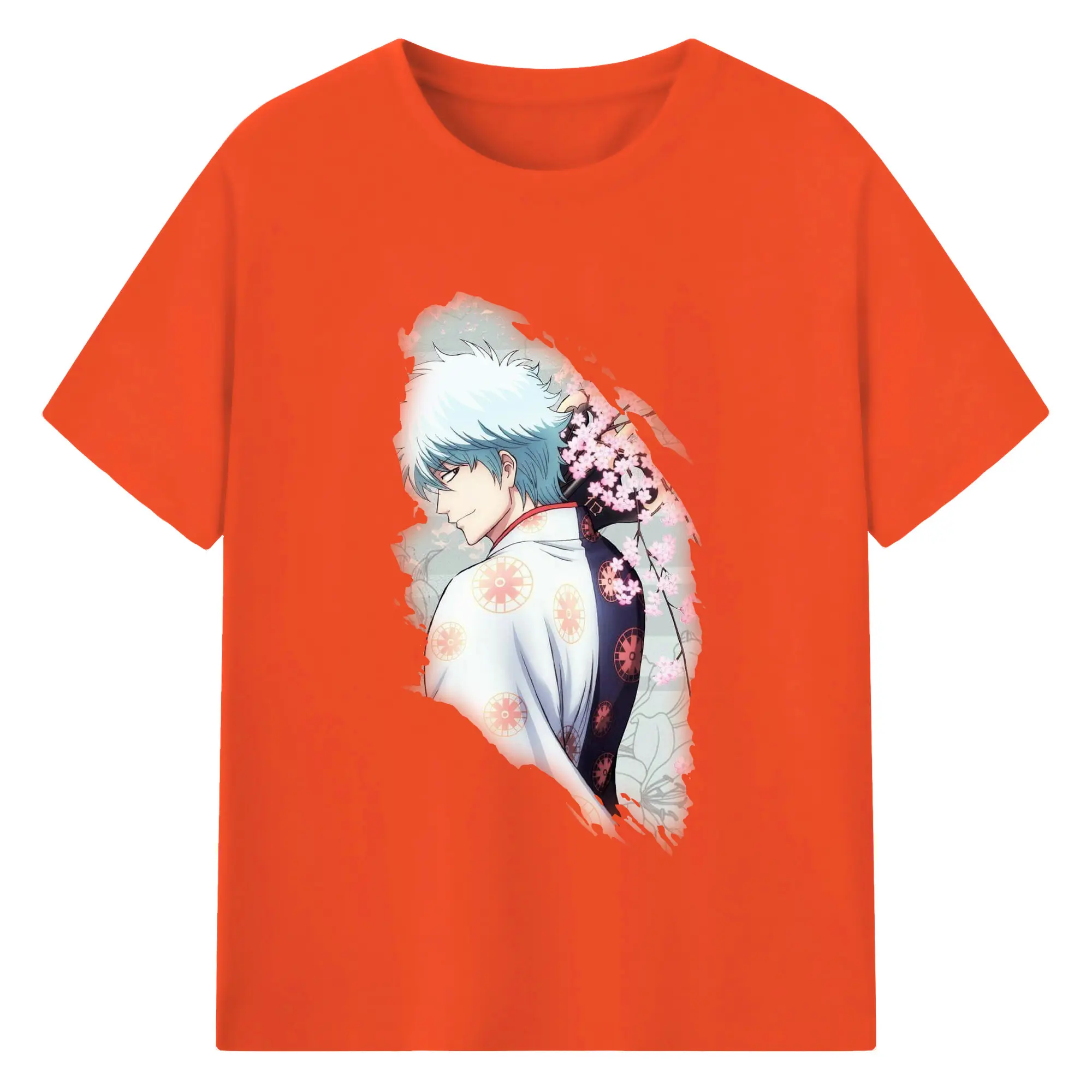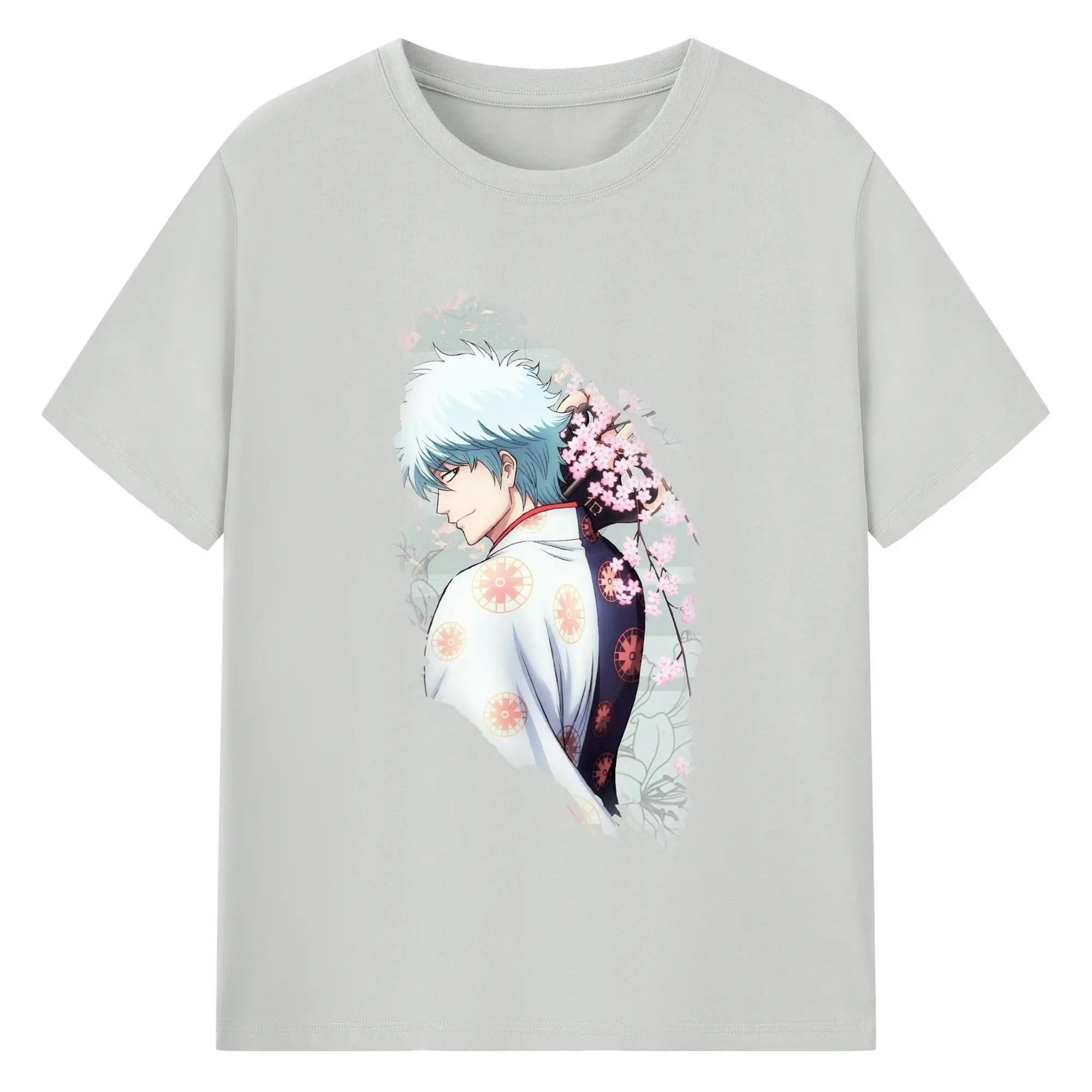 銀魂 グッズ 坂田 銀時 - 綿100% 半袖Tシャツ ・ バックプリント ・ 快適 通気性 ・ 日常使い 散歩 スポーツ用