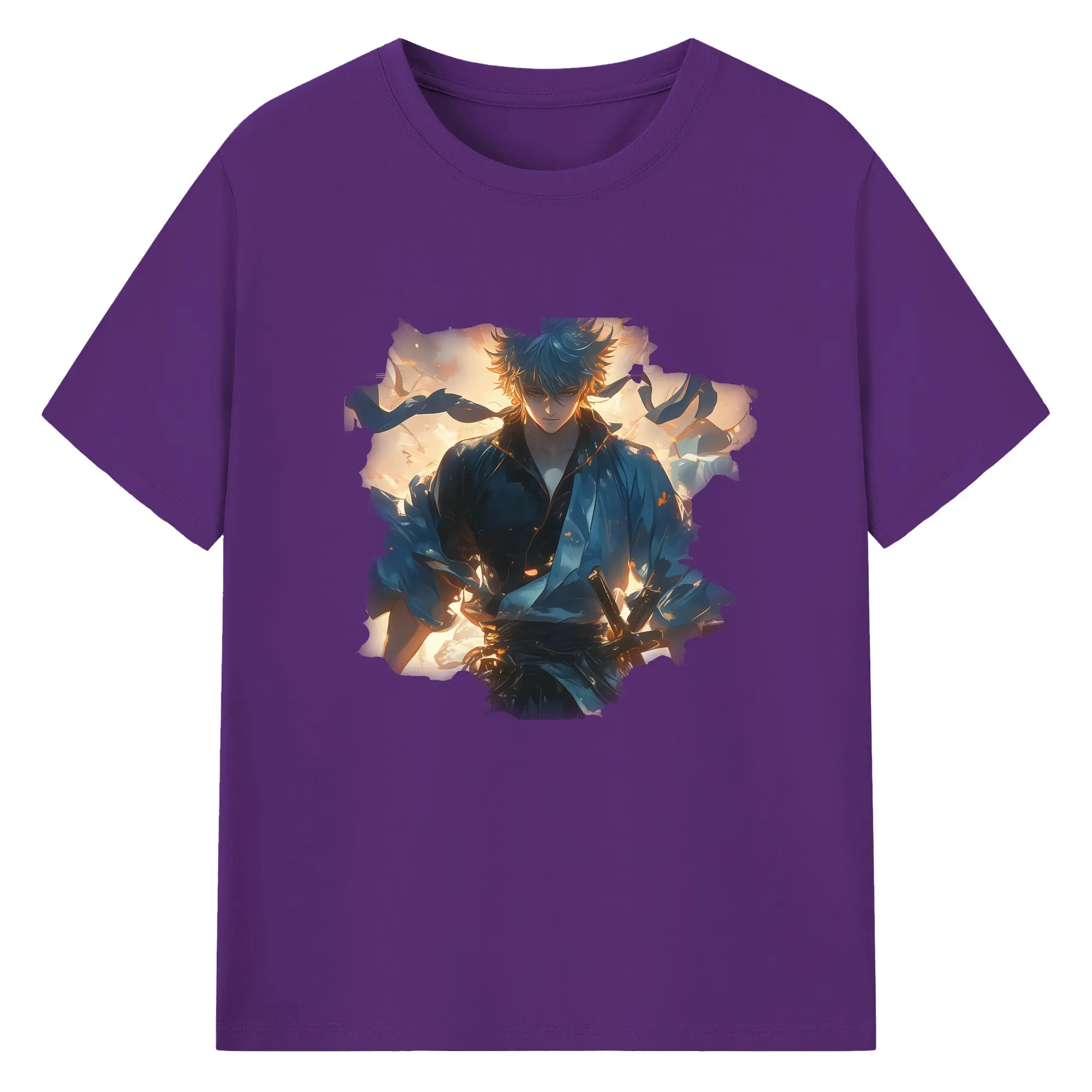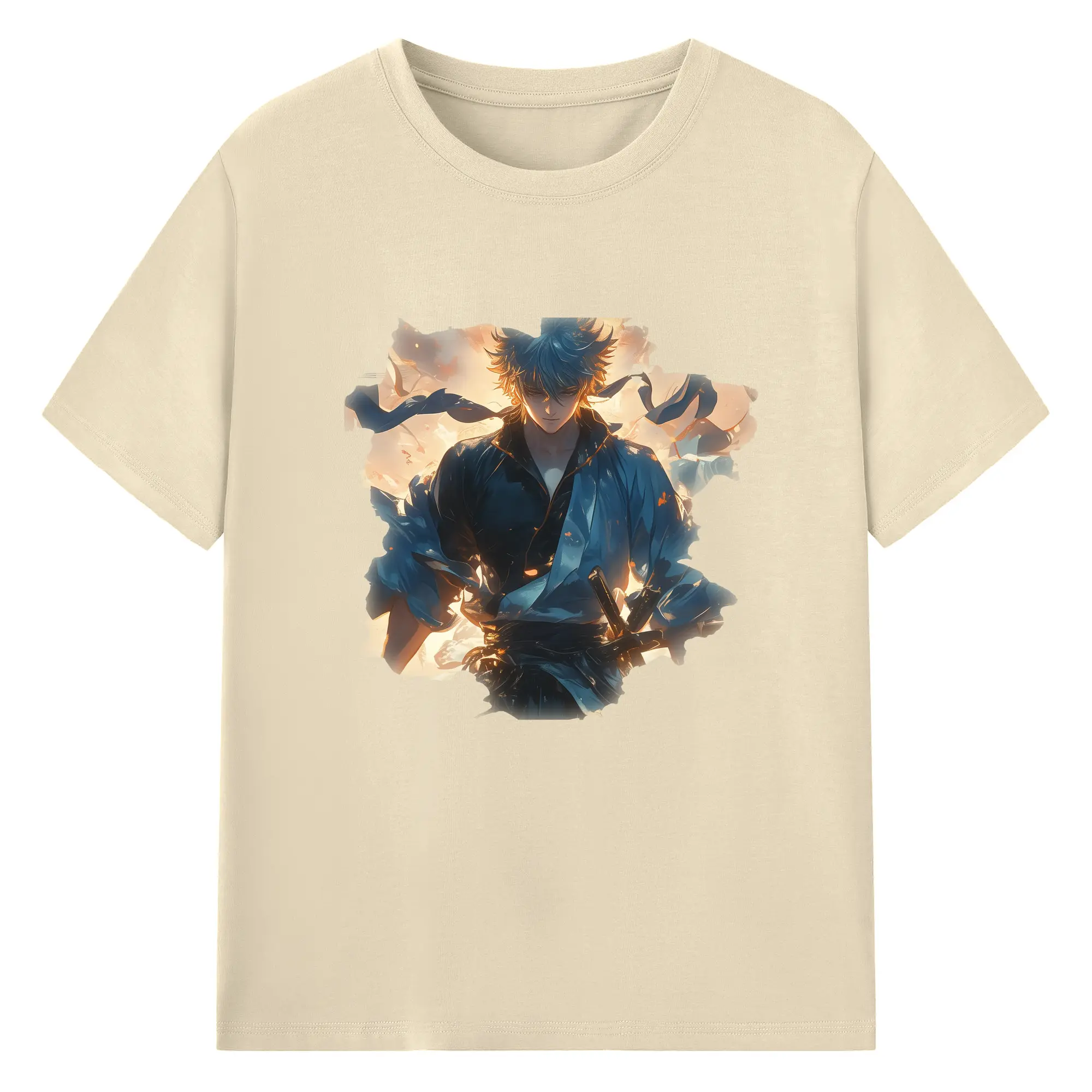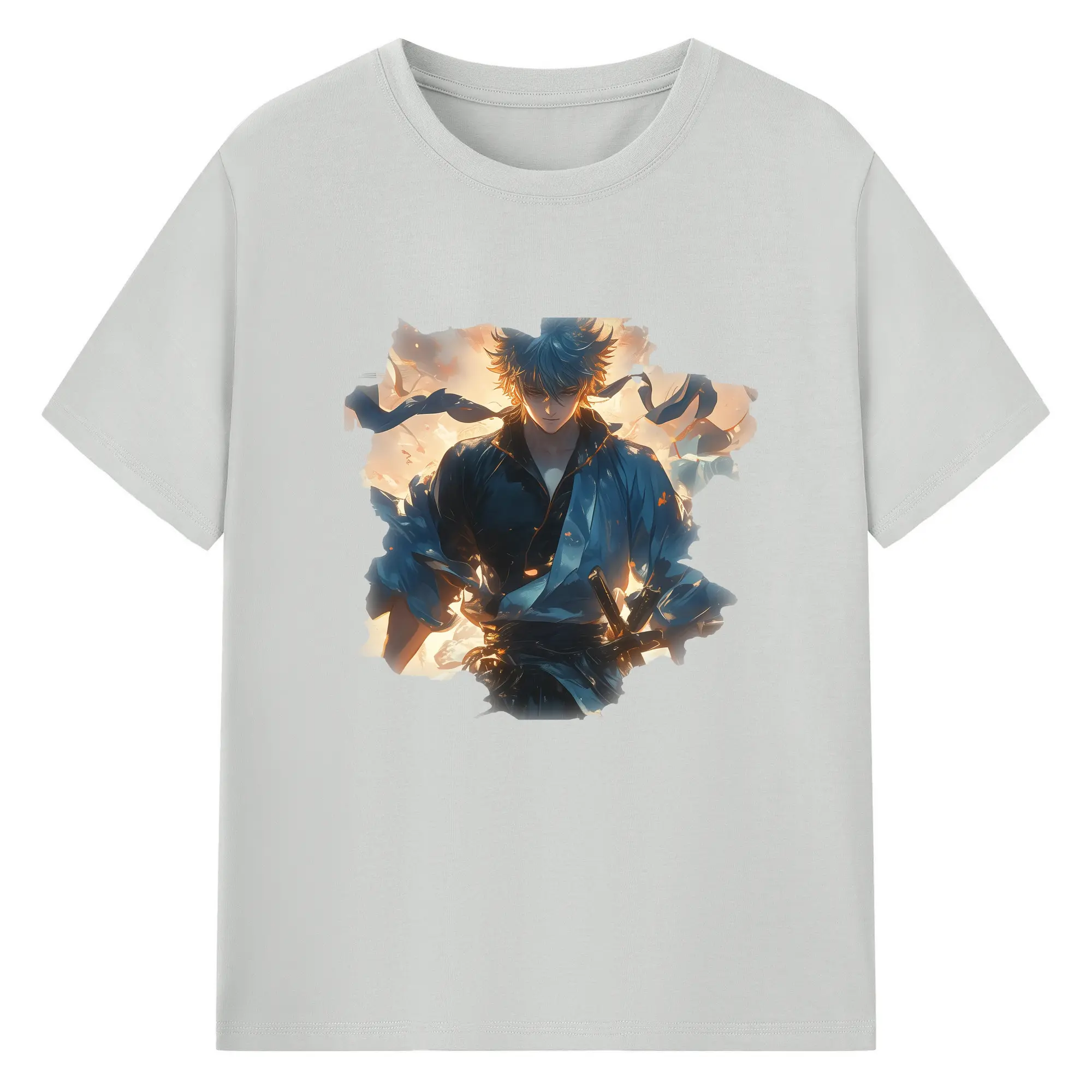 銀魂 グッズ 坂田 銀時 - 綿100% 半袖Tシャツ ・ バックプリント ・ 快適 通気性 ・ 日常使い 散歩 スポーツ用