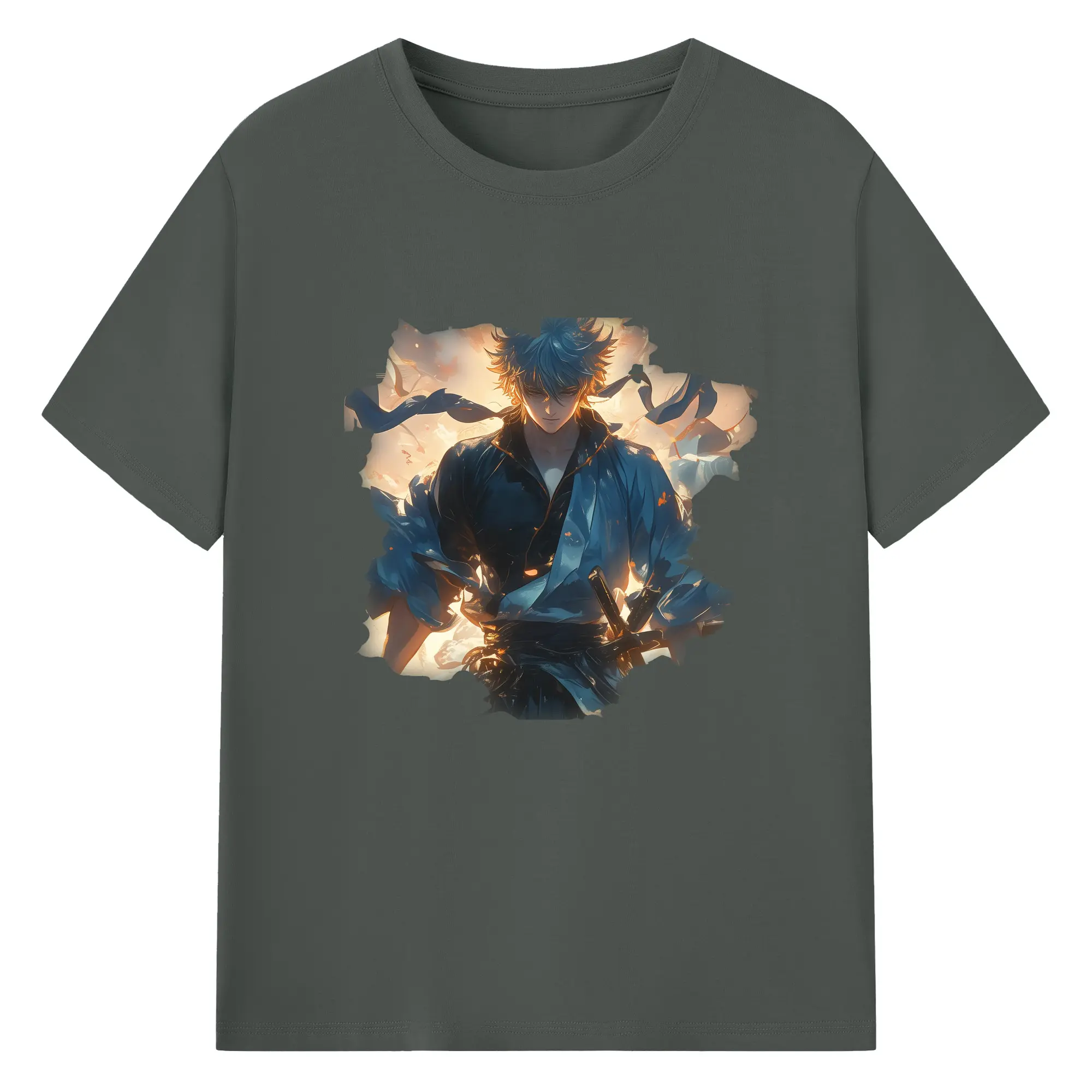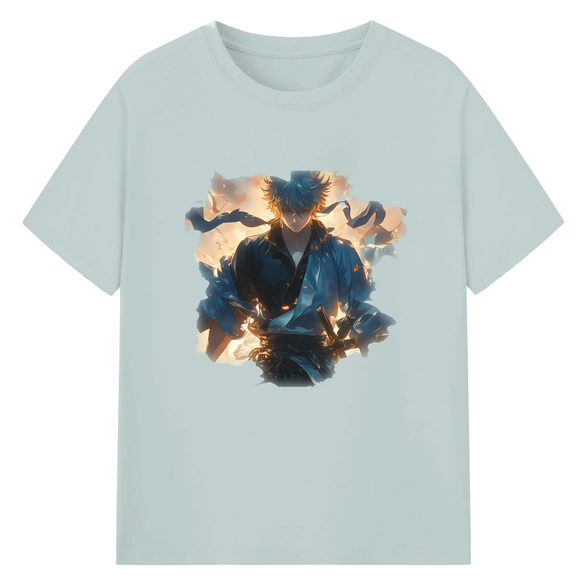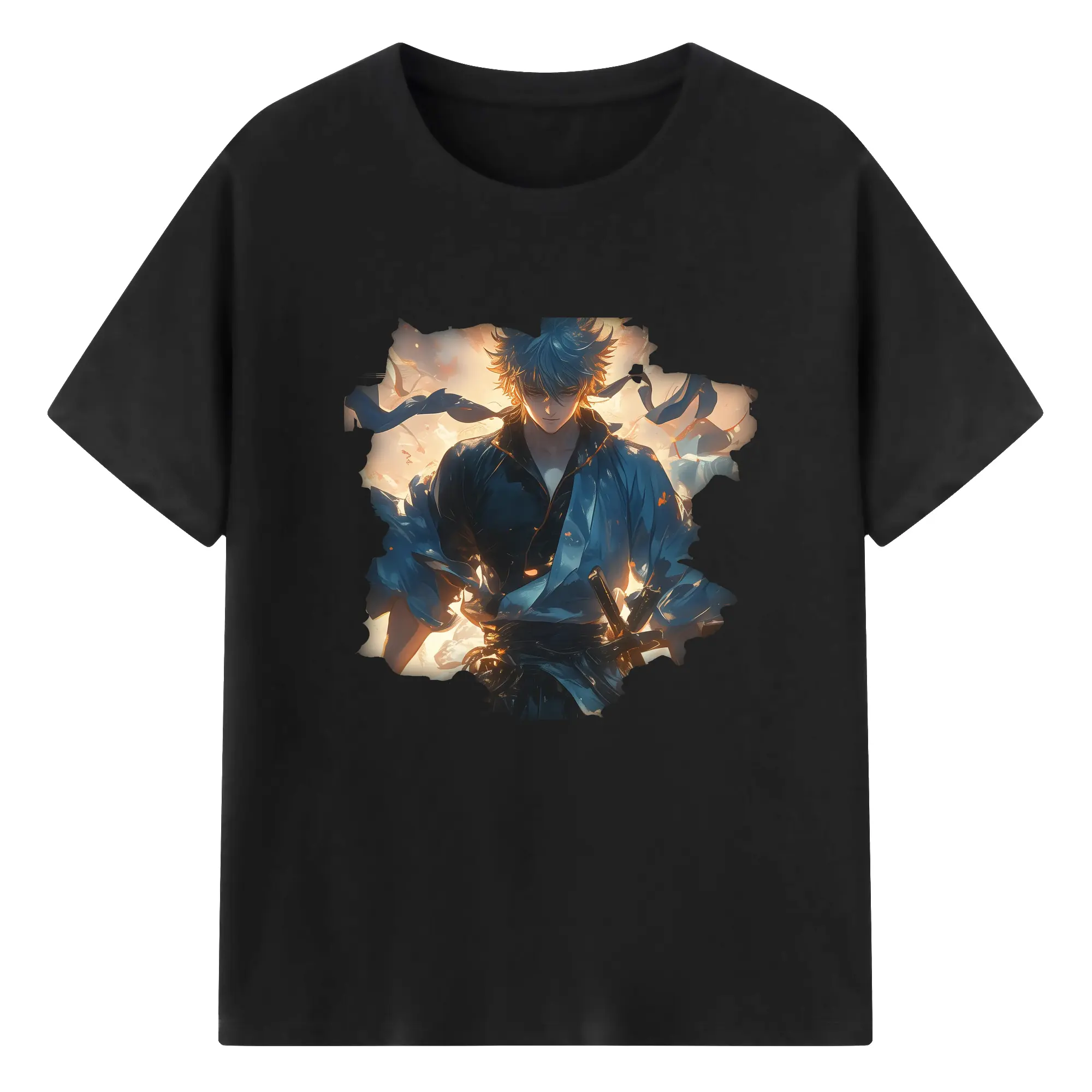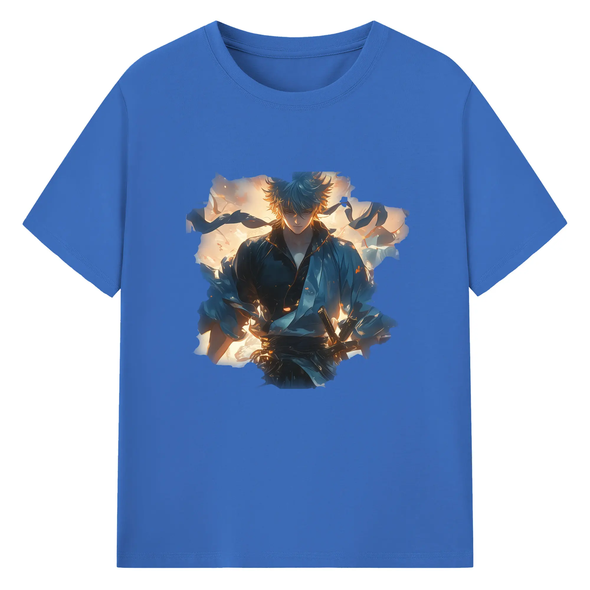 銀魂 グッズ 坂田 銀時 - 綿100% 半袖Tシャツ ・ バックプリント ・ 快適 通気性 ・ 日常使い 散歩 スポーツ用