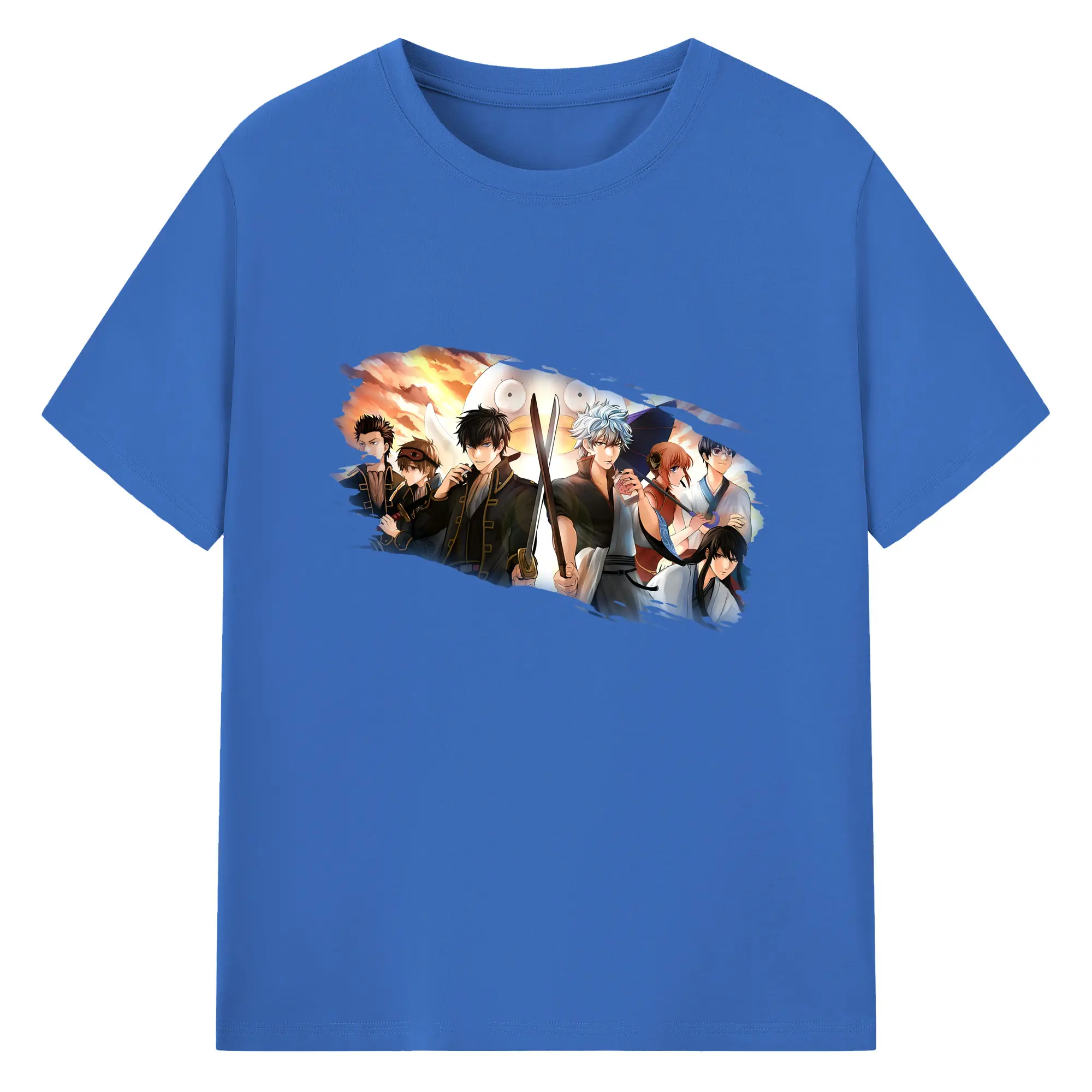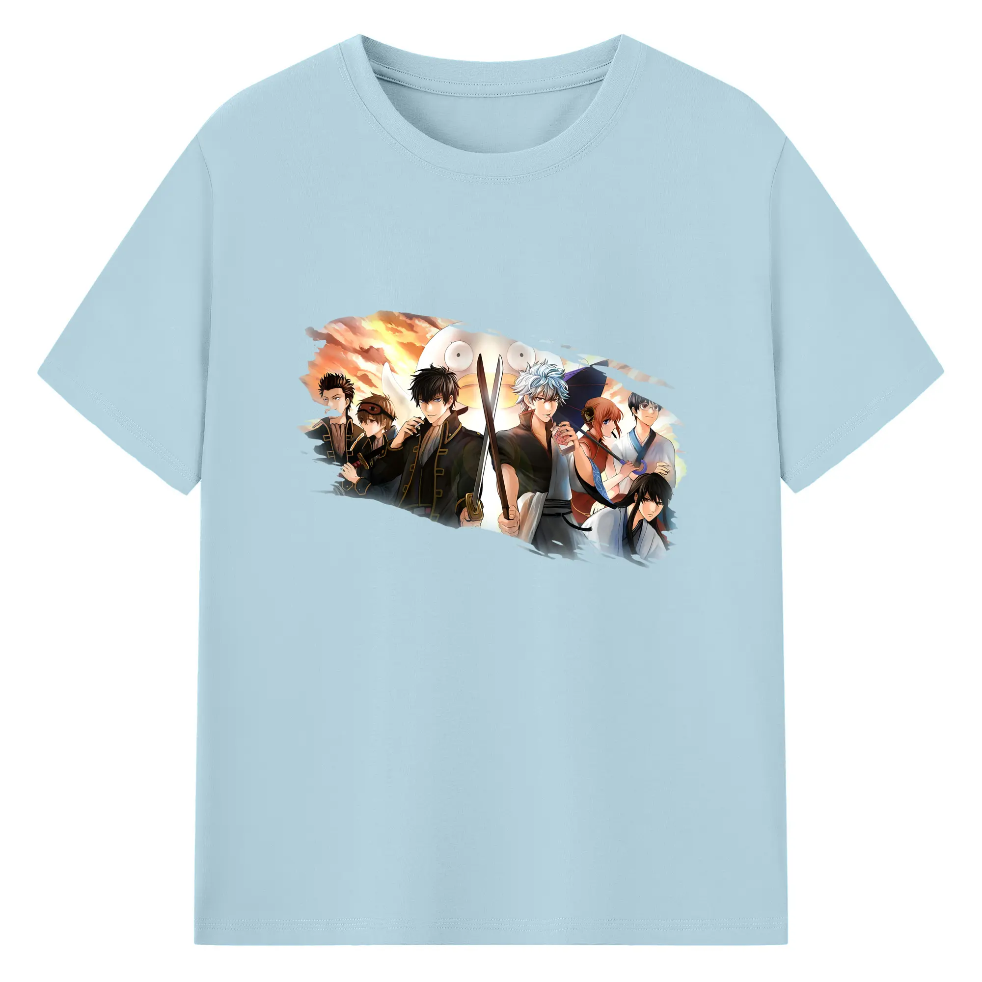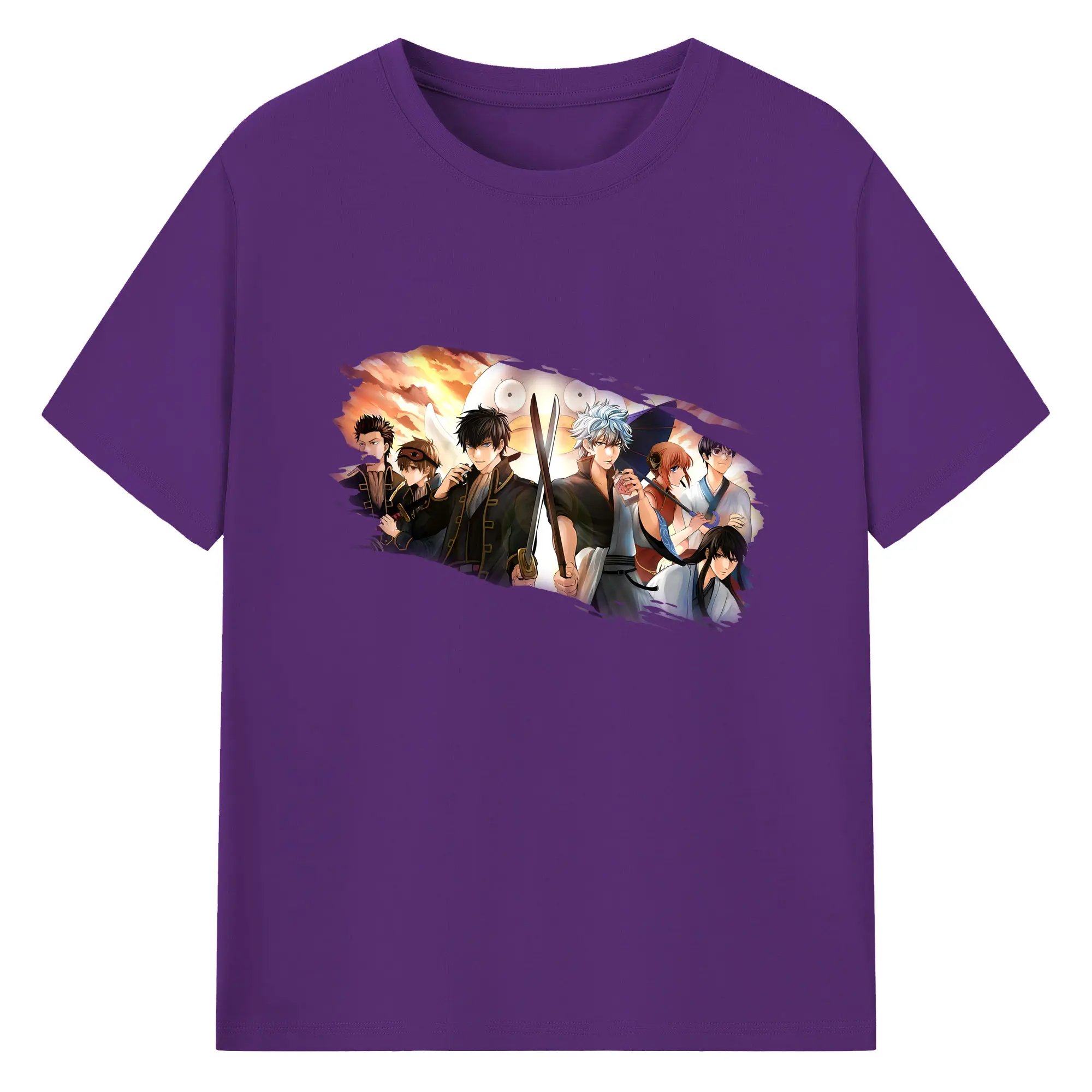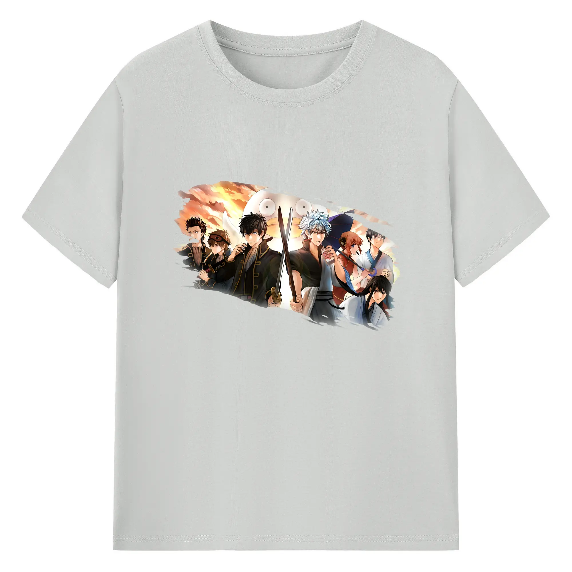 銀魂 グッズ 坂田 銀時 - 綿100% 半袖Tシャツ ・ バックプリント ・ 快適 通気性 ・ 日常使い 散歩 スポーツ用