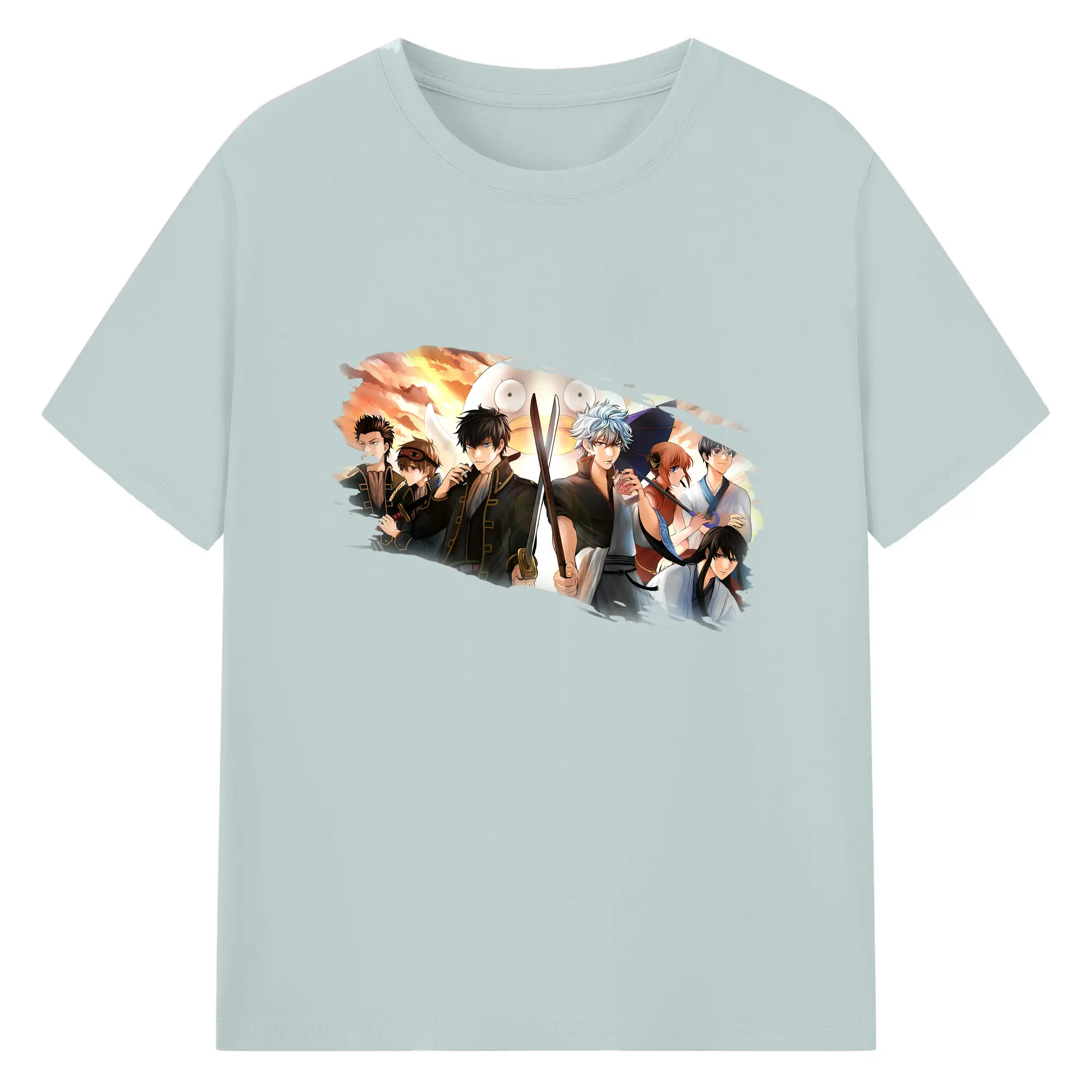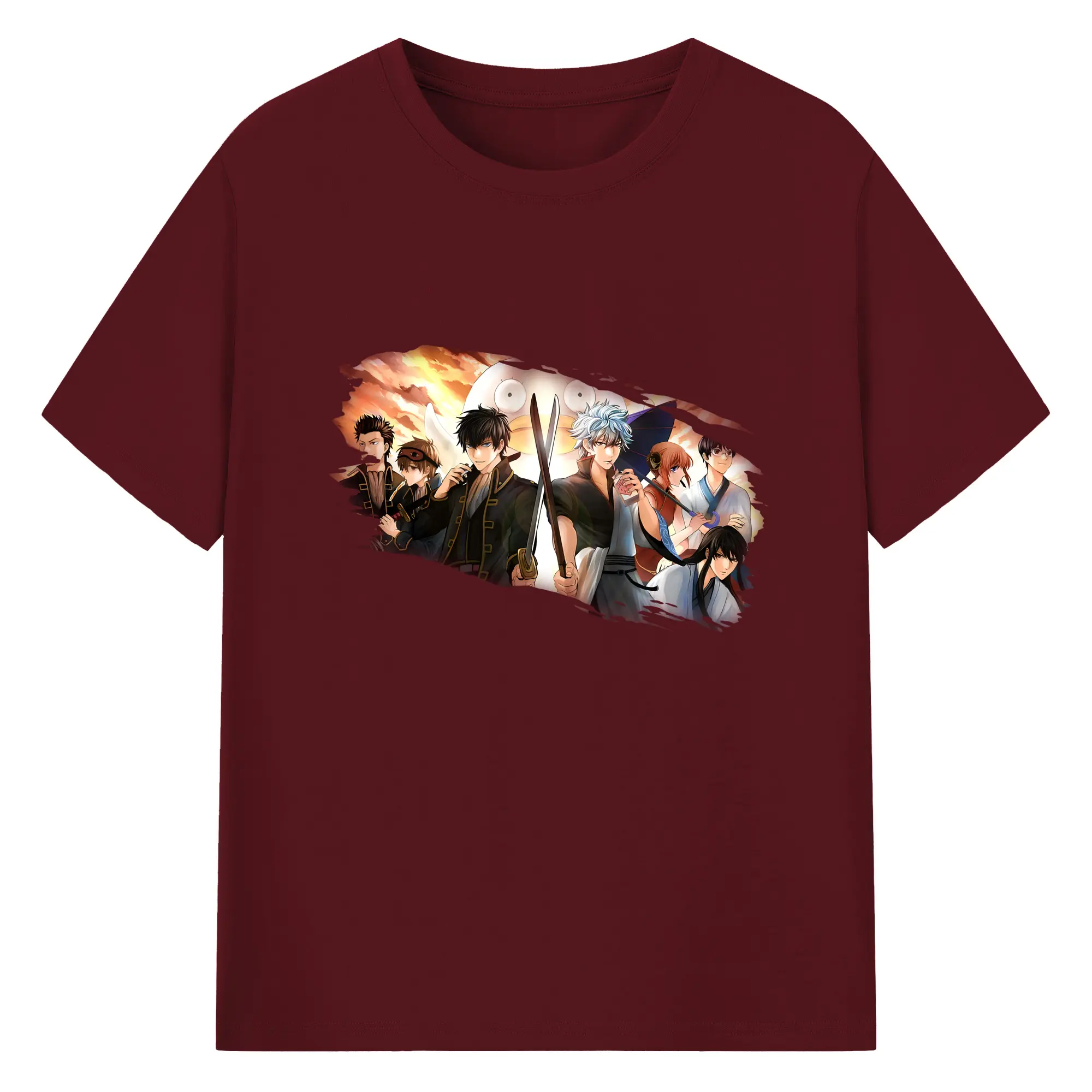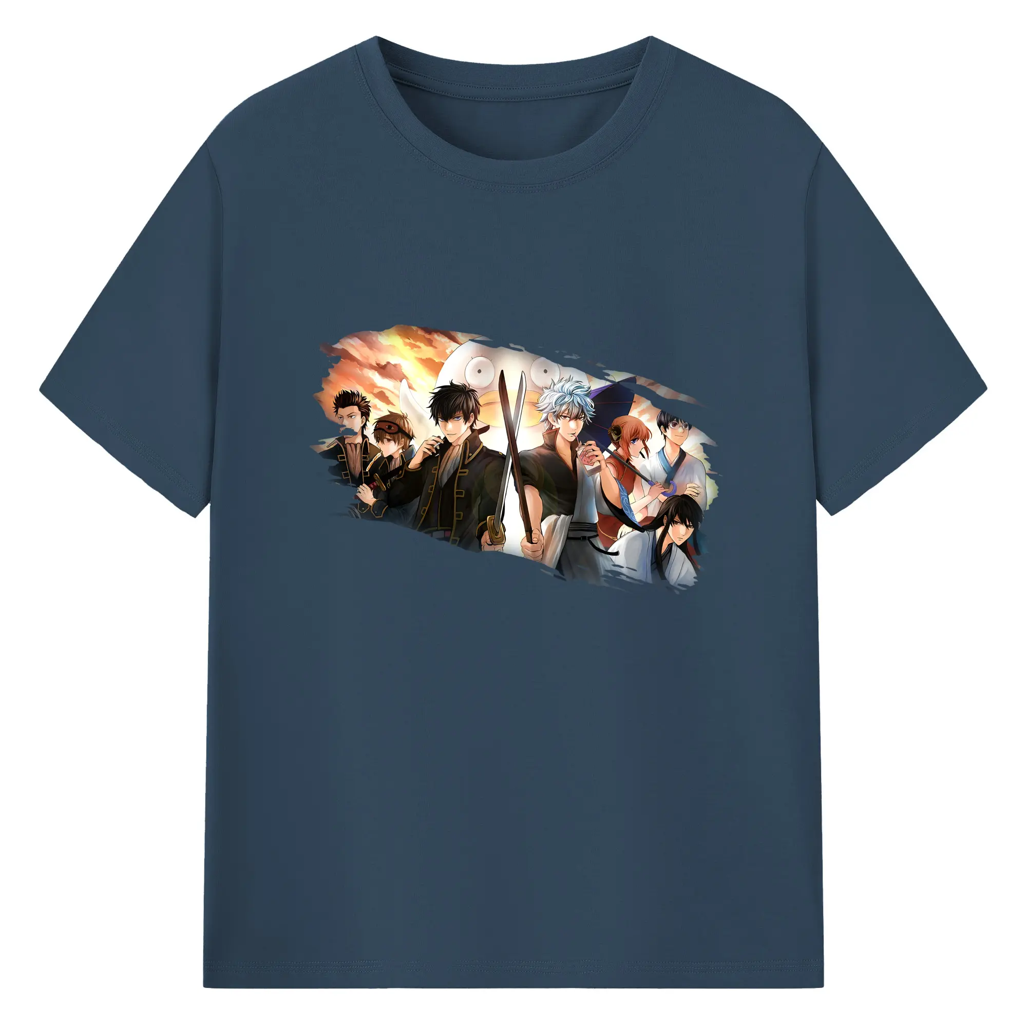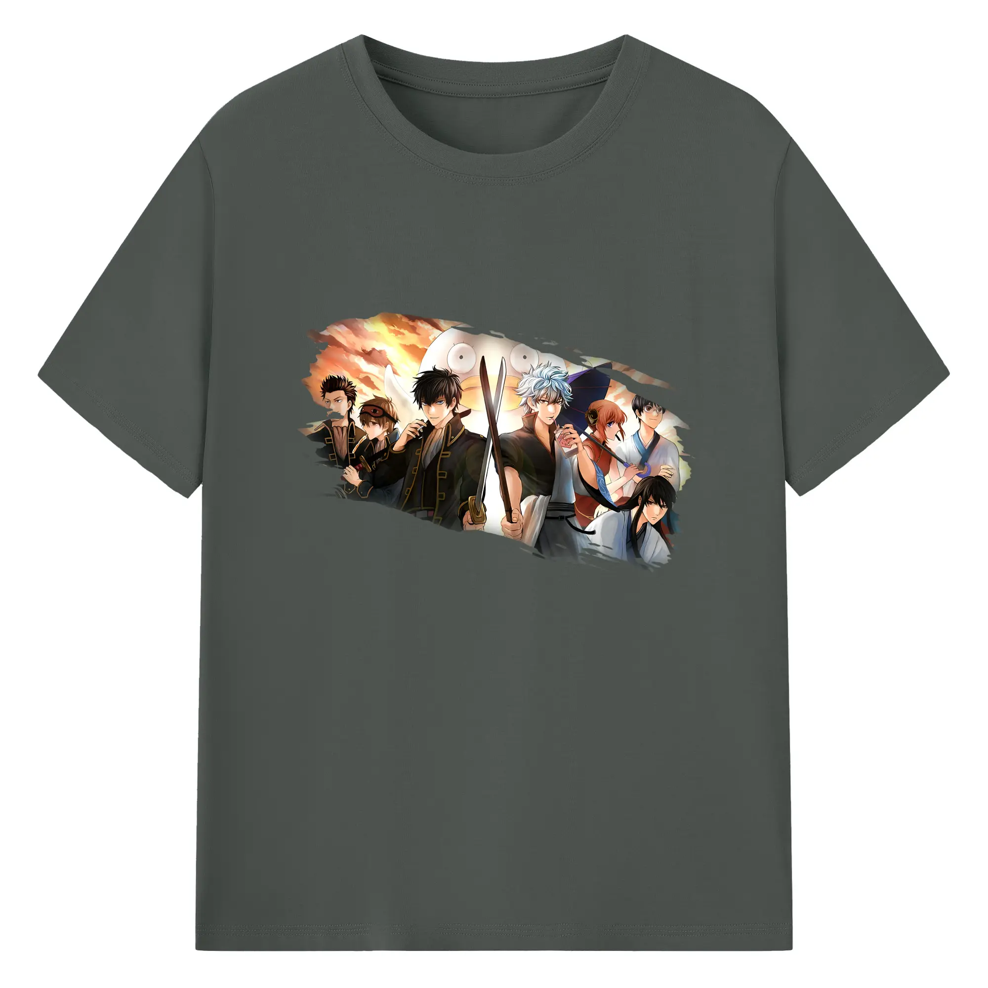 銀魂 グッズ 坂田 銀時 - 綿100% 半袖Tシャツ ・ バックプリント ・ 快適 通気性 ・ 日常使い 散歩 スポーツ用