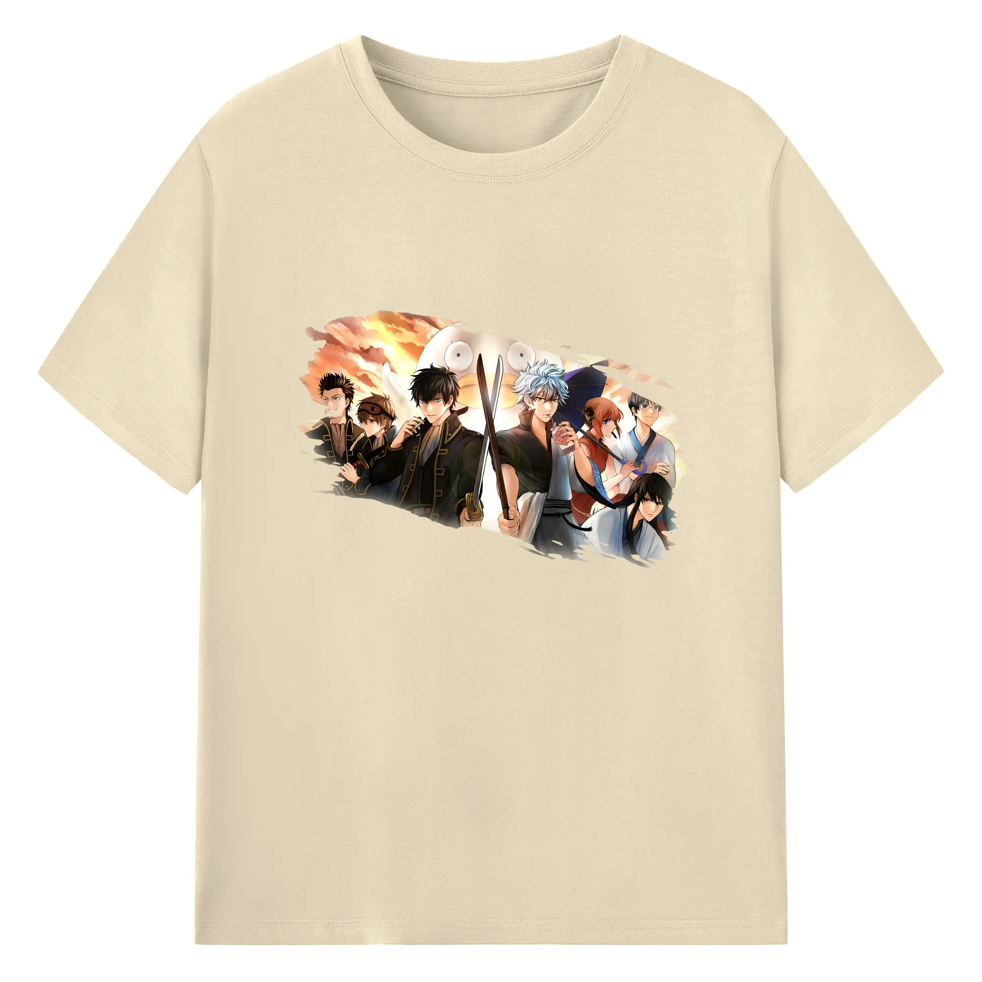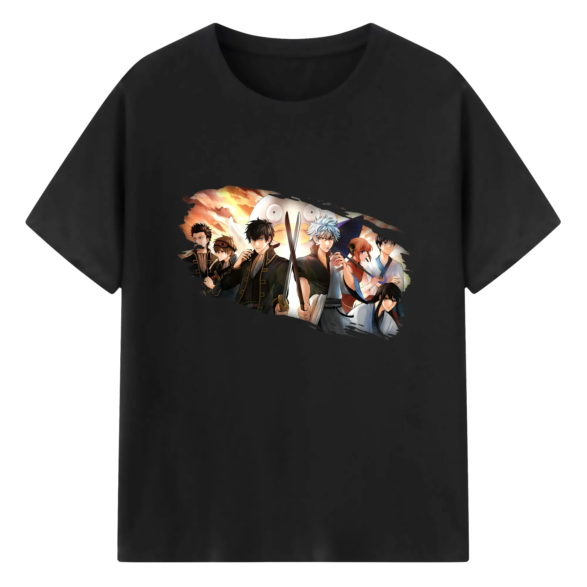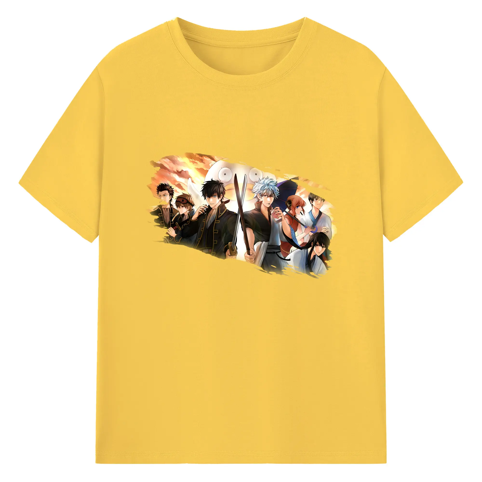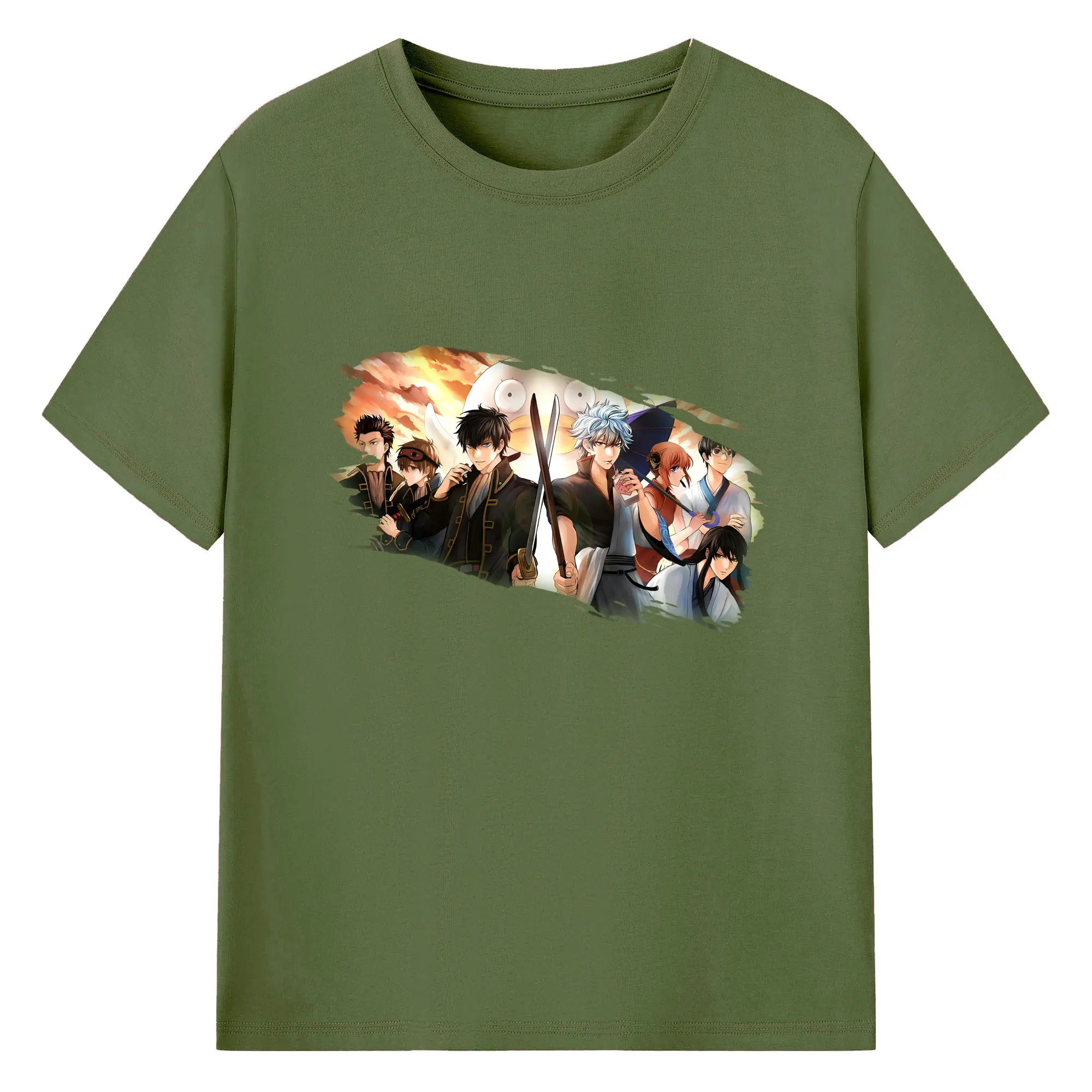 銀魂 グッズ 坂田 銀時 - 綿100% 半袖Tシャツ ・ バックプリント ・ 快適 通気性 ・ 日常使い 散歩 スポーツ用
