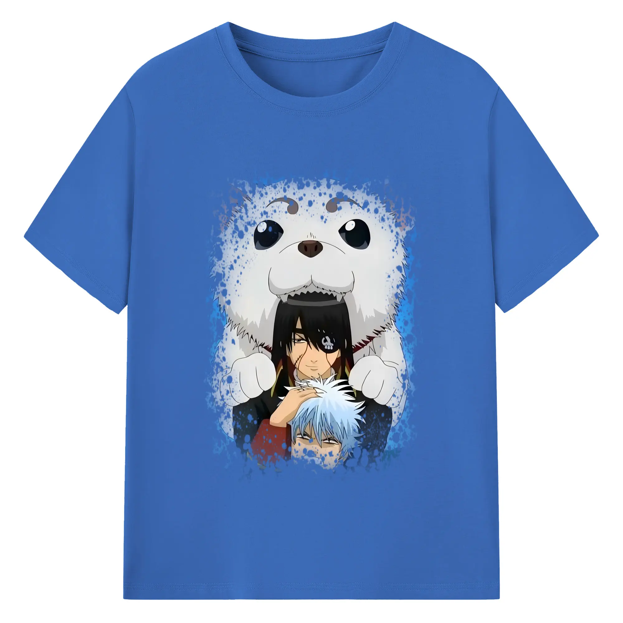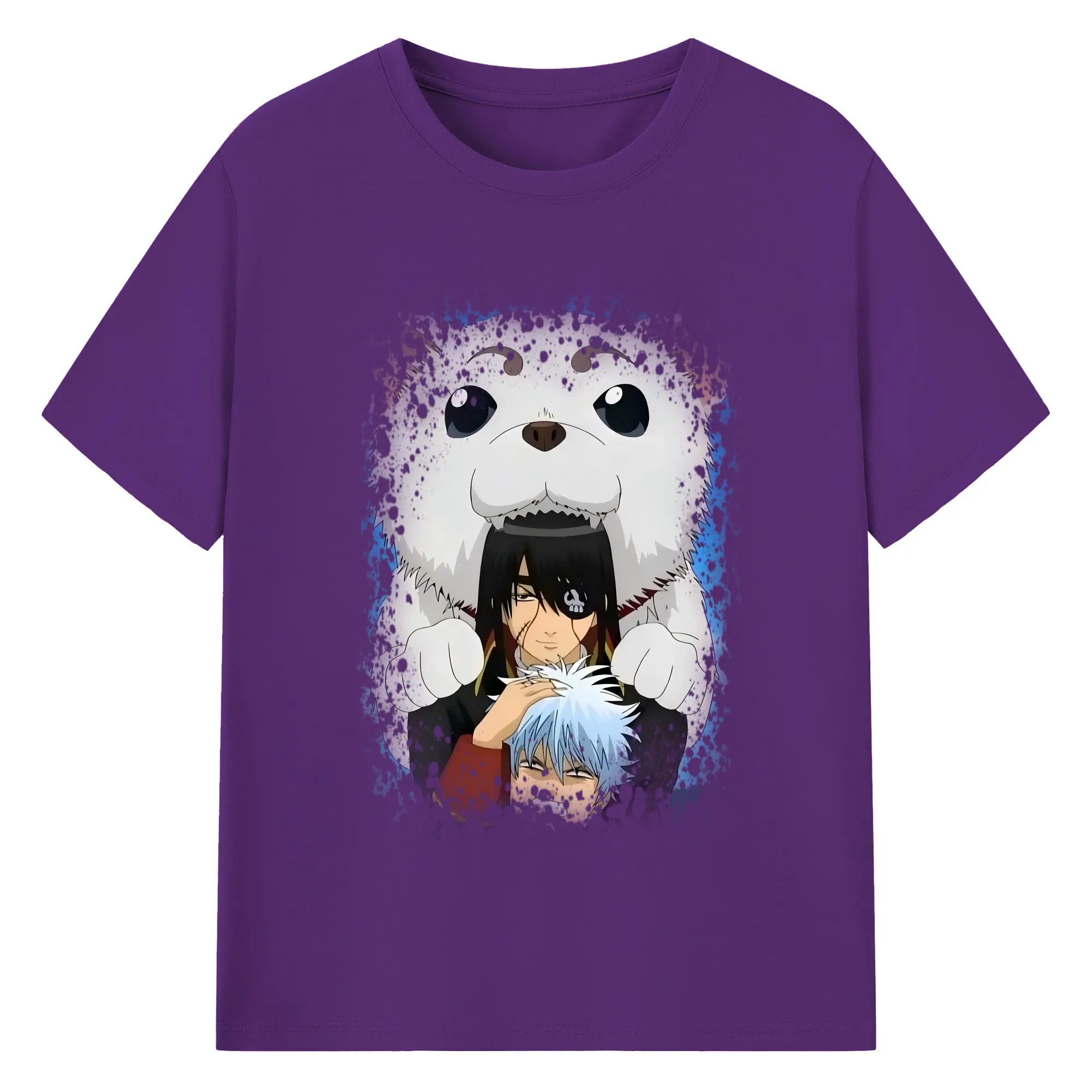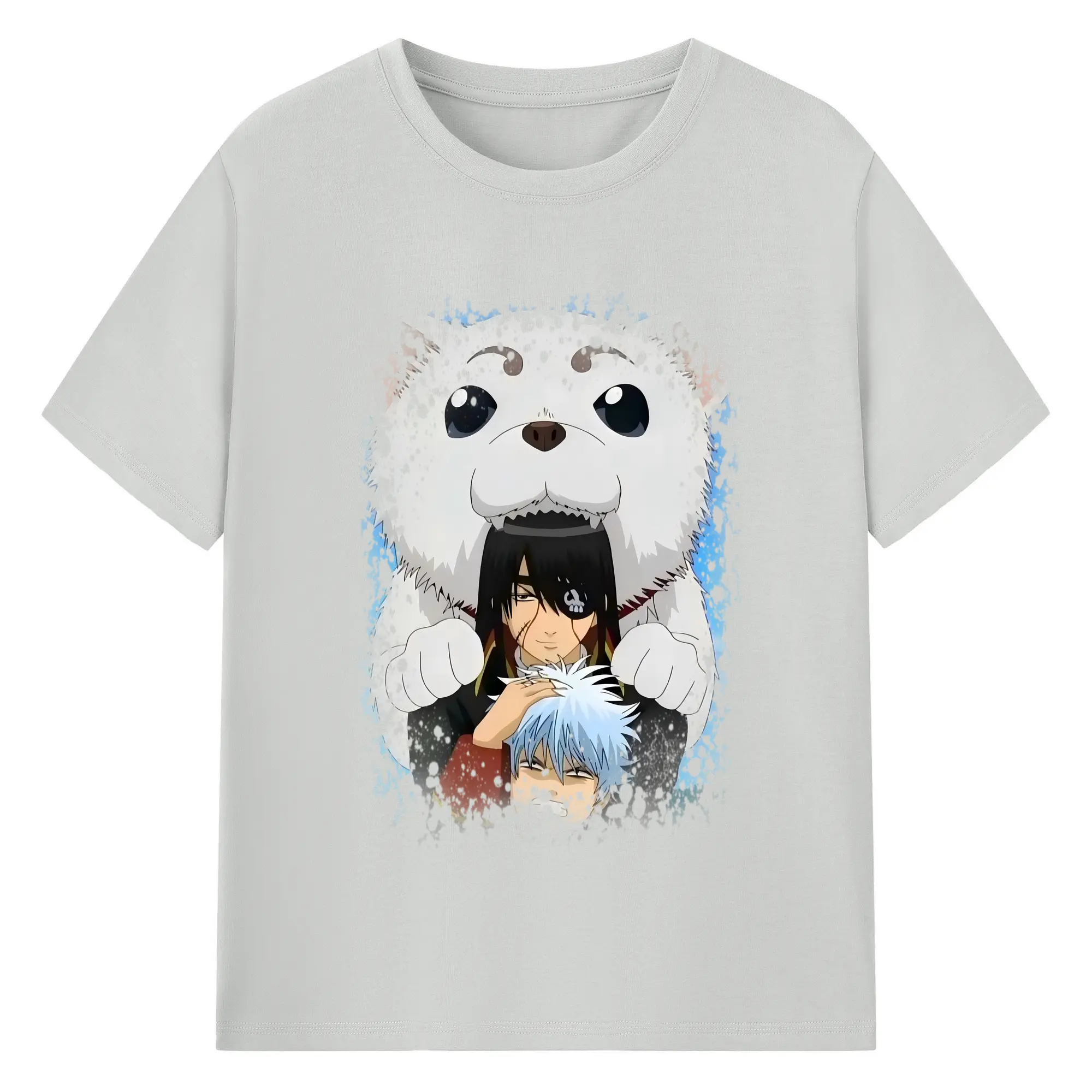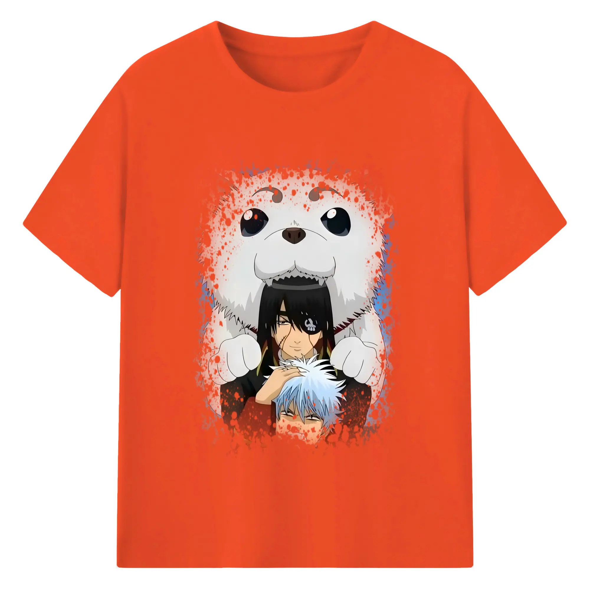 銀魂 グッズ 坂田 銀時 - 綿100% 半袖Tシャツ ・ バックプリント ・ 快適 通気性 ・ 日常使い 散歩 スポーツ用
