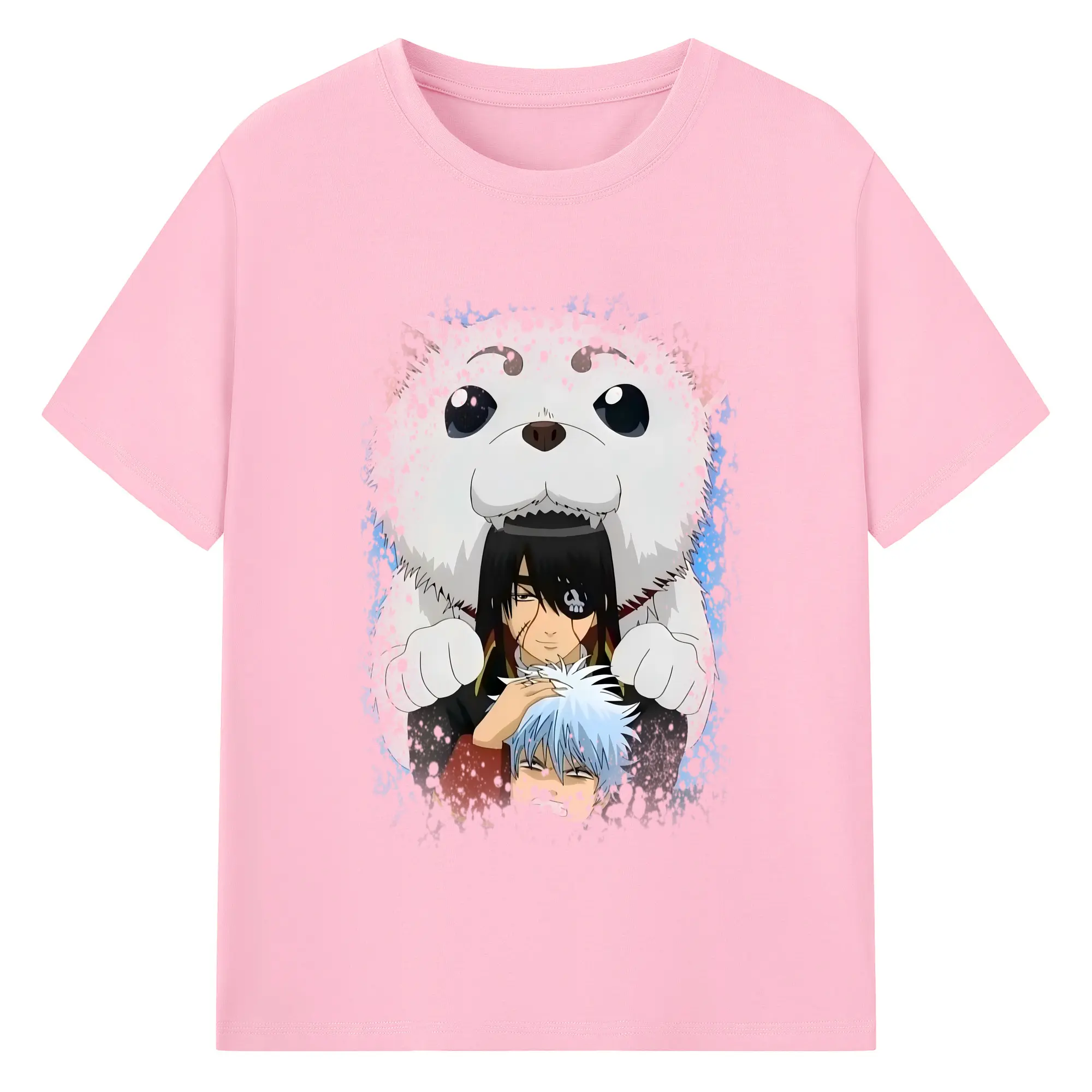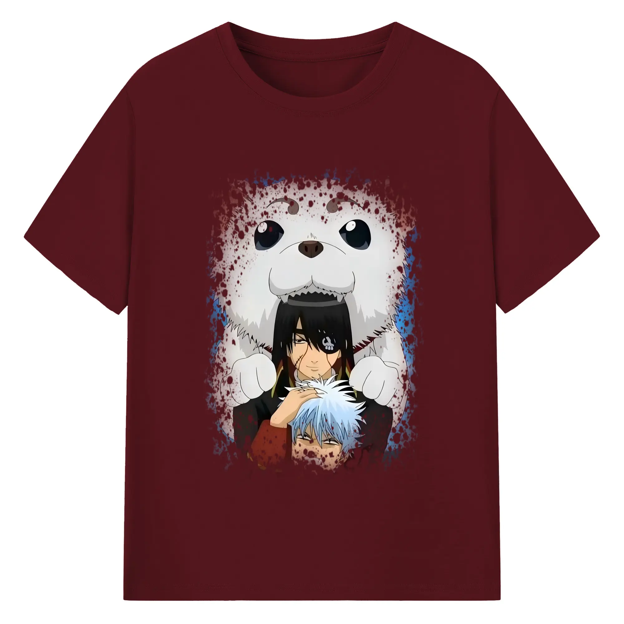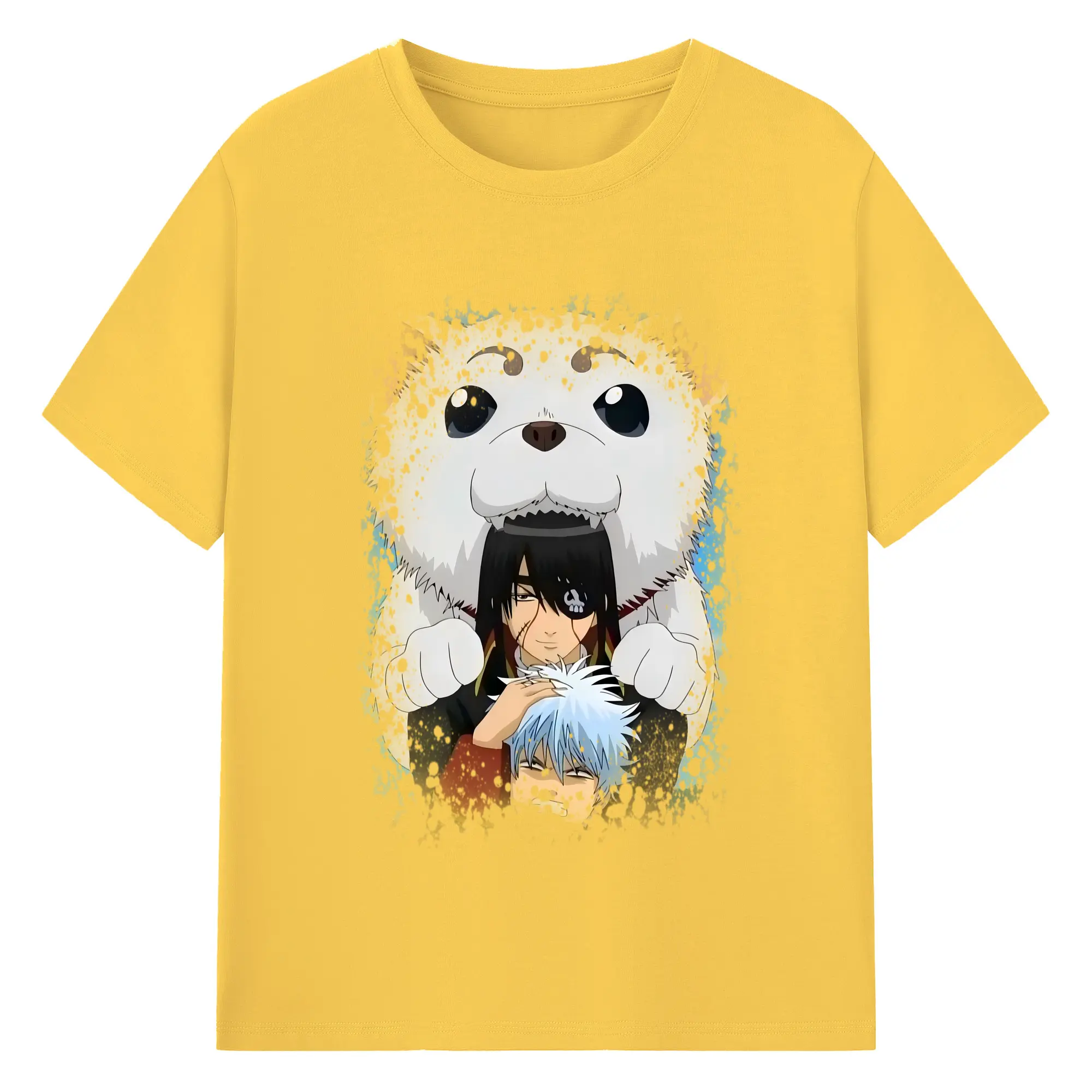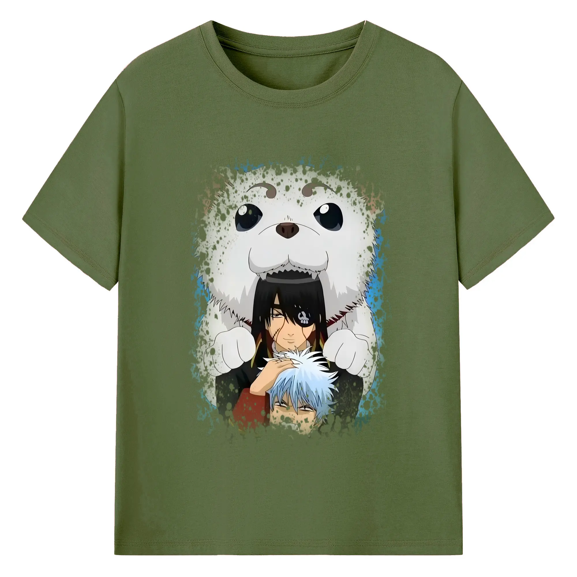 銀魂 グッズ 坂田 銀時 - 綿100% 半袖Tシャツ ・ バックプリント ・ 快適 通気性 ・ 日常使い 散歩 スポーツ用
