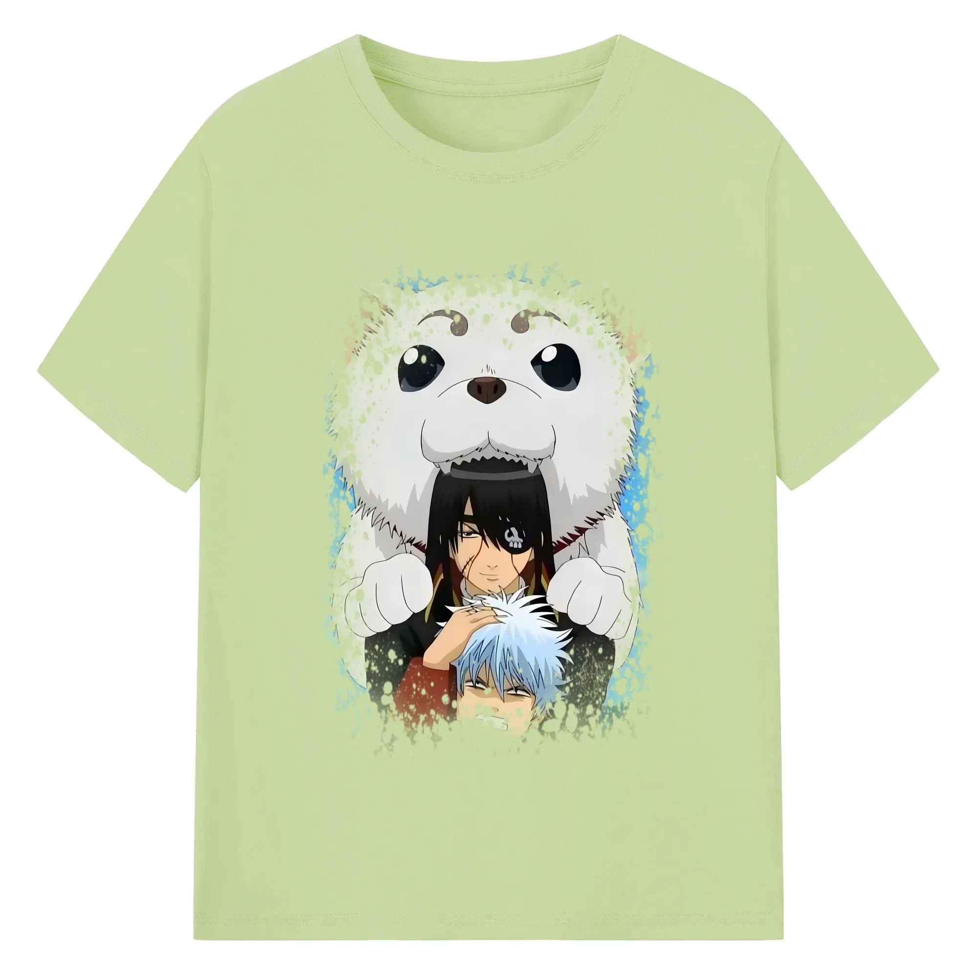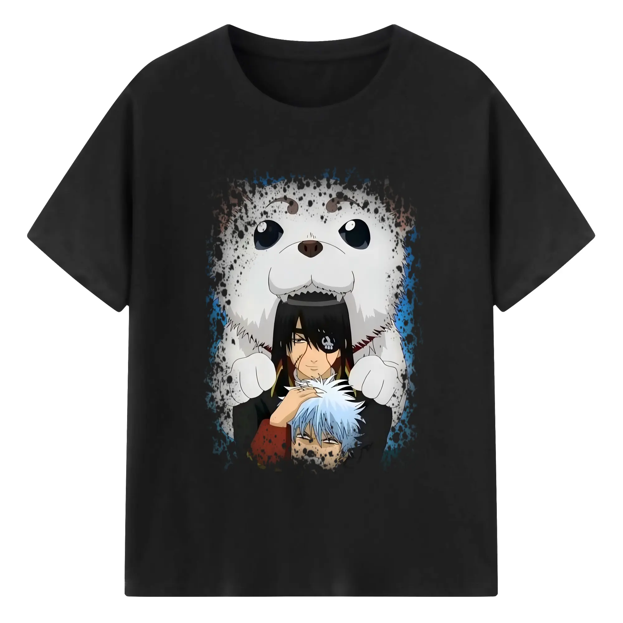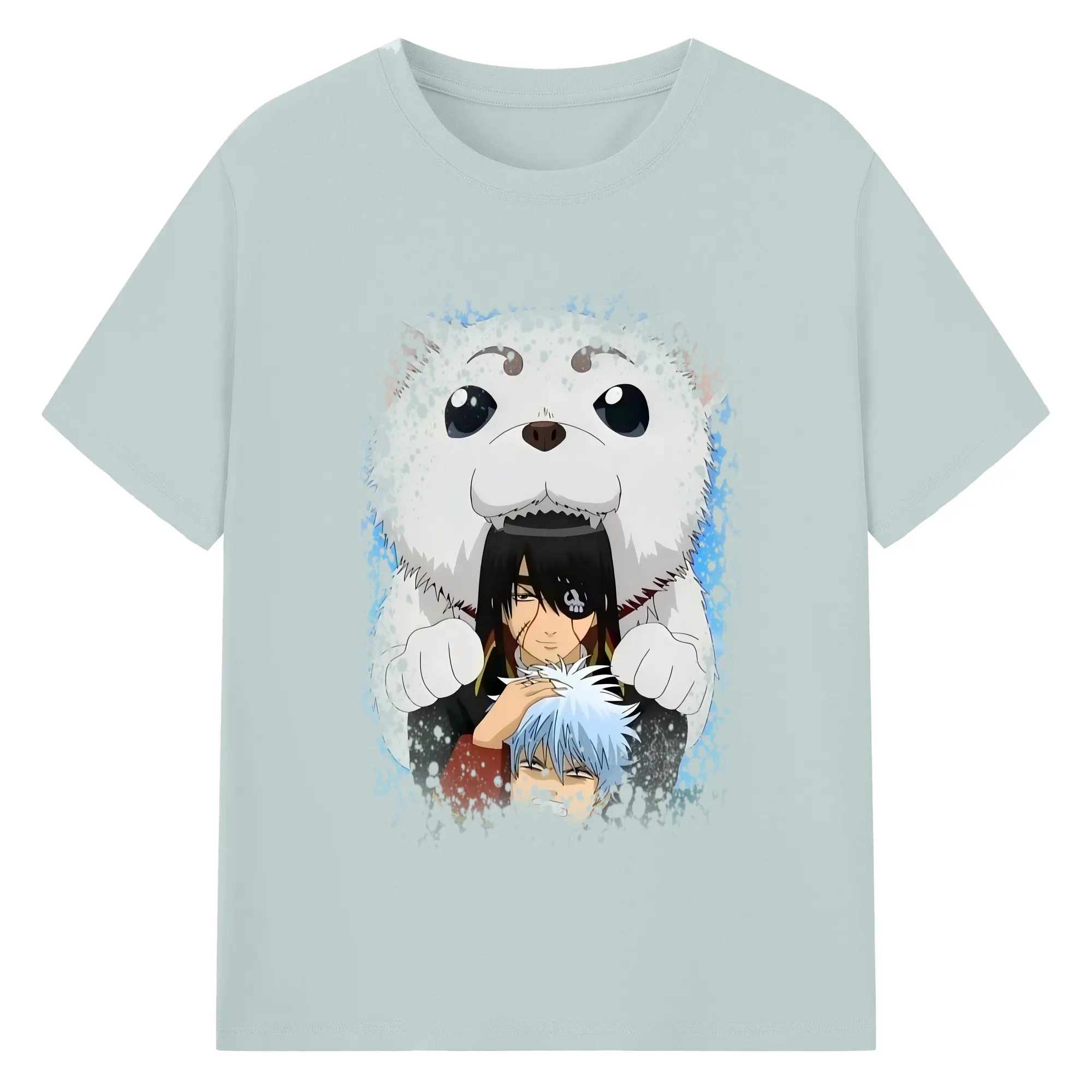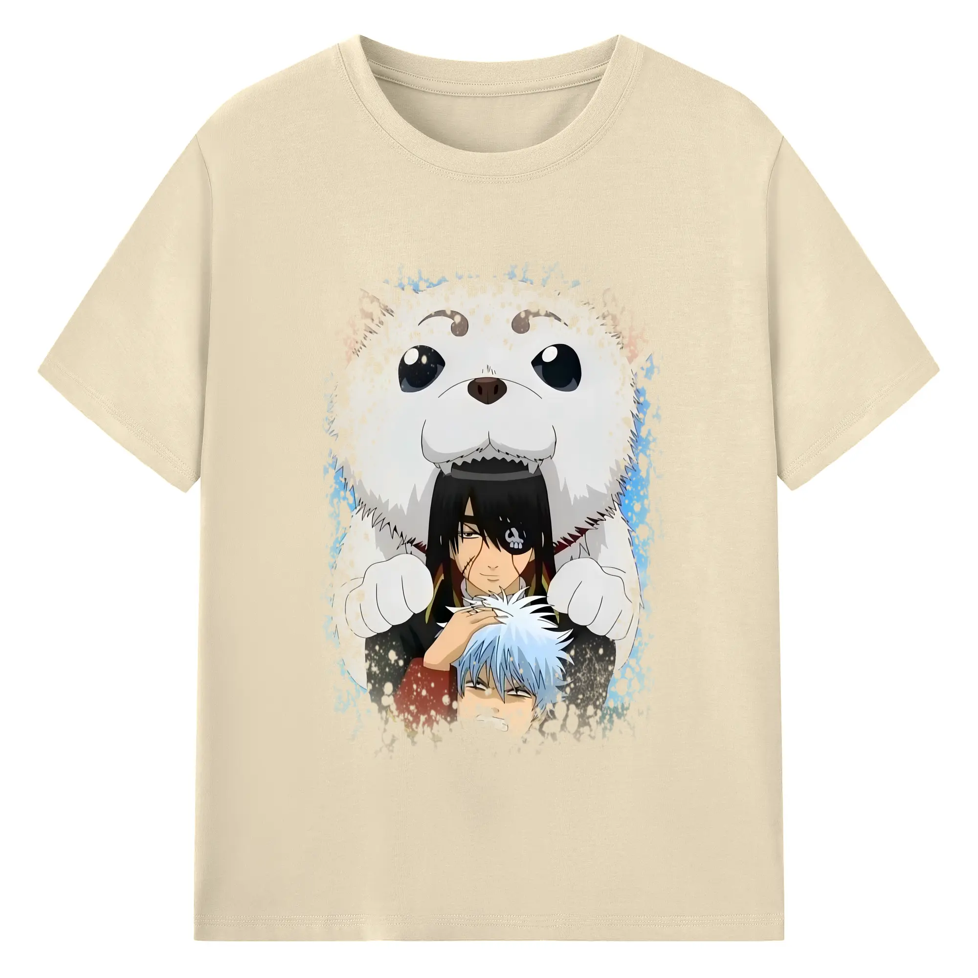 銀魂 グッズ 坂田 銀時 - 綿100% 半袖Tシャツ ・ バックプリント ・ 快適 通気性 ・ 日常使い 散歩 スポーツ用