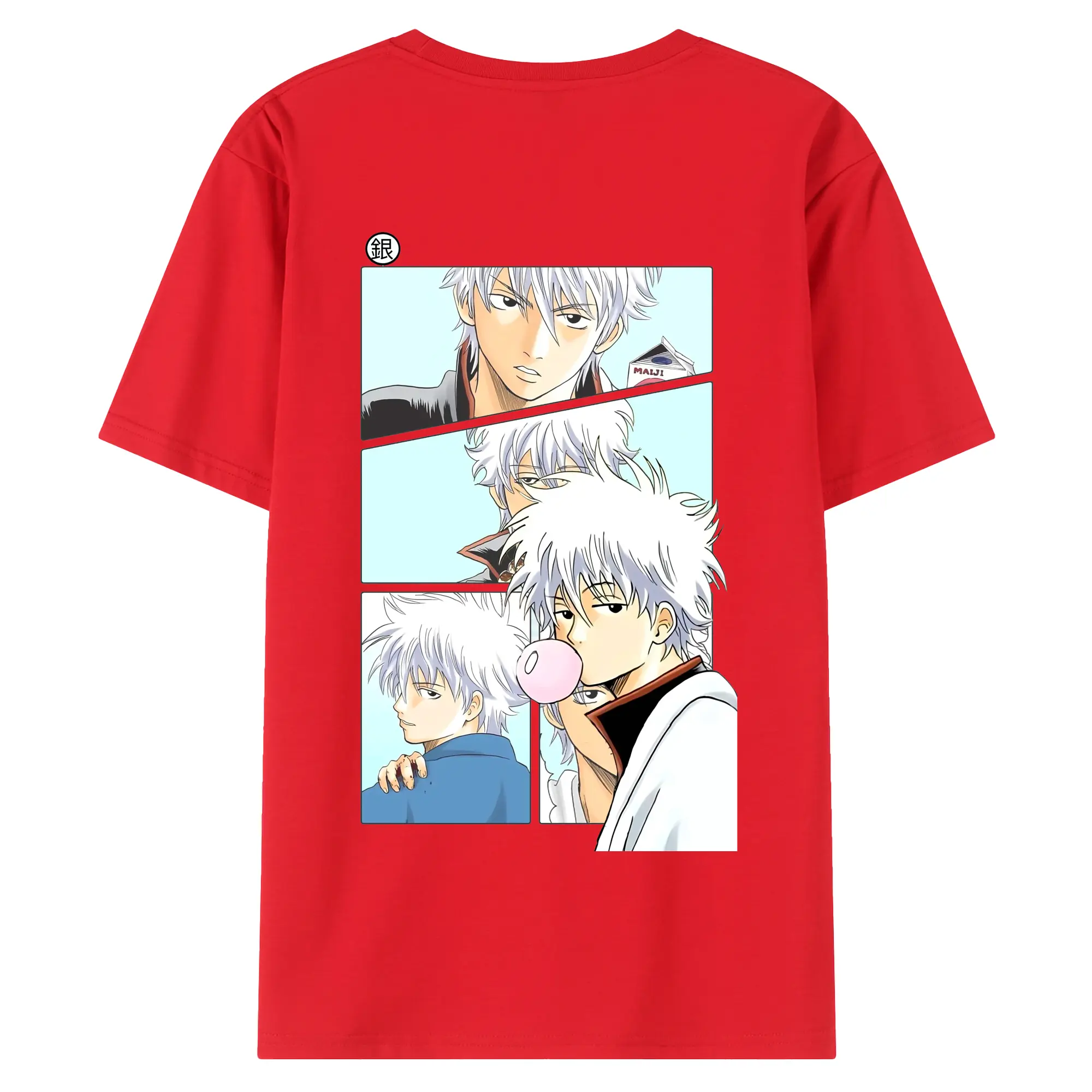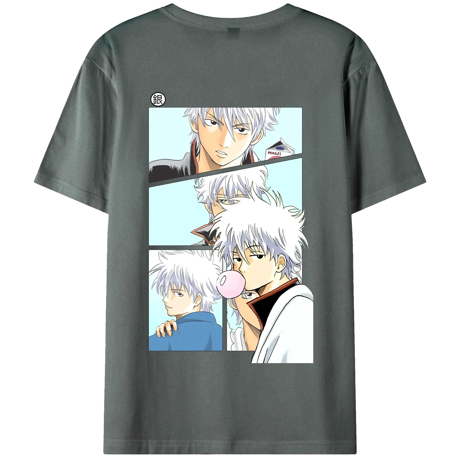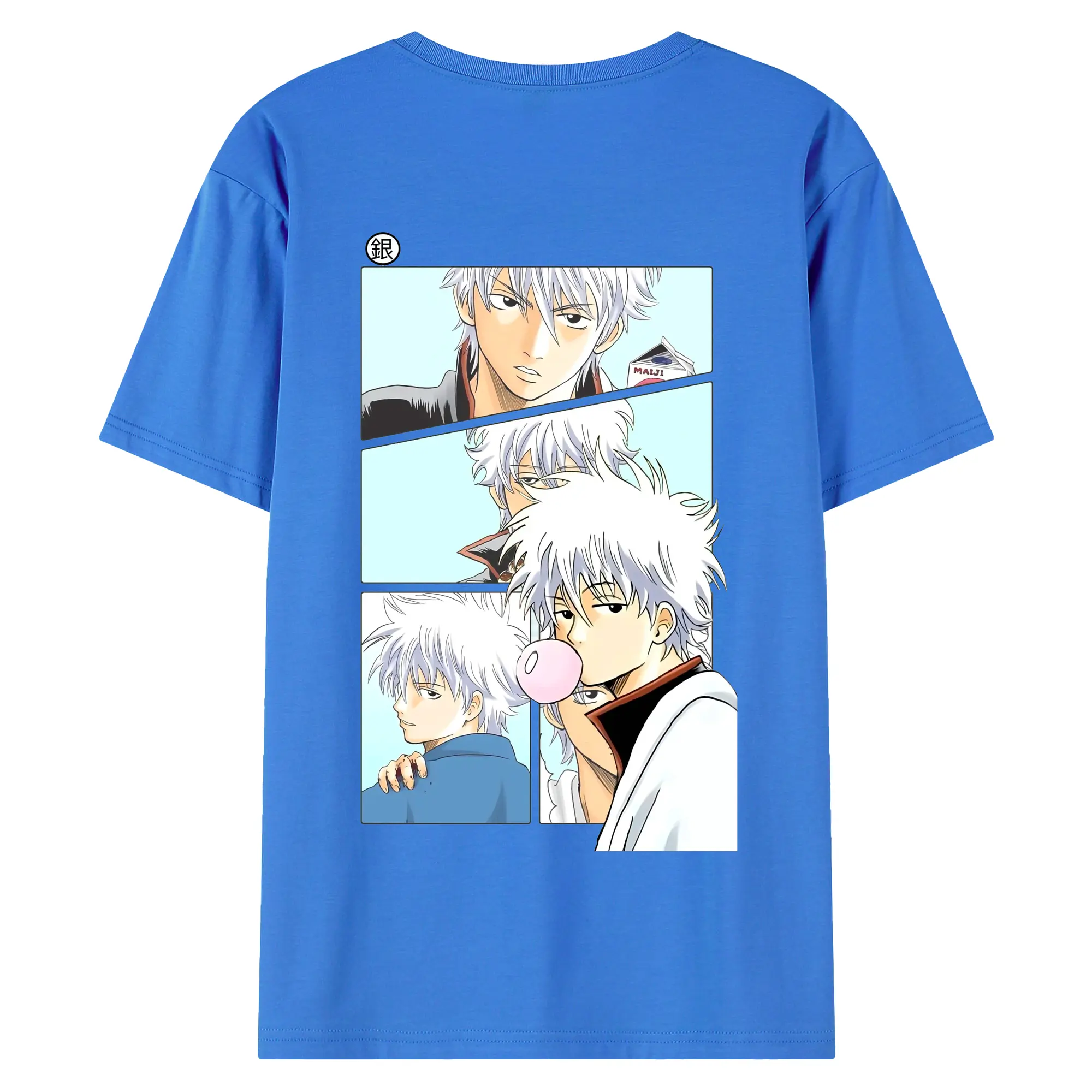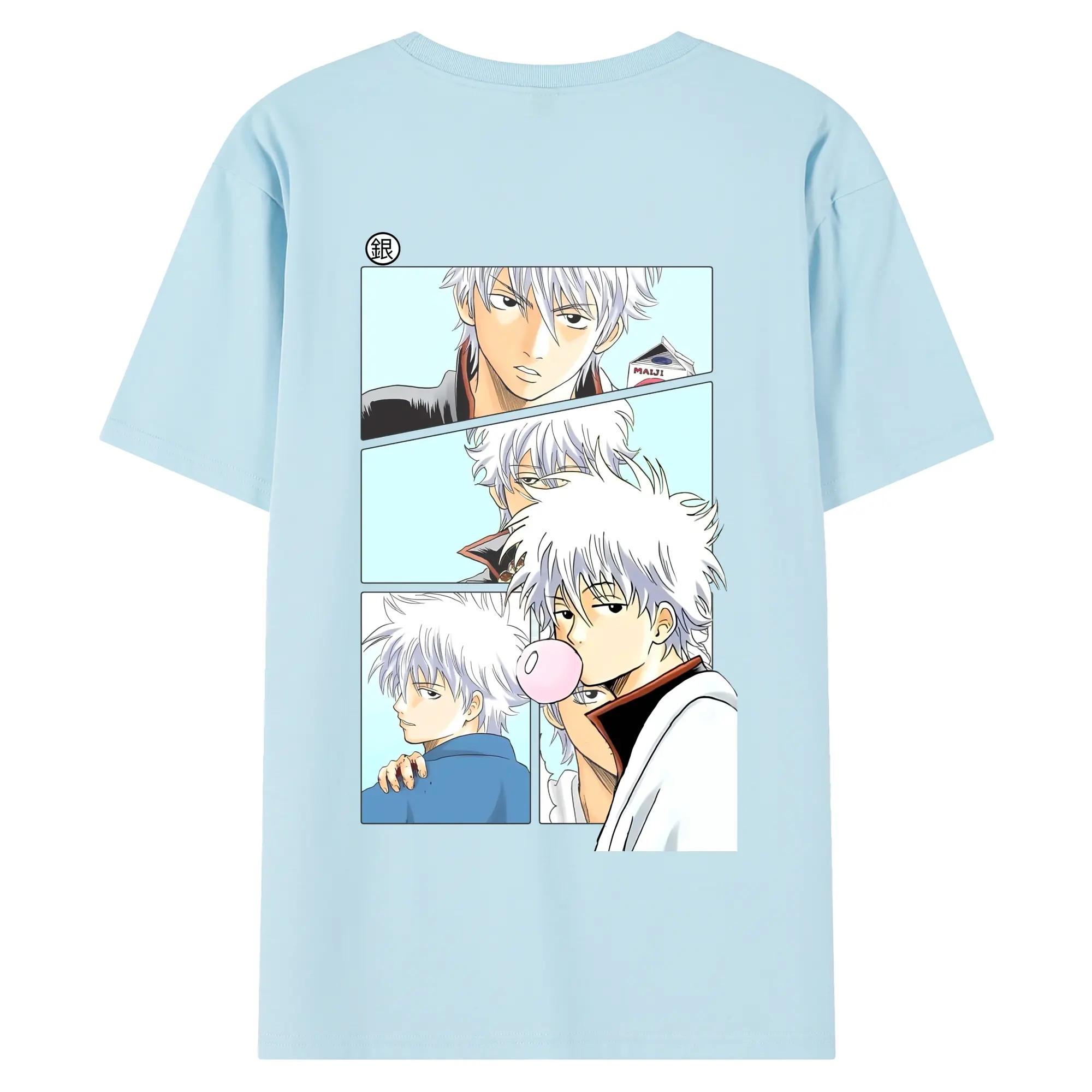 銀魂 グッズ 坂田 銀時 - 綿100% 半袖Tシャツ ・ フロントプリント ・ 快適 通気性 ・ 日常使い 散歩 スポーツ用