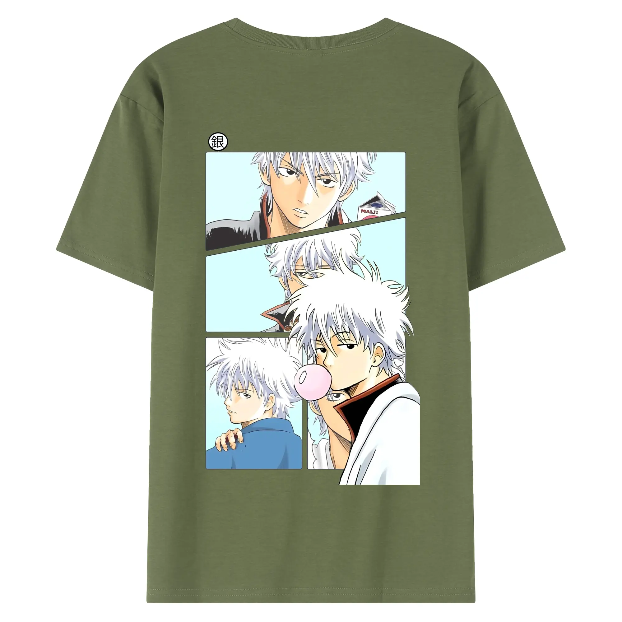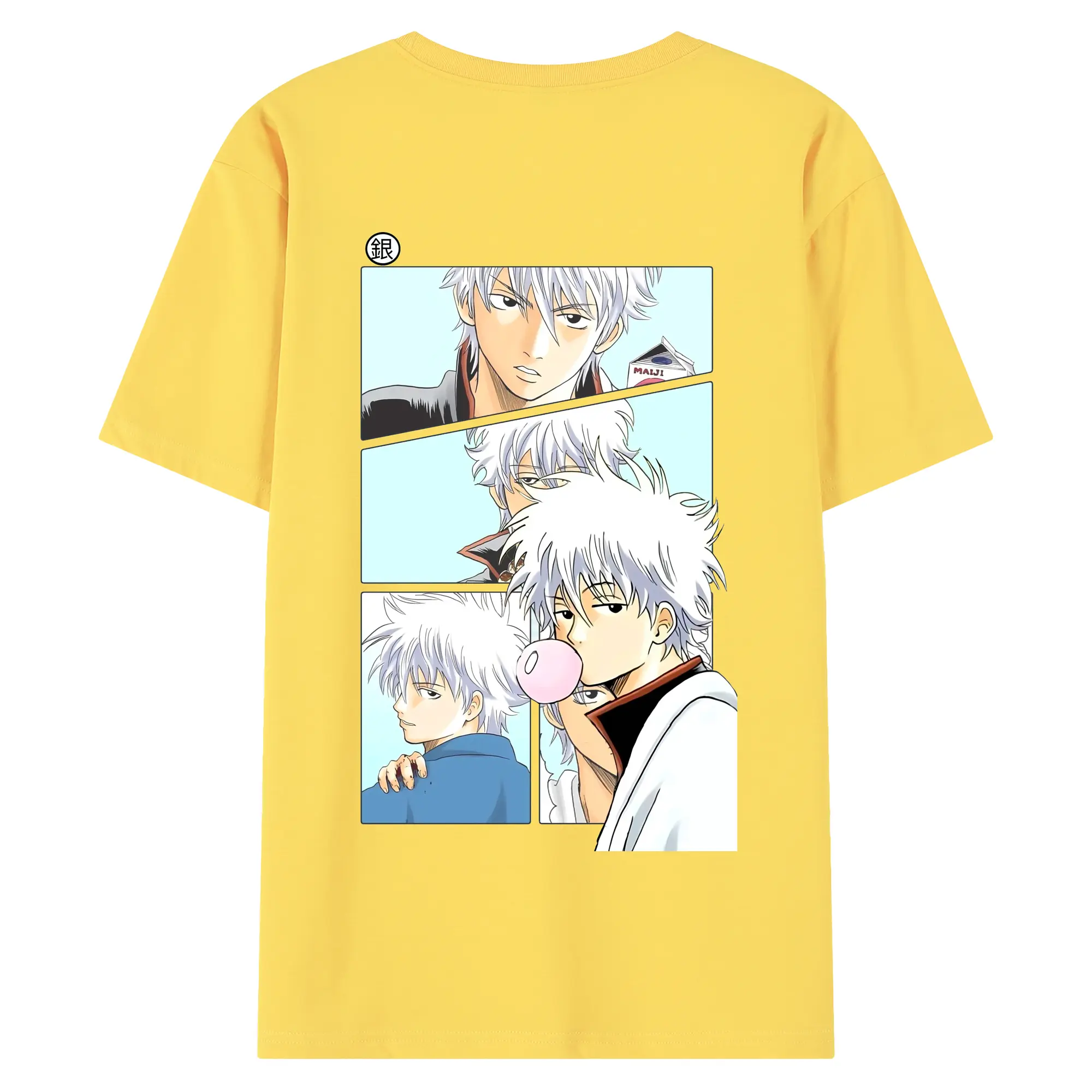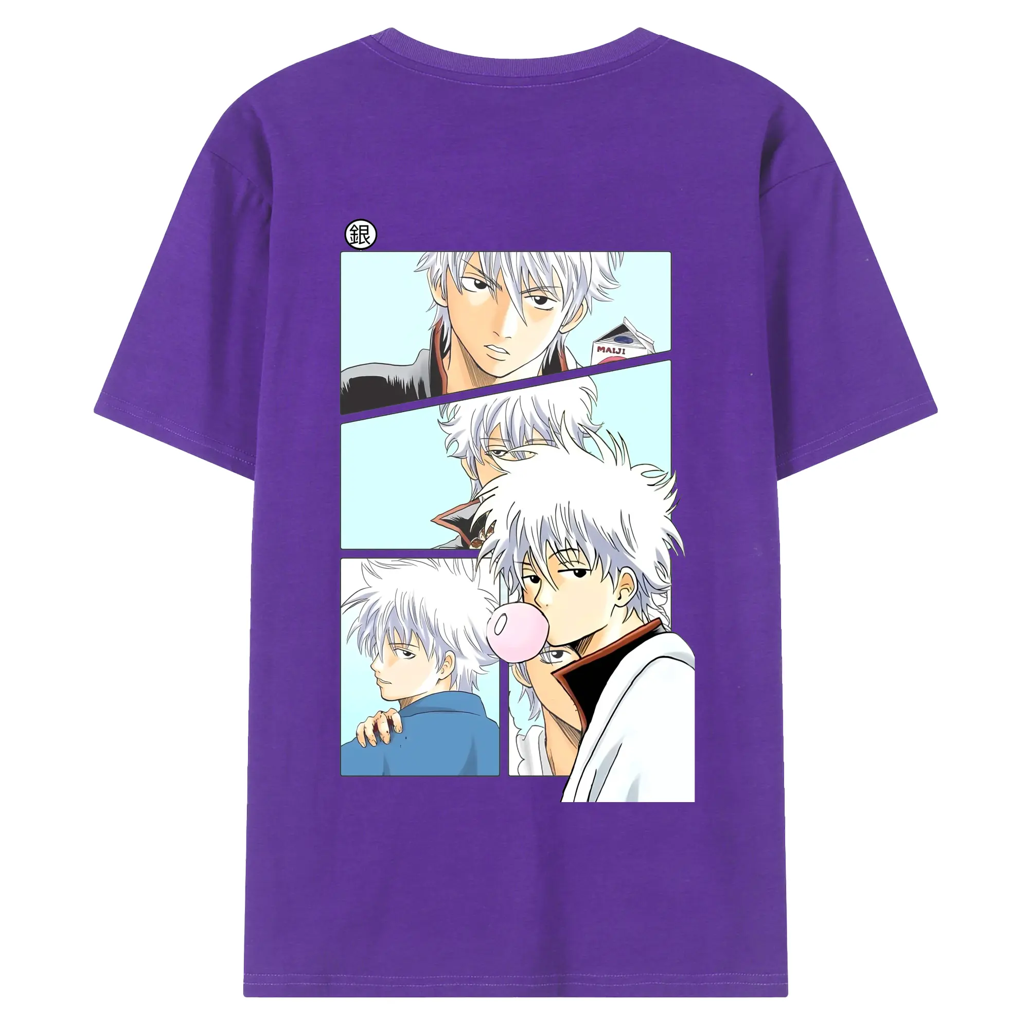 銀魂 グッズ 坂田 銀時 - 綿100% 半袖Tシャツ ・ フロントプリント ・ 快適 通気性 ・ 日常使い 散歩 スポーツ用