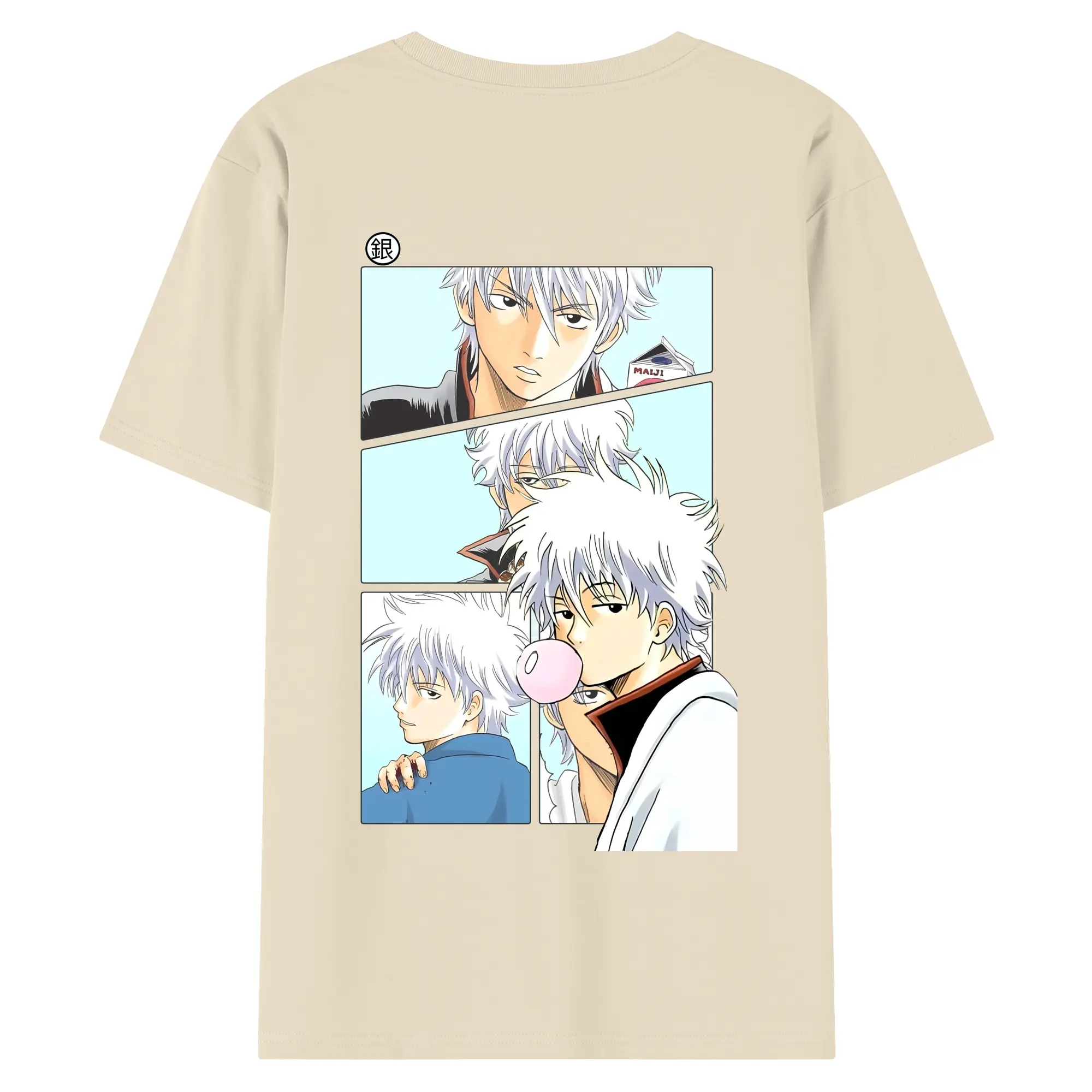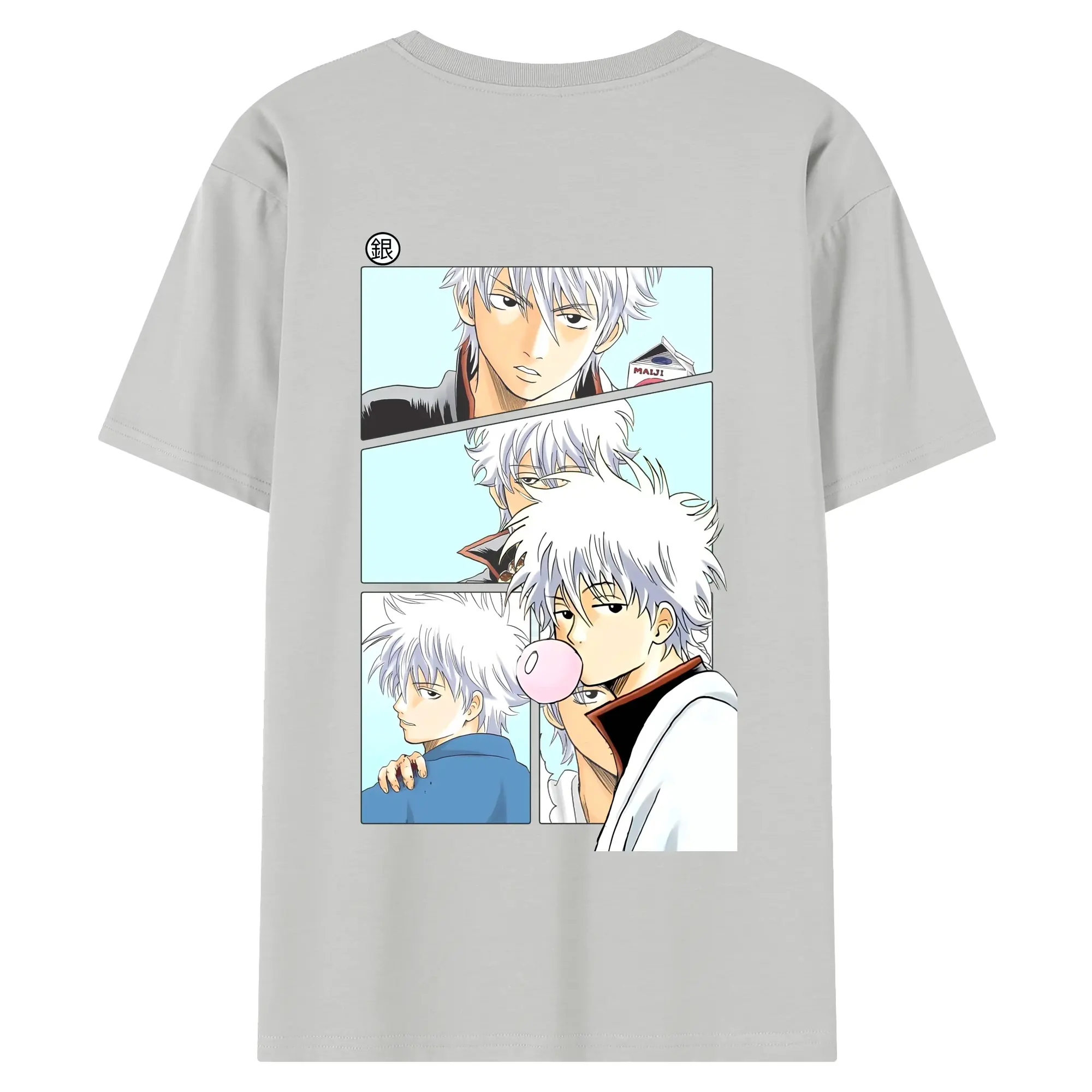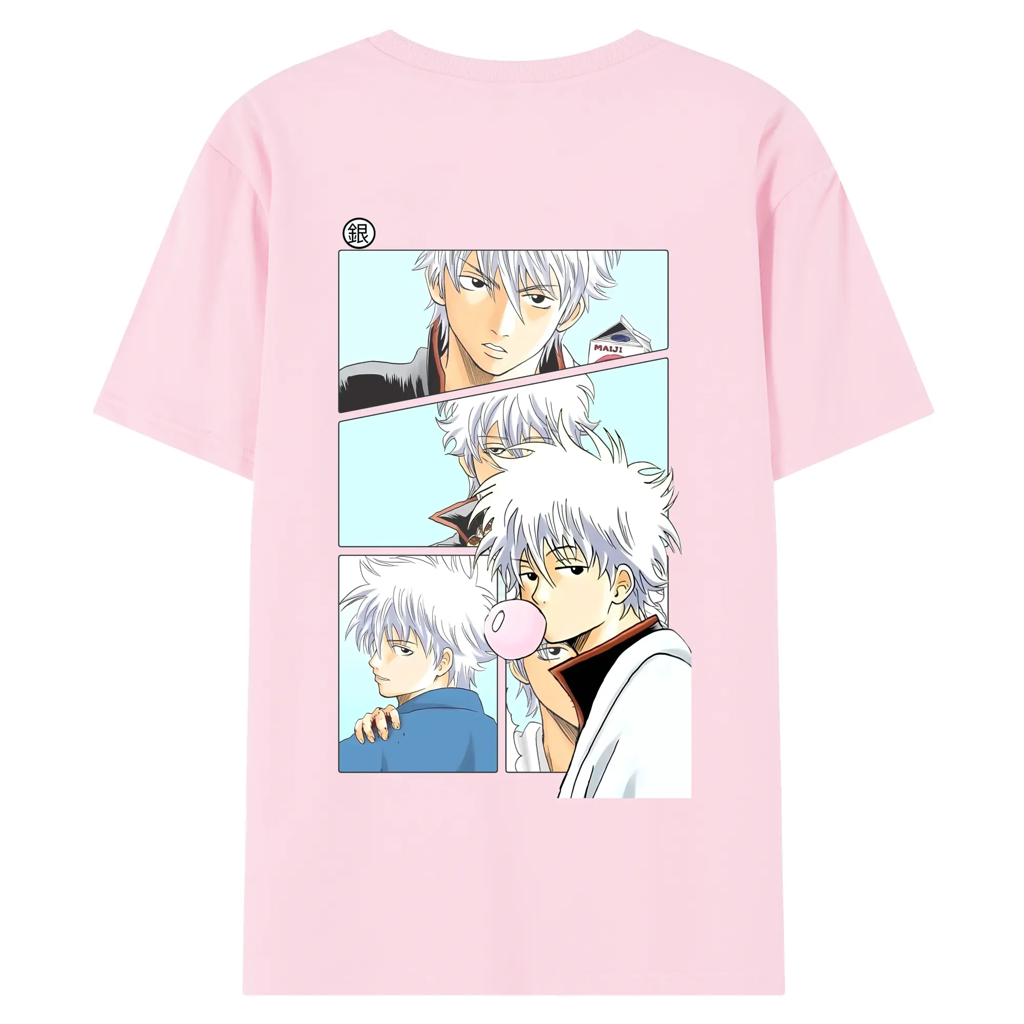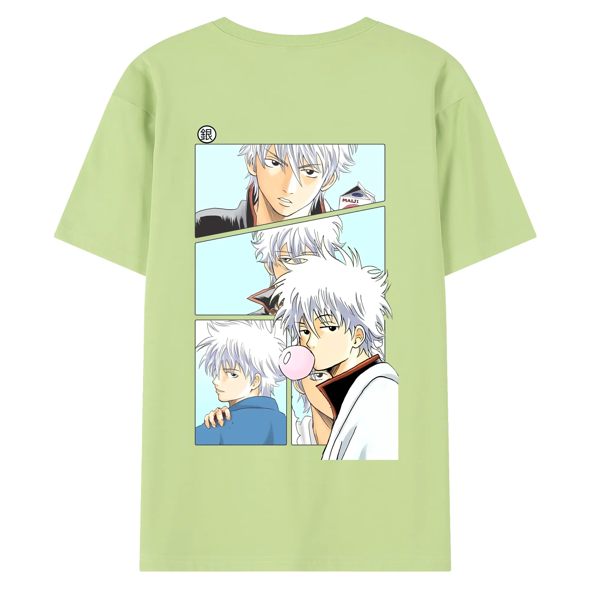 銀魂 グッズ 坂田 銀時 - 綿100% 半袖Tシャツ ・ フロントプリント ・ 快適 通気性 ・ 日常使い 散歩 スポーツ用