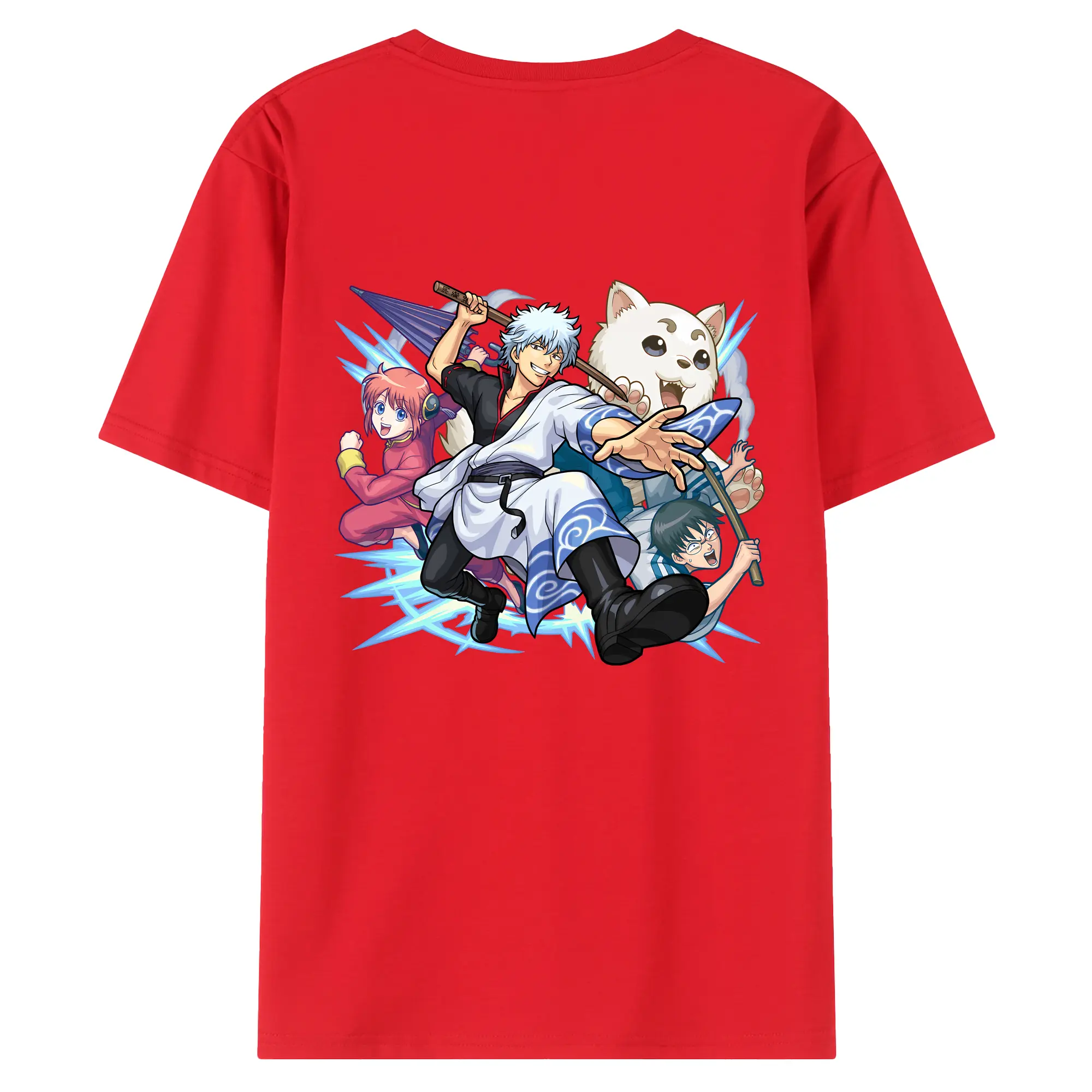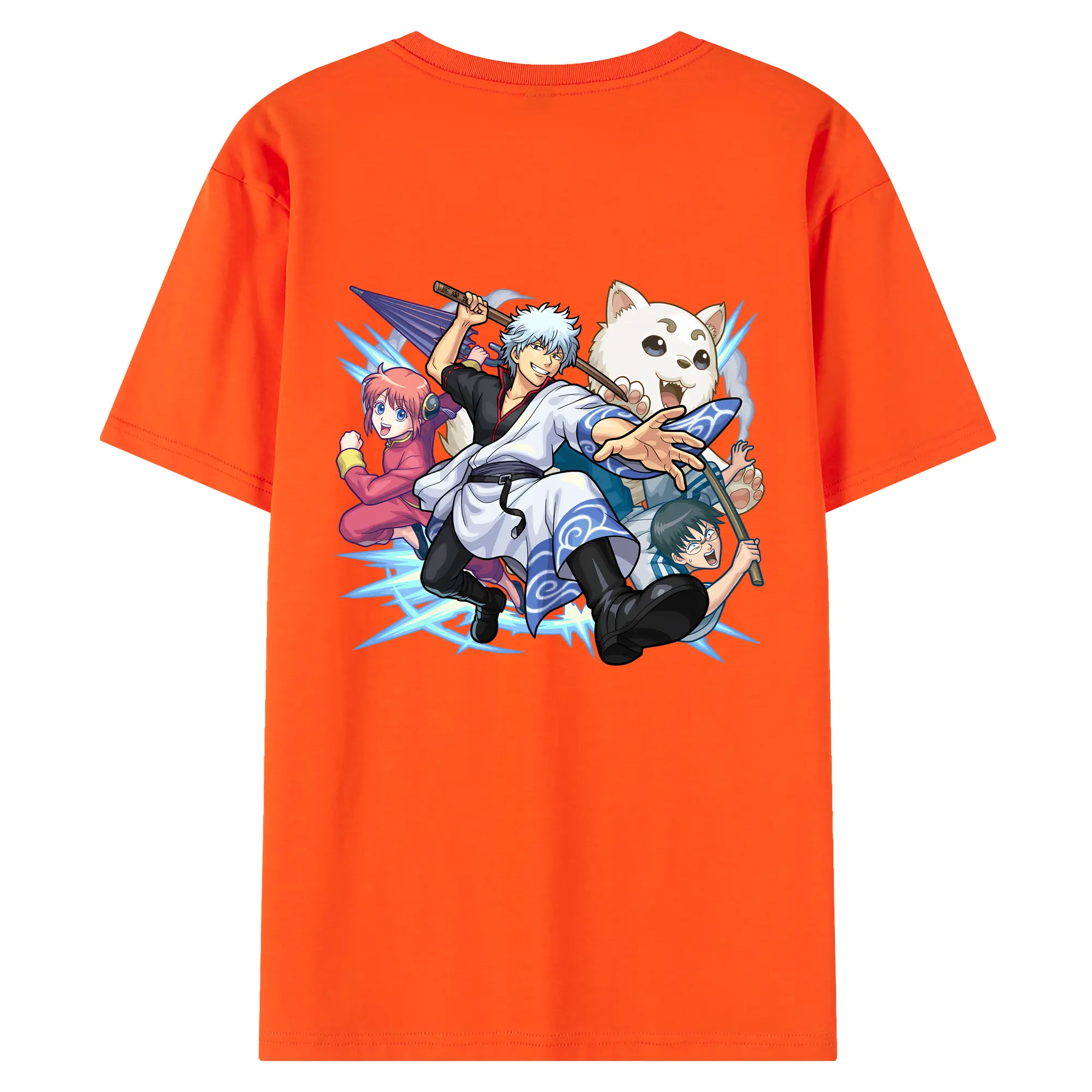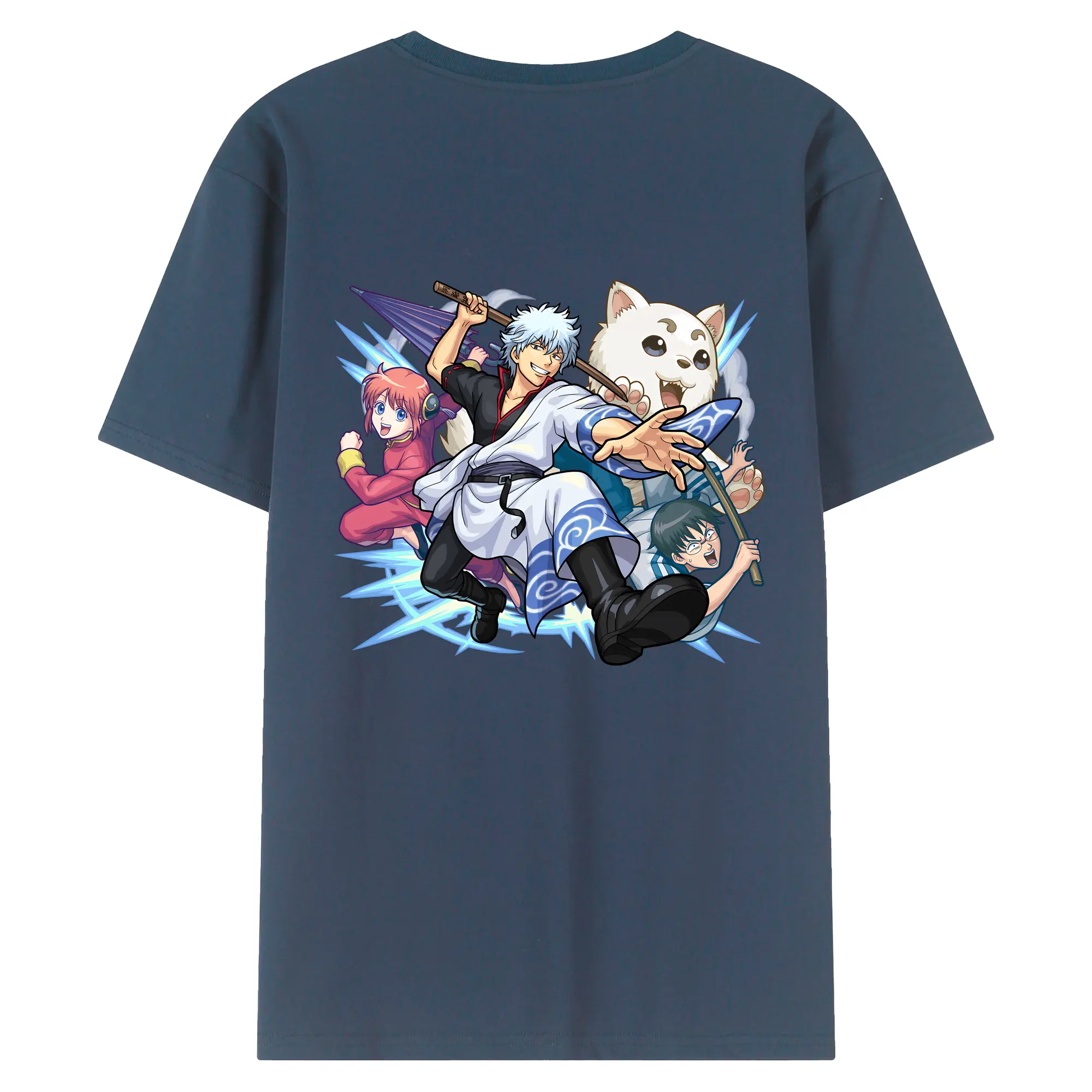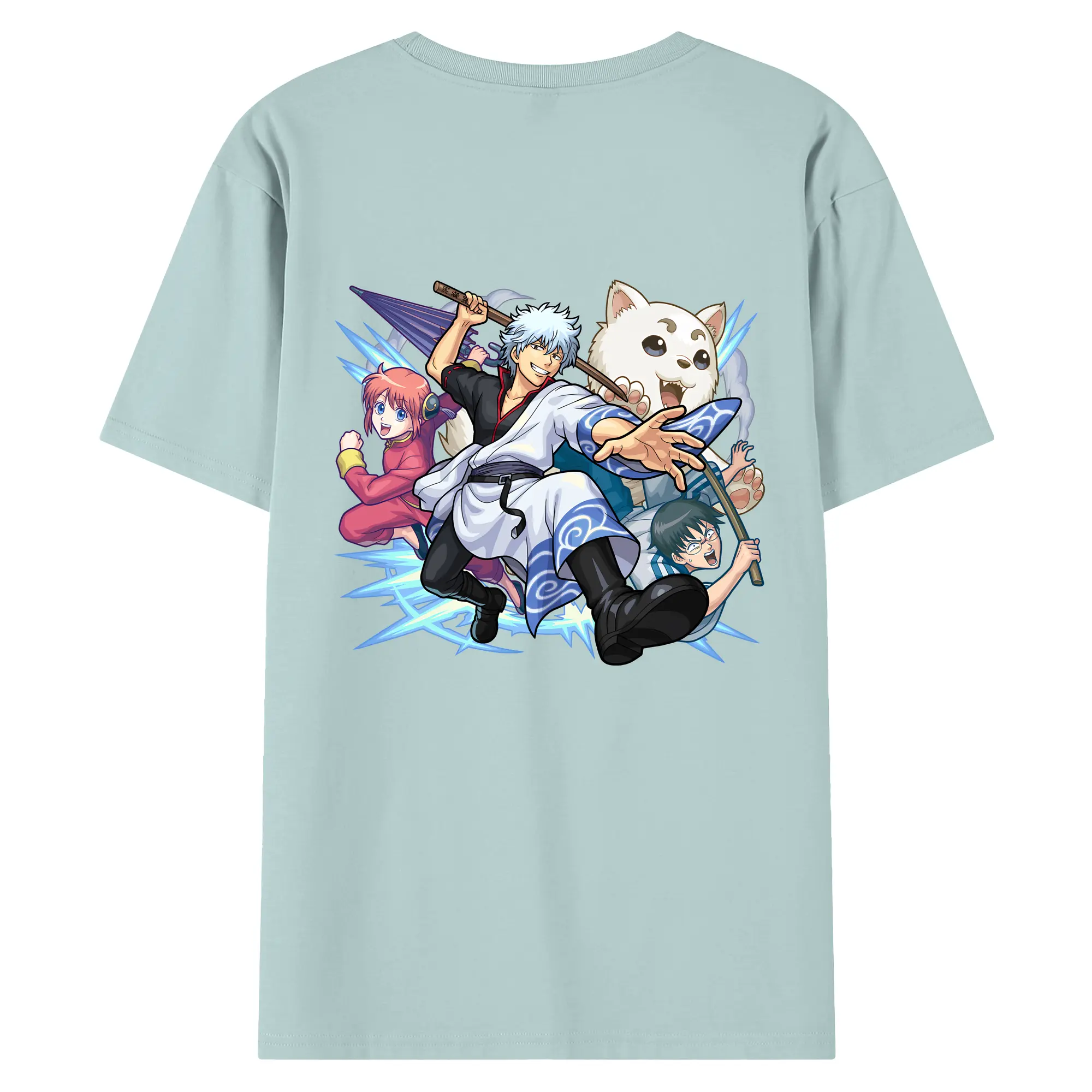 銀魂 グッズ 坂田 銀時 - 綿100% 半袖Tシャツ ・ フロントプリント ・ 快適 通気性 ・ 日常使い 散歩 スポーツ用