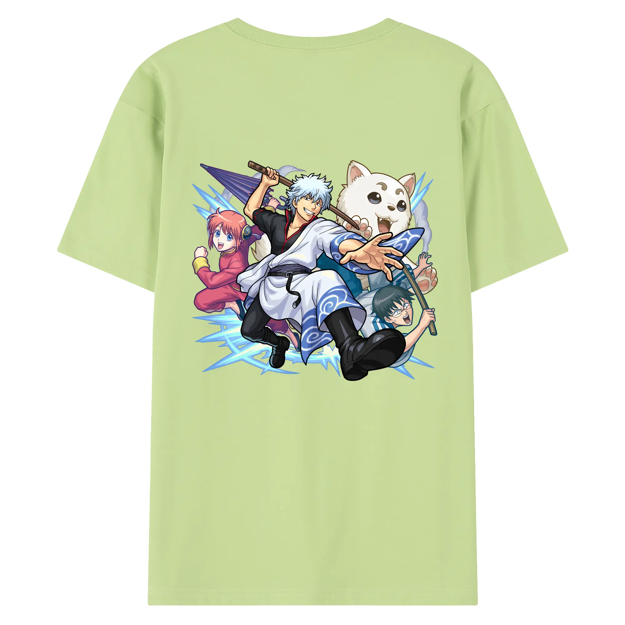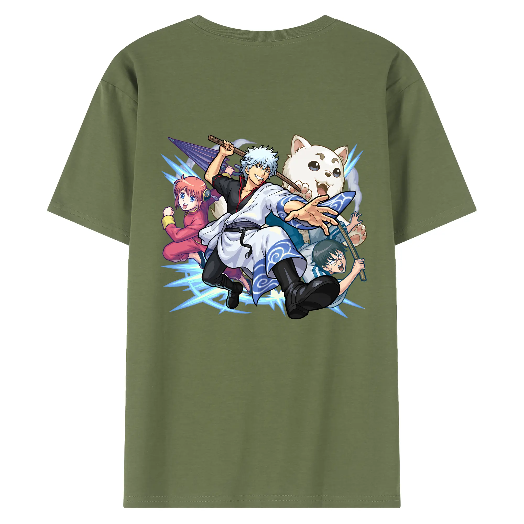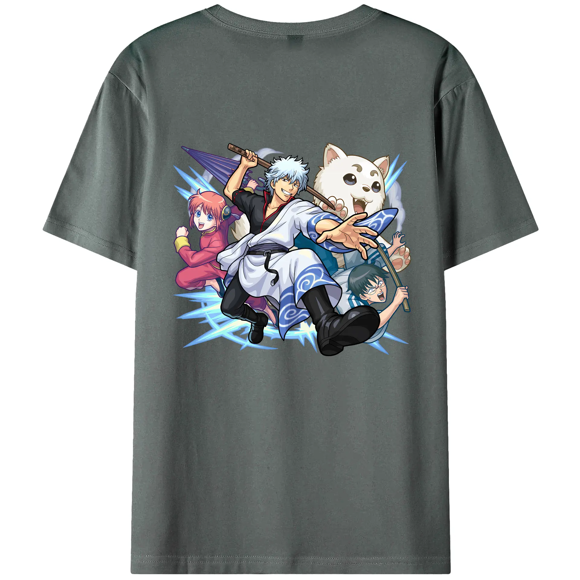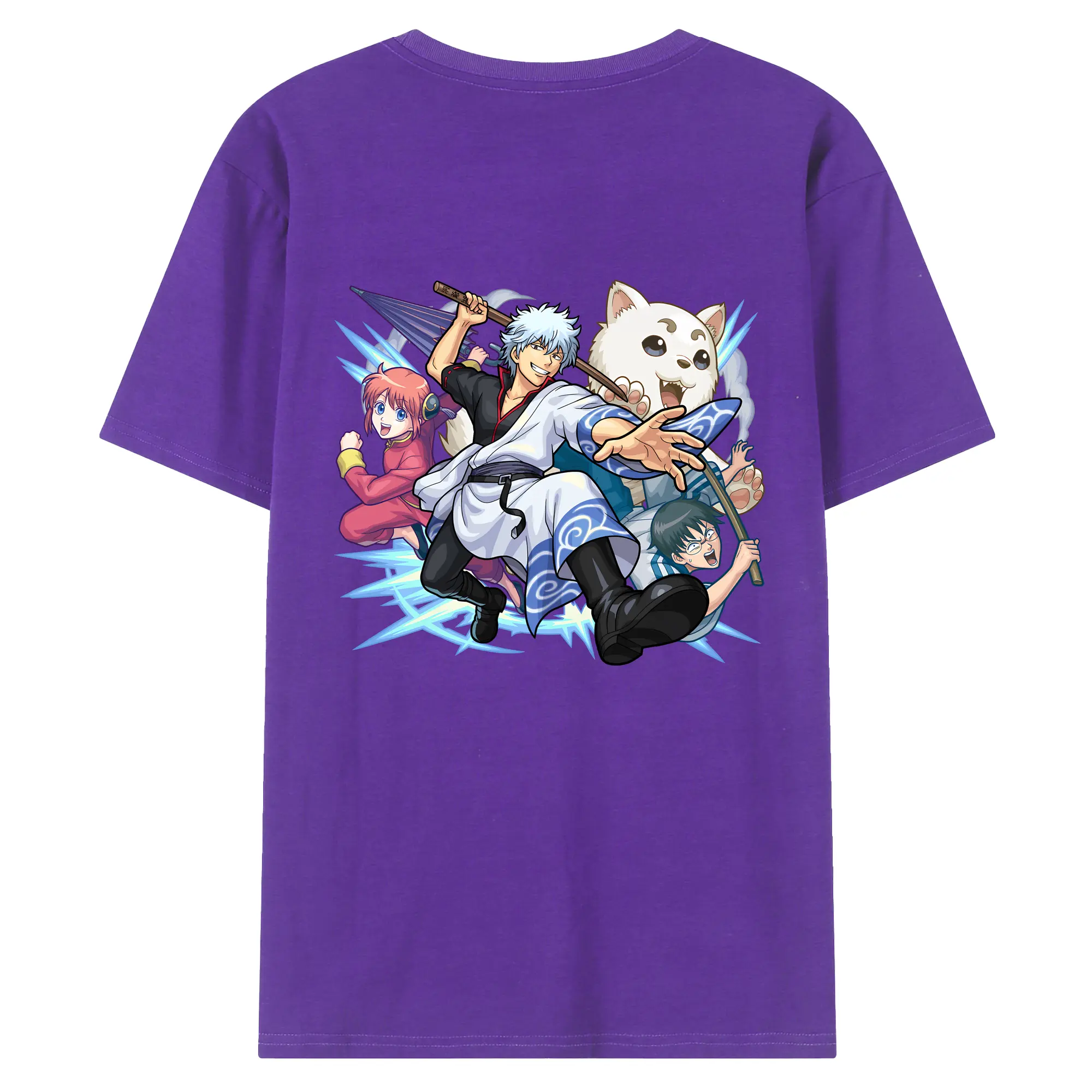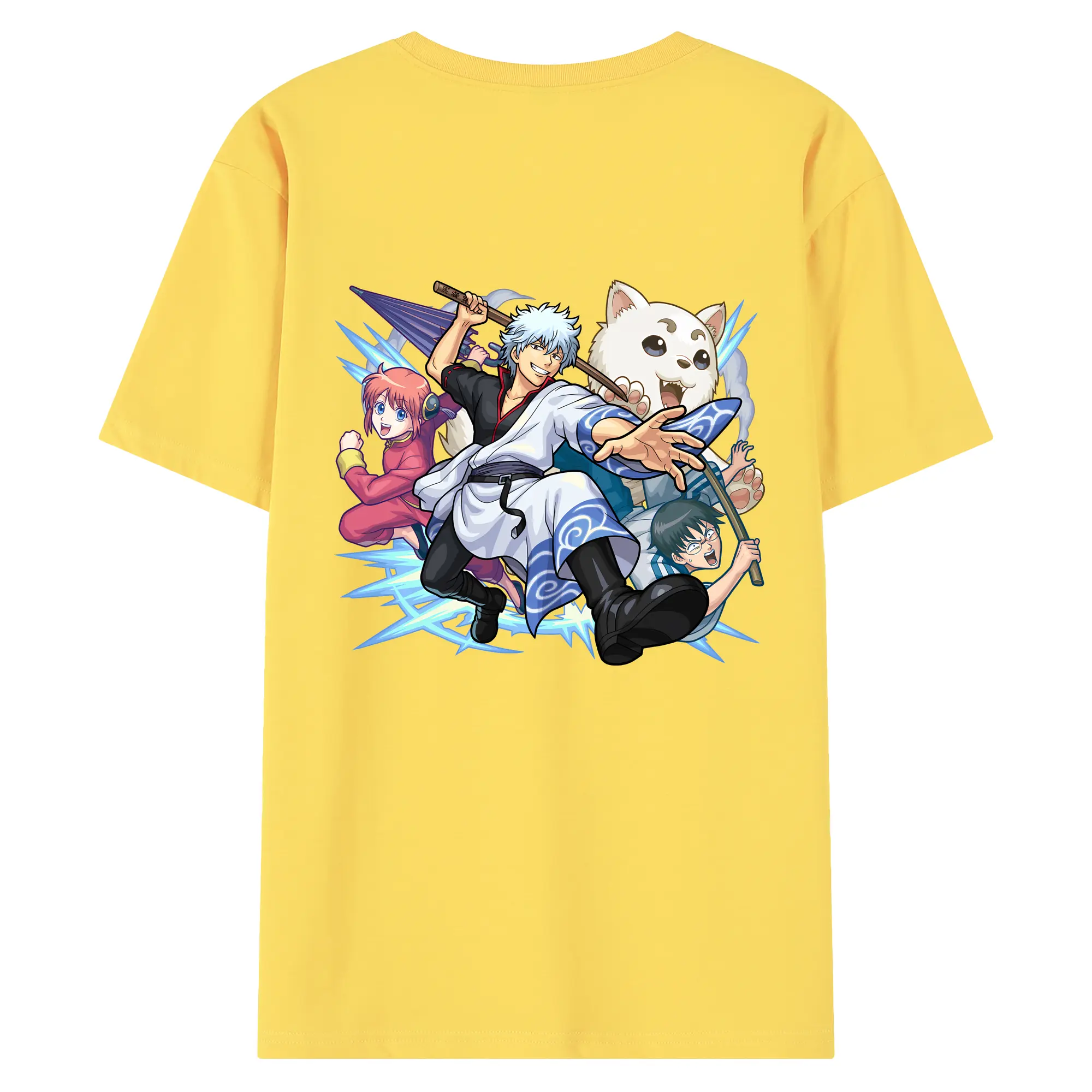 銀魂 グッズ 坂田 銀時 - 綿100% 半袖Tシャツ ・ フロントプリント ・ 快適 通気性 ・ 日常使い 散歩 スポーツ用