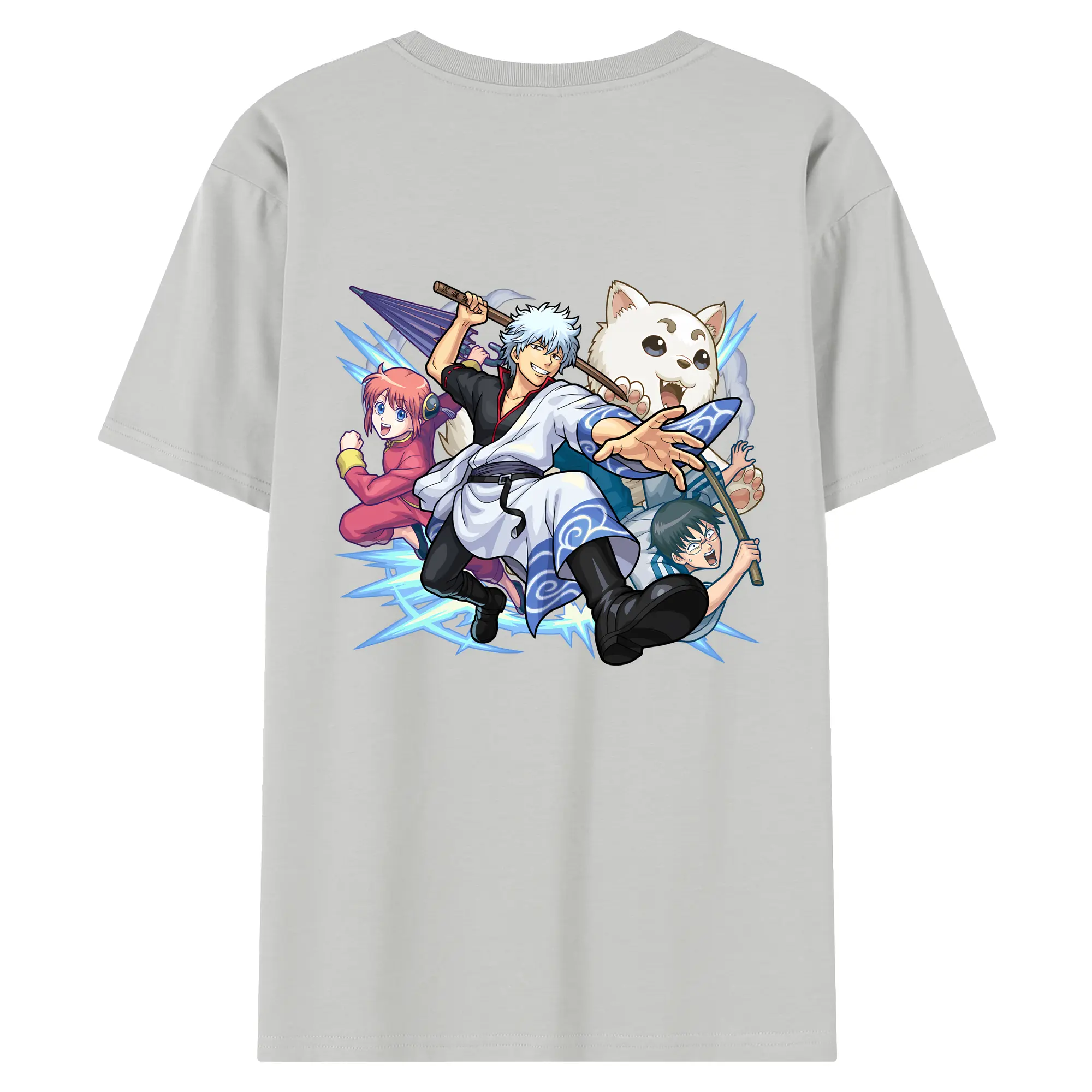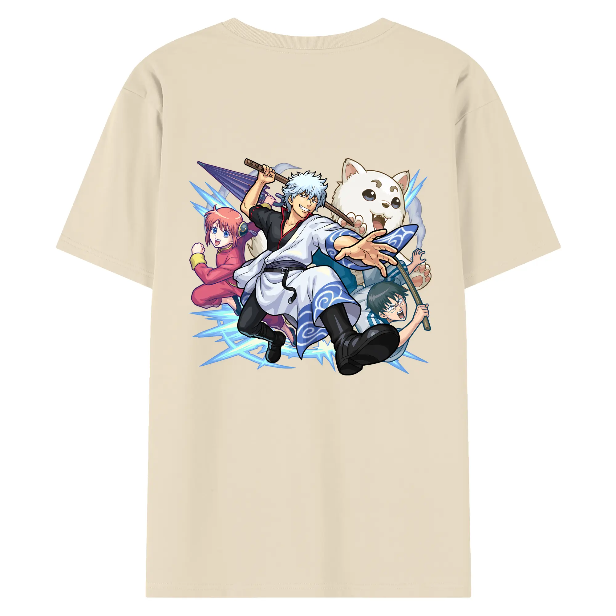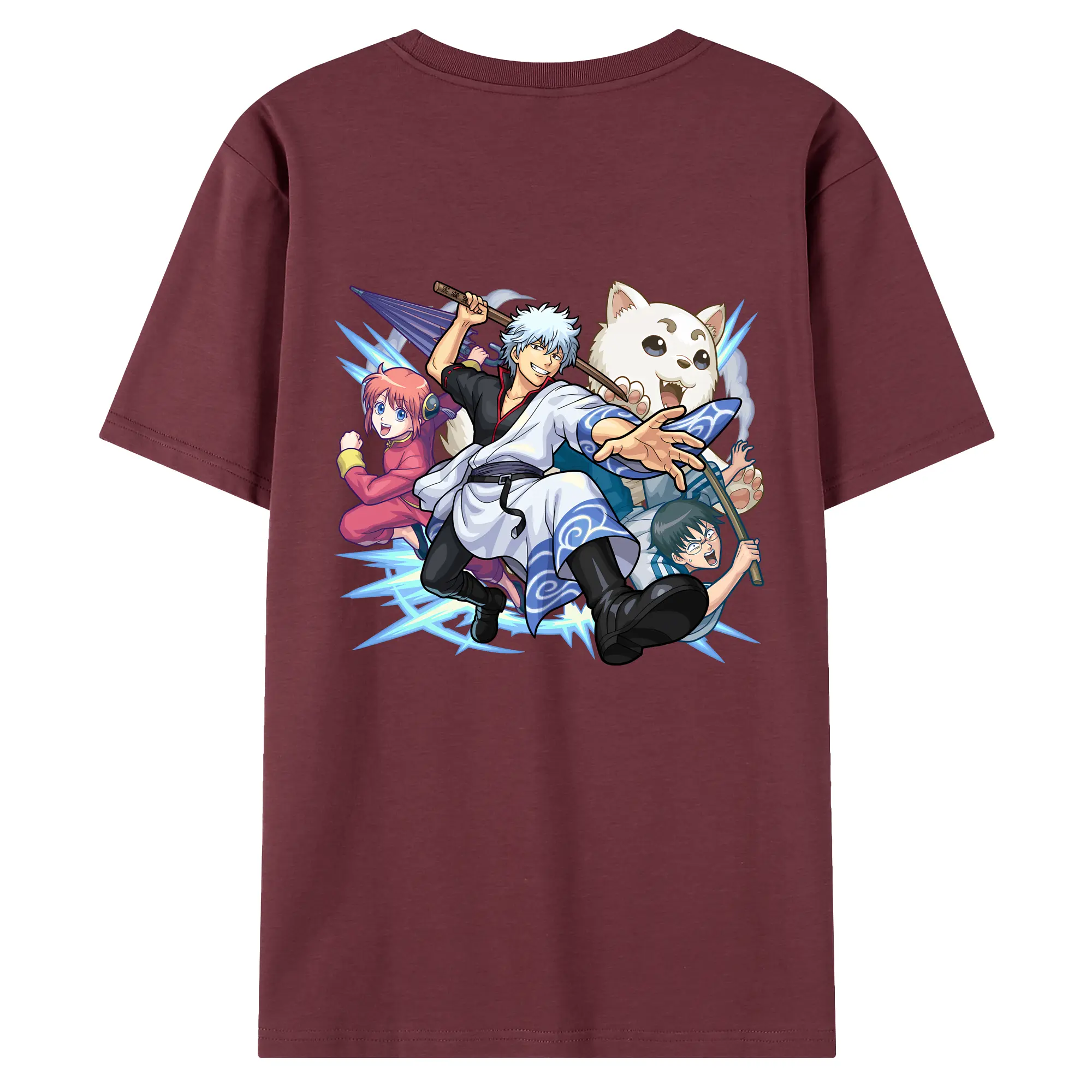 銀魂 グッズ 坂田 銀時 - 綿100% ヴィンテージ風 半袖Tシャツ ・ 背面プリント ・ 柔らか肌触り ・ 通気性 快適 ・ スポーツ カジュアル 外出用