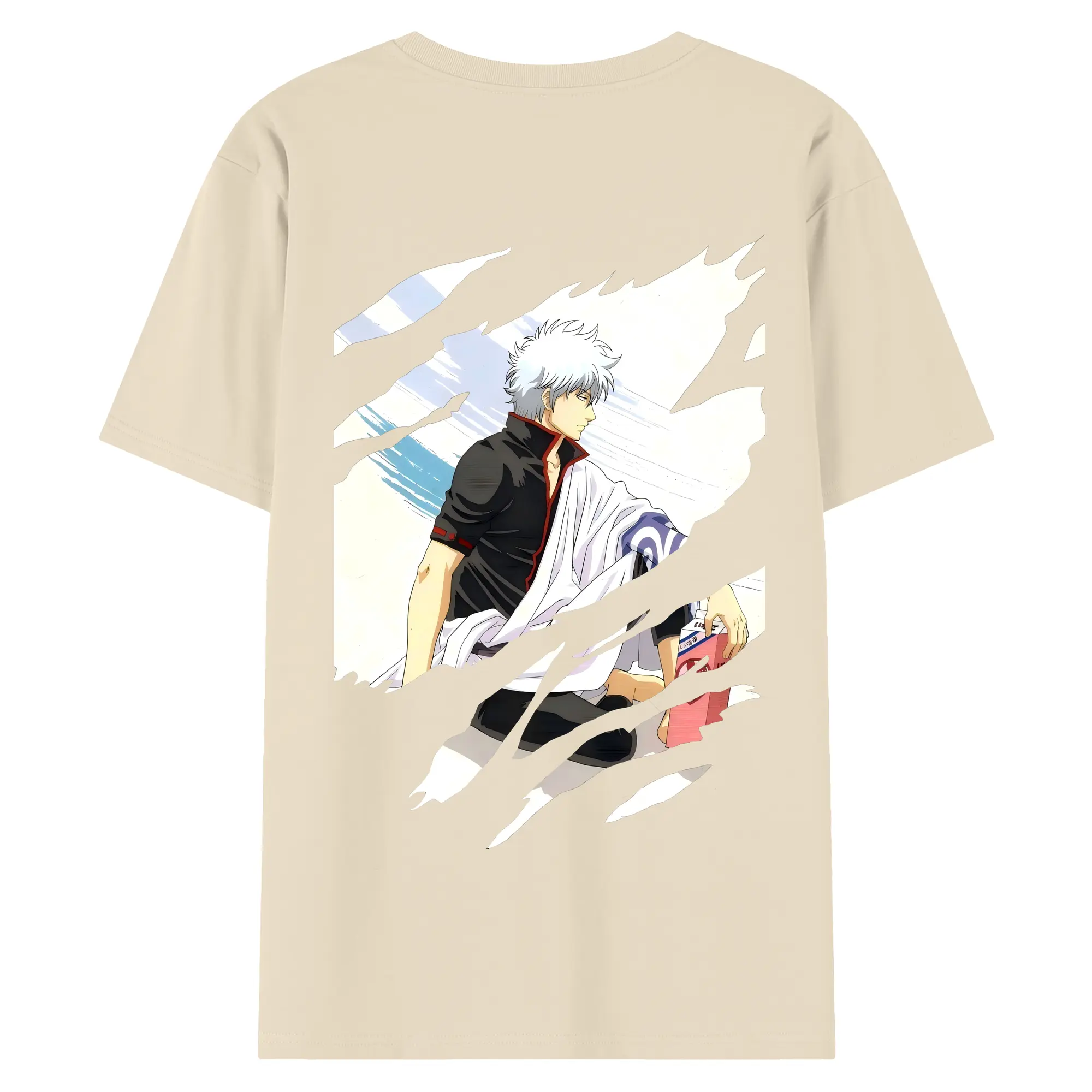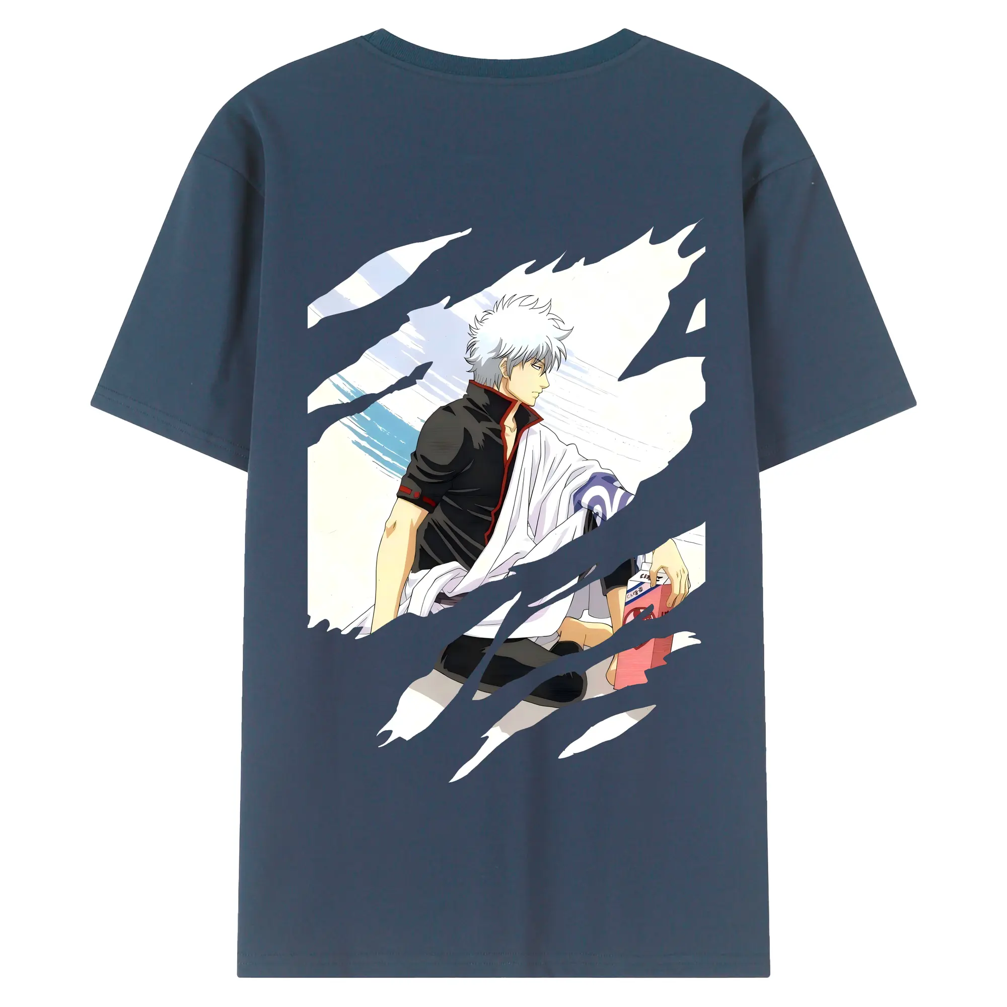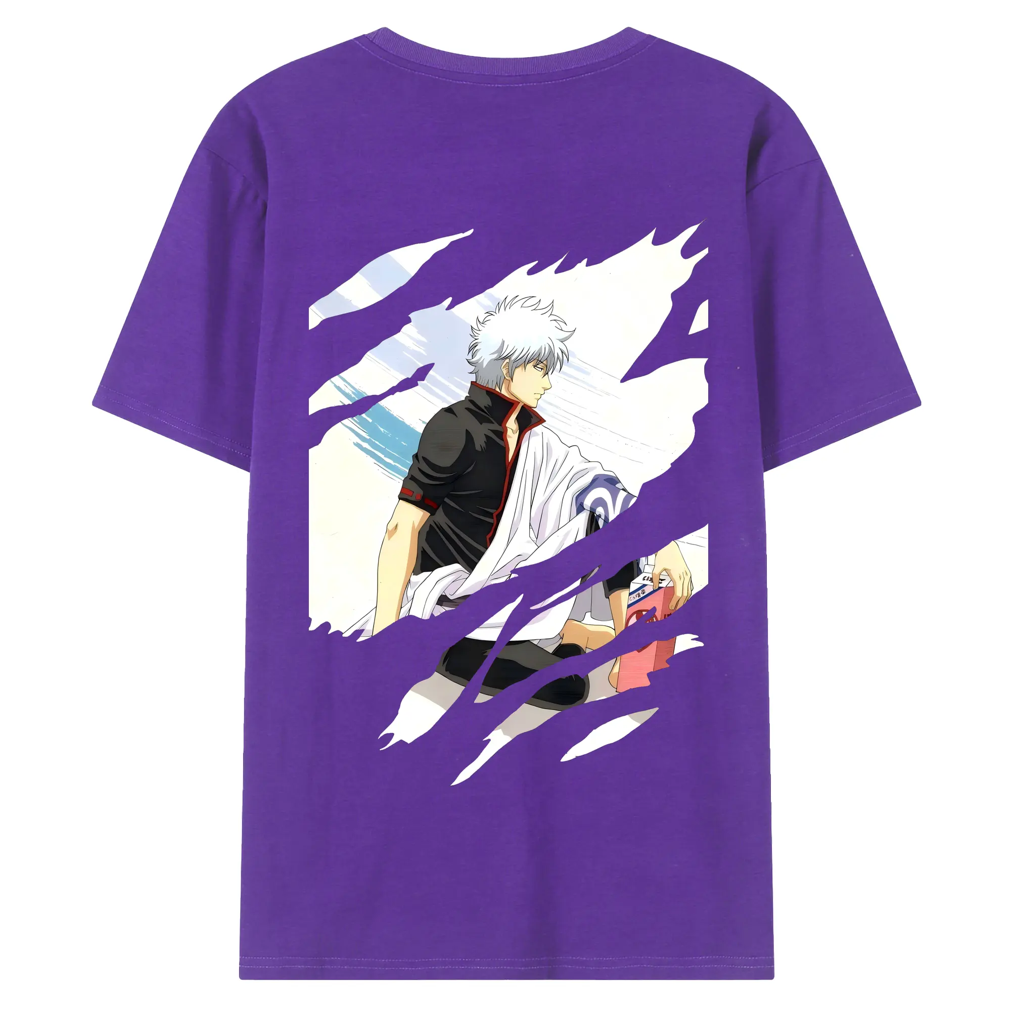 銀魂 グッズ 坂田 銀時 - 綿100% ヴィンテージ風 半袖Tシャツ ・ 背面プリント ・ 柔らか肌触り ・ 通気性 快適 ・ スポーツ カジュアル 外出用