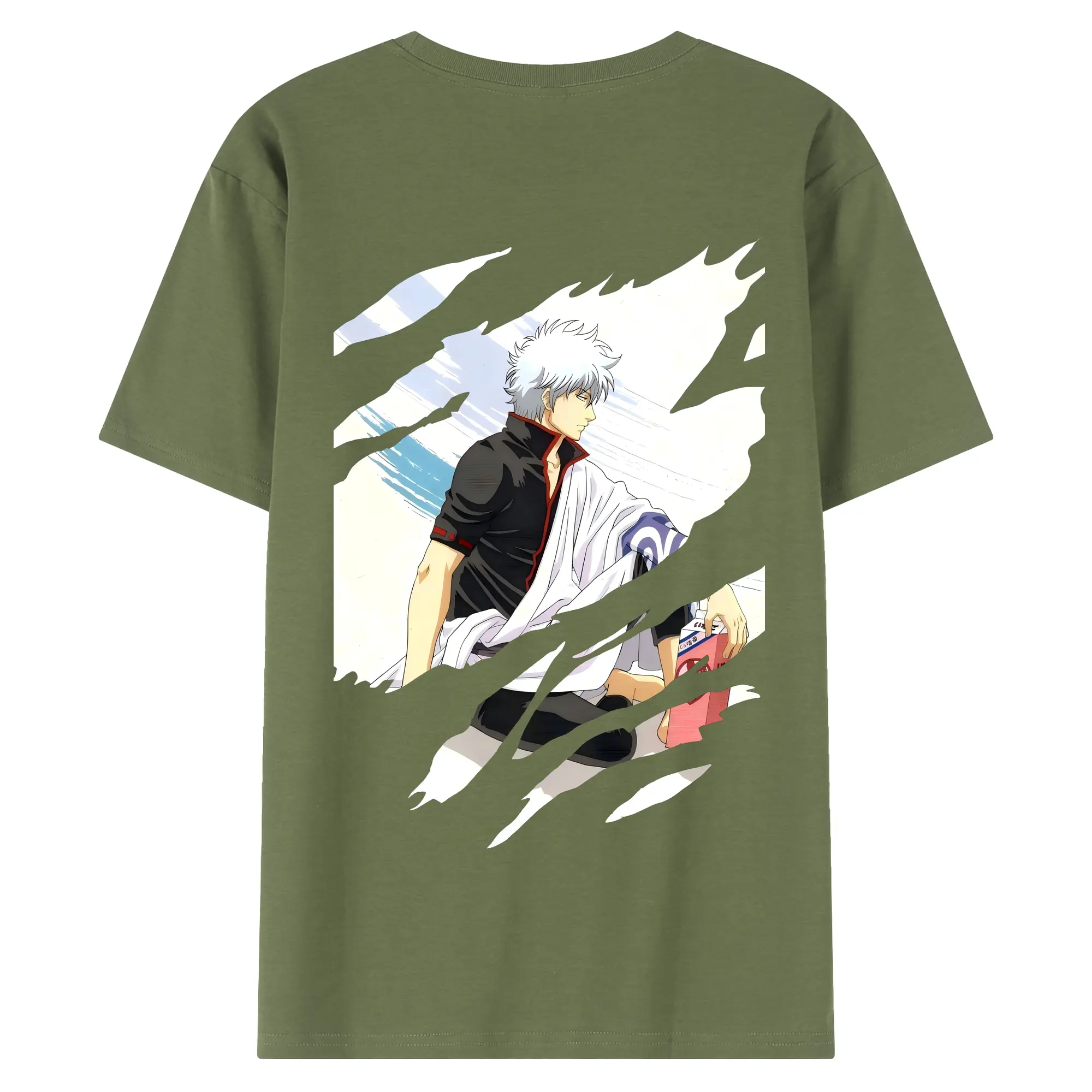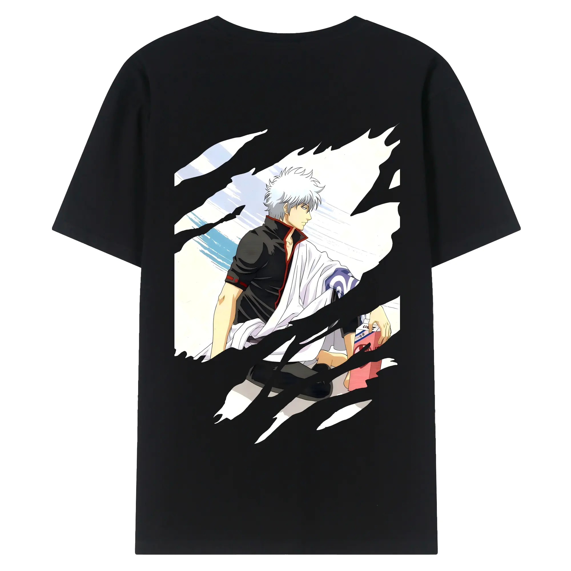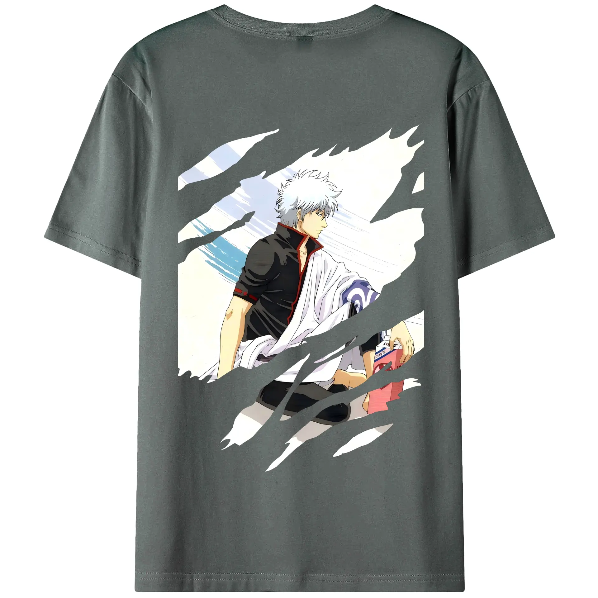 銀魂 グッズ 坂田 銀時 - 綿100% ヴィンテージ風 半袖Tシャツ ・ 背面プリント ・ 柔らか肌触り ・ 通気性 快適 ・ スポーツ カジュアル 外出用