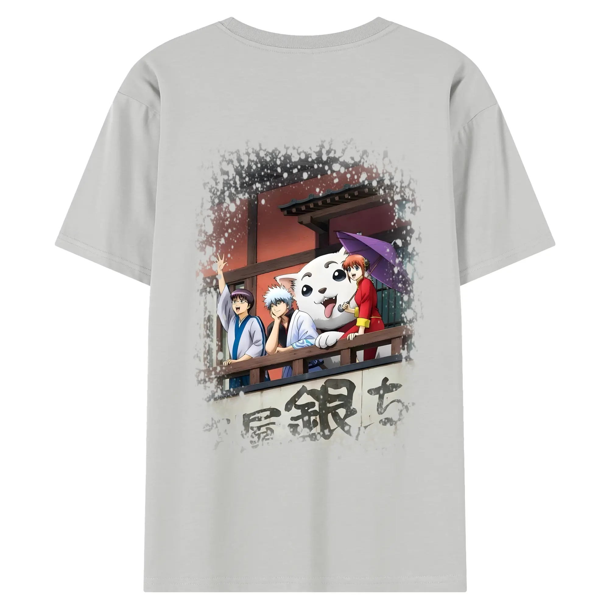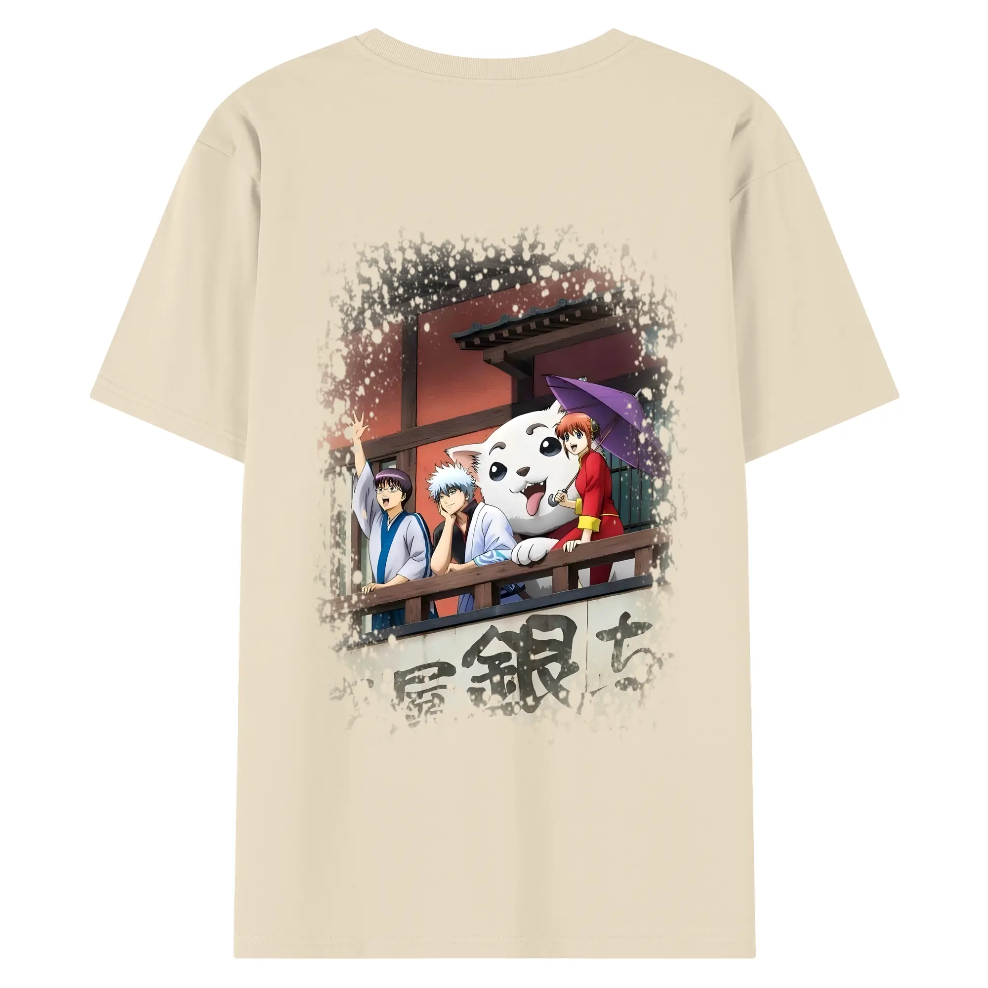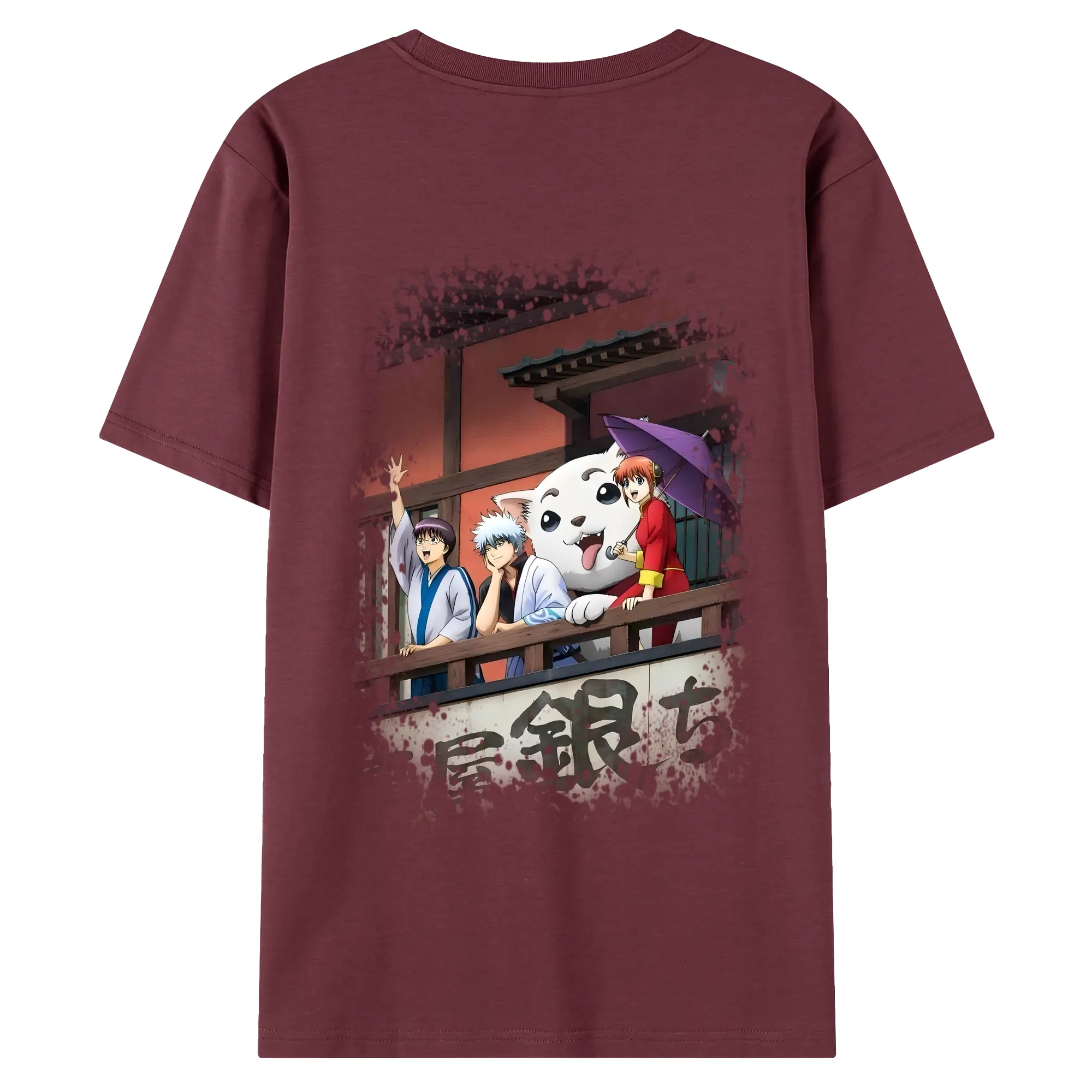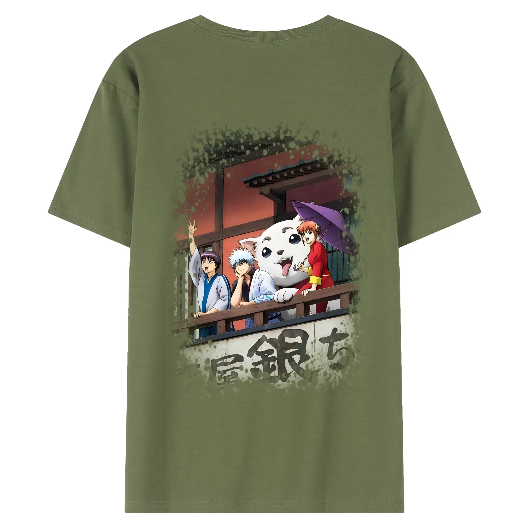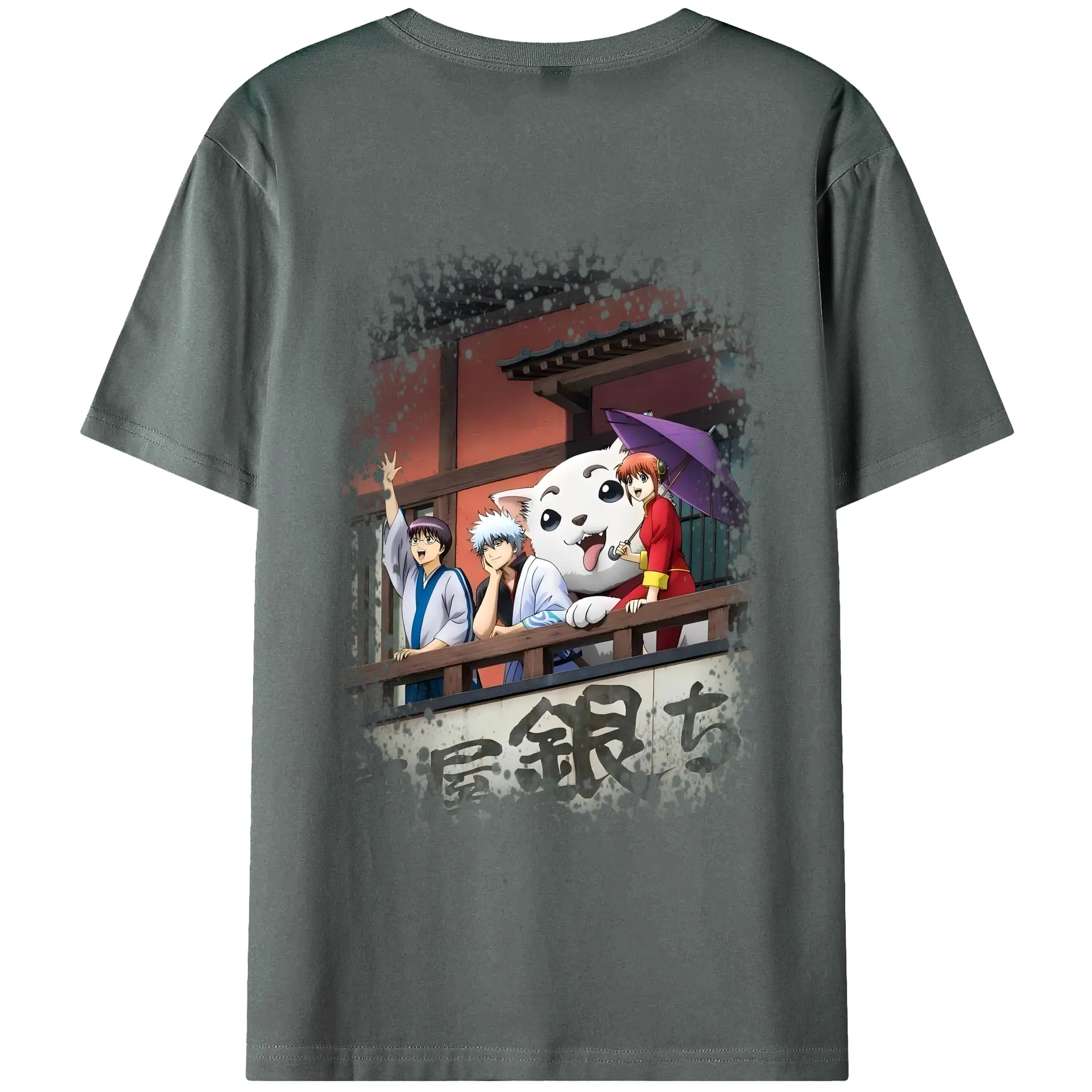 銀魂 グッズ 坂田 銀時 - 綿100% ヴィンテージ風 半袖Tシャツ ・ 背面プリント ・ 柔らか肌触り ・ 通気性 快適 ・ スポーツ カジュアル 外出用