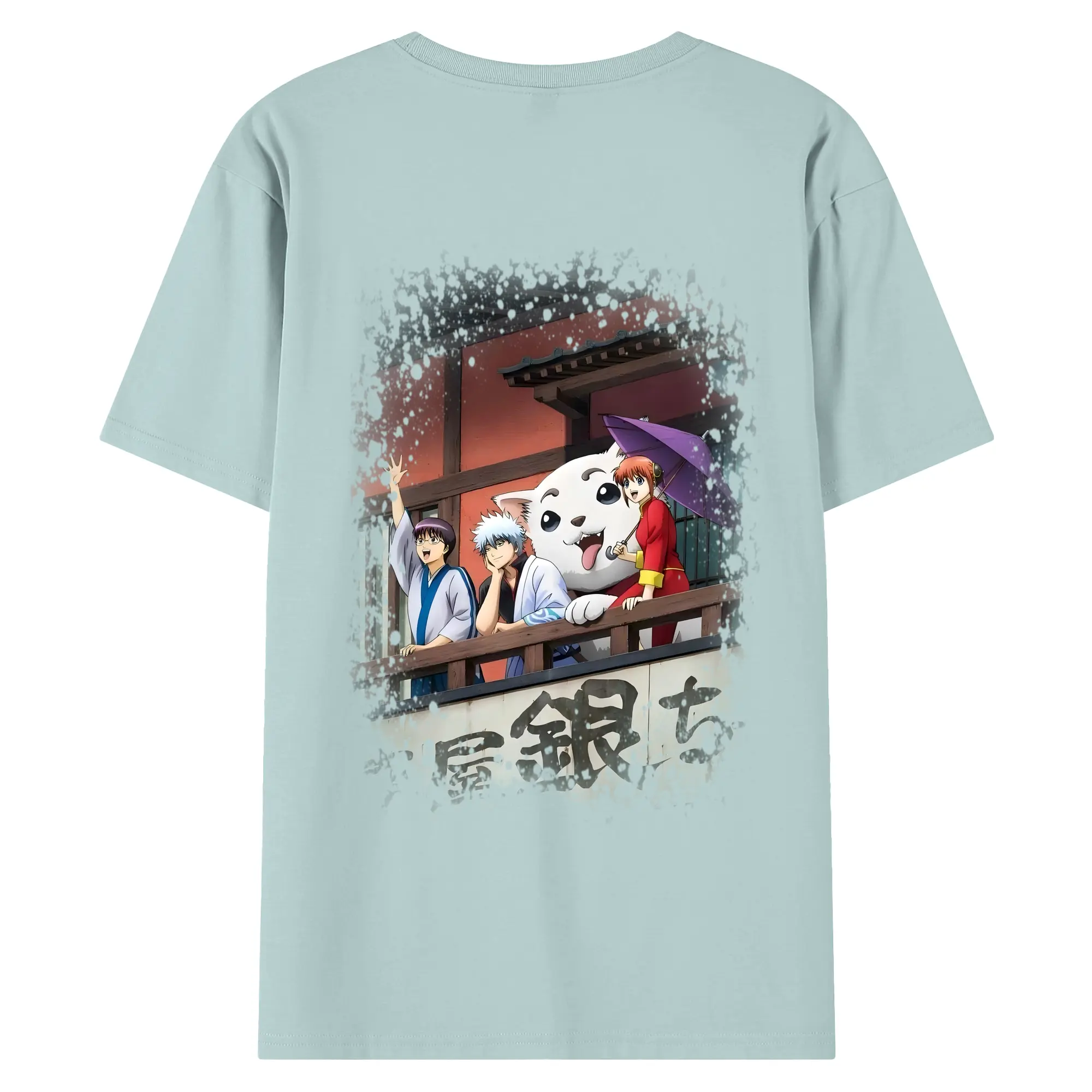 銀魂 グッズ 坂田 銀時 - 綿100% 半袖Tシャツ ・ フロントプリント ・ 快適 通気性 ・ 日常使い 散歩 スポーツ用