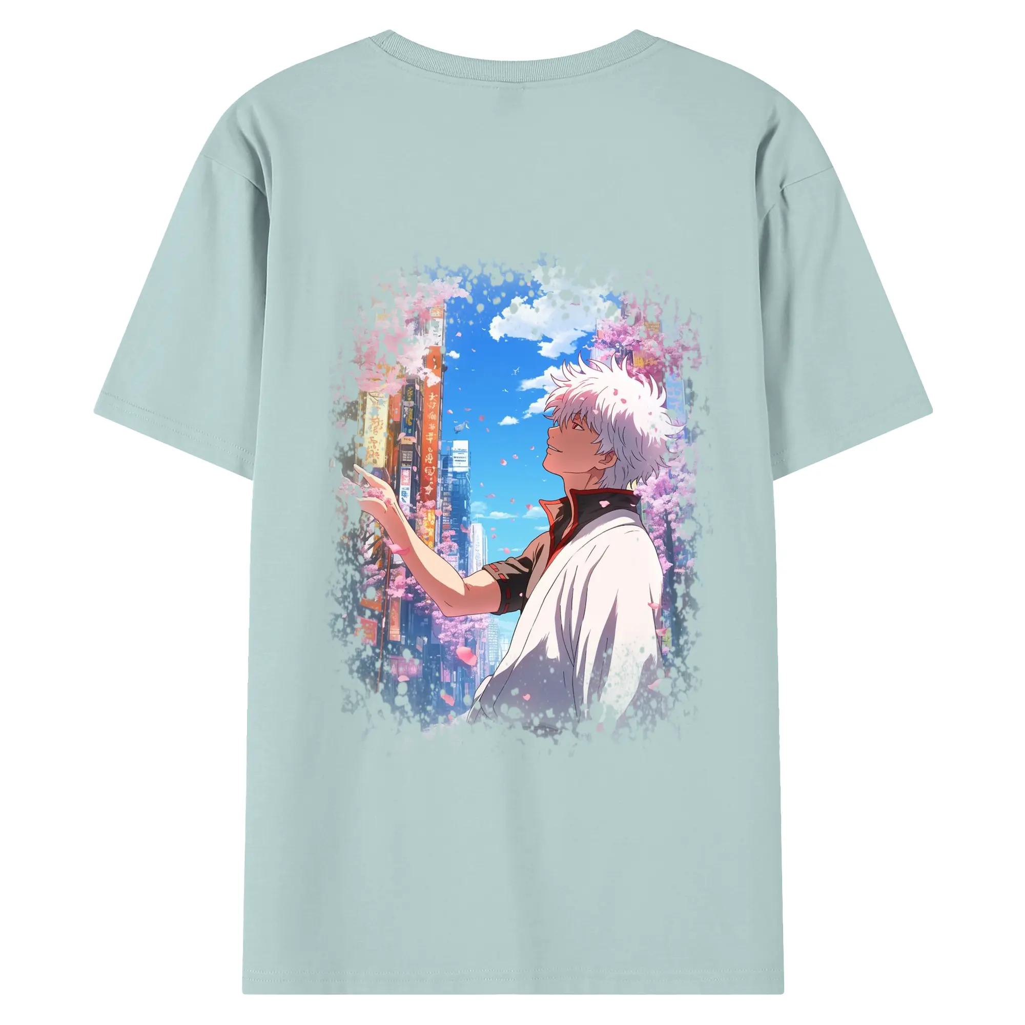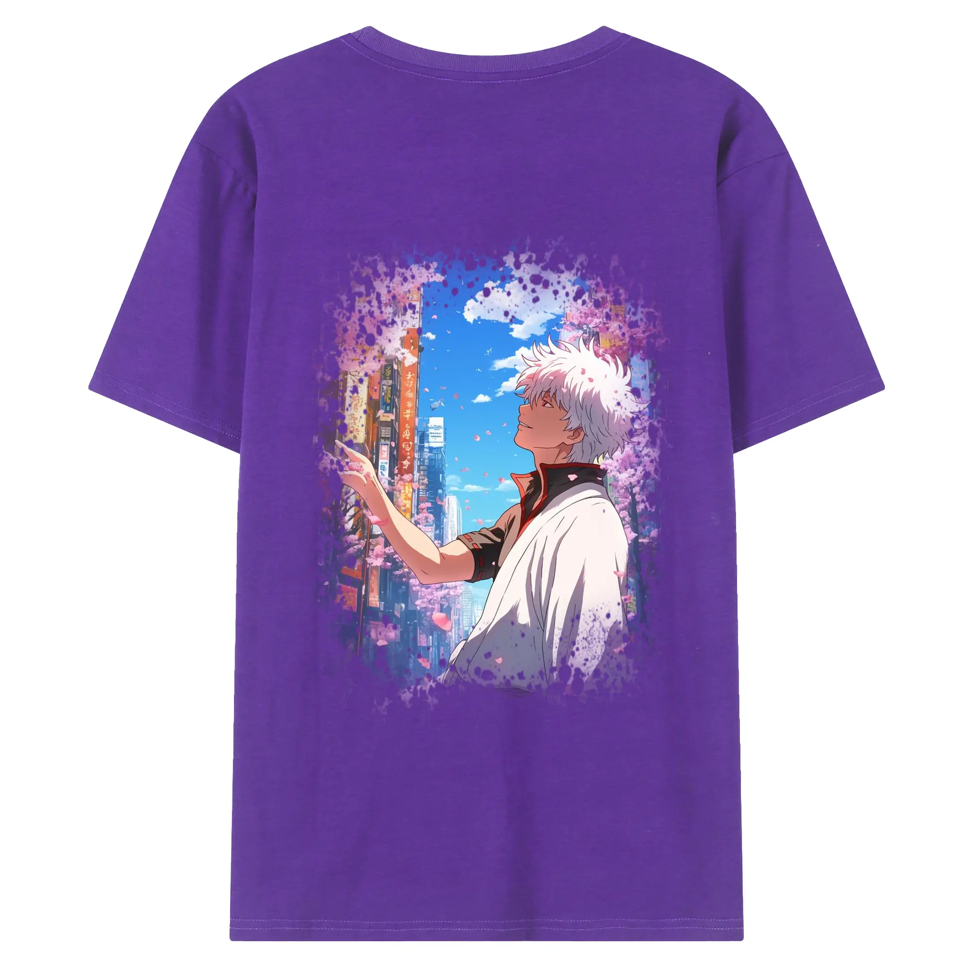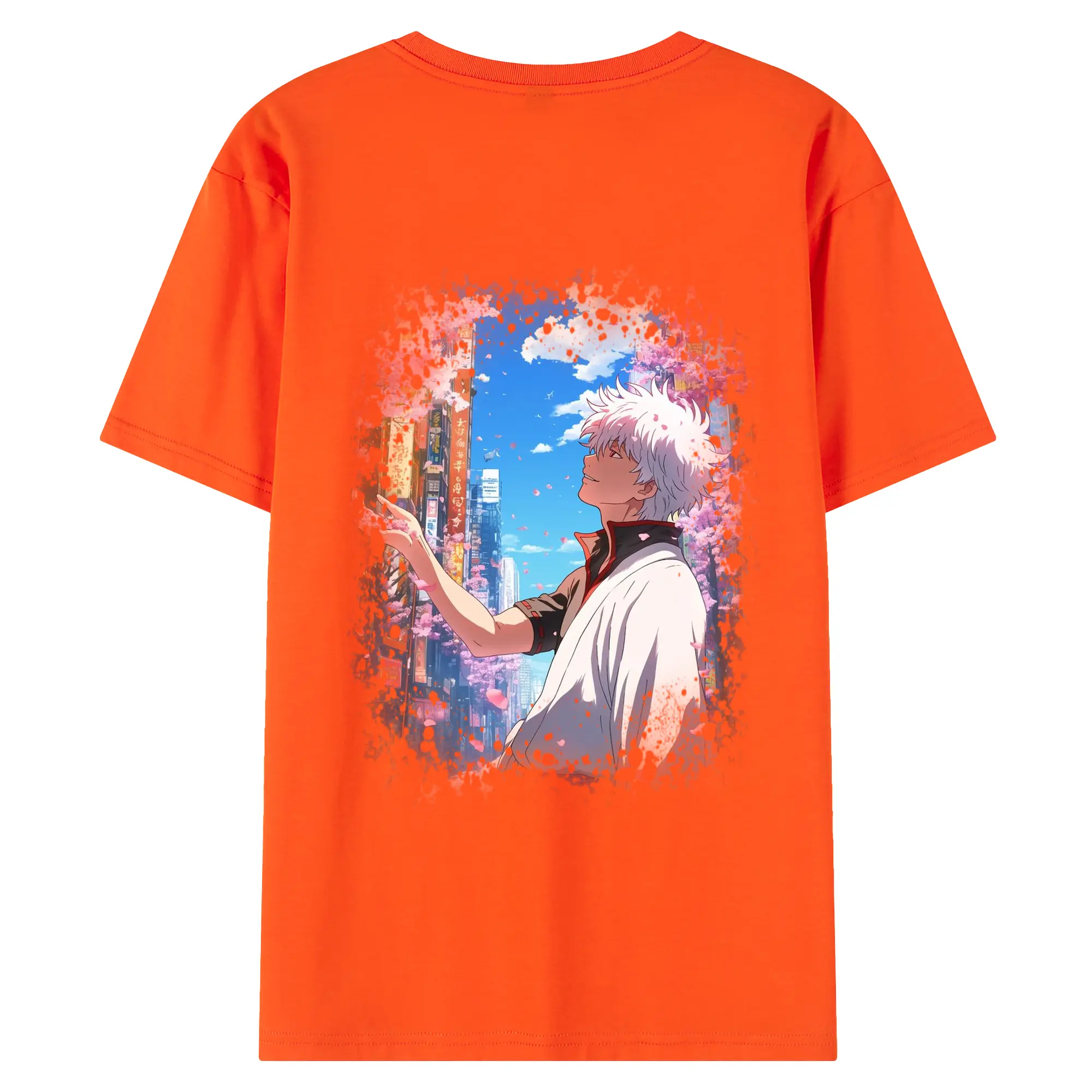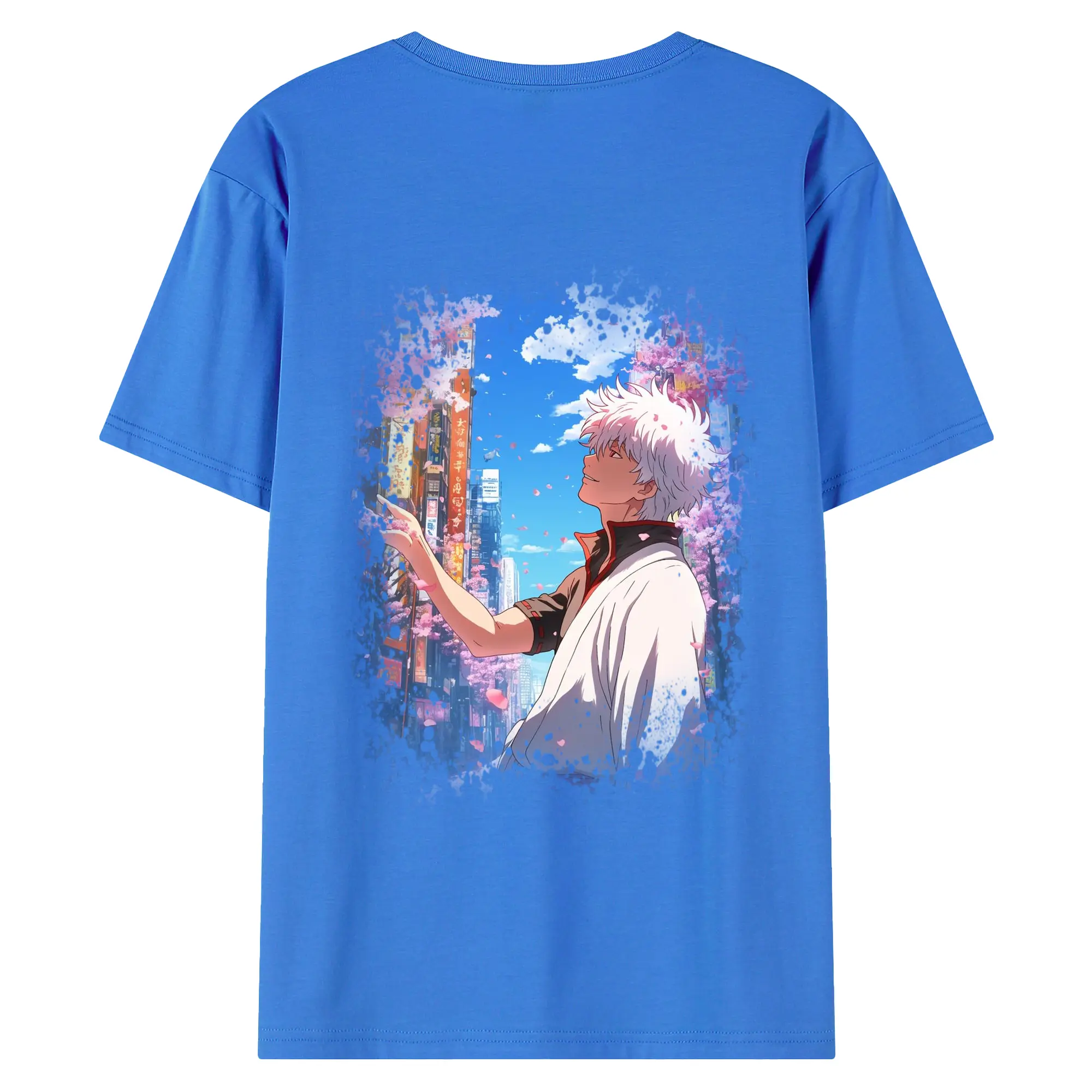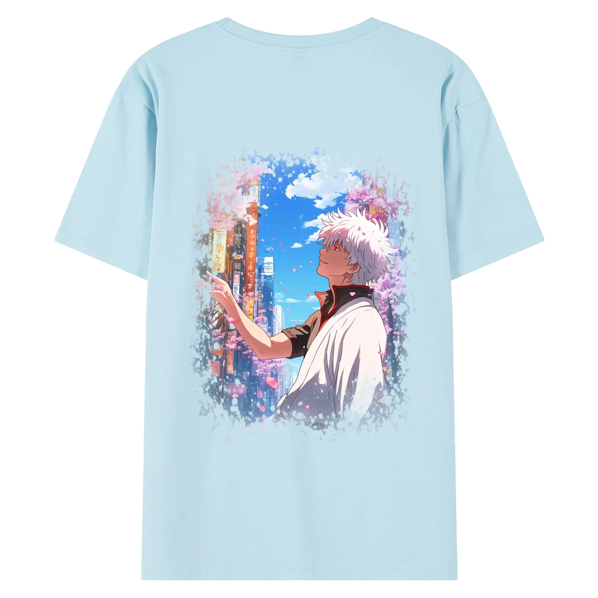 銀魂 グッズ 坂田 銀時 - 綿100% 半袖Tシャツ ・ フロントプリント ・ 快適 通気性 ・ 日常使い 散歩 スポーツ用