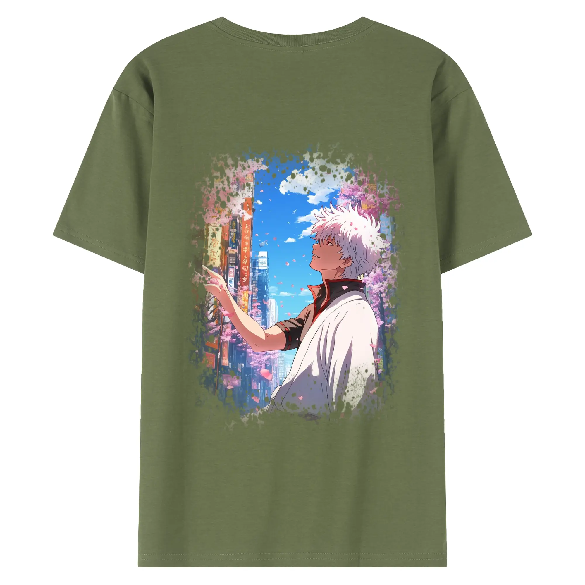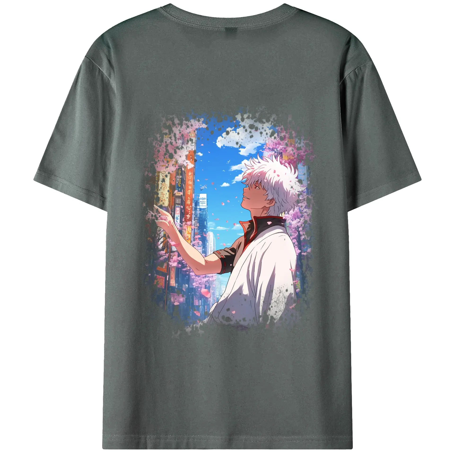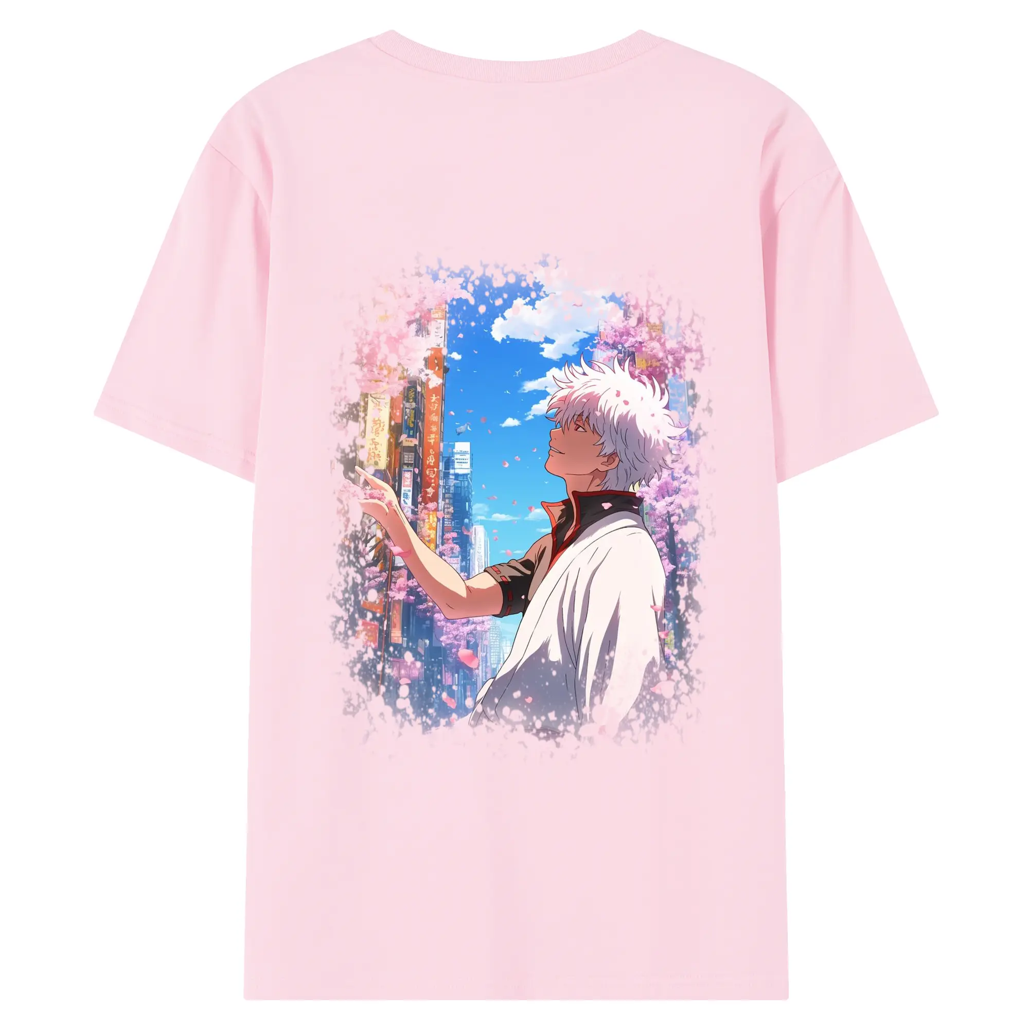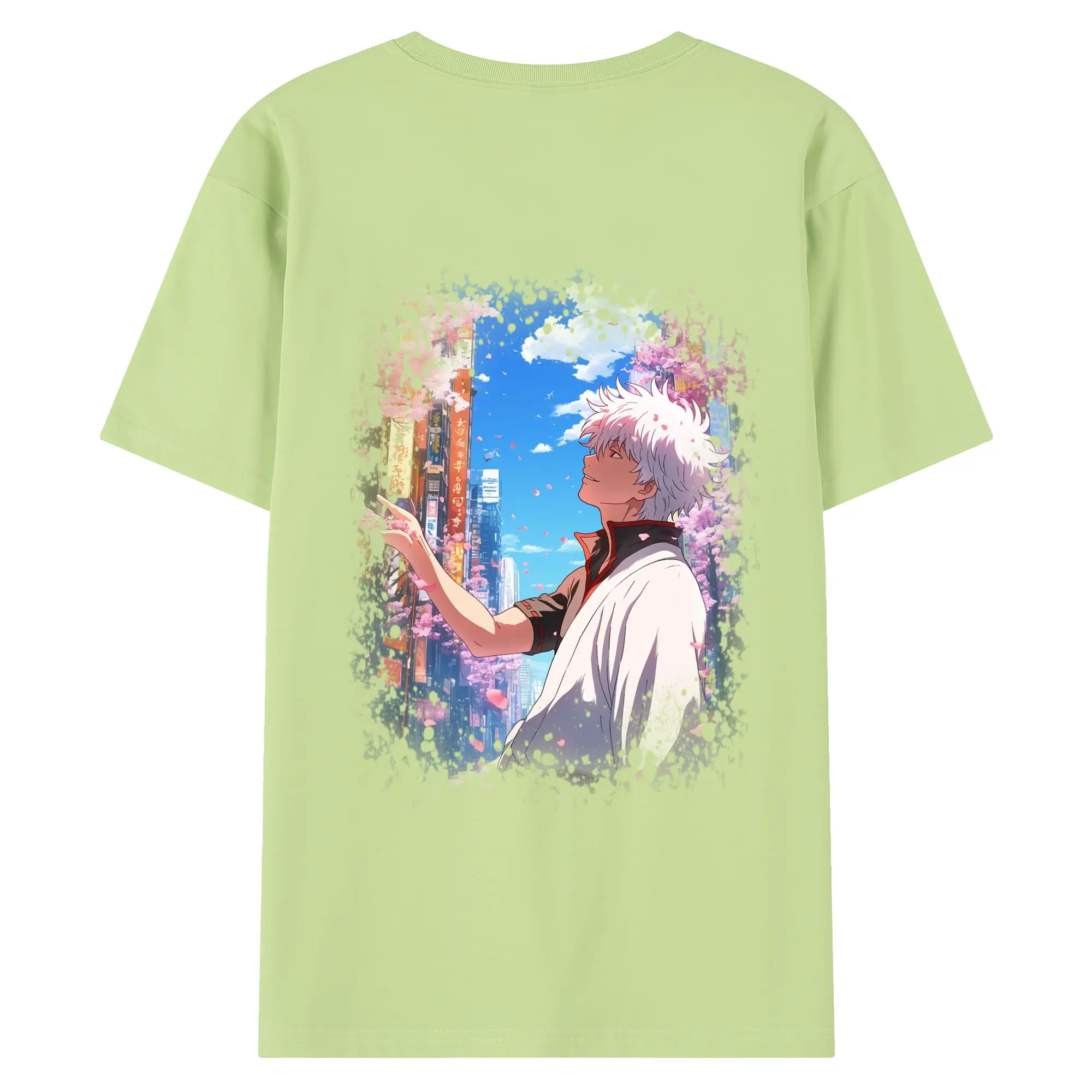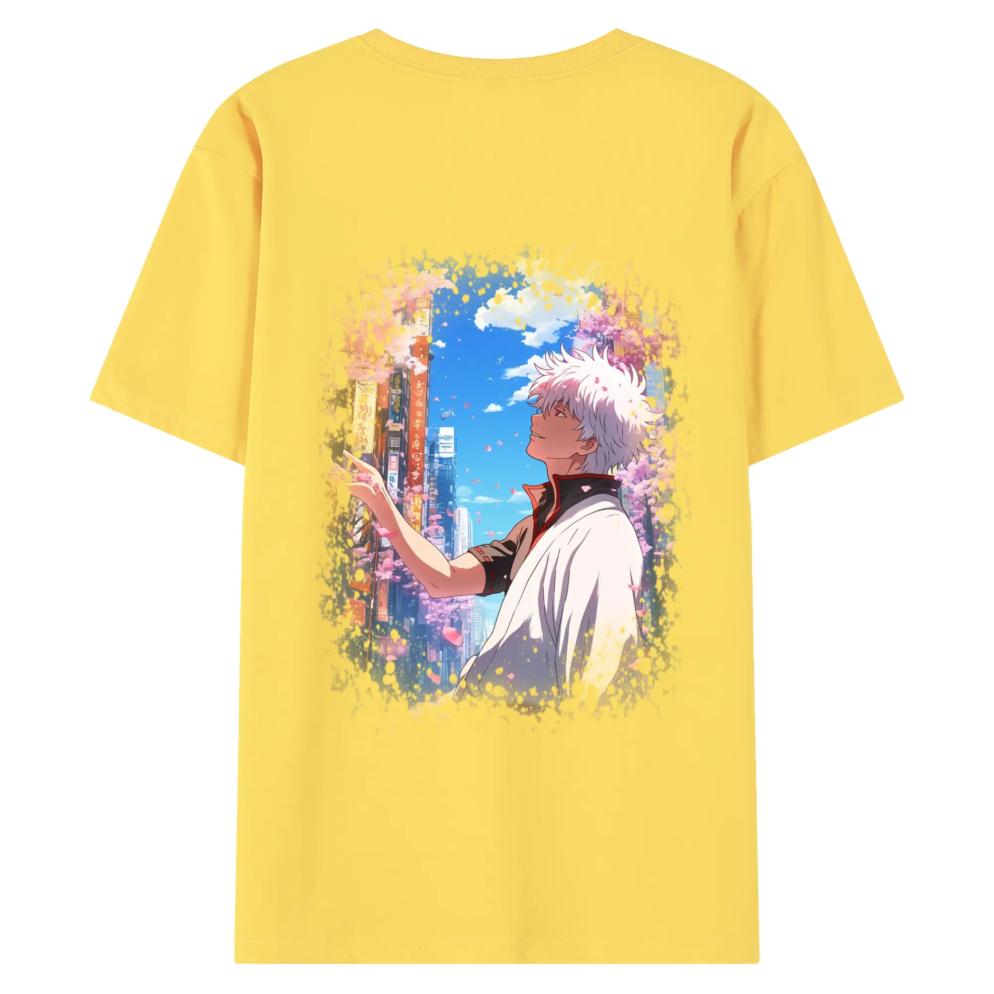 銀魂 グッズ 坂田 銀時 - 綿100% 半袖Tシャツ ・ フロントプリント ・ 快適 通気性 ・ 日常使い 散歩 スポーツ用