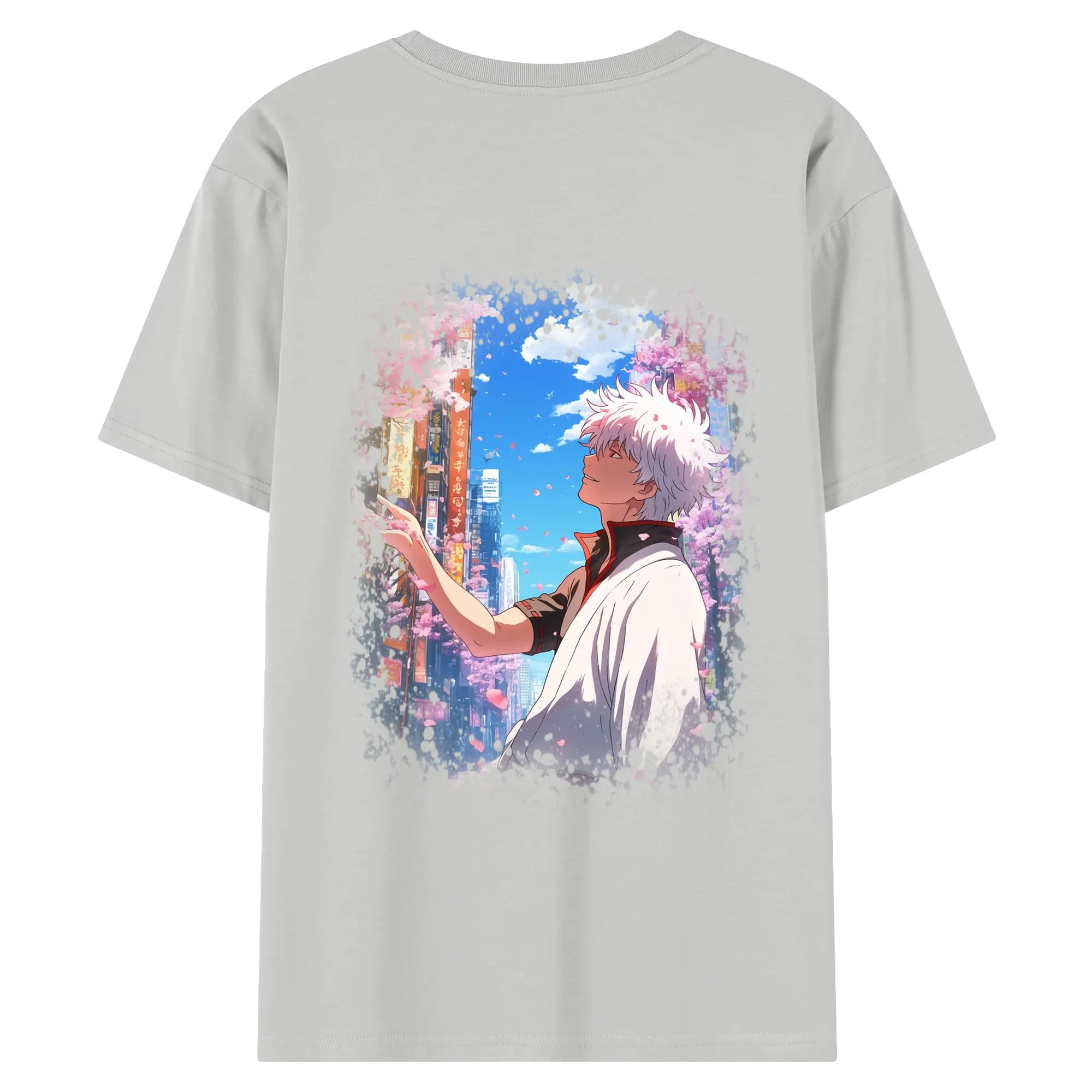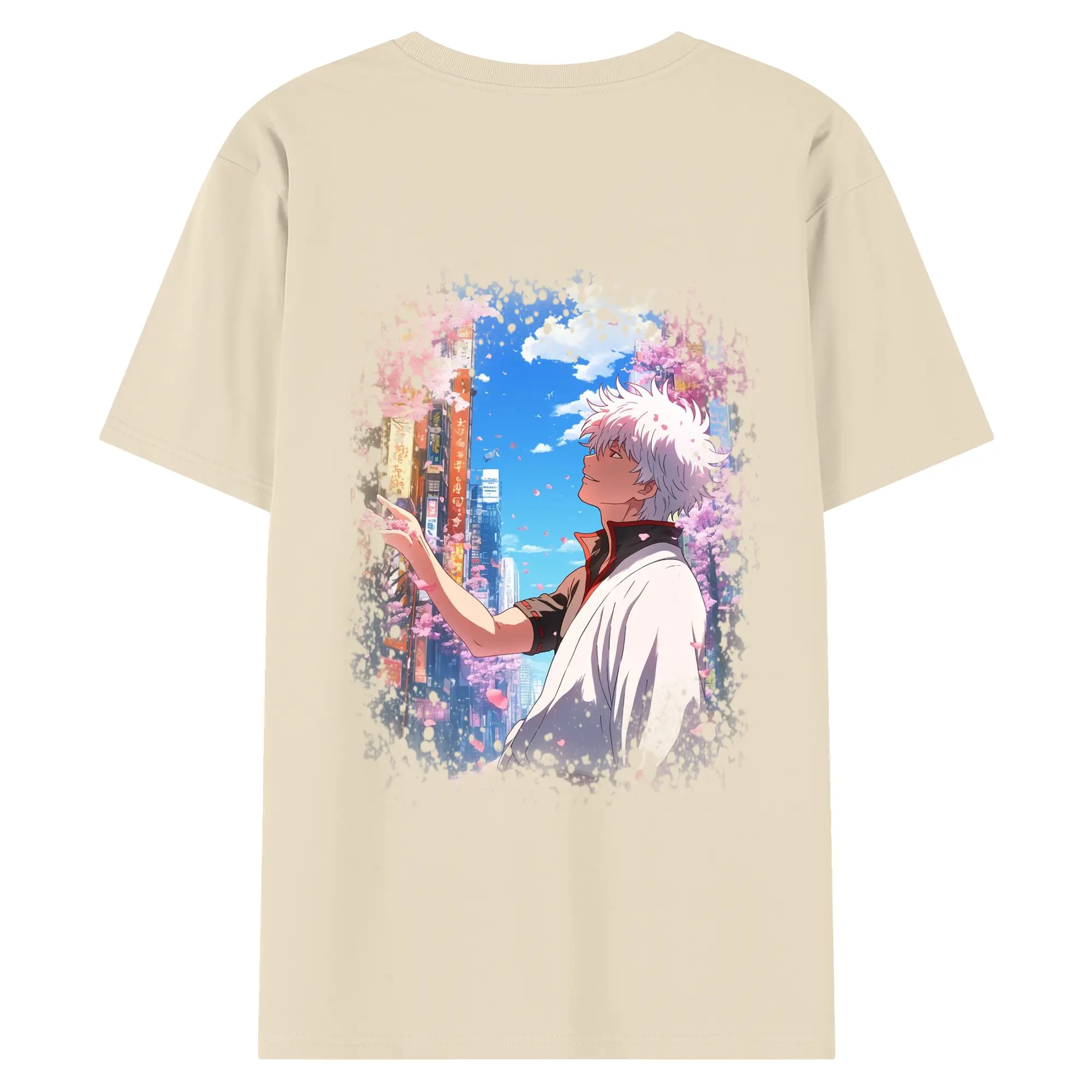 銀魂 グッズ 坂田 銀時 - 綿100% ヴィンテージ風 半袖Tシャツ ・ 背面プリント ・ 柔らか肌触り ・ 通気性 快適 ・ スポーツ カジュアル 外出用
