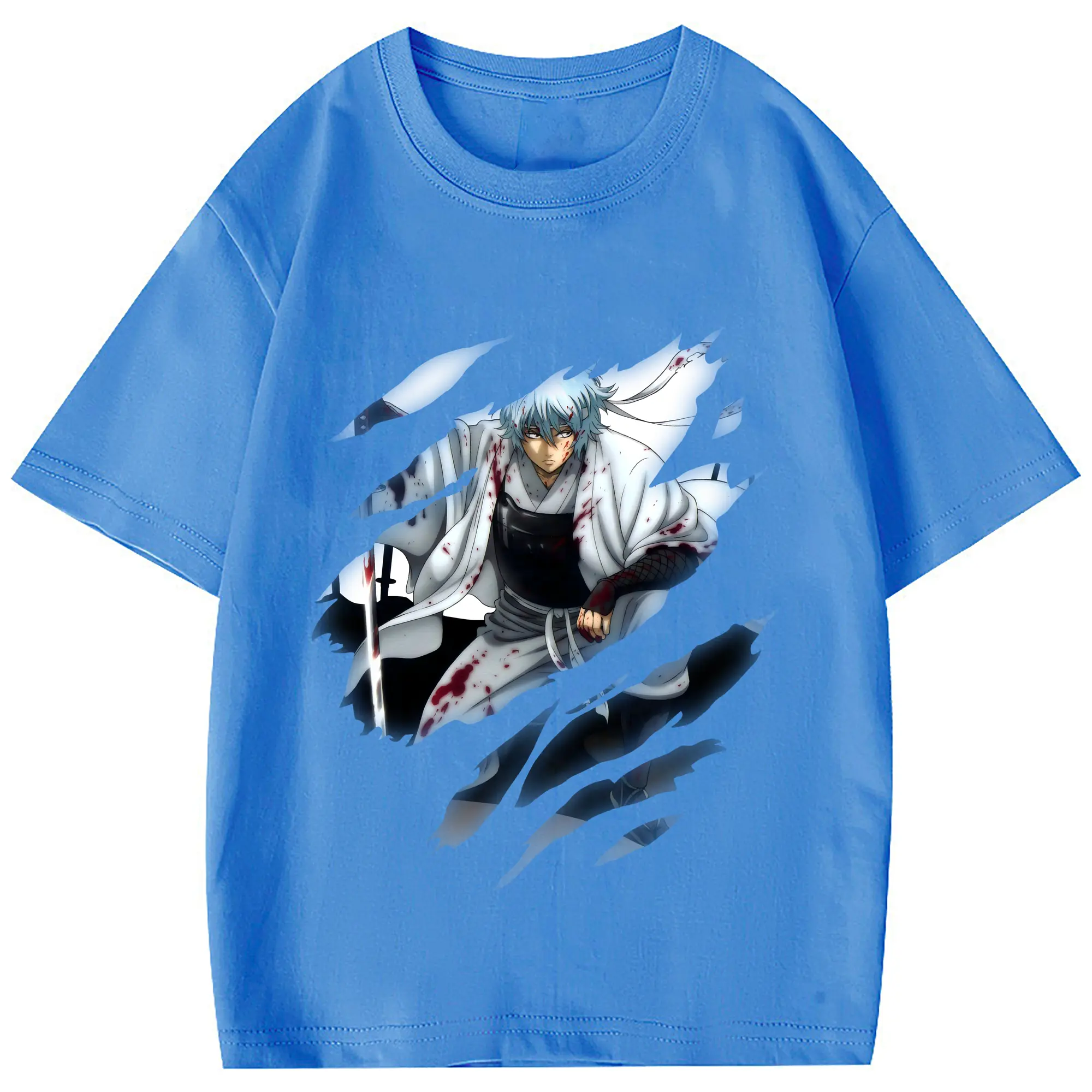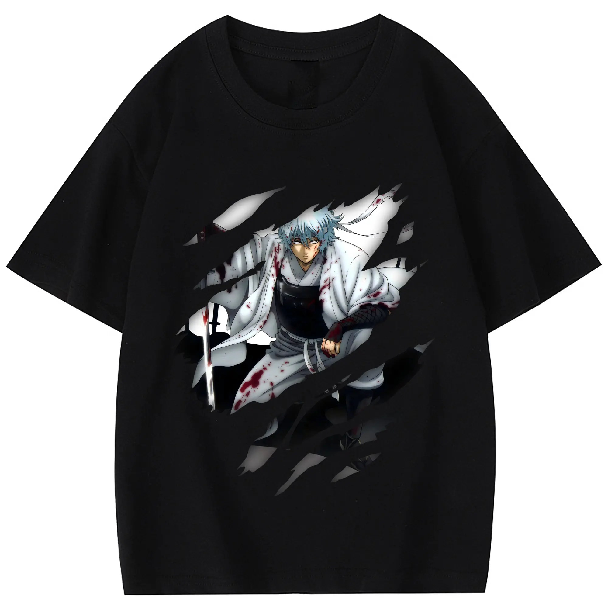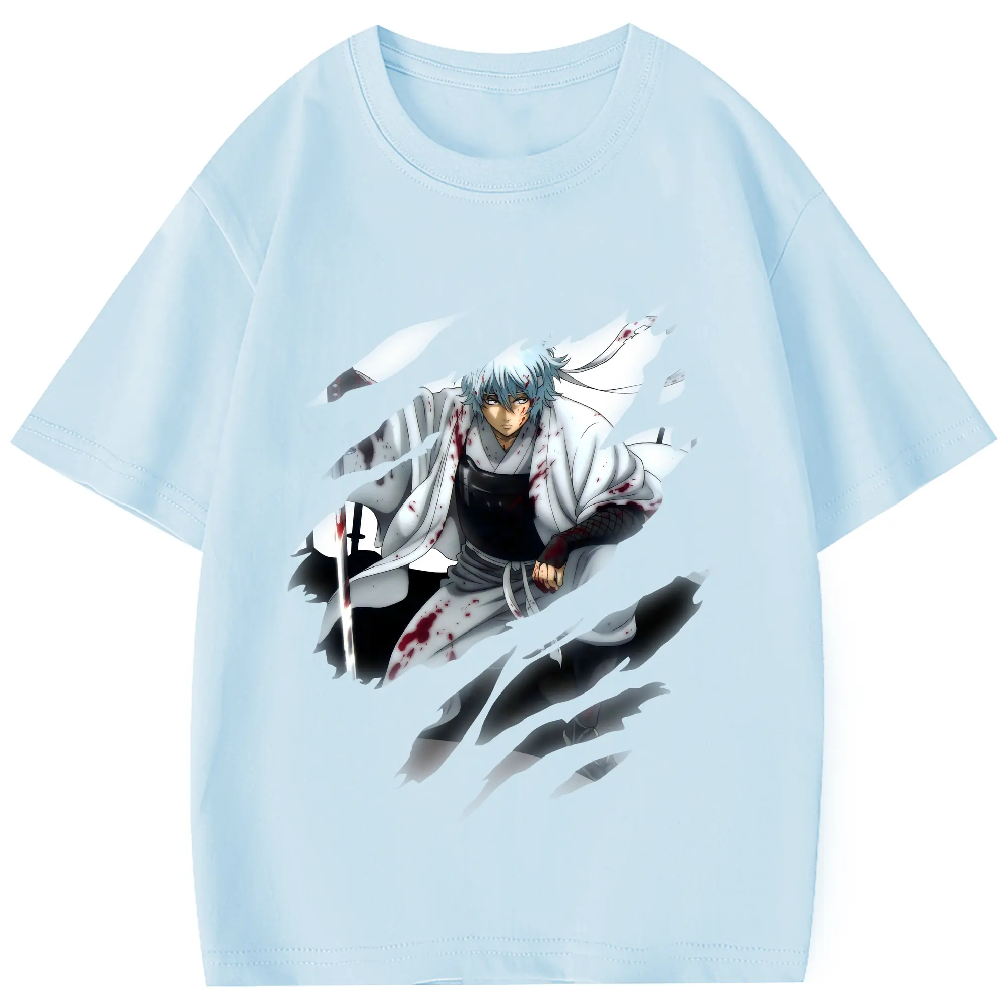 銀魂 グッズ 坂田 銀時 - 綿100% 半袖Tシャツ ・ フロントプリント ・ 快適 通気性 ・ 日常使い 散歩 スポーツ用