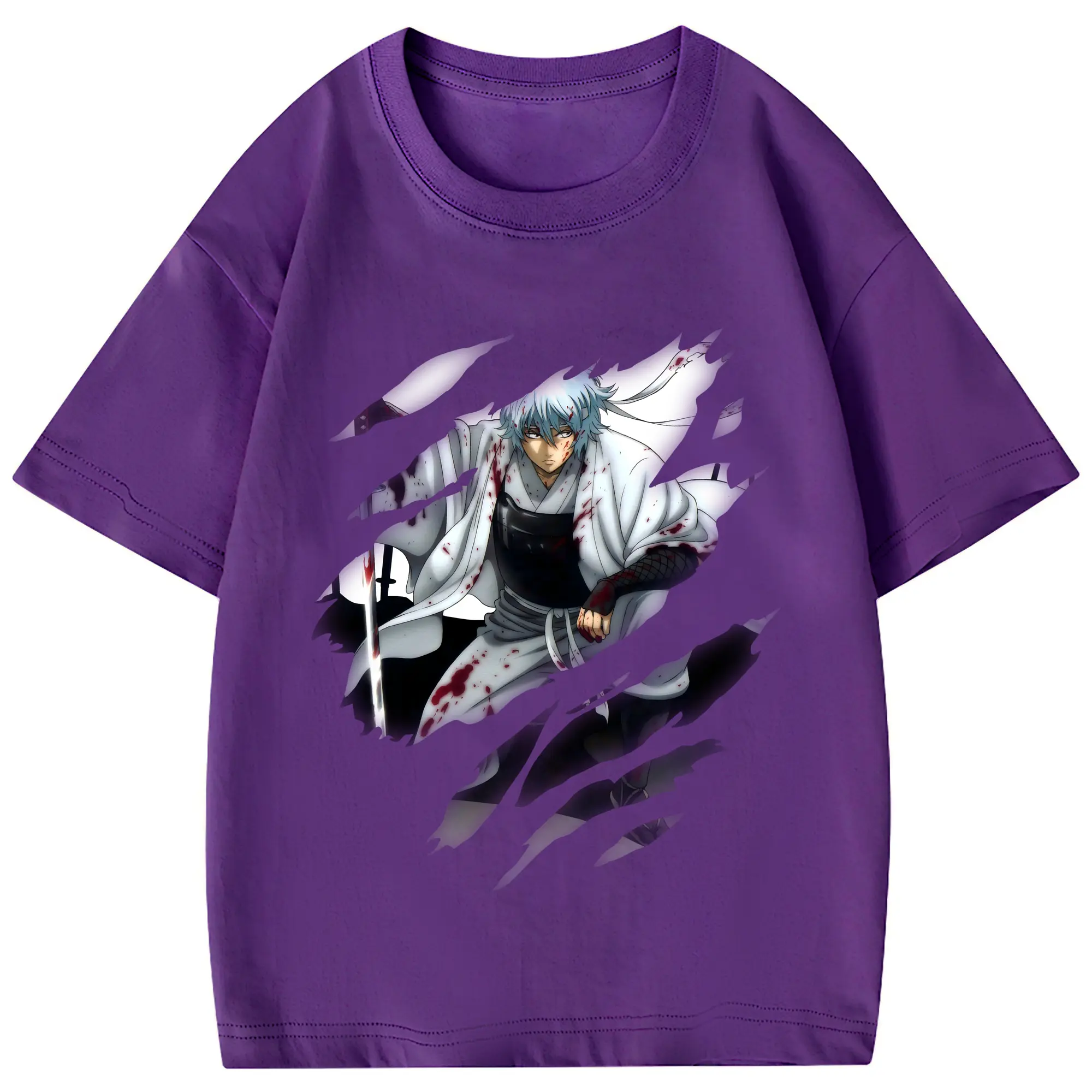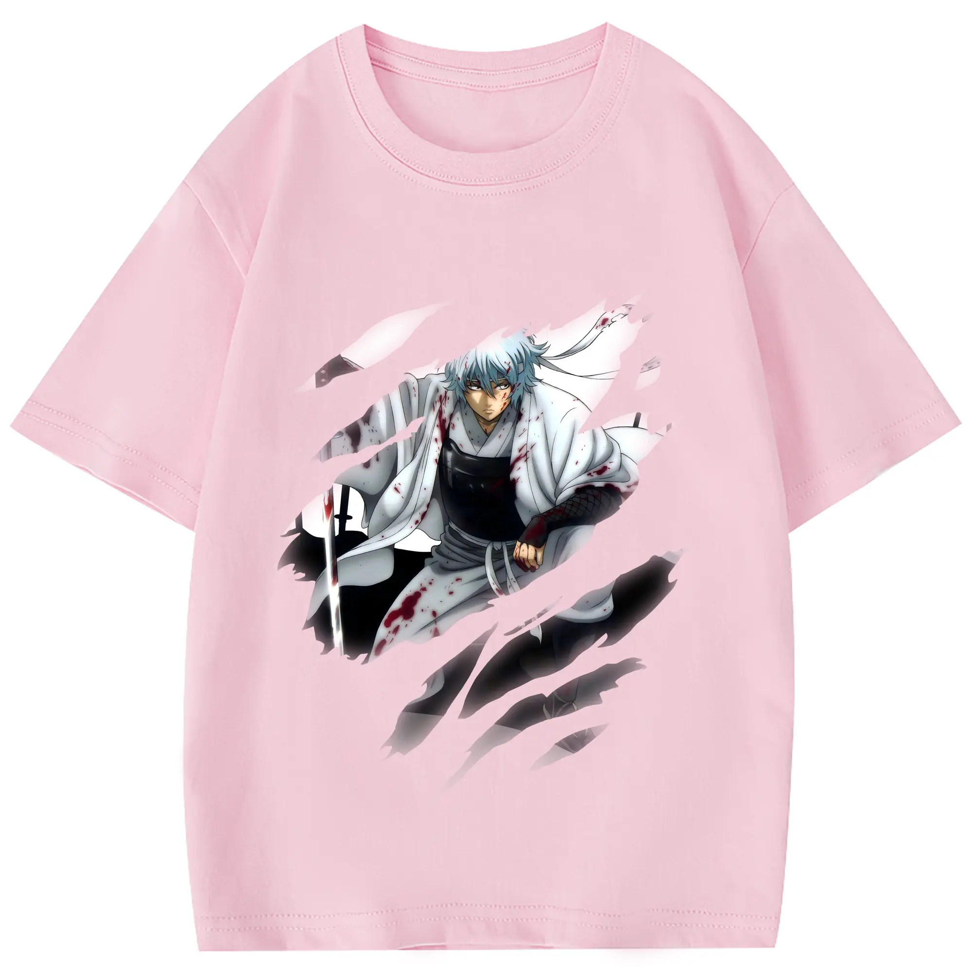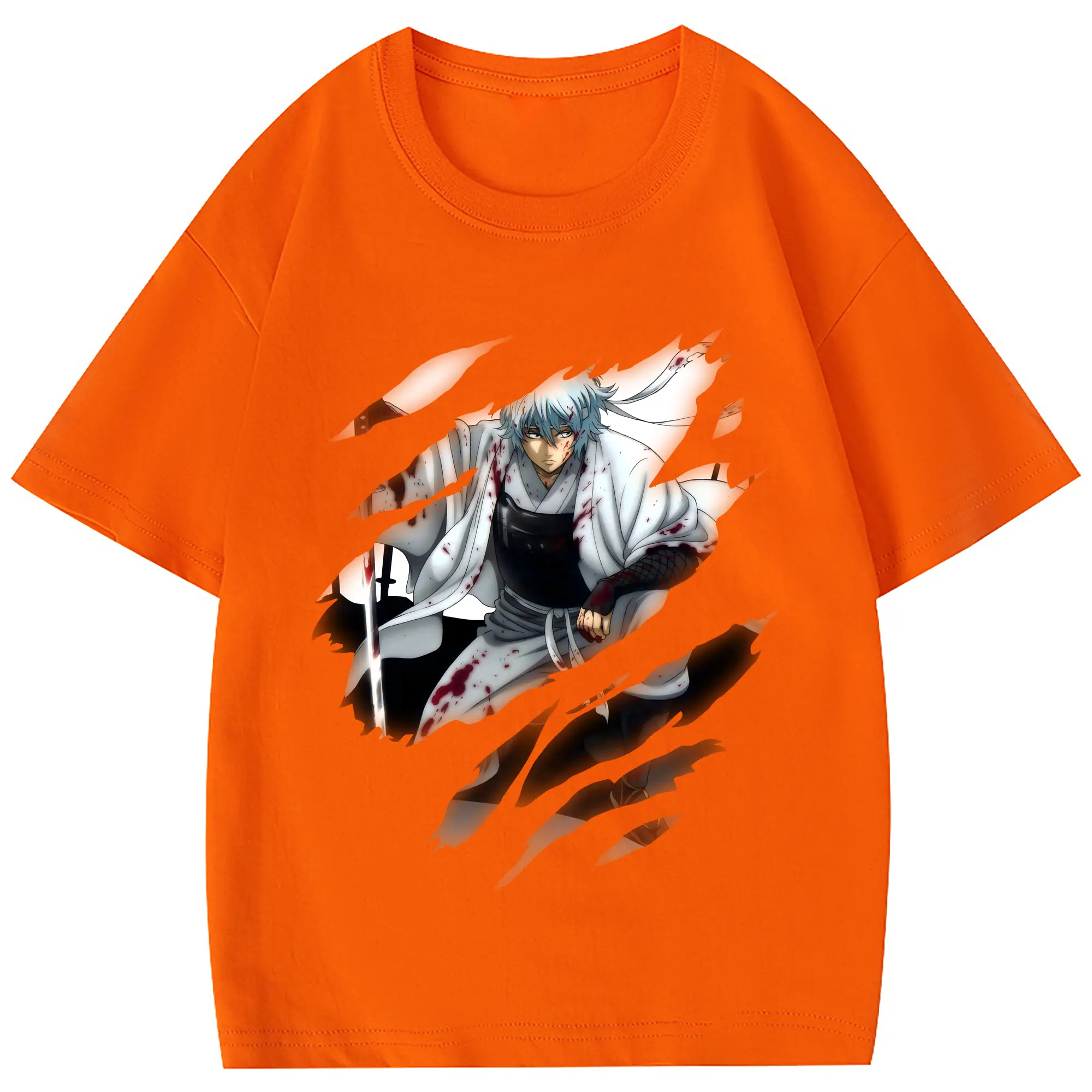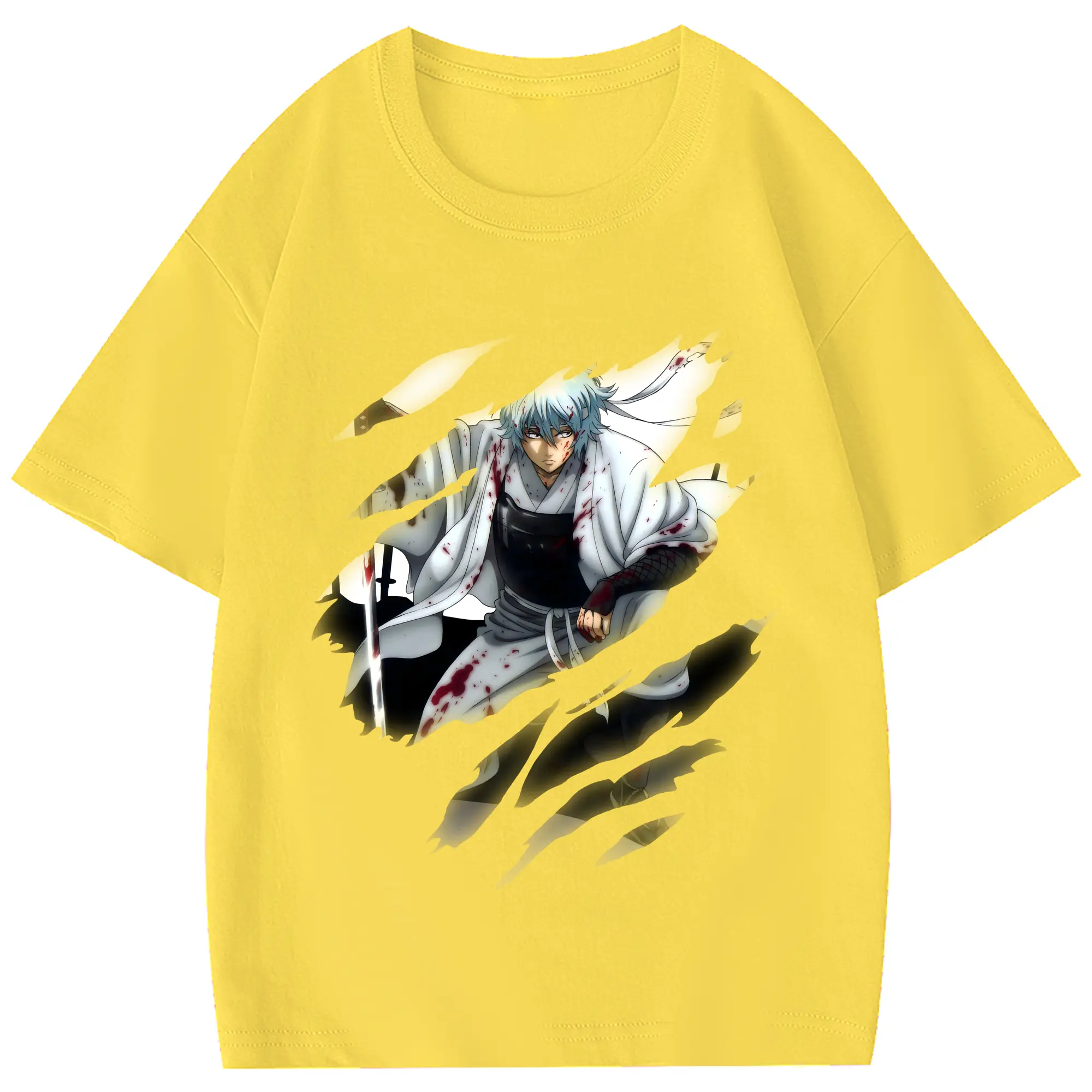 銀魂 グッズ 坂田 銀時 - 綿100% 半袖Tシャツ ・ フロントプリント ・ 快適 通気性 ・ 日常使い 散歩 スポーツ用