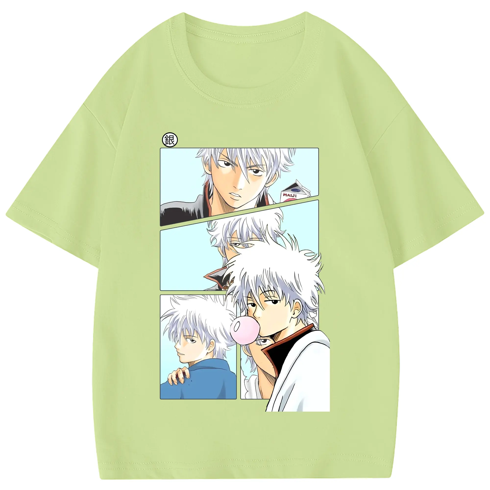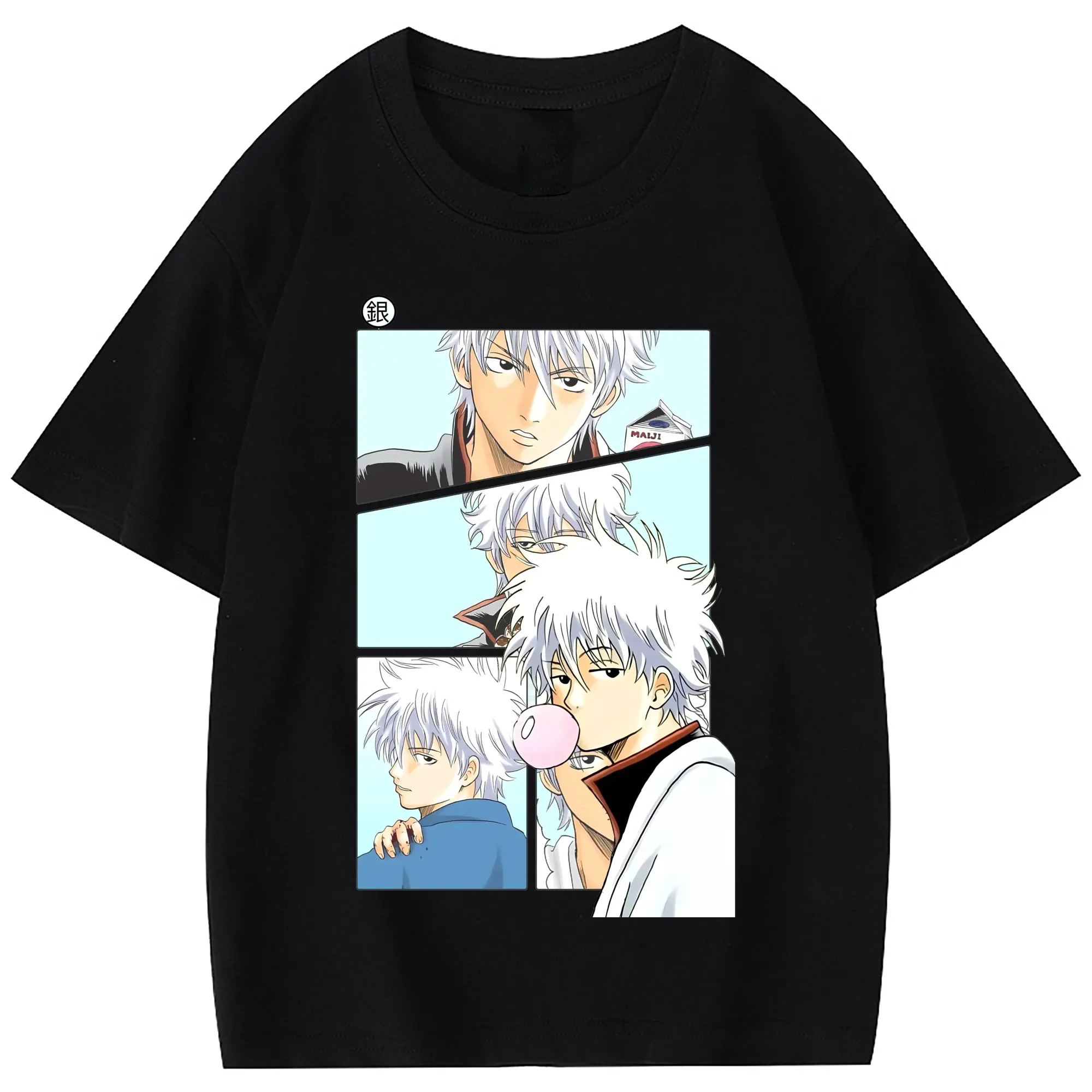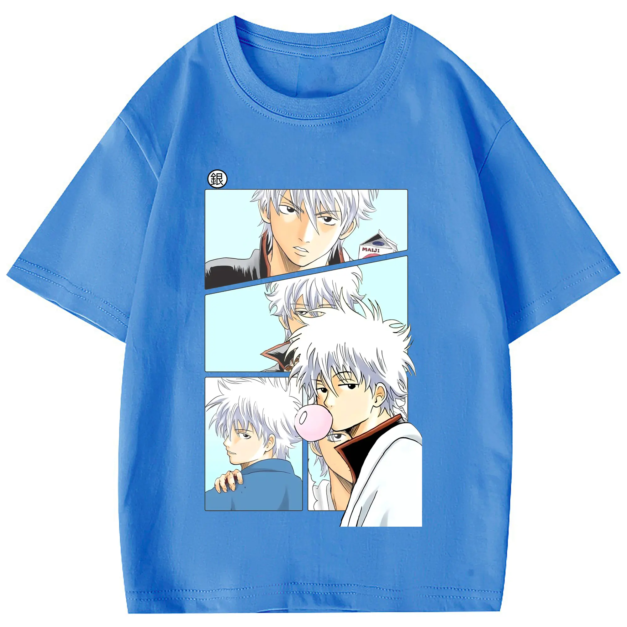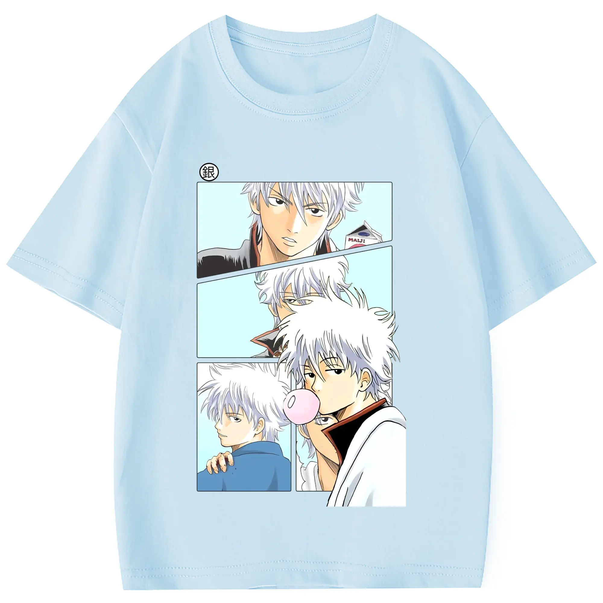 銀魂 グッズ 坂田 銀時 - 綿100% 半袖Tシャツ ・ フロントプリント ・ 快適 通気性 ・ 日常使い 散歩 スポーツ用