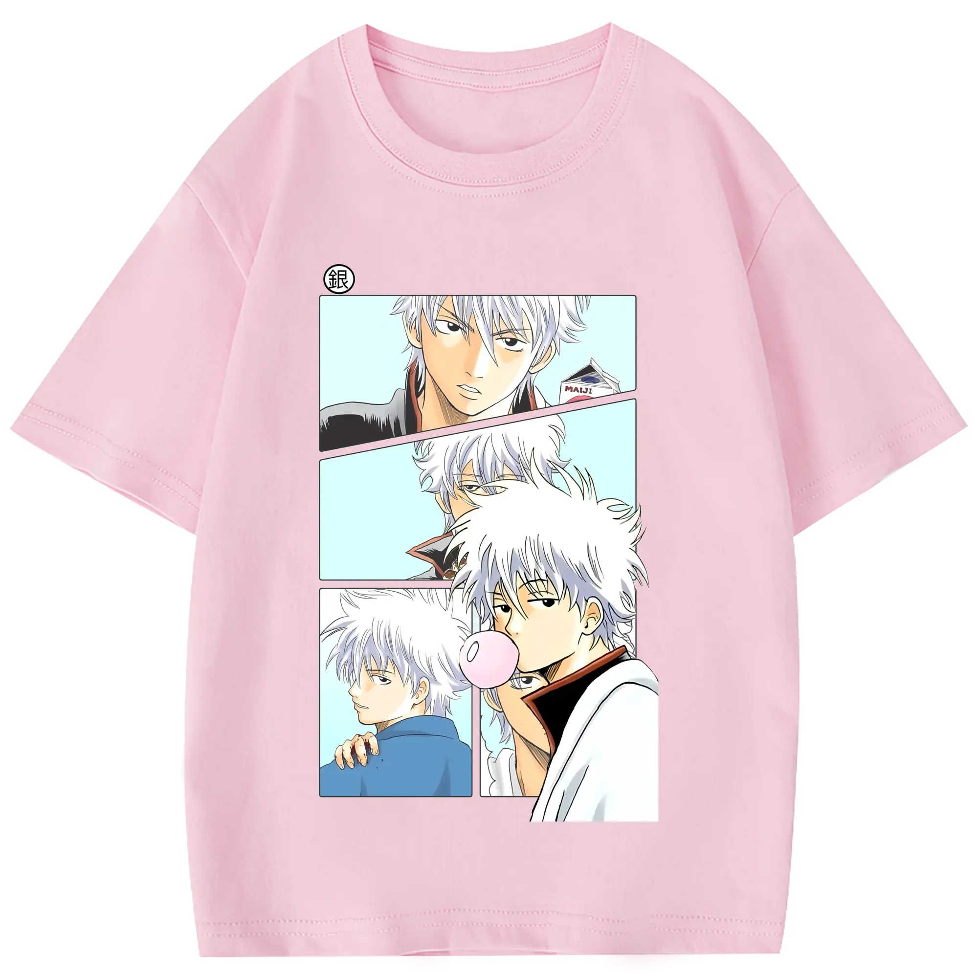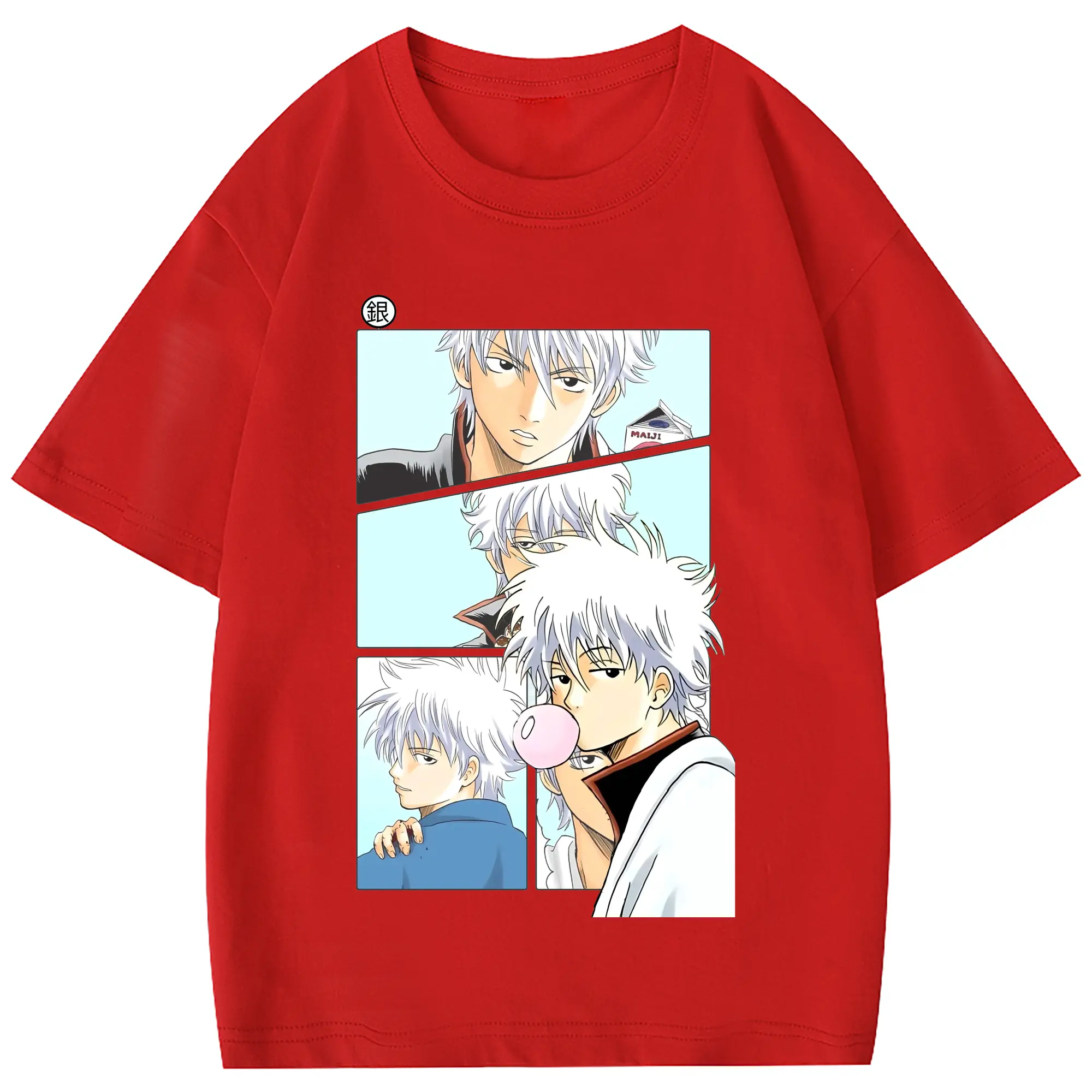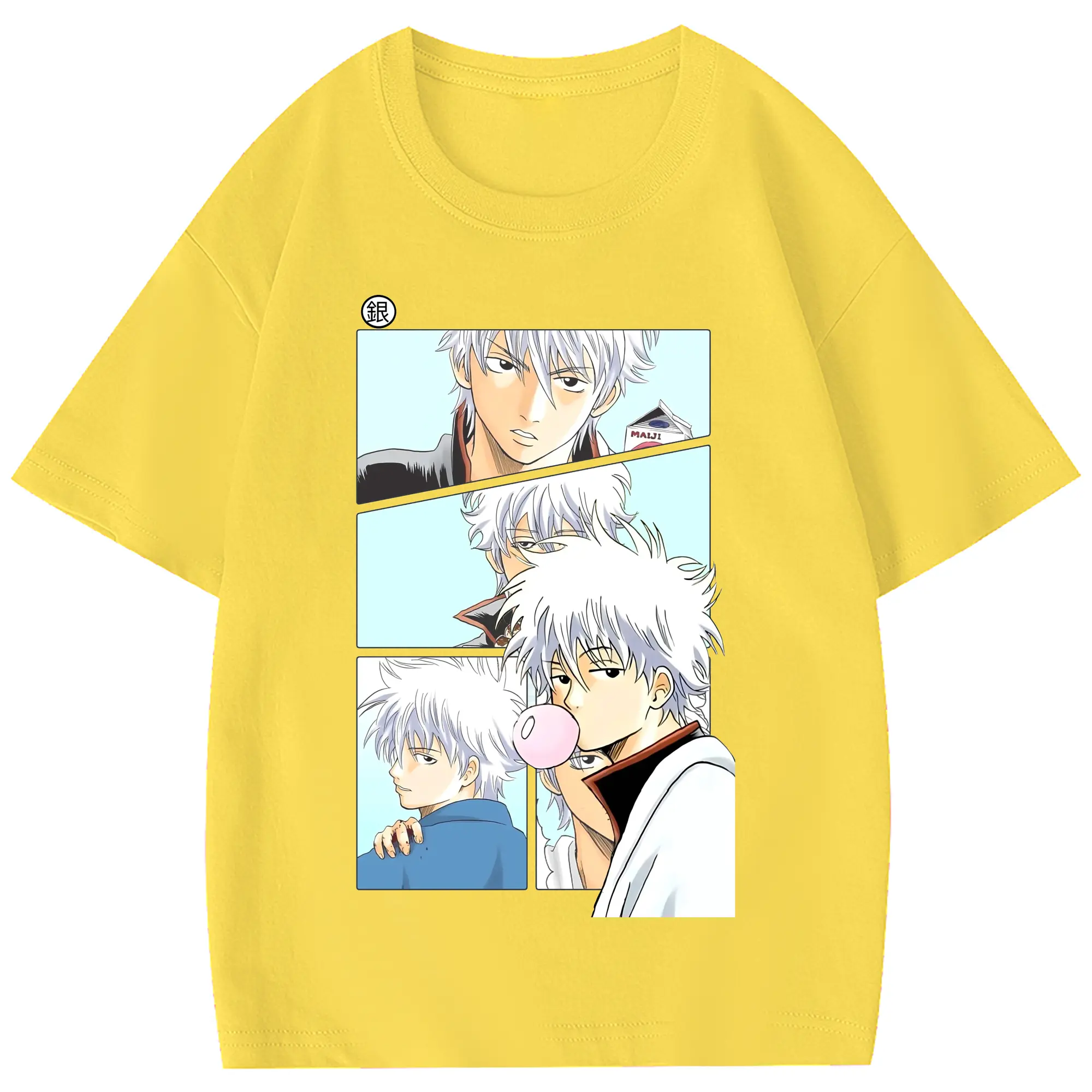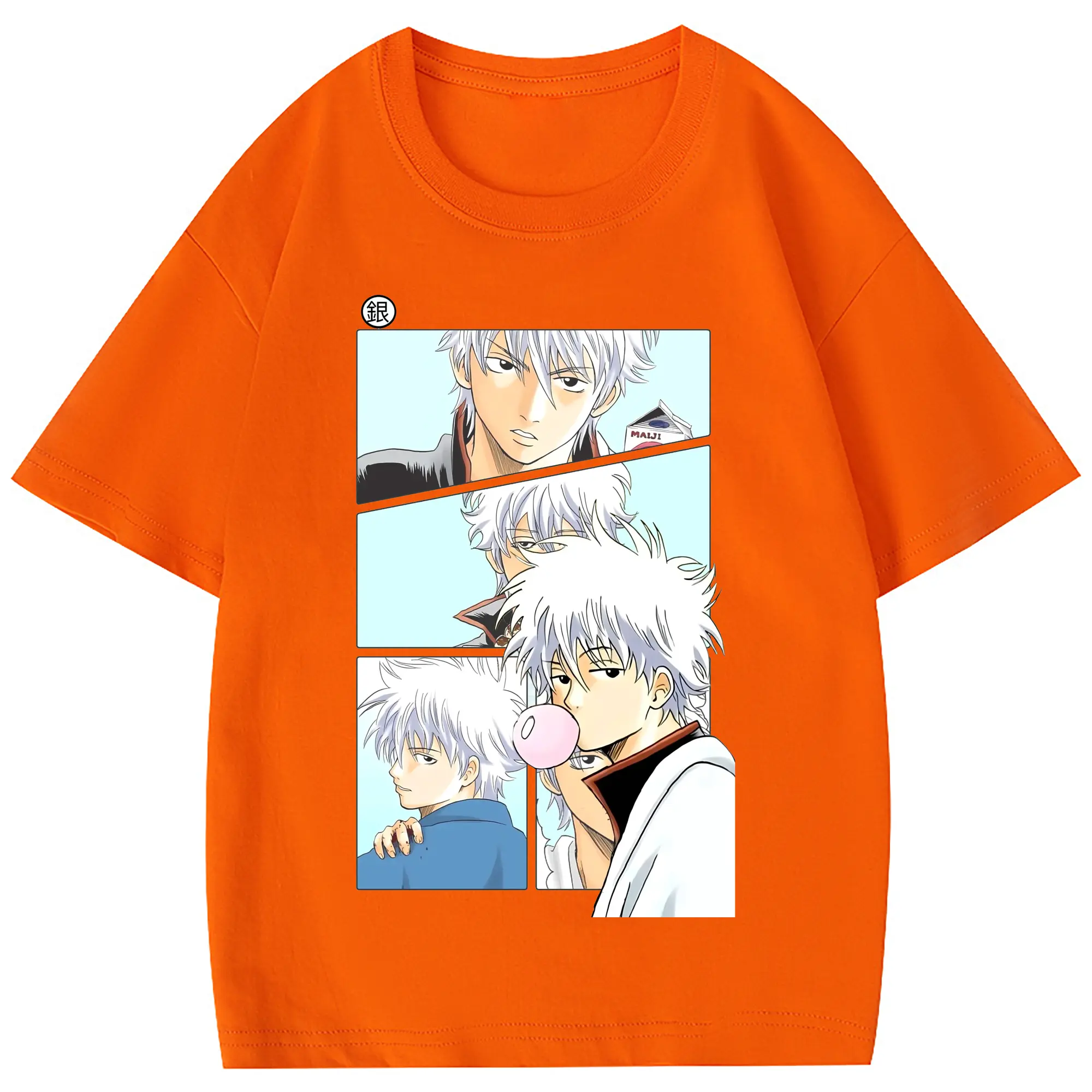 銀魂 グッズ 坂田 銀時 - 綿100% 半袖Tシャツ ・ フロントプリント ・ 快適 通気性 ・ 日常使い 散歩 スポーツ用