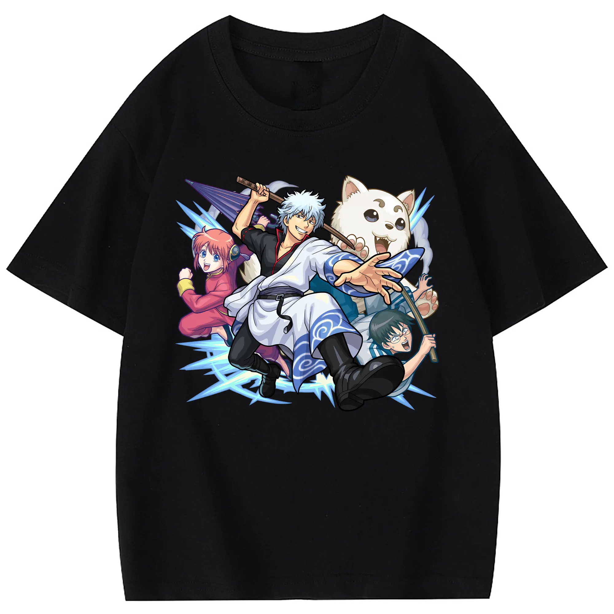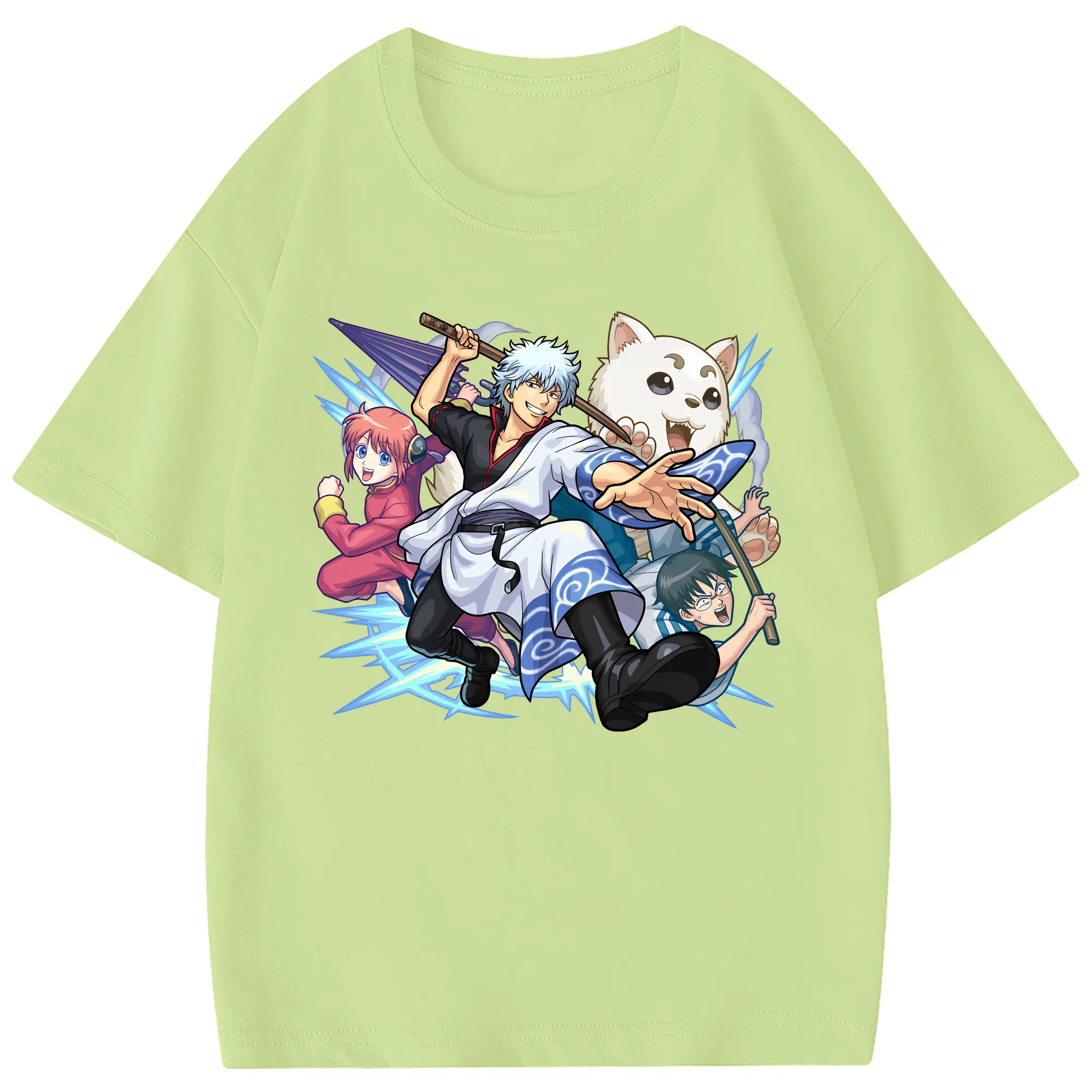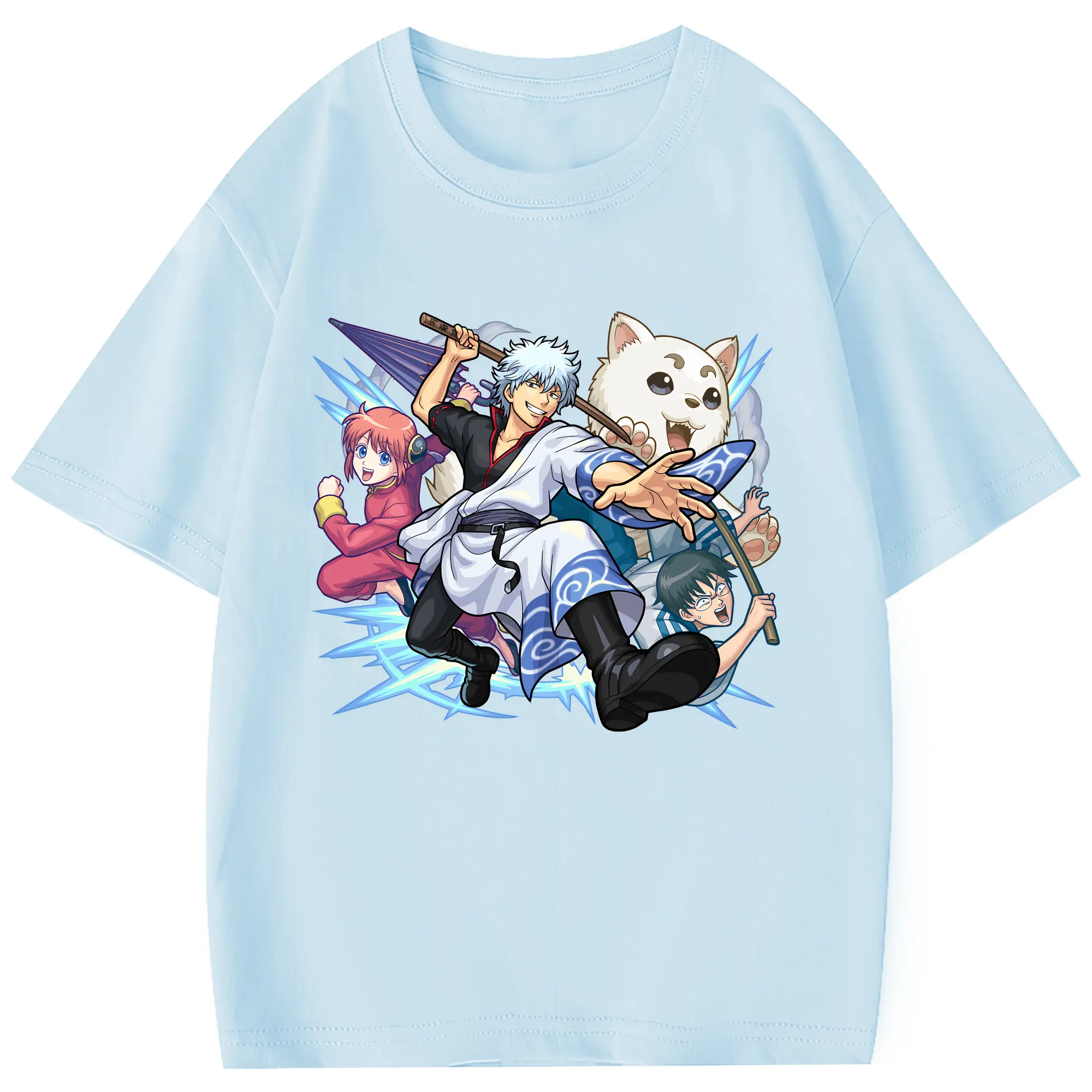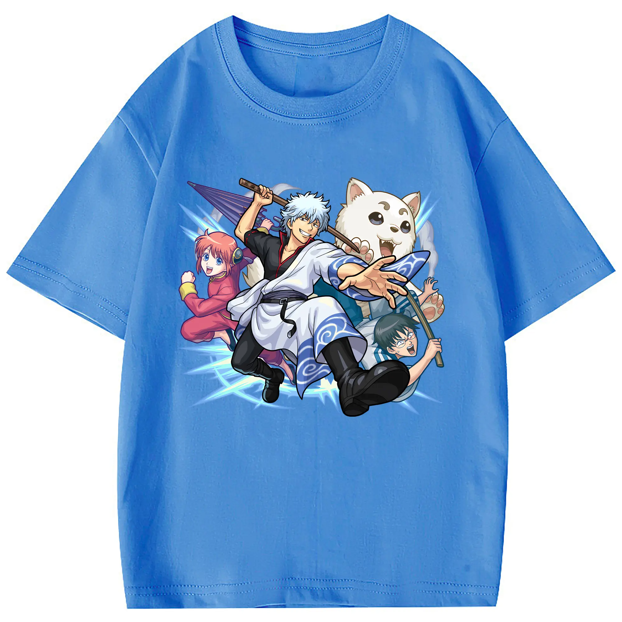 銀魂 グッズ 坂田 銀時 - 綿100% 半袖Tシャツ ・ フロントプリント ・ 快適 通気性 ・ 日常使い 散歩 スポーツ用