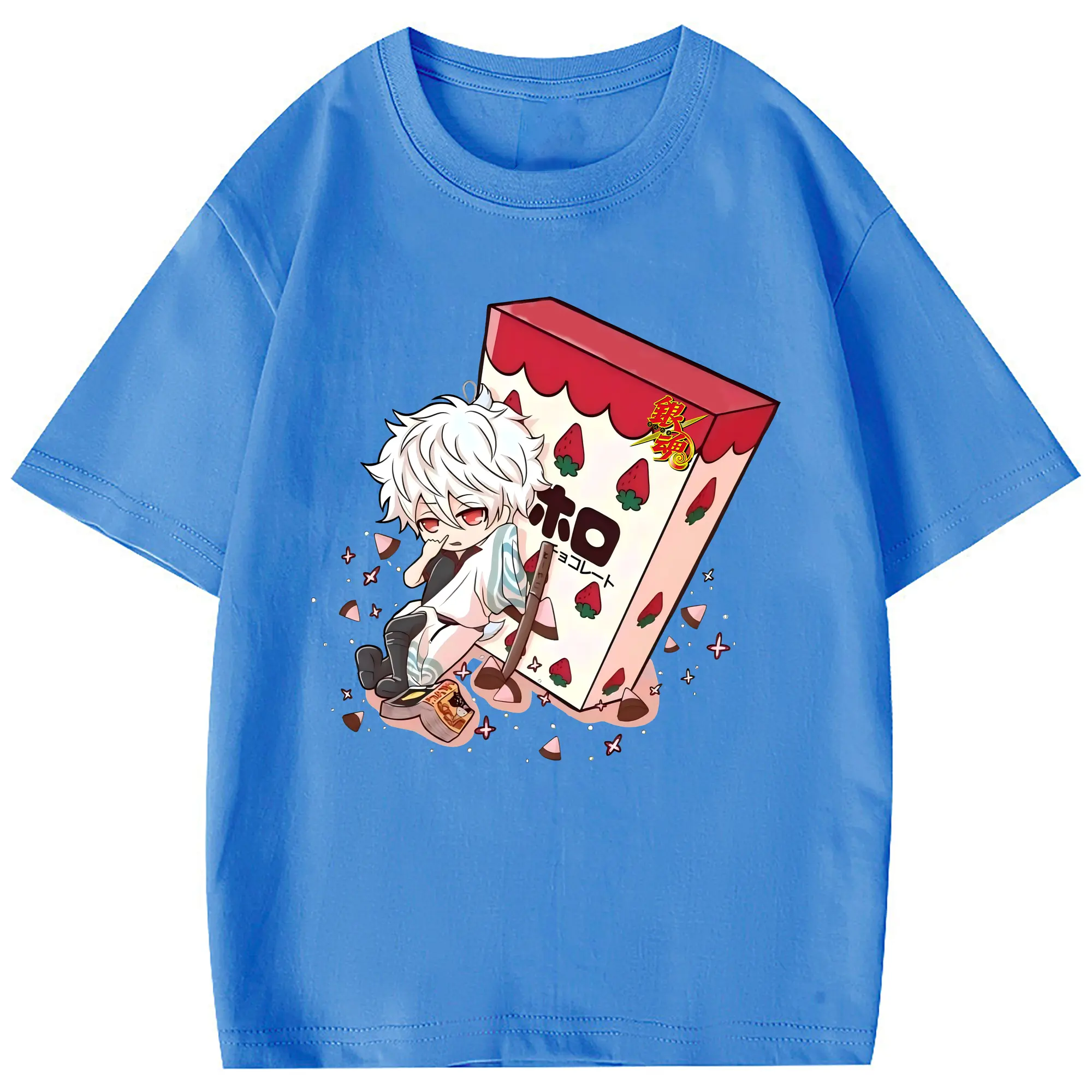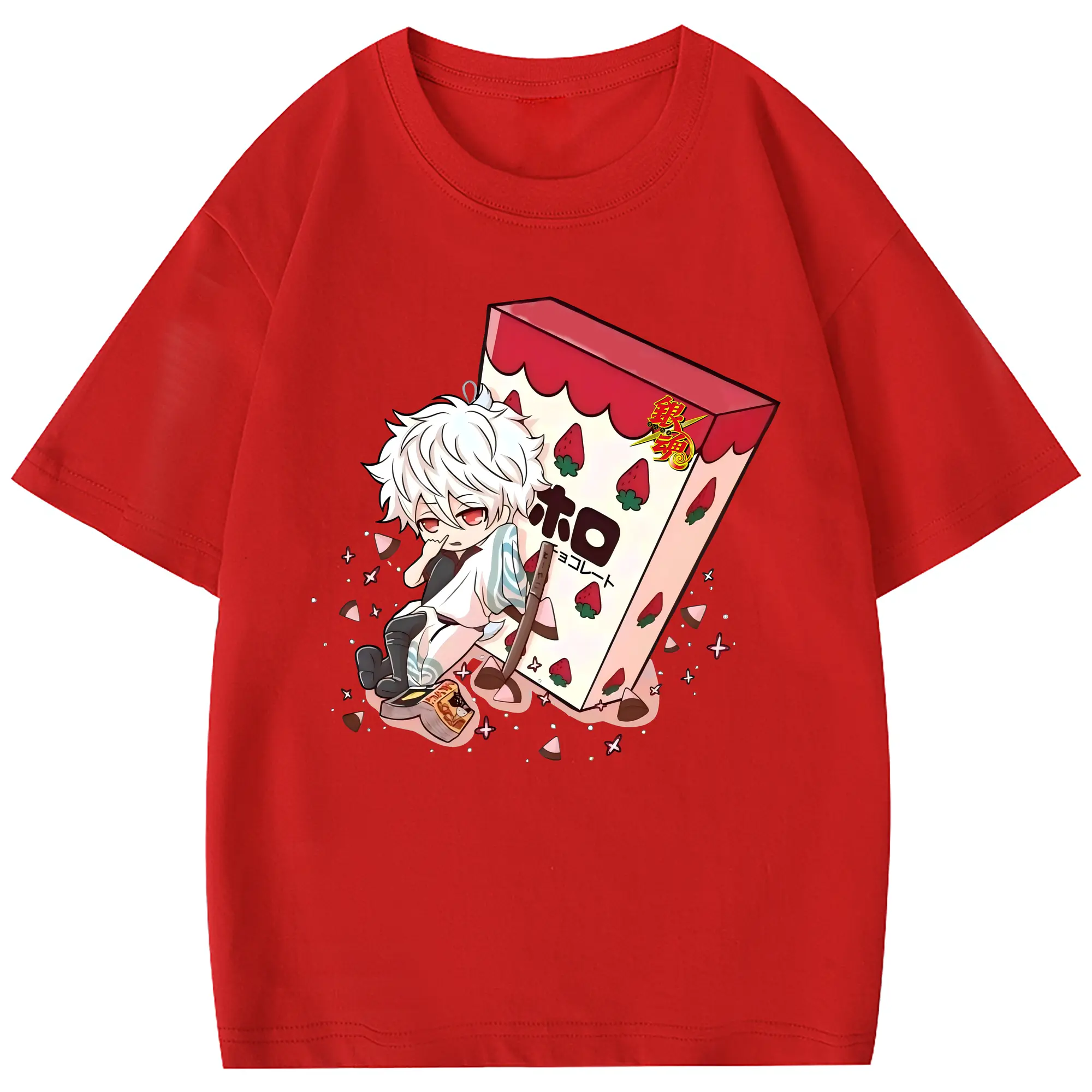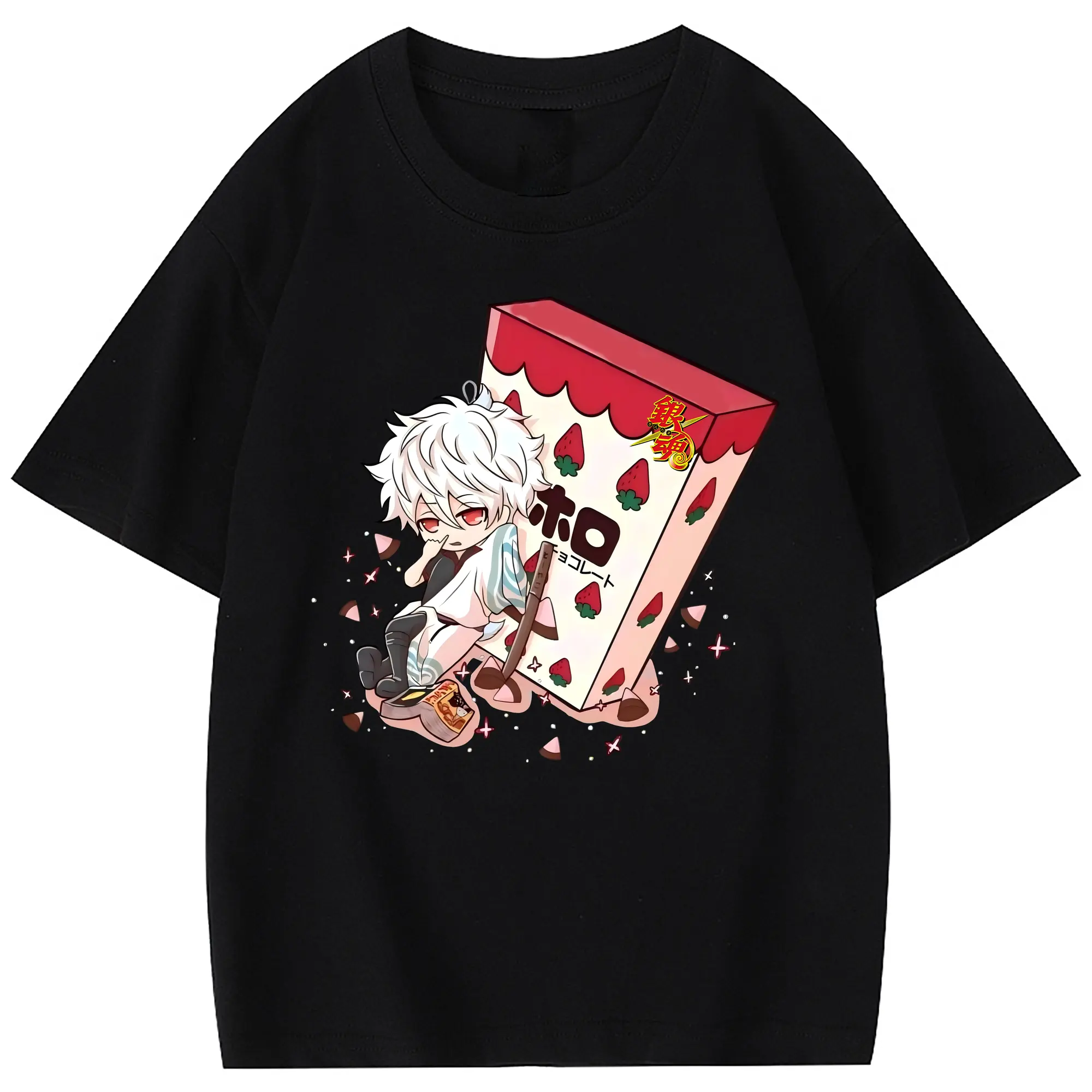 銀魂 グッズ 坂田 銀時 - 綿100% 半袖Tシャツ ・ フロントプリント ・ 快適 通気性 ・ 日常使い 散歩 スポーツ用